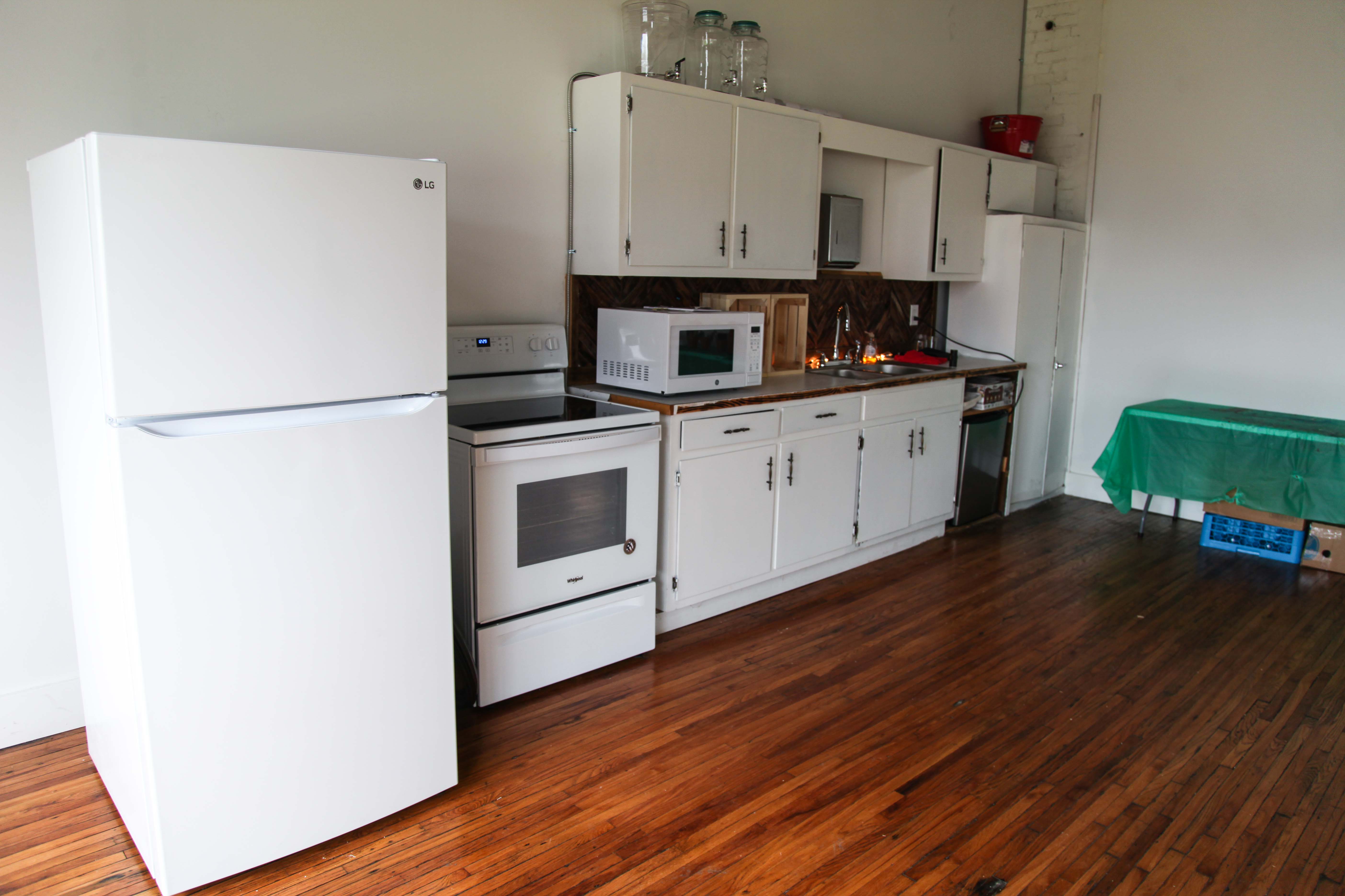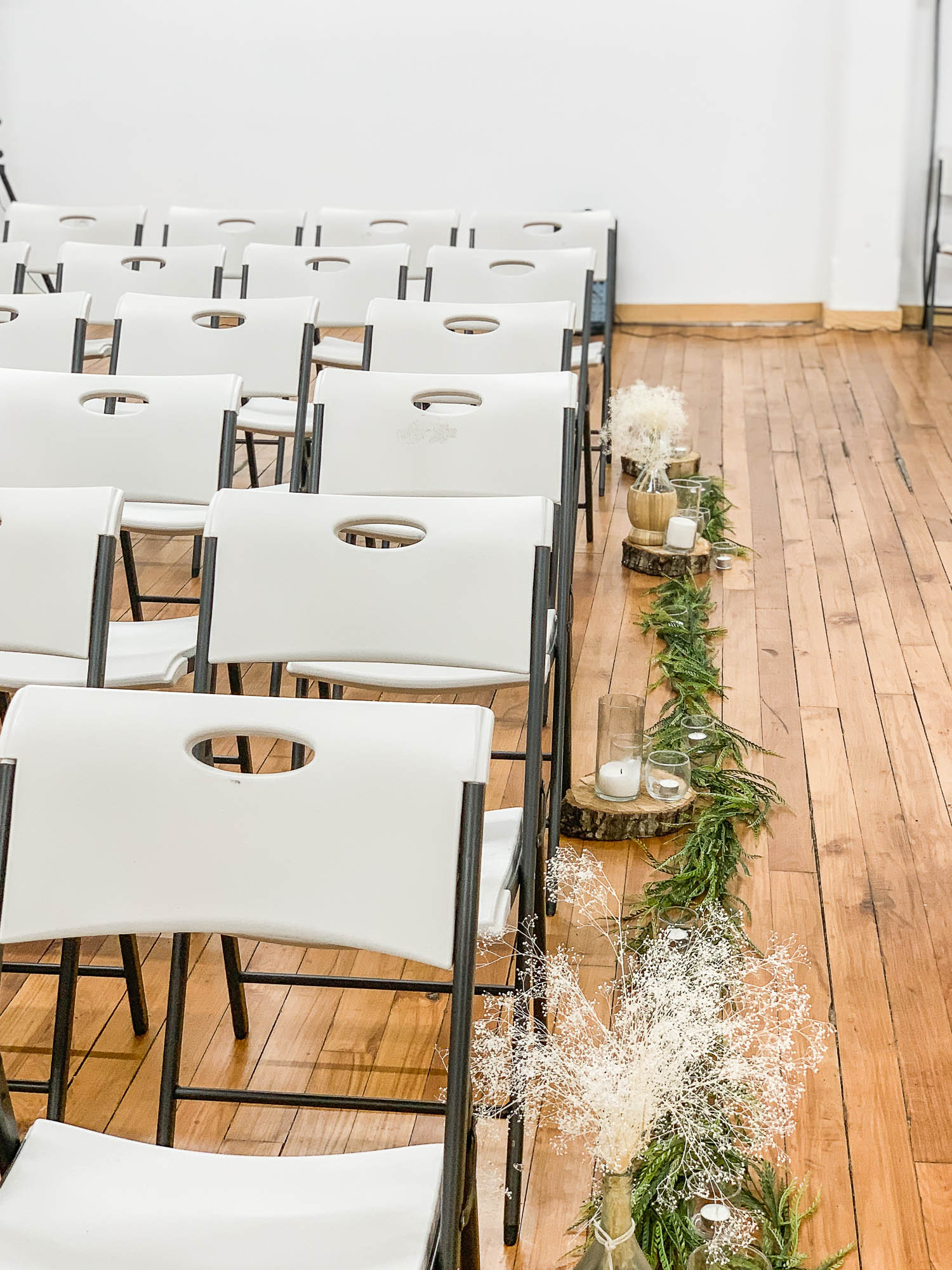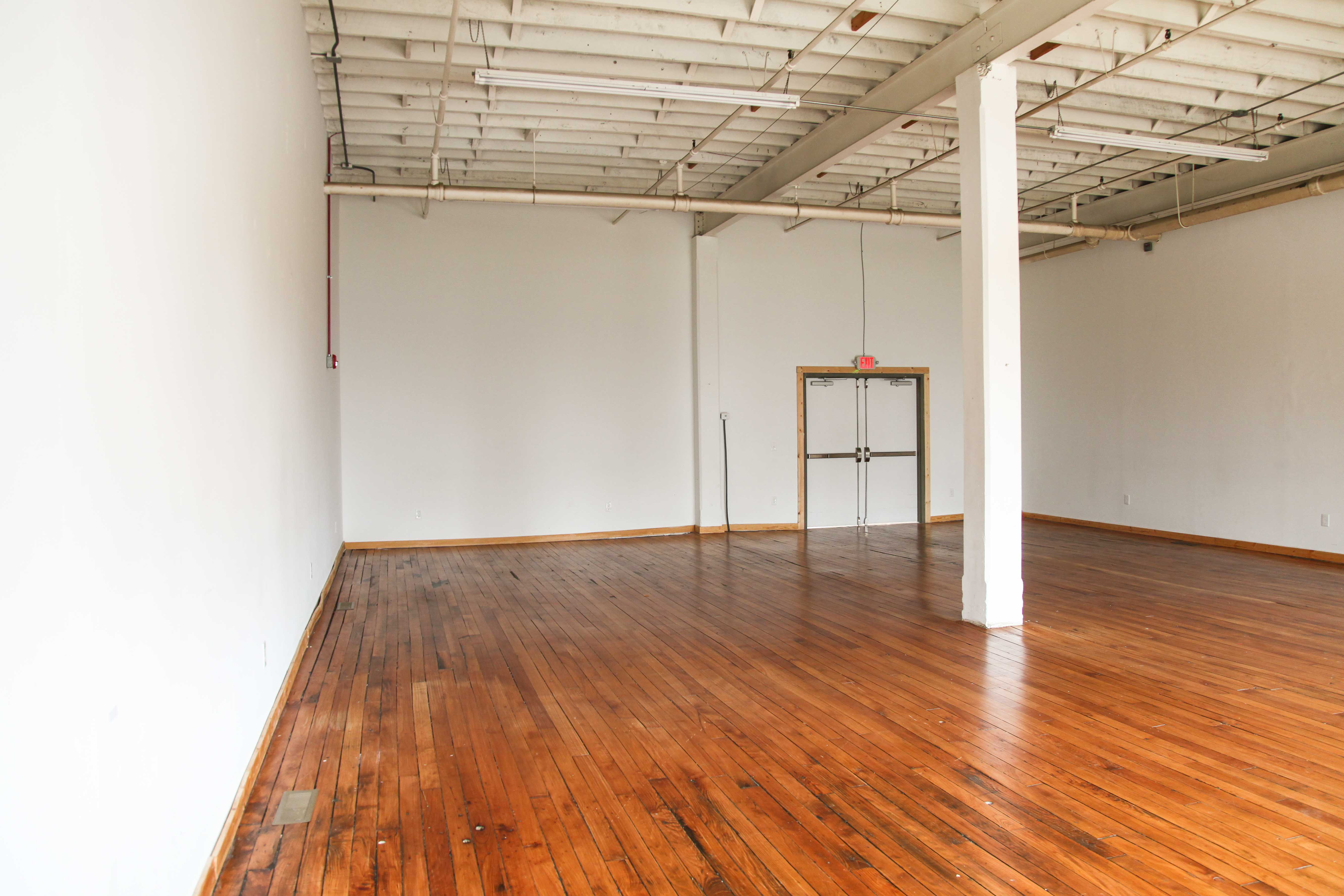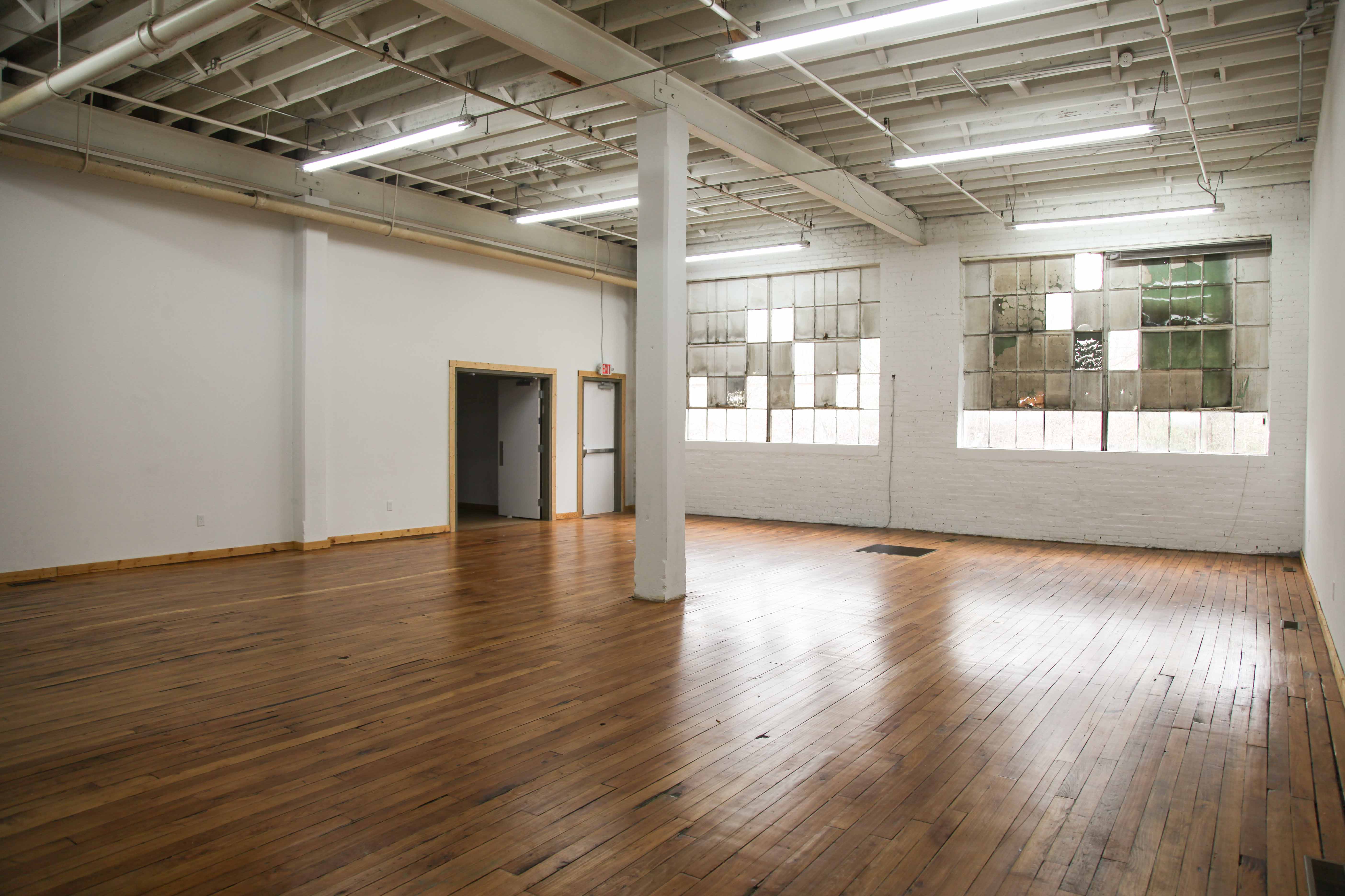 This bright and beautiful event space features rustic industrial elements, gorgeous wood floors, white brick, high ceilings, and large windows letting in tons of natural light!