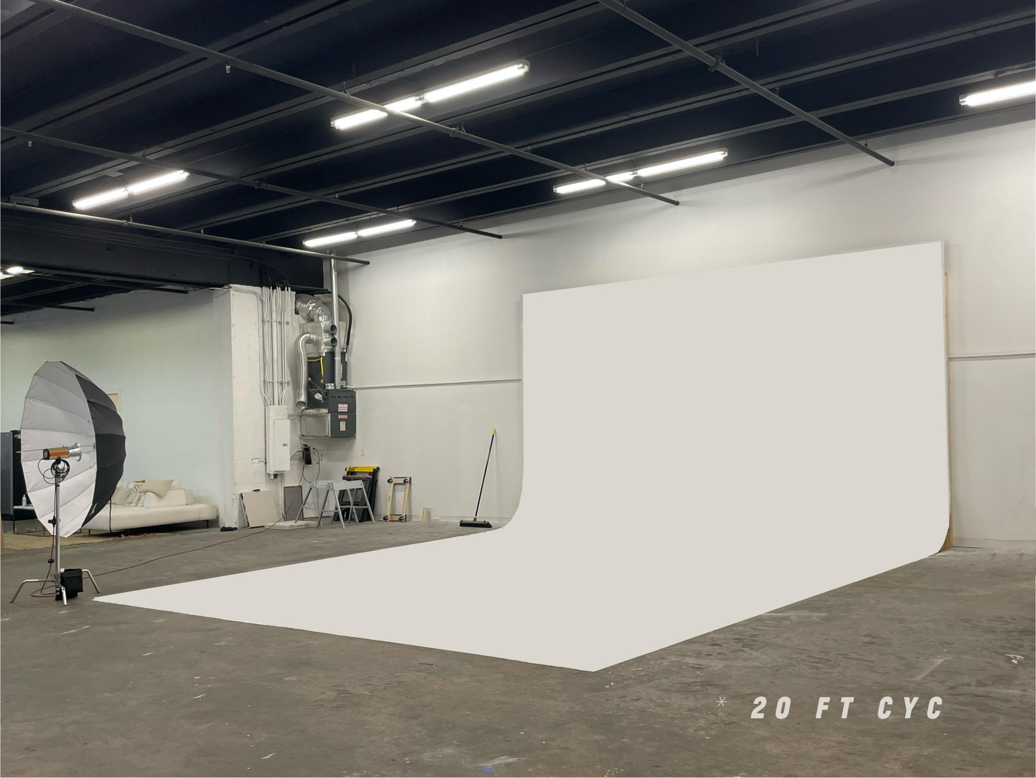 Dream Baby Studio is a 4,500 sq ft commercial studio located in East Nashville, TN. Studio has a 20ft open CYC wall, commercial kitchen, Green Room and one large garage bay with a full ramp to for load in/out access to natural light. Grip and prop packages are available for additional rental fees.