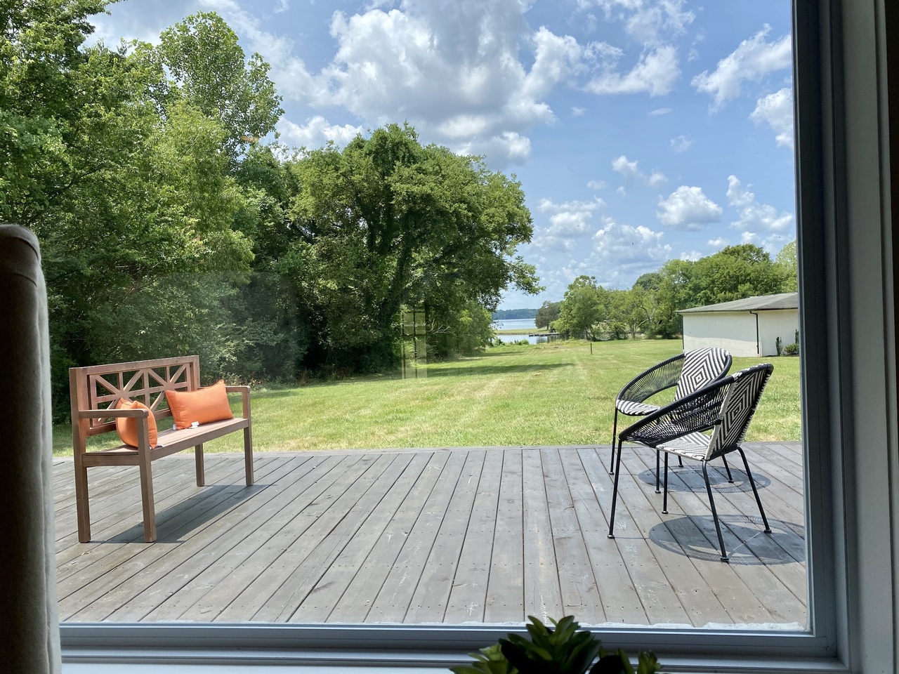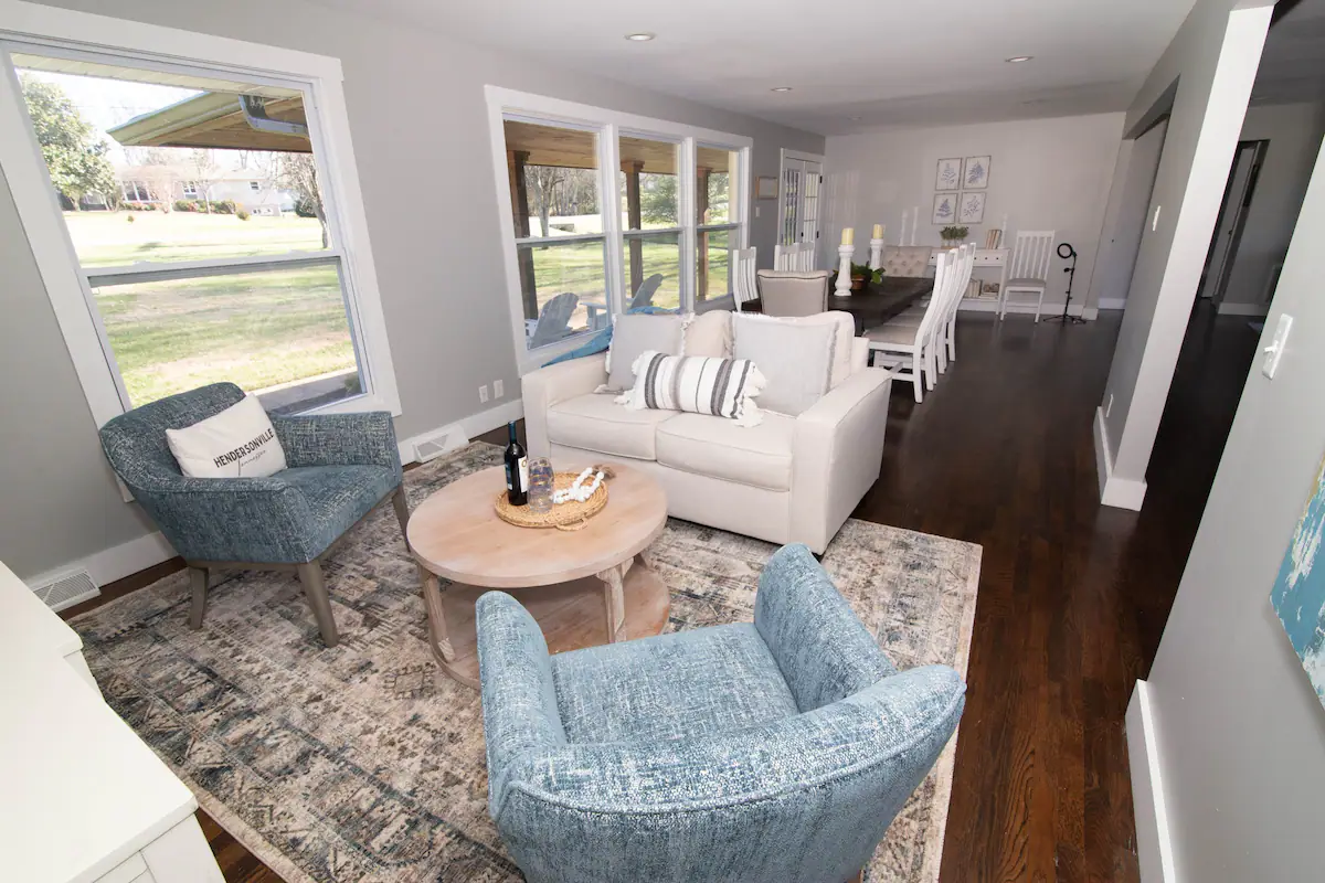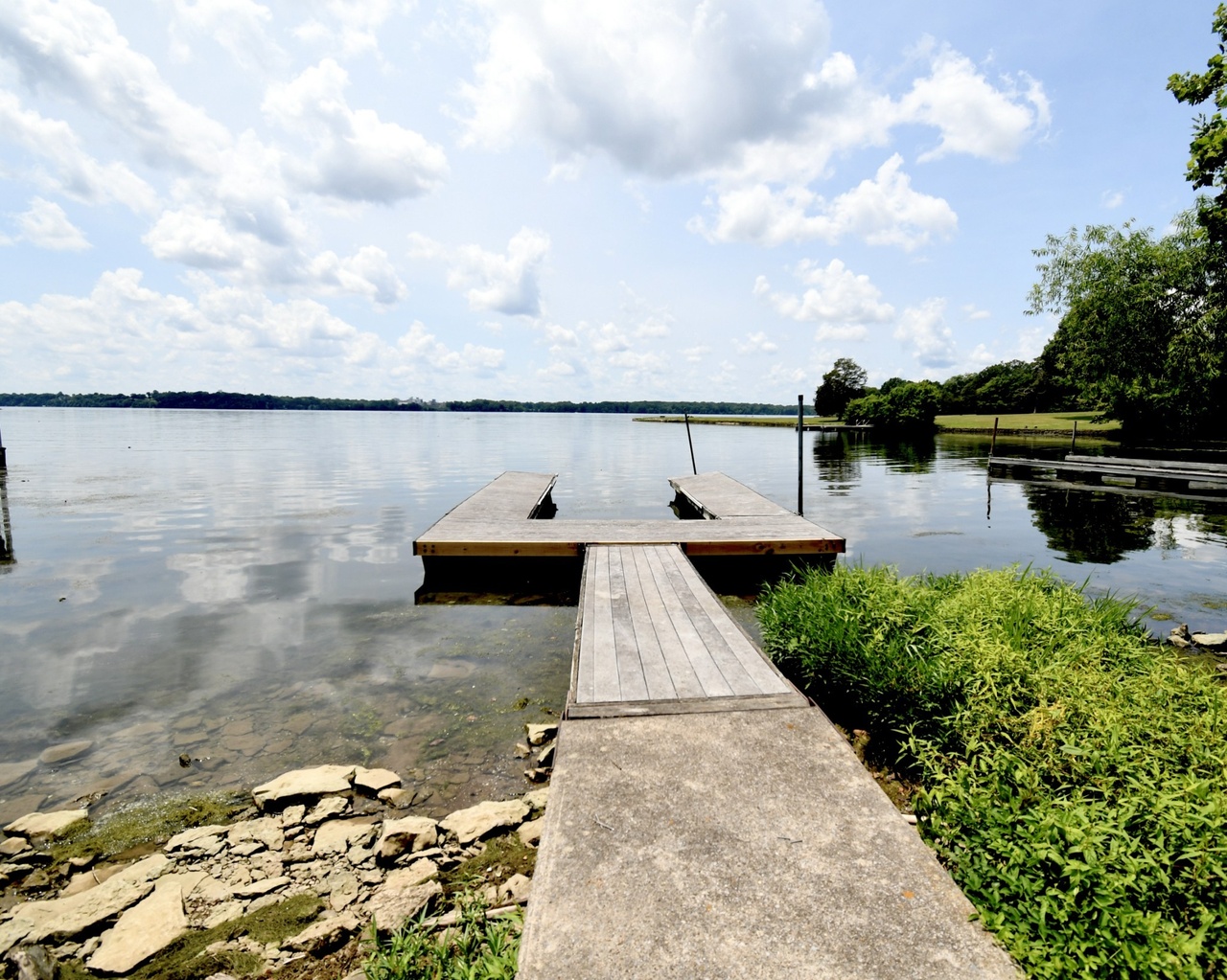 This cute house in quiet Hendersonville neighborhood offers a lake front view (with boat dock) and large 1 acre yard. The house is bright and airy with tones of blue and gray in all rooms. Large open floor plan living room area with big windows. We also have a brand new pool and hot tub!