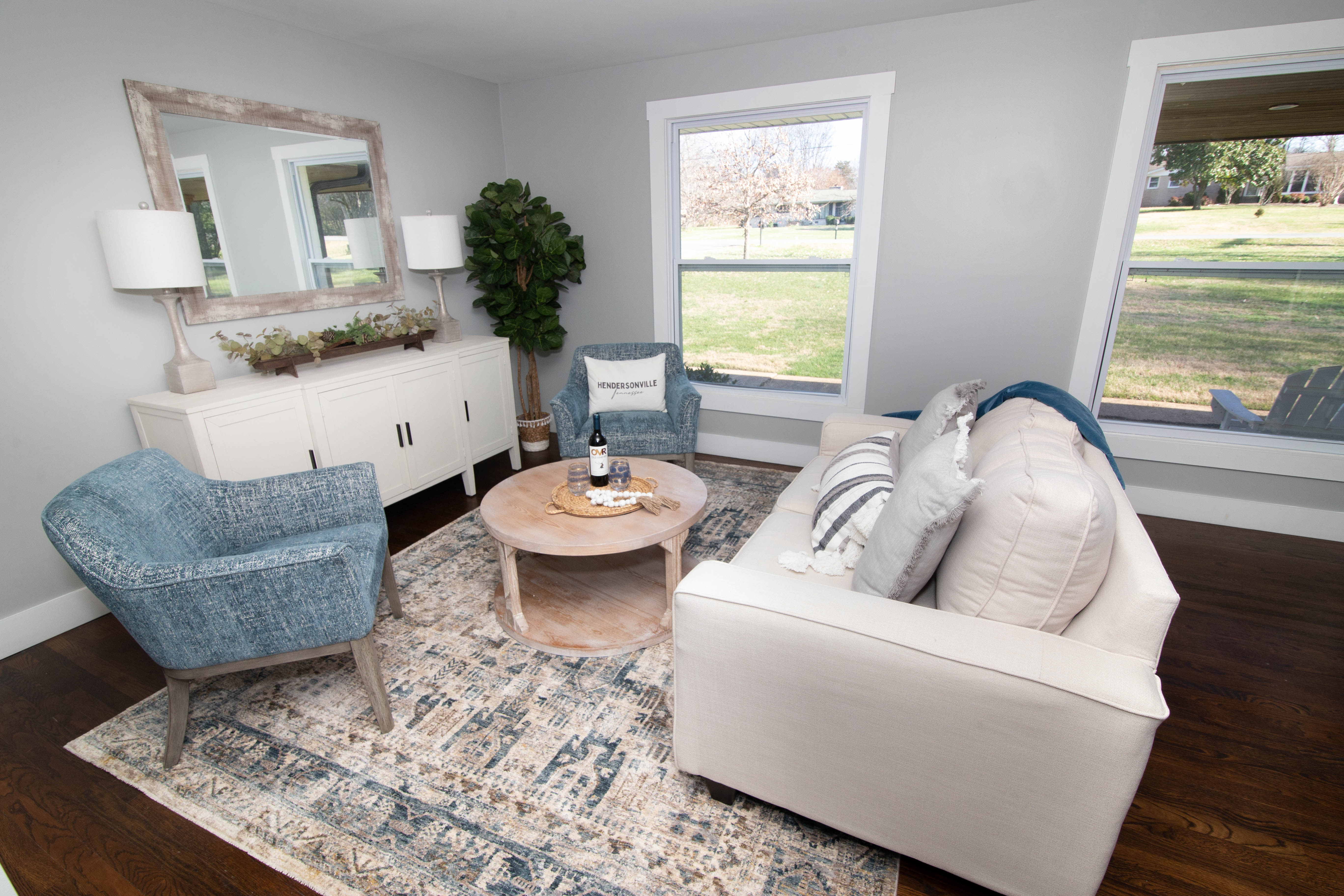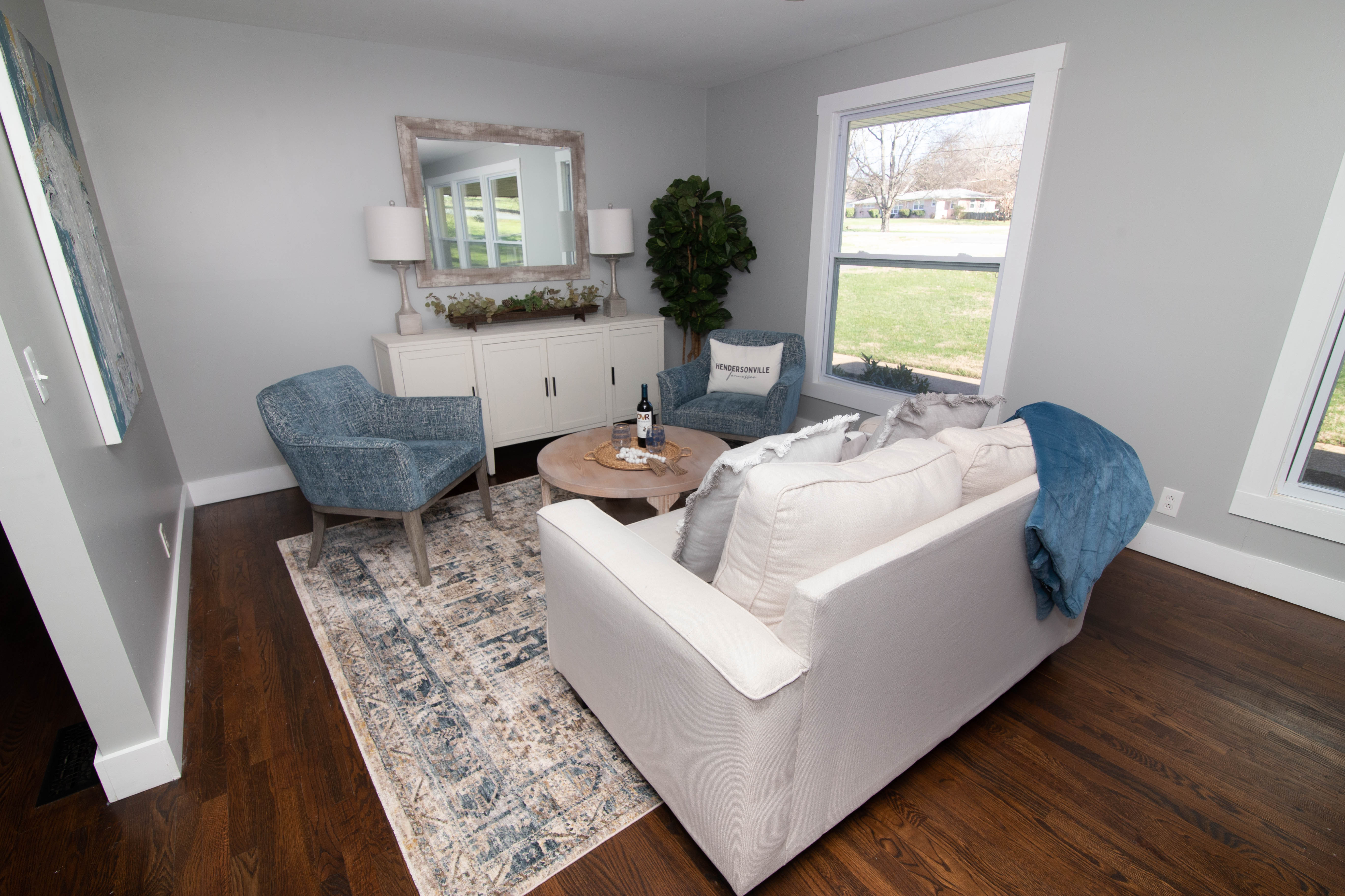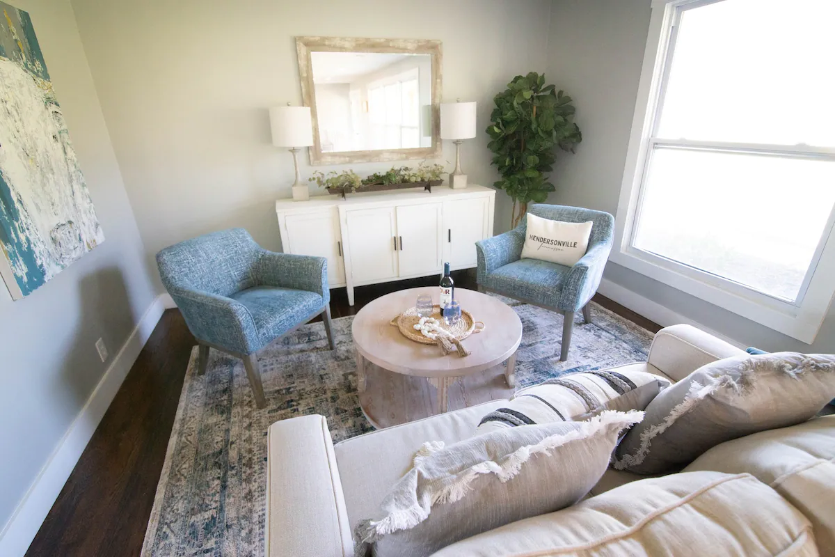 This cute house in quiet Hendersonville neighborhood offers a lake front view (with boat dock) and large 1 acre yard. The house is bright and airy with tones of blue and gray in all rooms. Large open floor plan living room area with big windows. We also have a brand new pool and hot tub!
