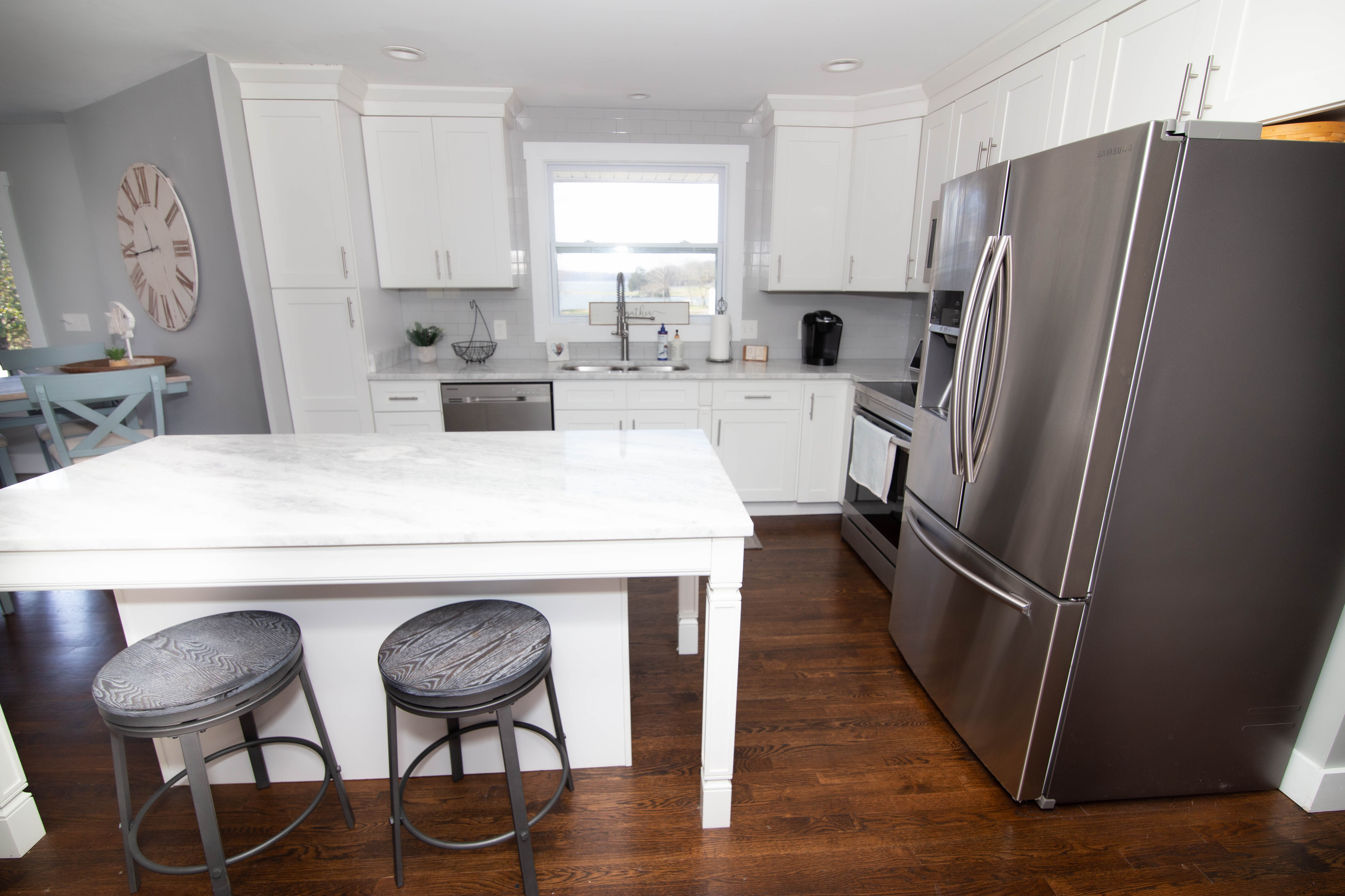 What a gem! This cozy home on the water boasts an open living area, chic decor, a large kitchen, and loads of space. Check out this incredible property for your next project!