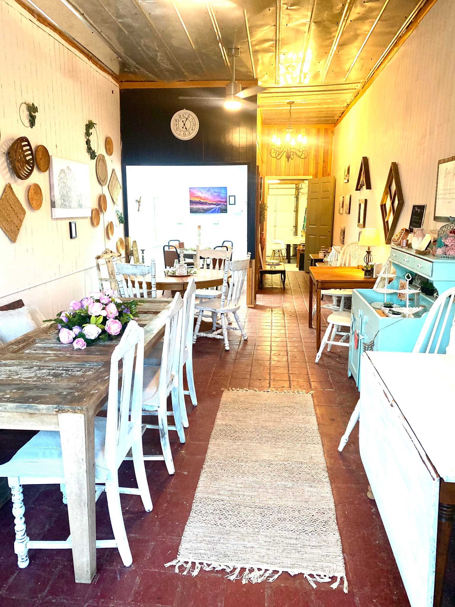 Cute cafe/building on a quaint street in small town USA. Decorated in farmhouse cafe style, but can be easily changed out to fit any decor. Large room with approximately 800 square feet, and another 200 plus feet in back room that is a garage. Great space to open garage door and have a little outdoor venue area as well.