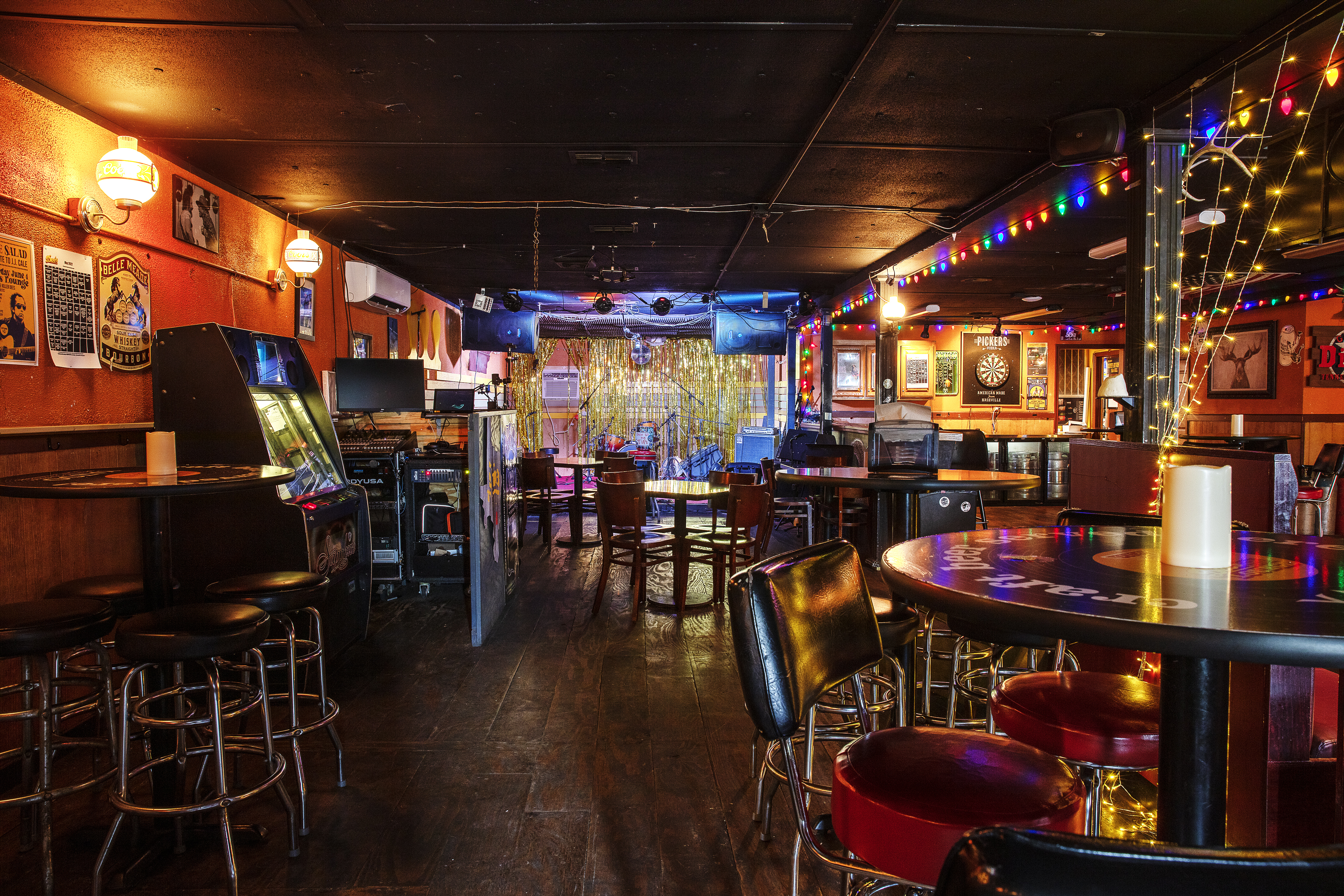 We are a bar and music venue w/stage, full sound and lighting. Our available hours are generally when we are closed, but we are open to shoots/events during business hours, just send us a message here to work up a custom quote if your shoot requires filming during those times.