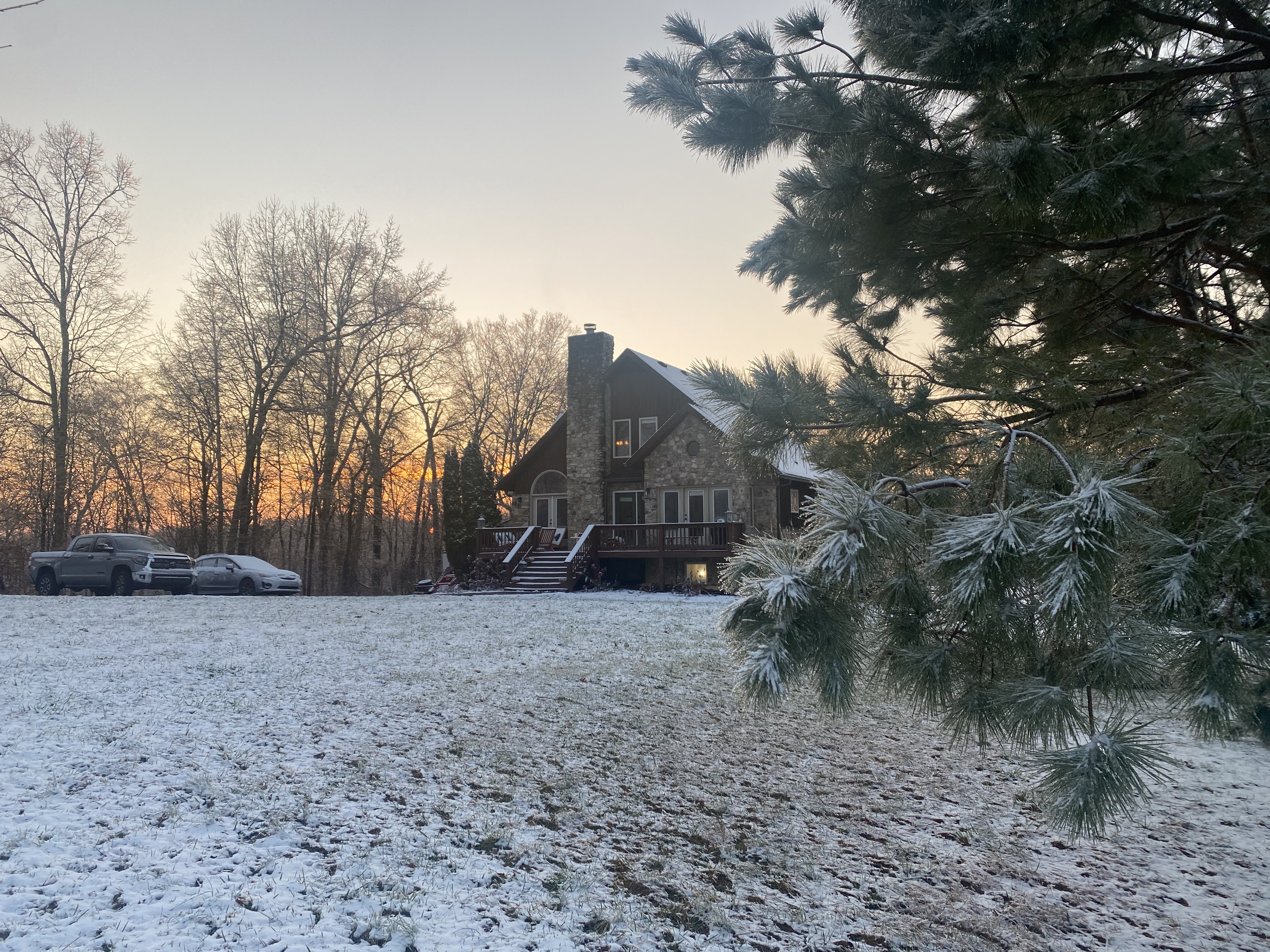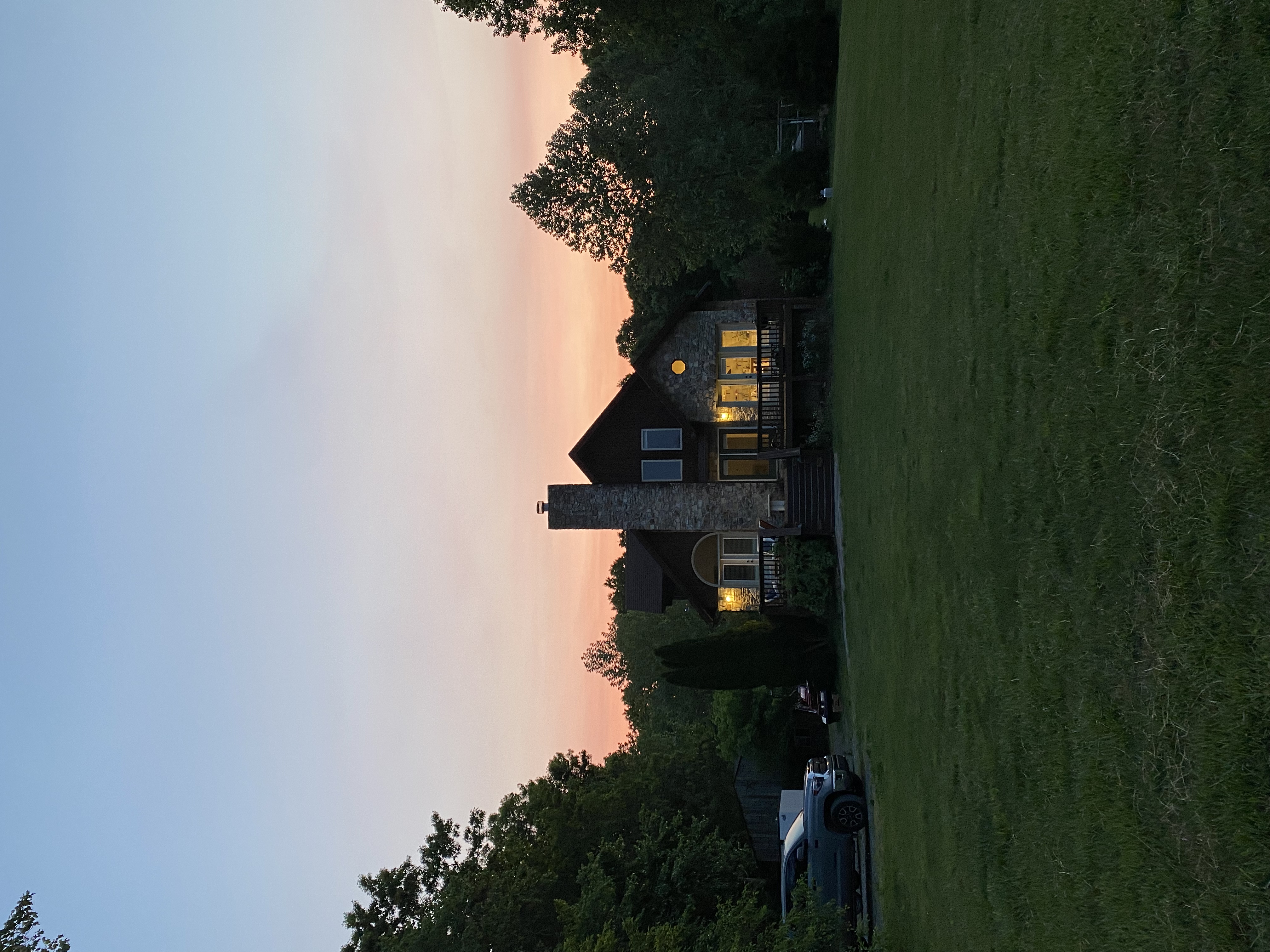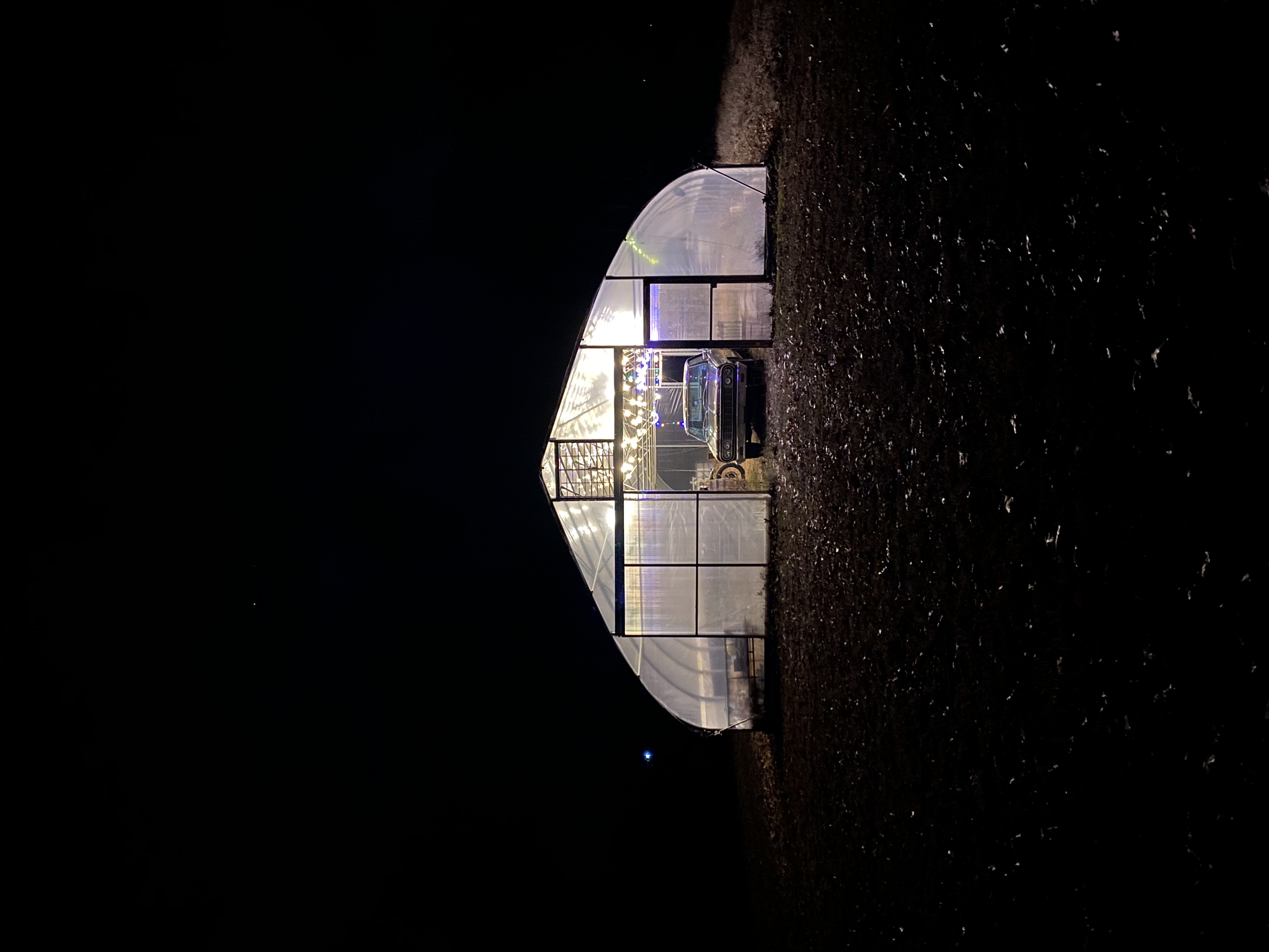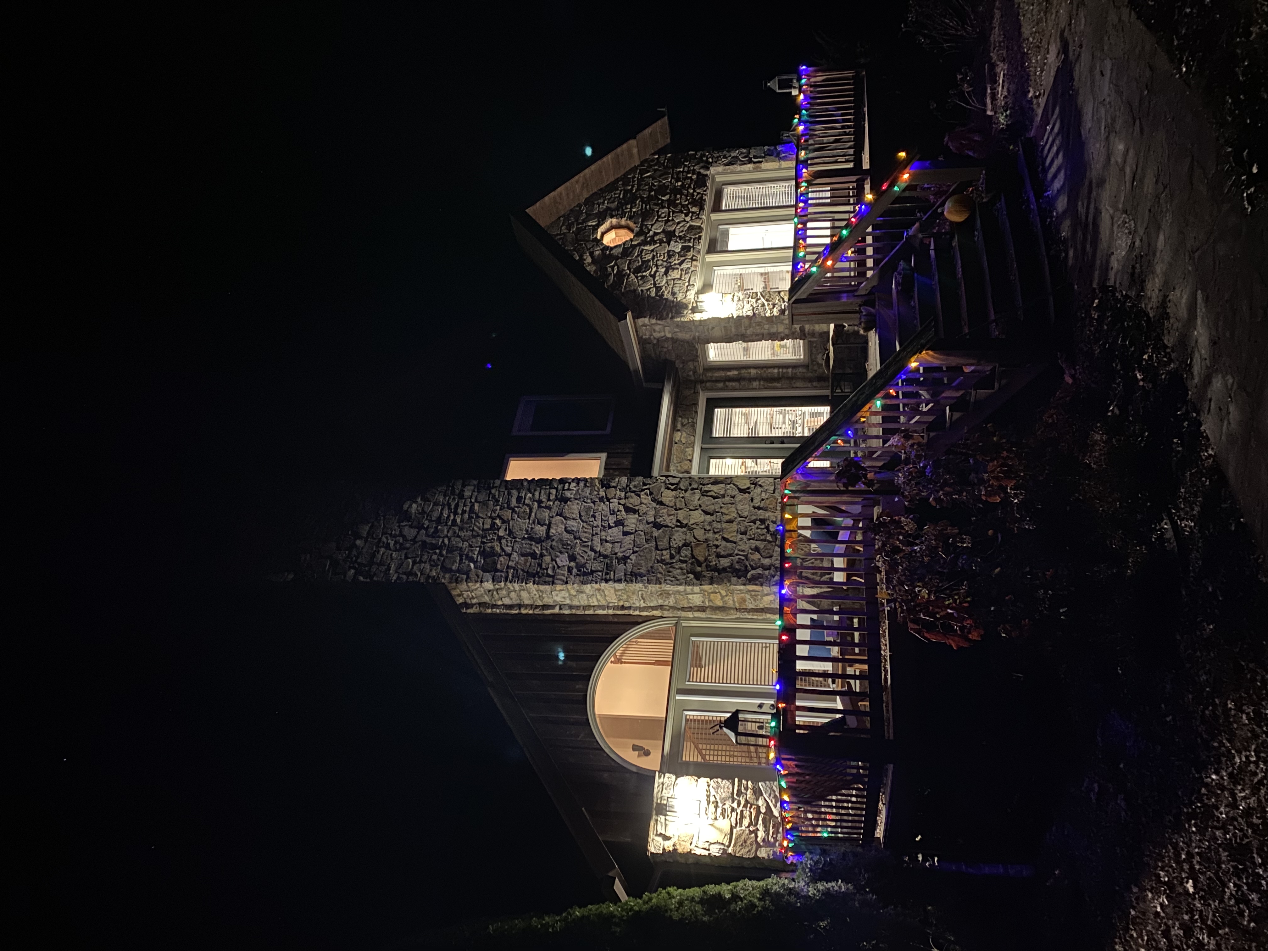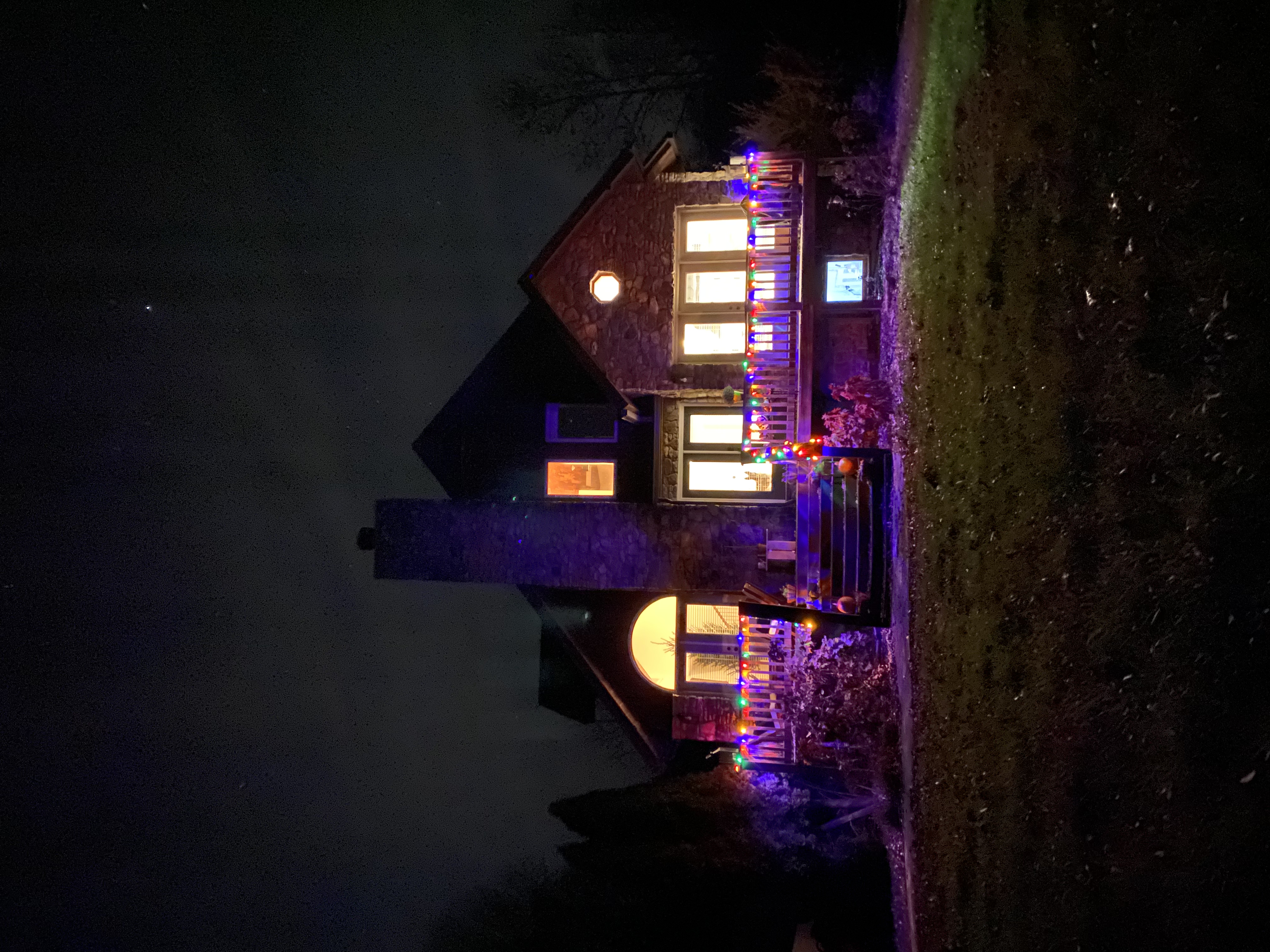 No street lights or light pollution outdoors. Plenty of natural light inside (large windows) and plenty of warm lighting.