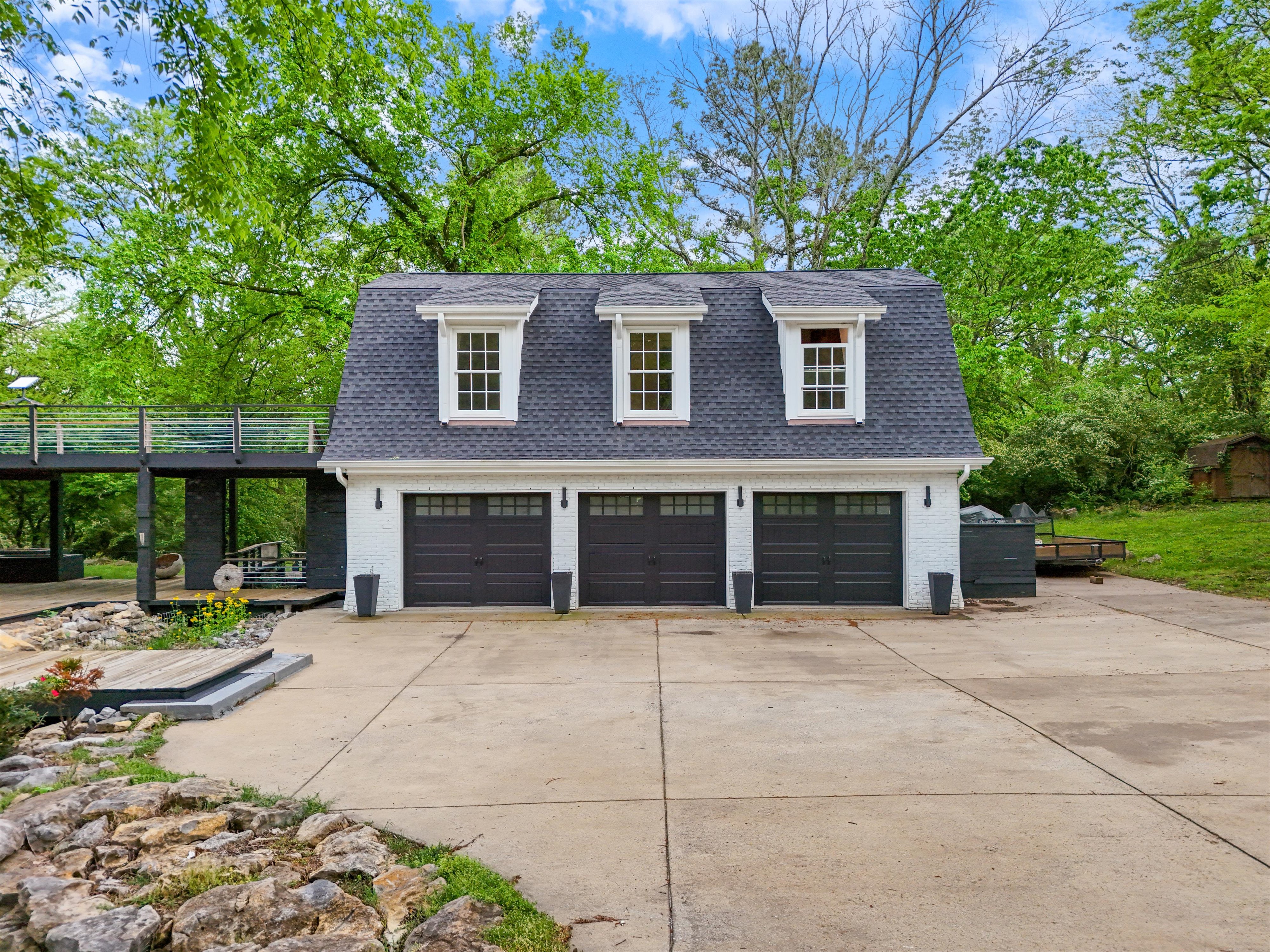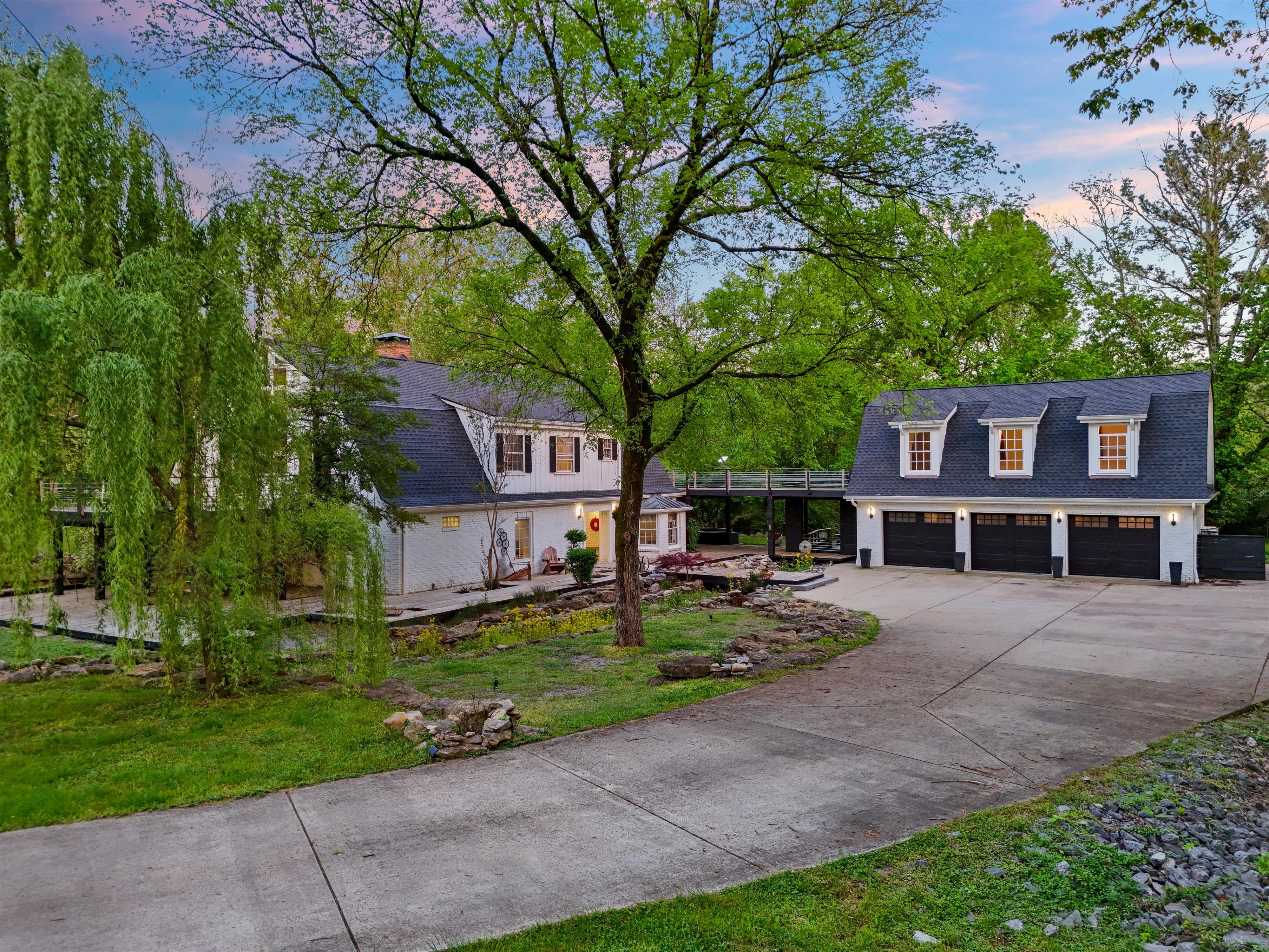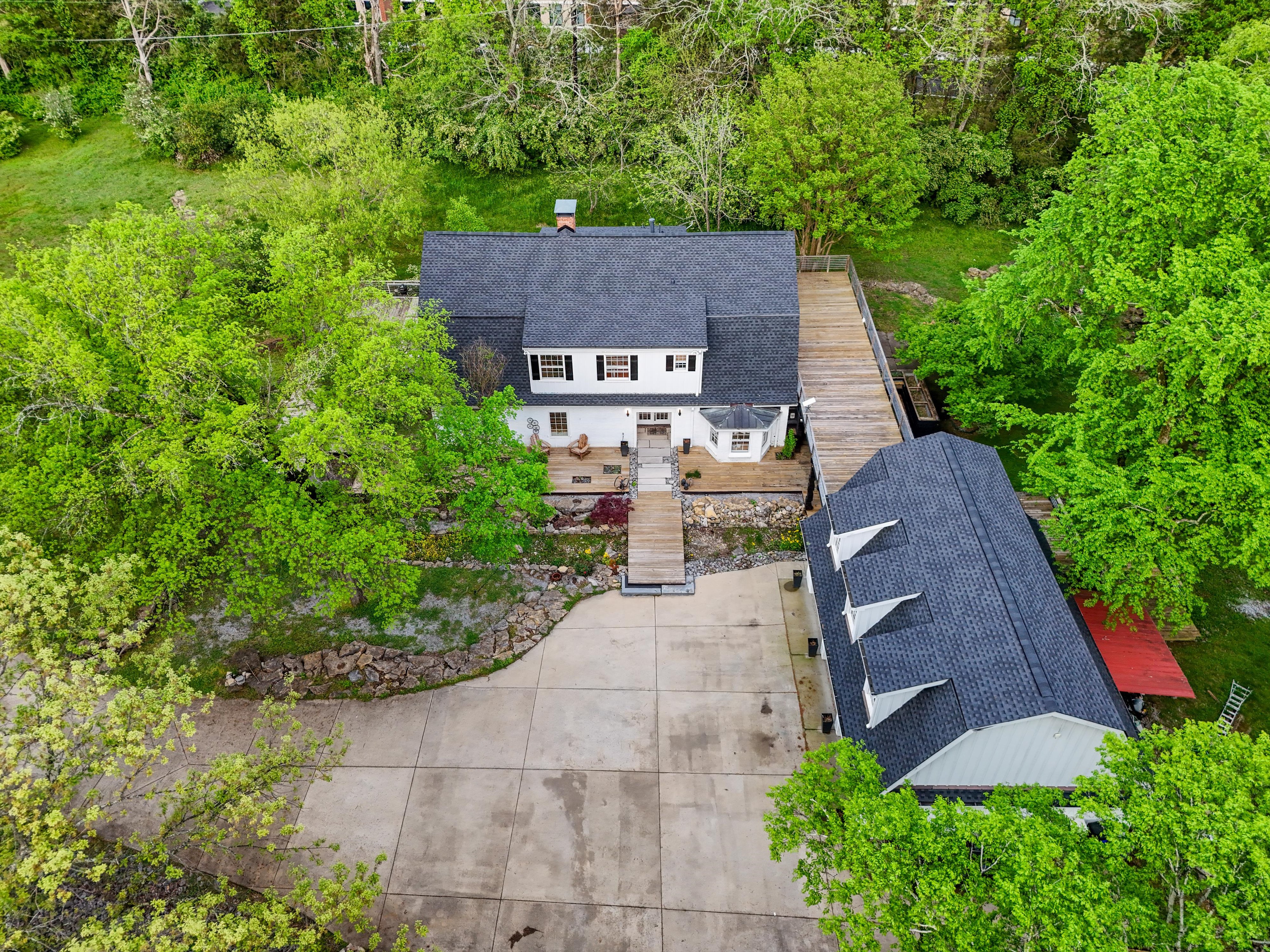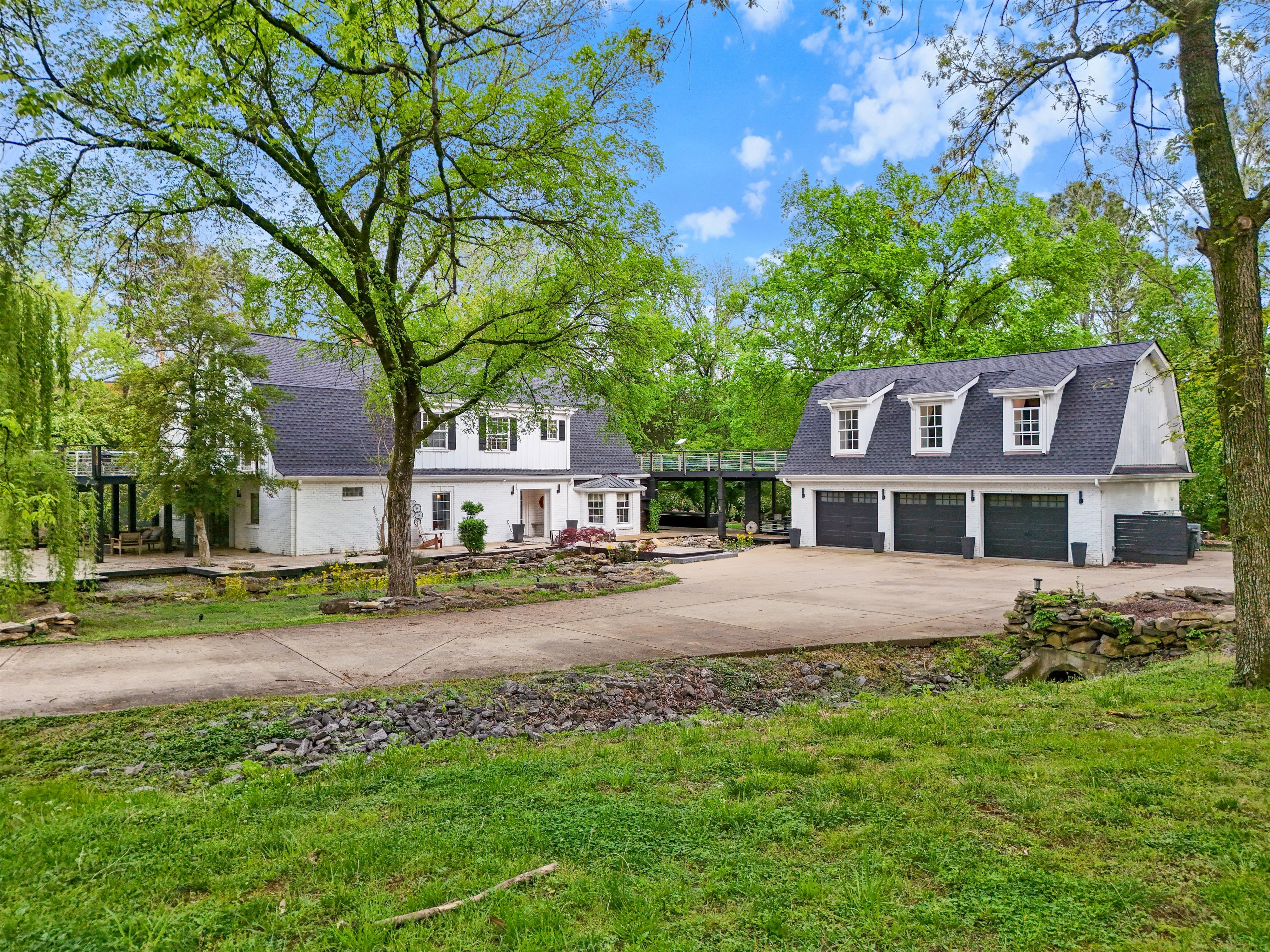 An almost 5,000 sq ft space across two buildings. Main house has massive master suite, updated bathrooms, and a 14ft cathedral vaulted great room with open fire place. Carriage house has almost 1000 sq ft open plan, in a hall style, setup as a recording studio presently. Oversized garage (approx. 1000 sq ft), is insulated and could be air conditioned and used as another creative space! Nestled in a hidden corner of forest hills, surrounded by trees and privacy on all sides.