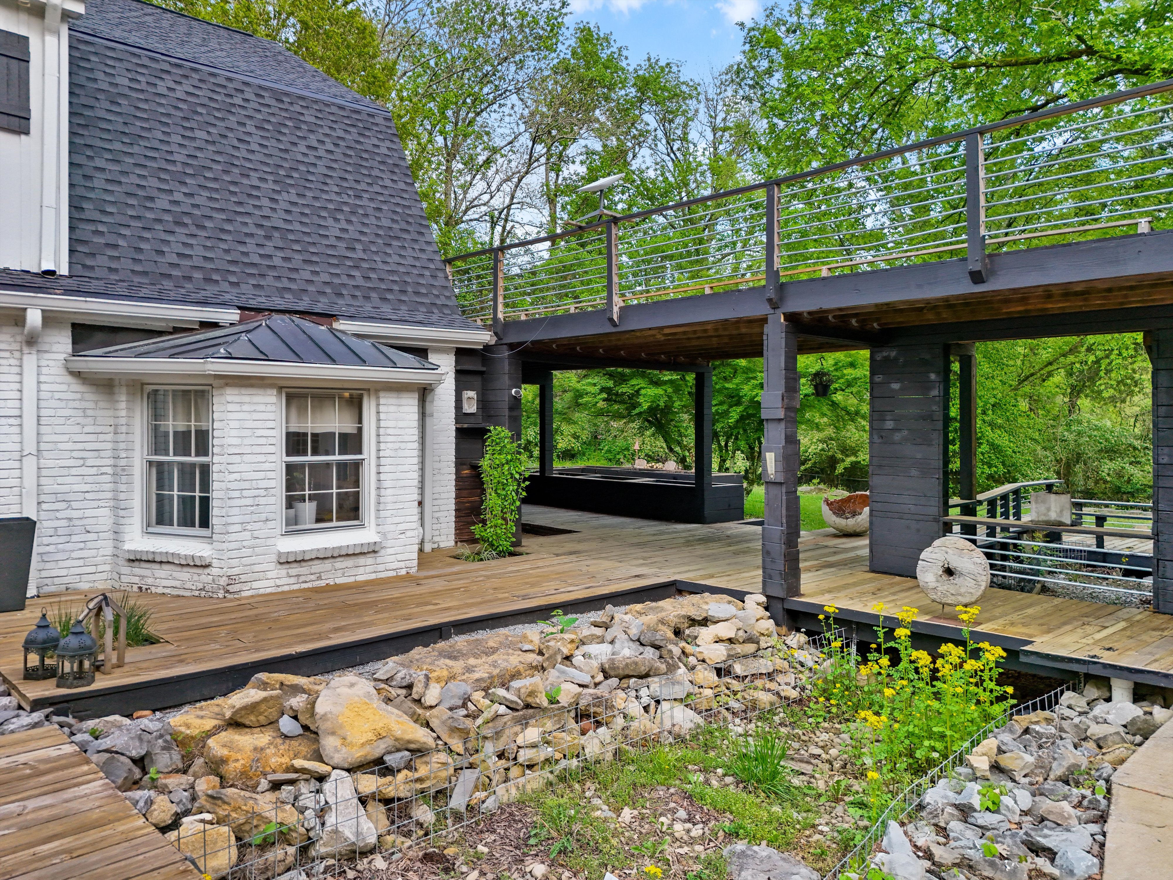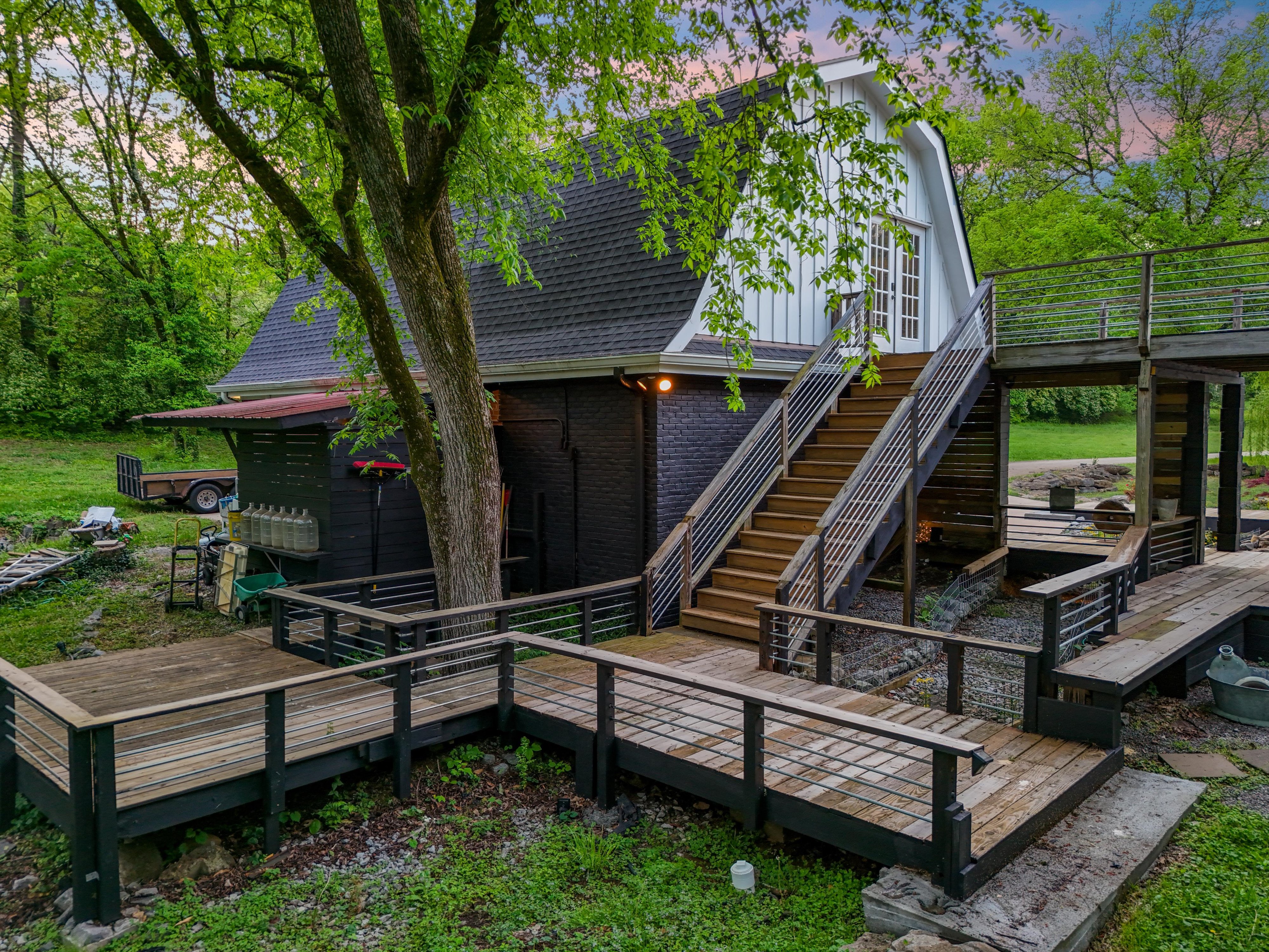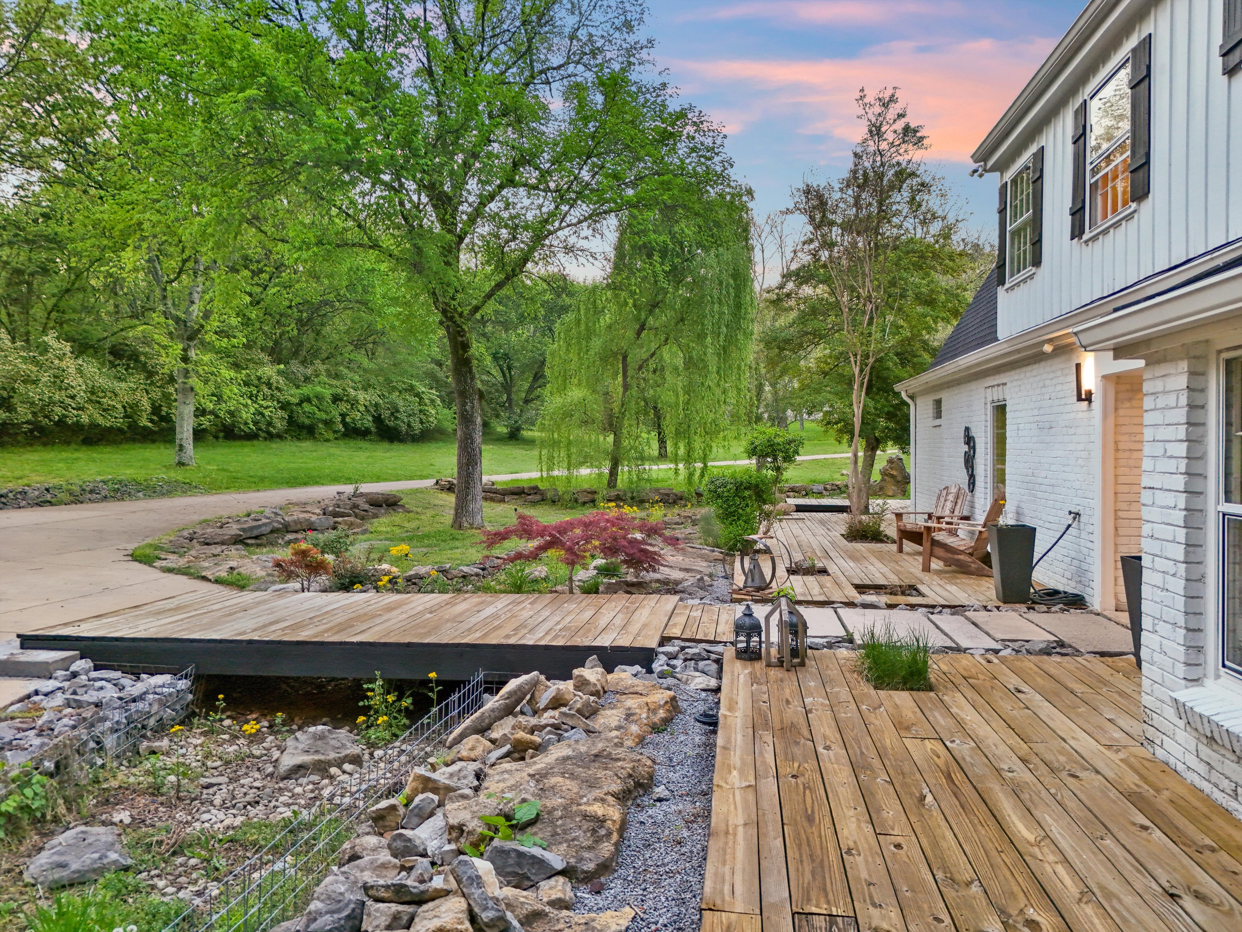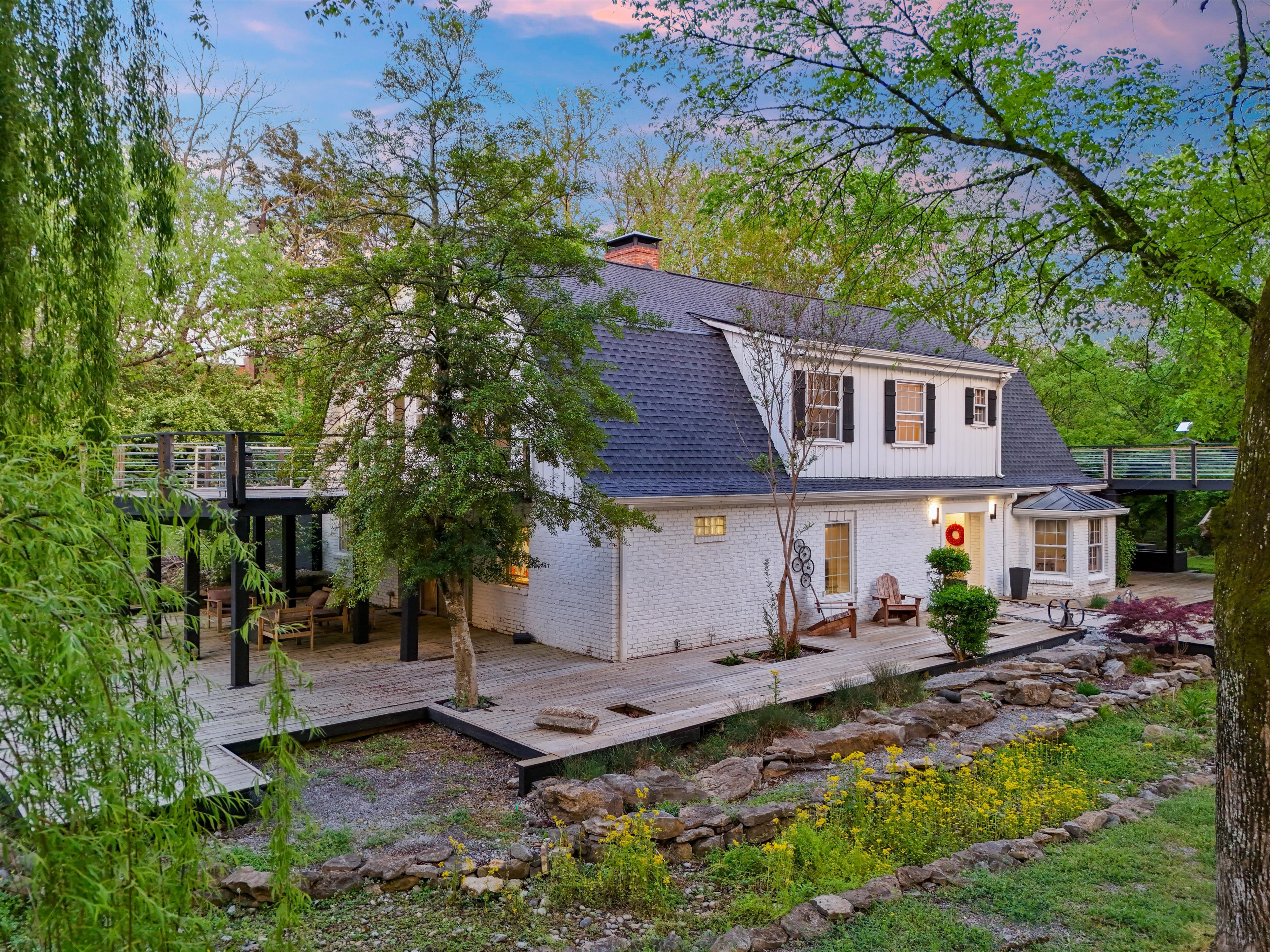 An almost 5,000 sq ft space across two buildings. Main house has massive master suite, updated bathrooms, and a 14ft cathedral vaulted great room with open fire place. Carriage house has almost 1000 sq ft open plan, in a hall style, setup as a recording studio presently. Oversized garage (approx. 1000 sq ft), is insulated and could be air conditioned and used as another creative space! Nestled in a hidden corner of forest hills, surrounded by trees and privacy on all sides.