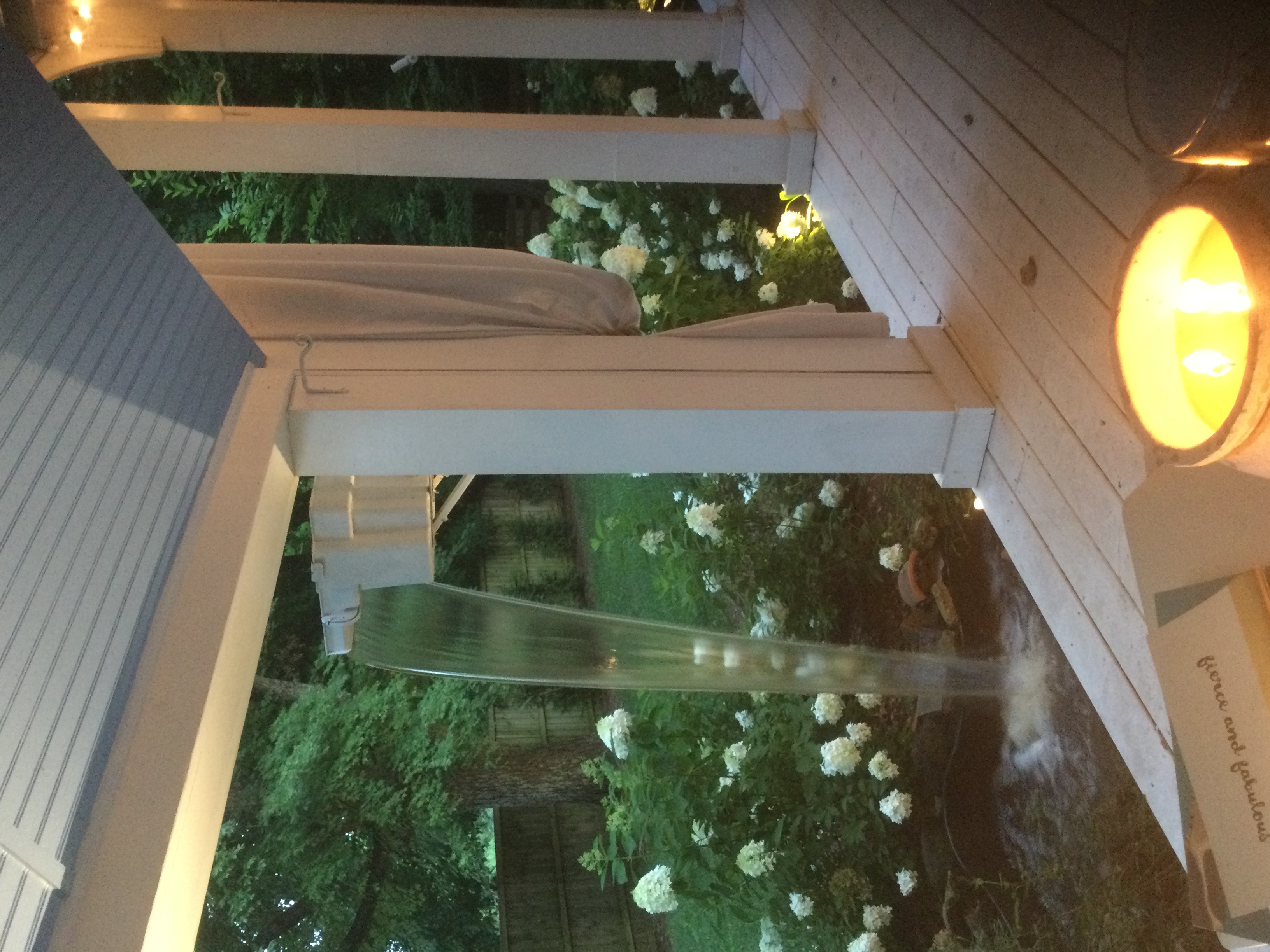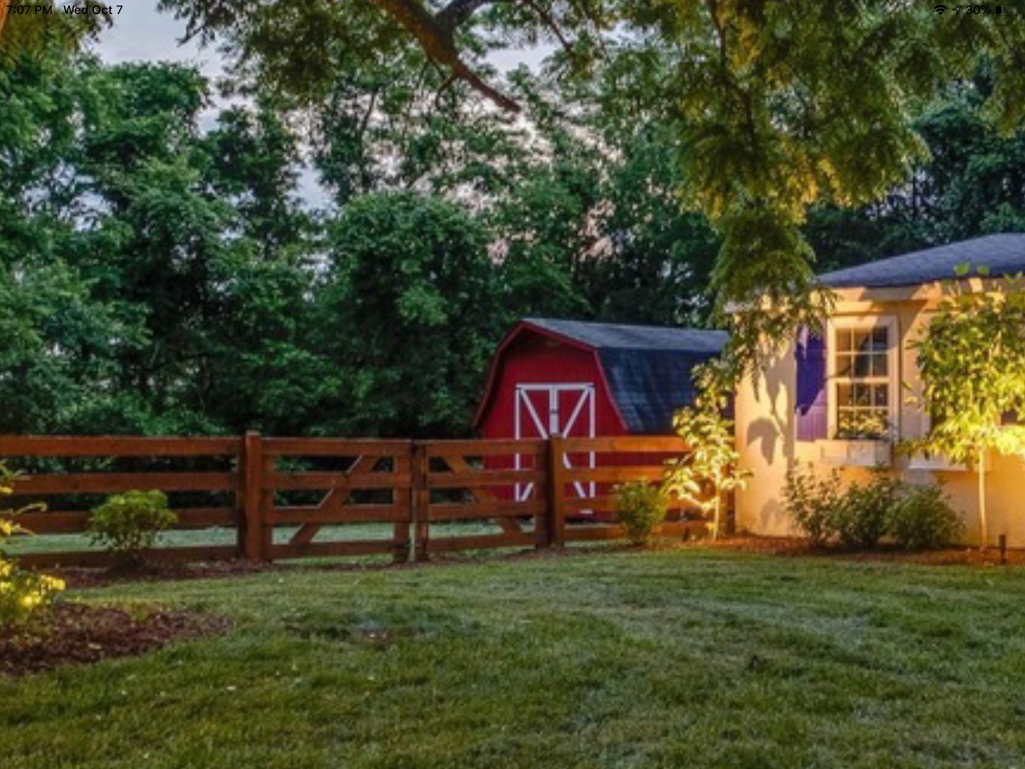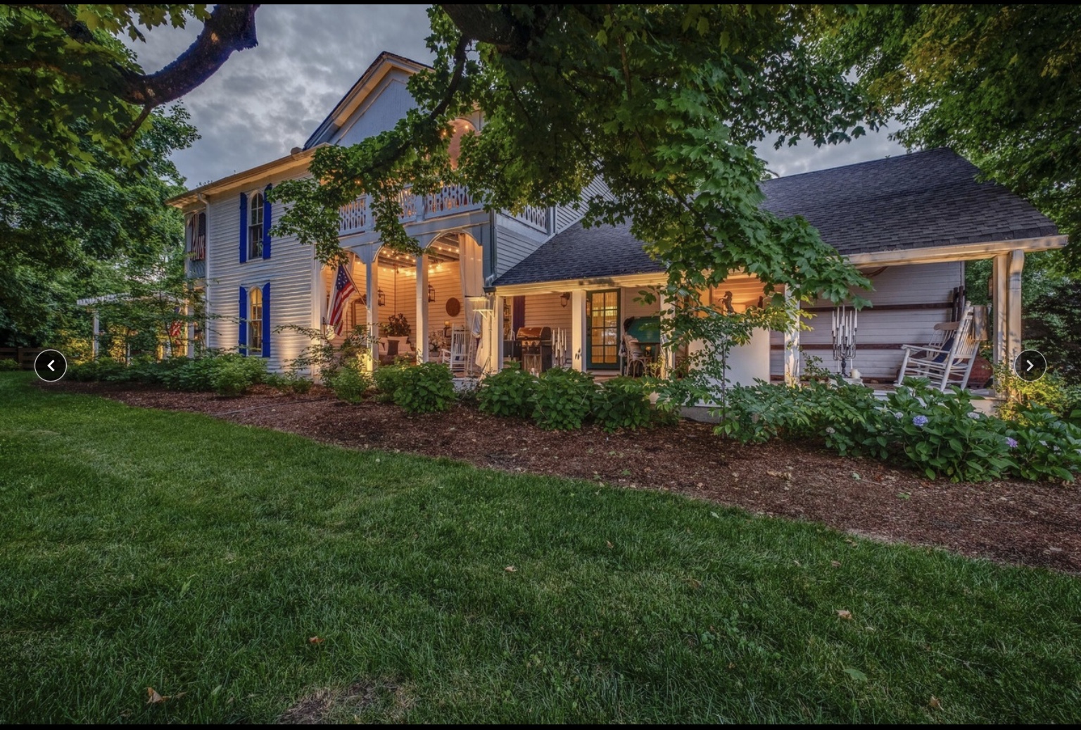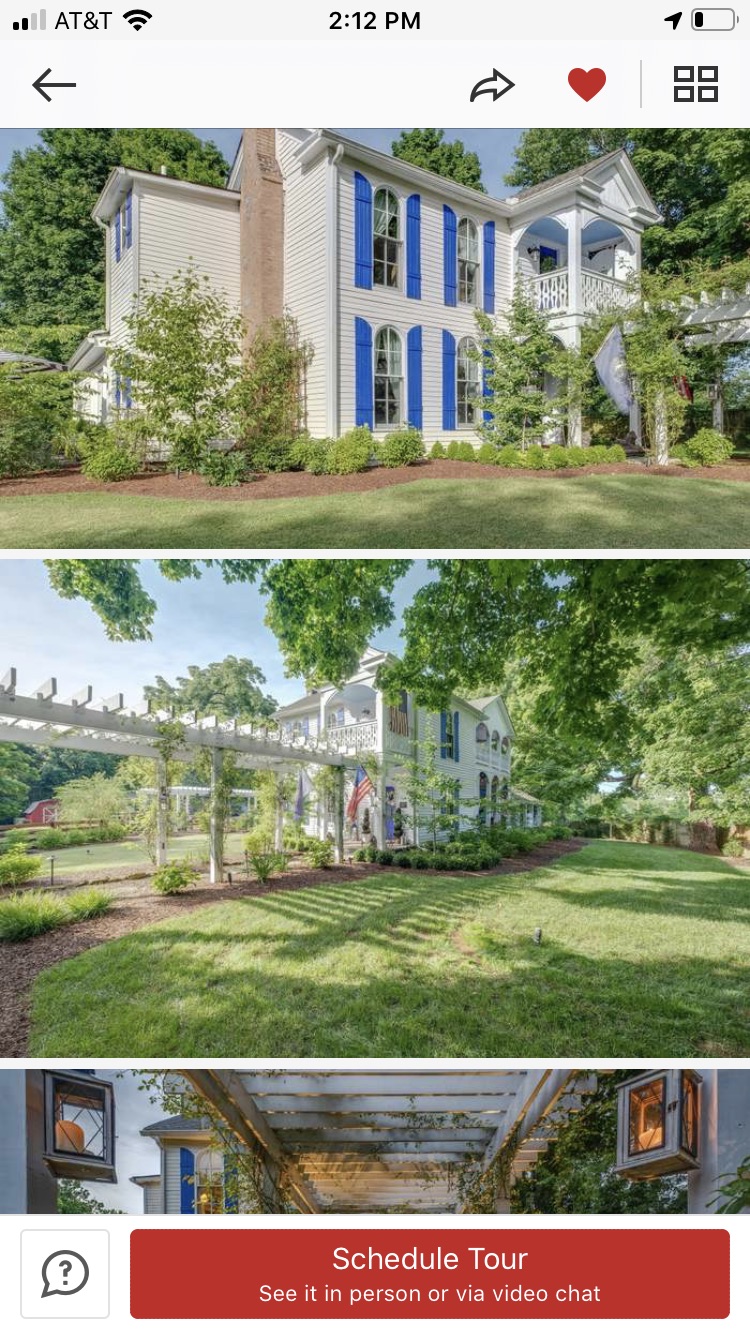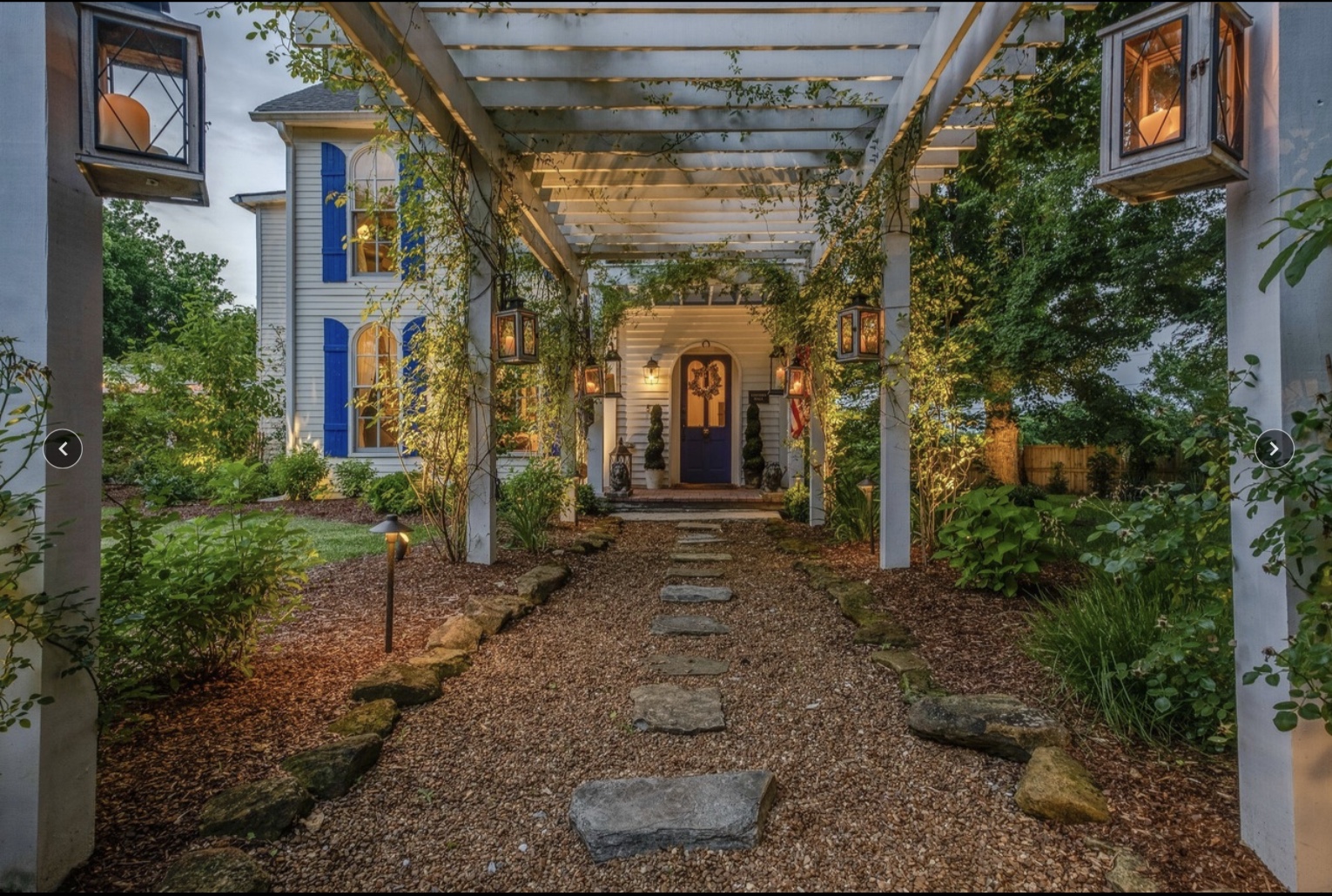 145 year old farmhouse renovated on HGTV’s Nashville Flipped show. Three porches, three pergolas and outdoor lighting. This space is magical with hydrangeas, roses, peonies and trees everywhere. A fire out outdoors with seating around.