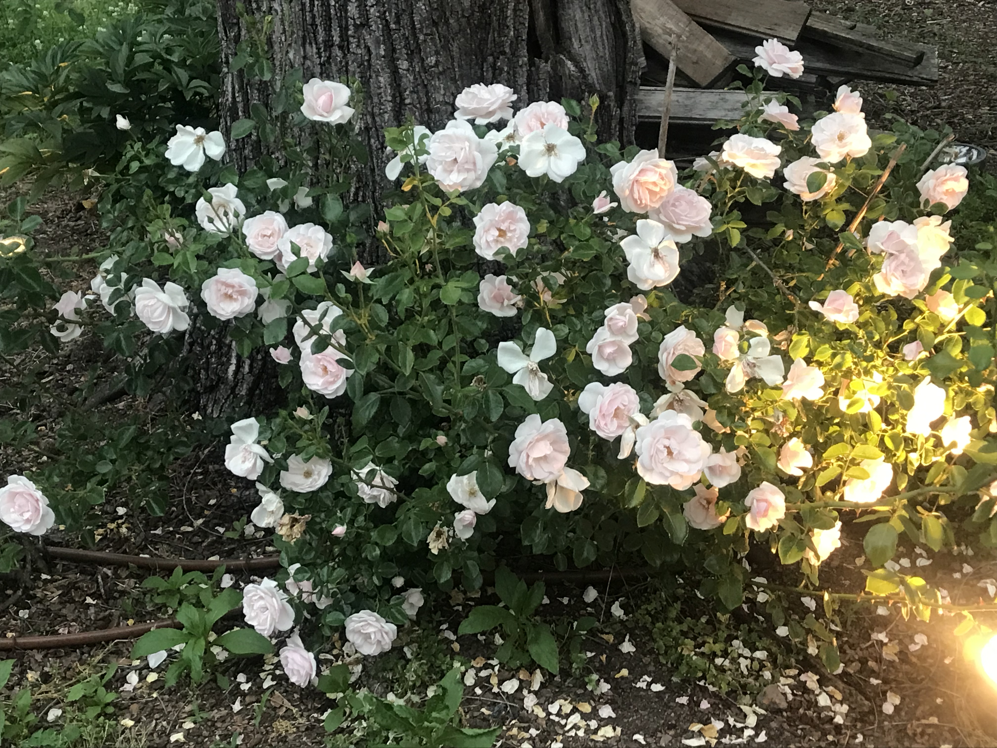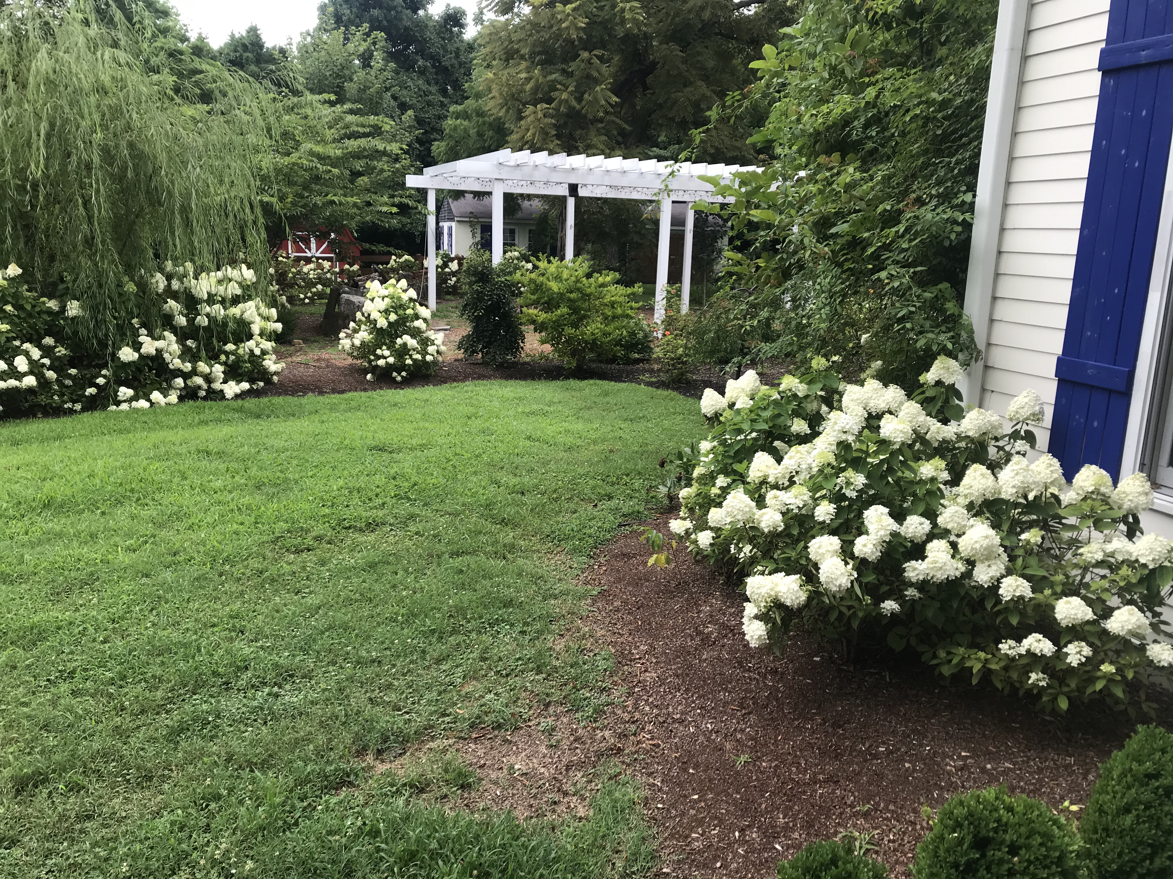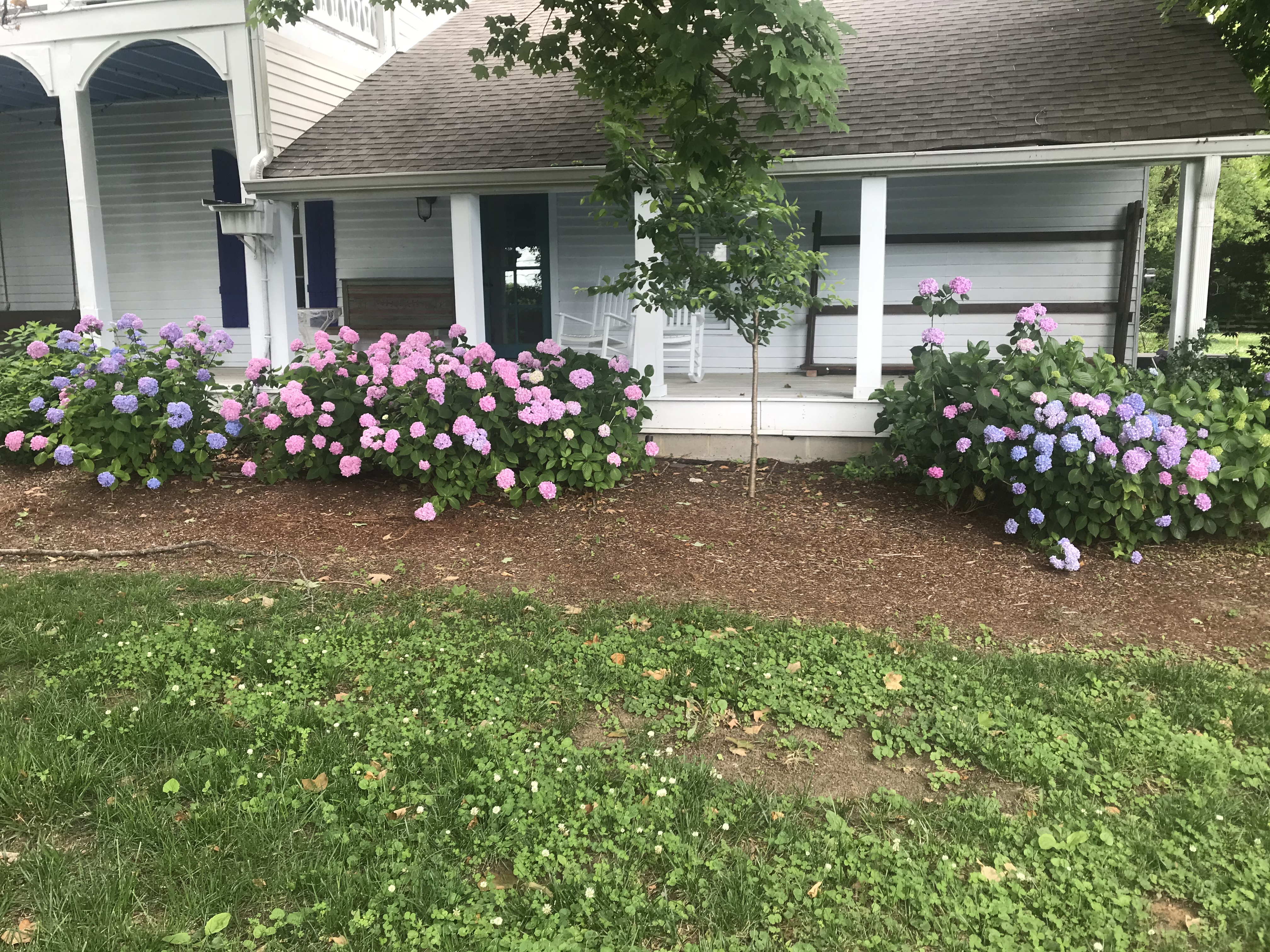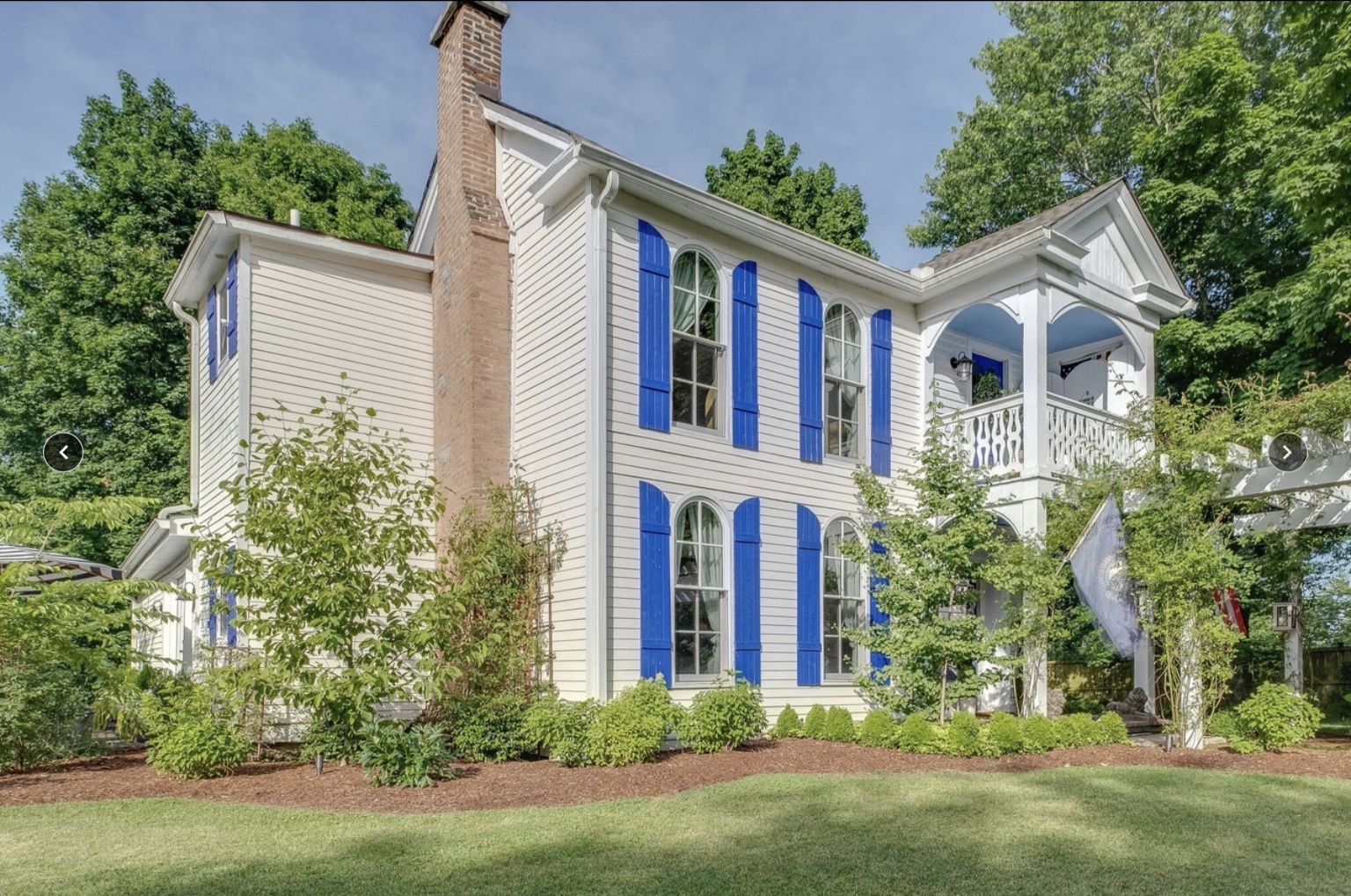 145 year old farmhouse renovated on HGTV’s Nashville Flipped show. Three porches, three pergolas and outdoor lighting. This space is magical with hydrangeas, roses, peonies and trees everywhere. A fire out outdoors with seating around.