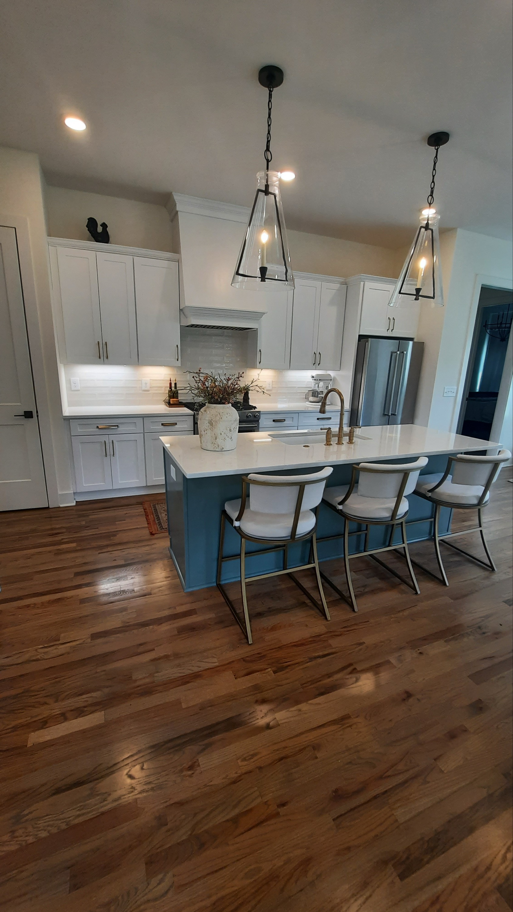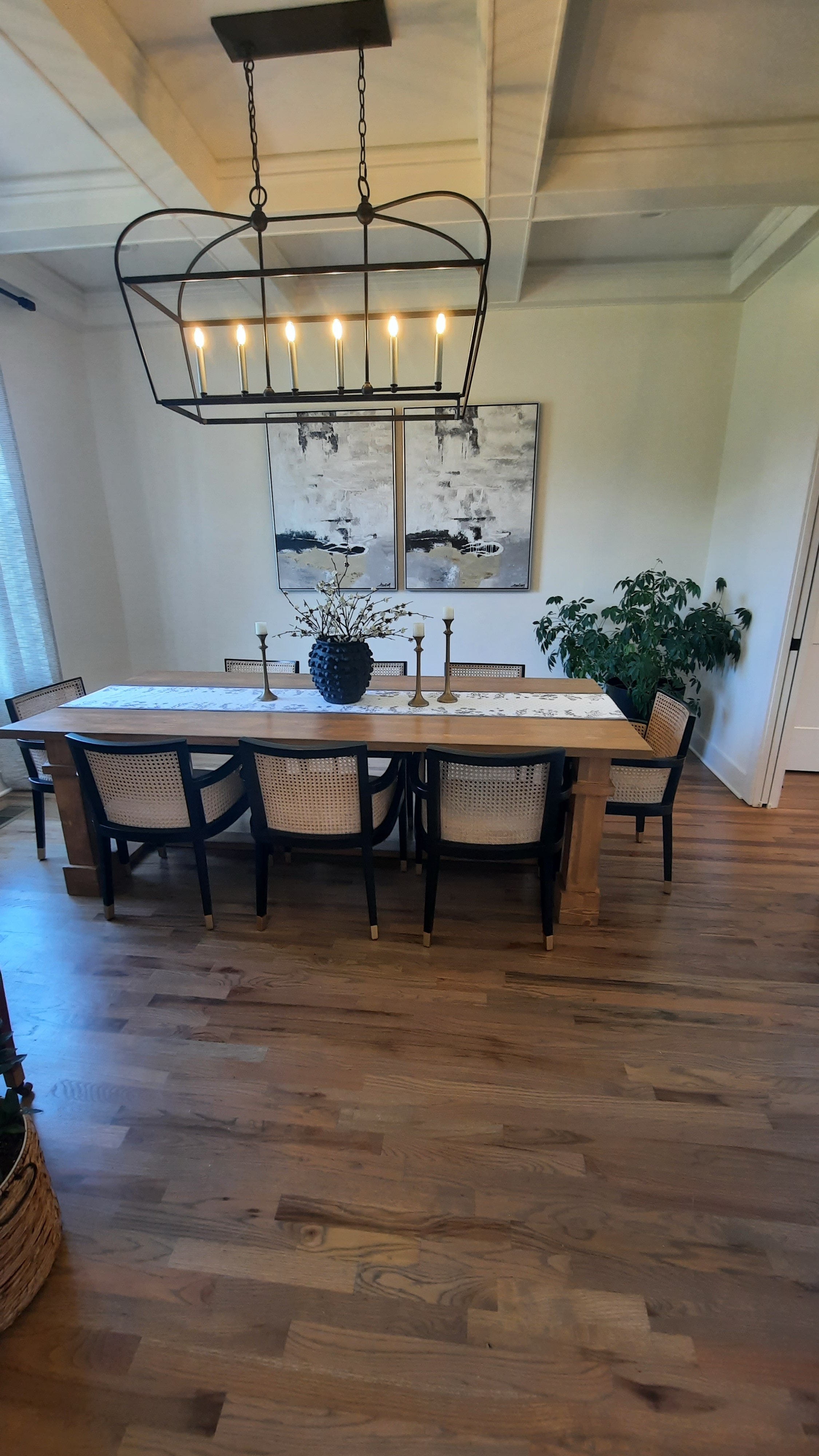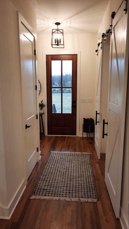 Our home is settled in the country on a little over an acre of land with country views with an outdoor fire pit area. When you arrive inside it reflects inviting comfortable spaces. Starting in our dining room with barn doors as an entry along with an 8ft handmade table with modern art on the walls and a family piano. There is an open kitchen and family room with accents of wrought iron and a sawn wood beam over the fireplace. Our space is warm with natural light shining in abundance.