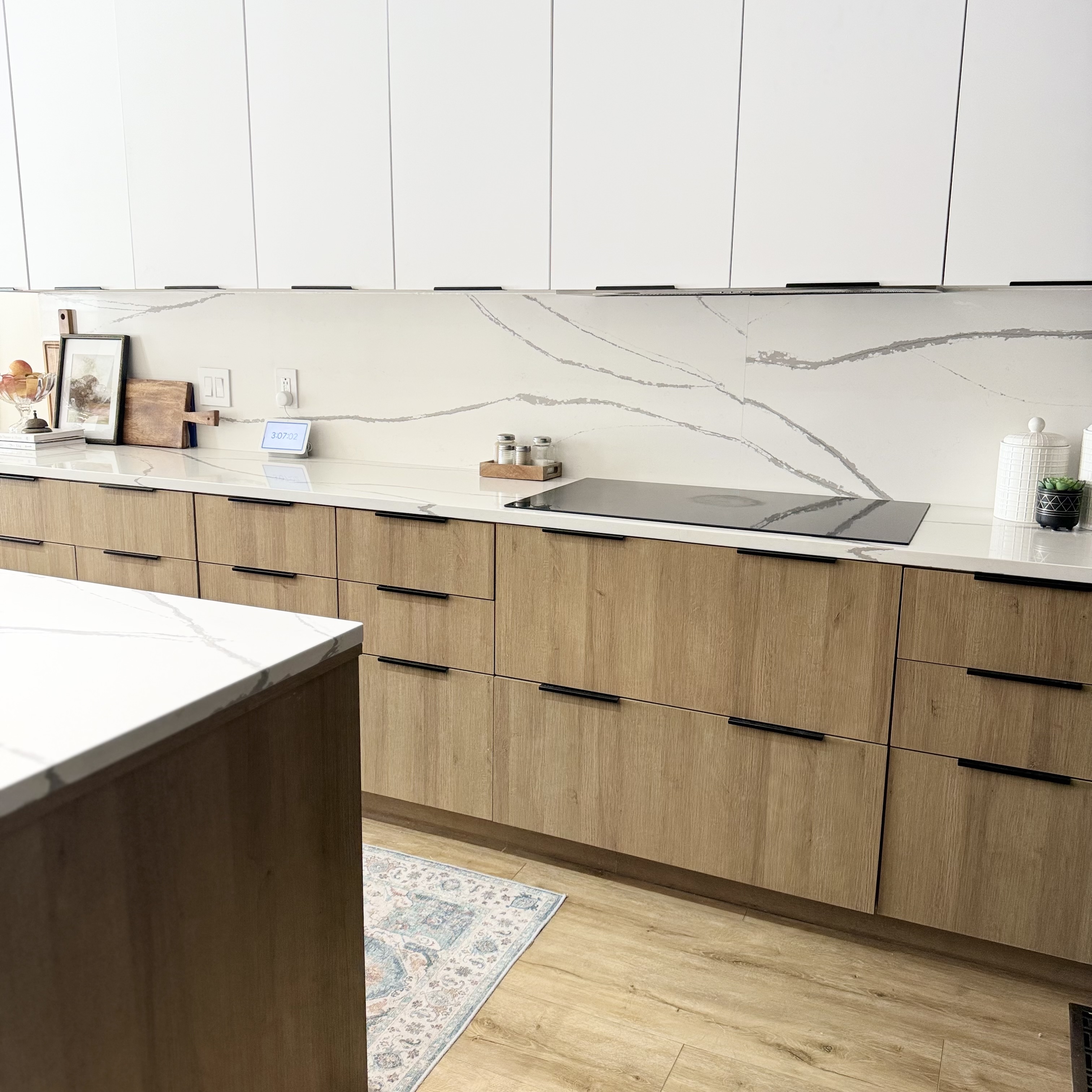 Modern and stylish with warm wood floors and multiple textures, this partial home features contemporary decor and neutral colors making it a great backdrop for small photo shoots and video shoots of all kinds.