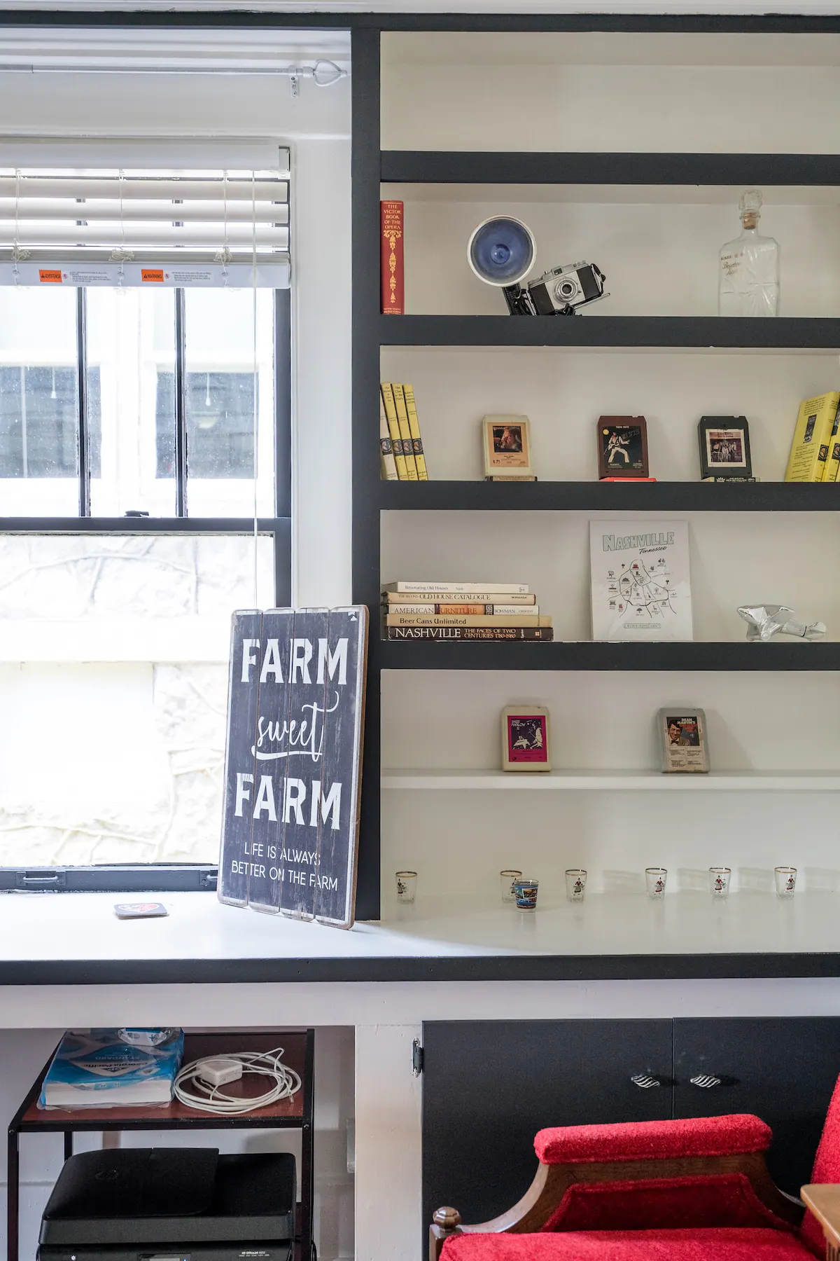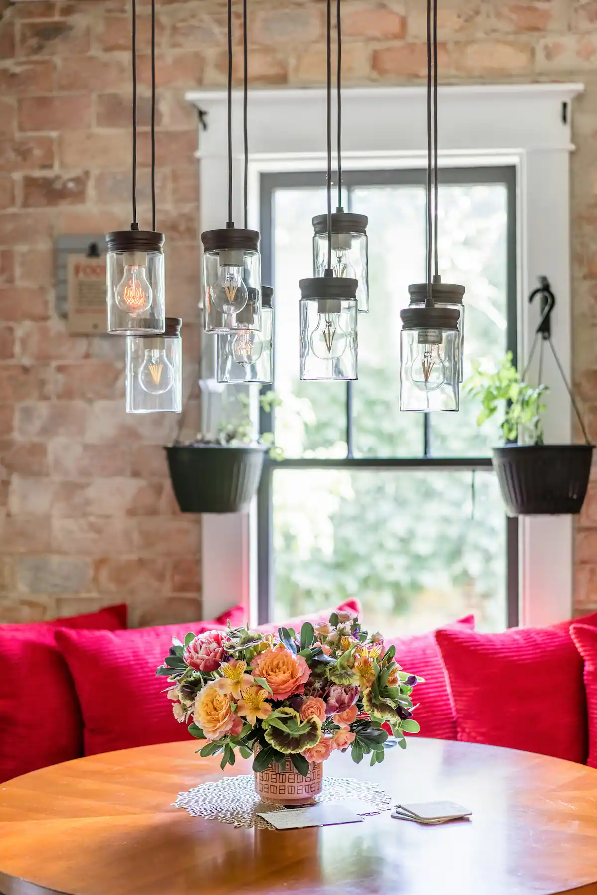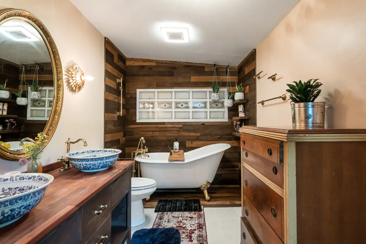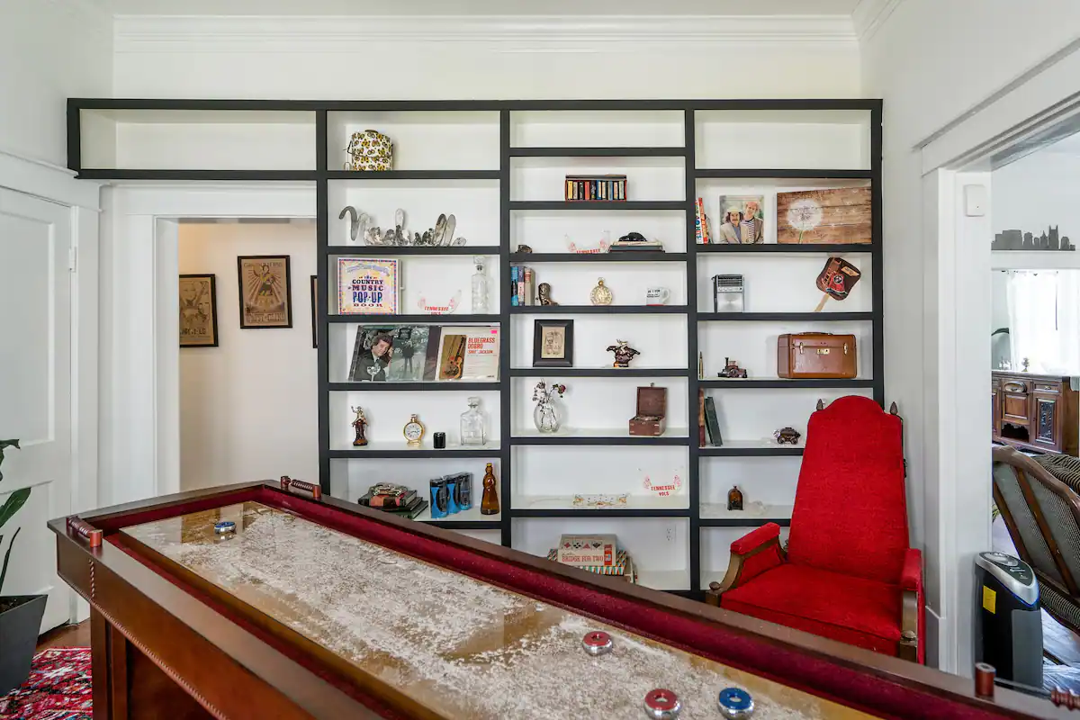 Exposed brick walls, black and white tiled kitchen floors, expressive wall paper, local and vintage art and a lush backyard complete with fruit trees, vegetable gardens and a fire-pit and well appointed deck create a perfect Southern Living atmosphere.