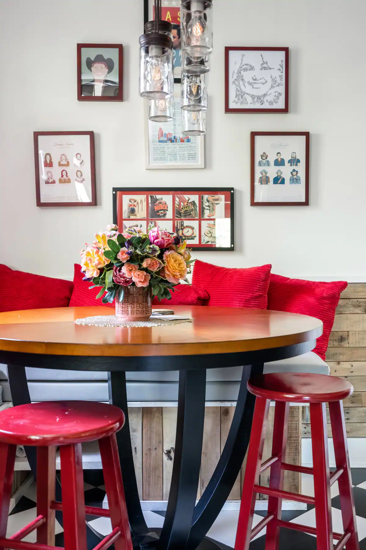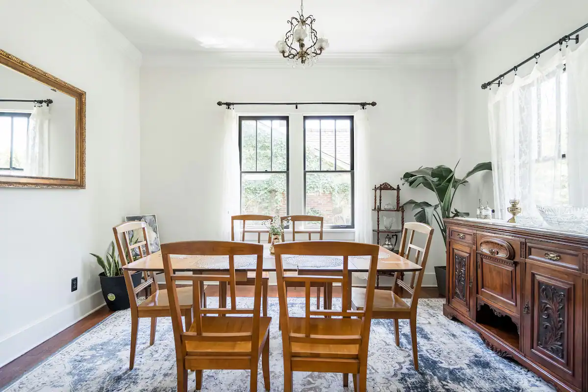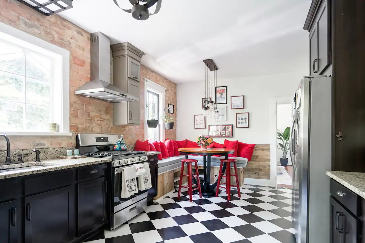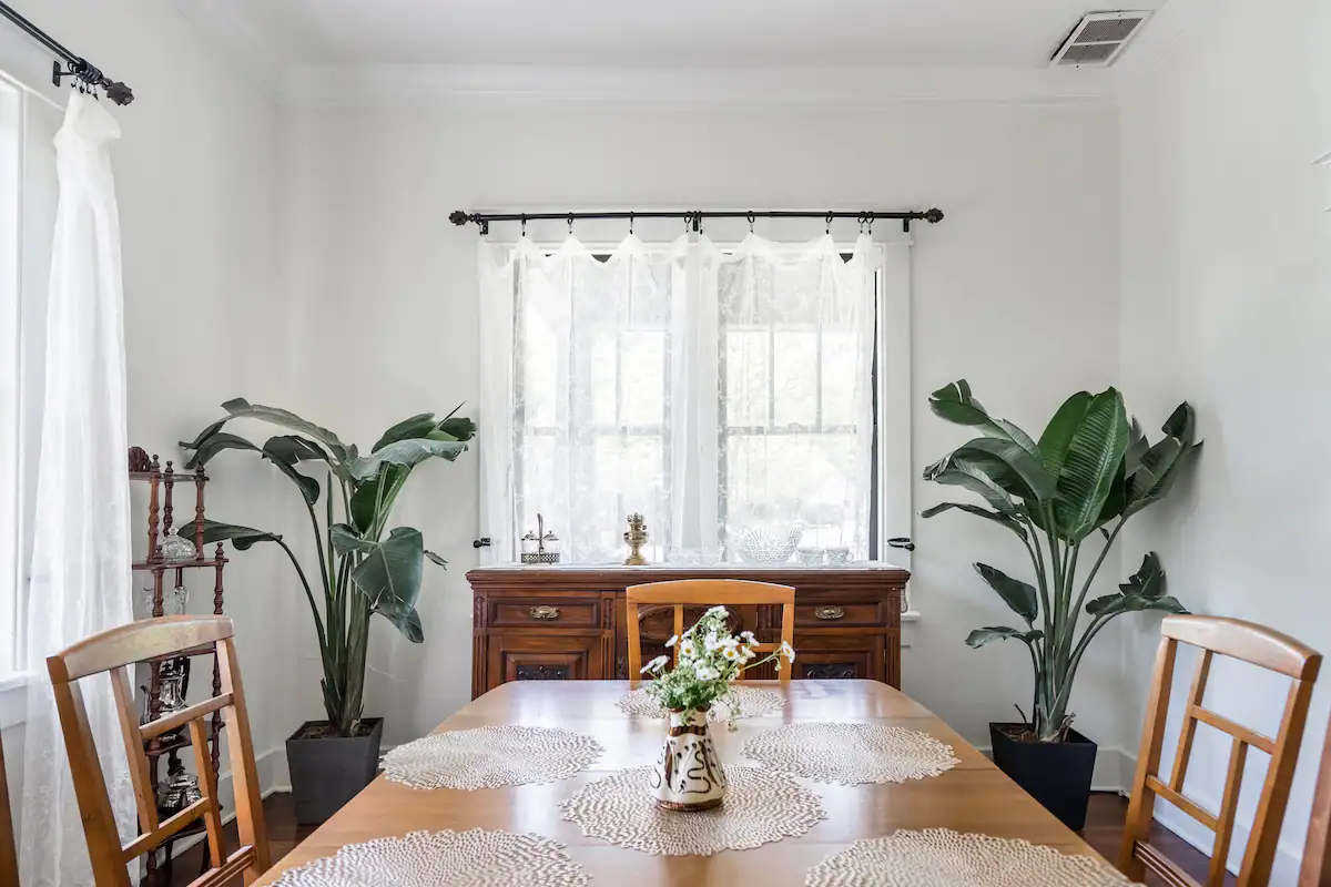 This bright and airy vintage home with gorgeous natural light, an eat-in kitchen with checkerboard floors, multiple spacious bedrooms and great outdoor space is camera-ready for photo shoots and video shoots alike!