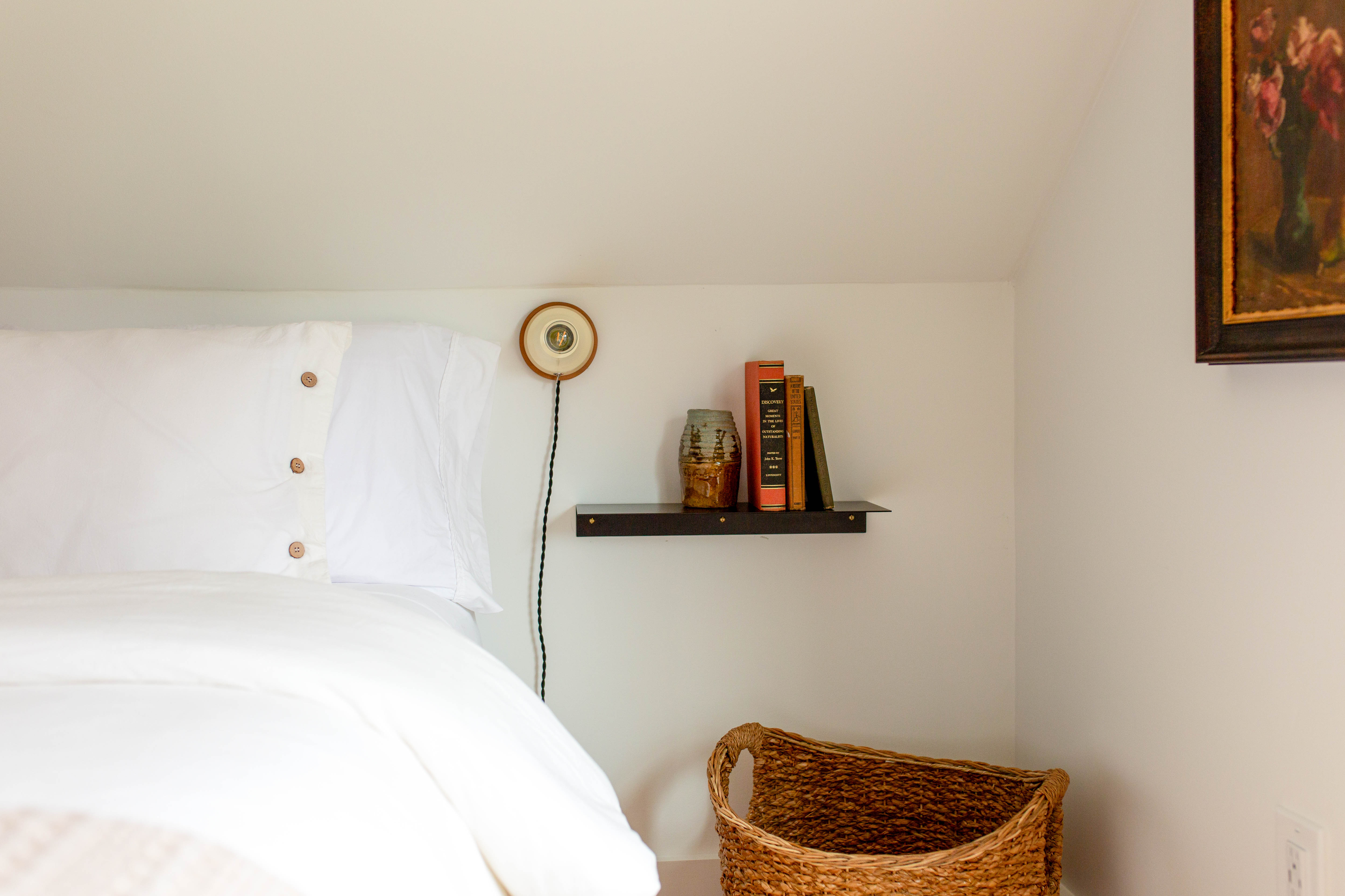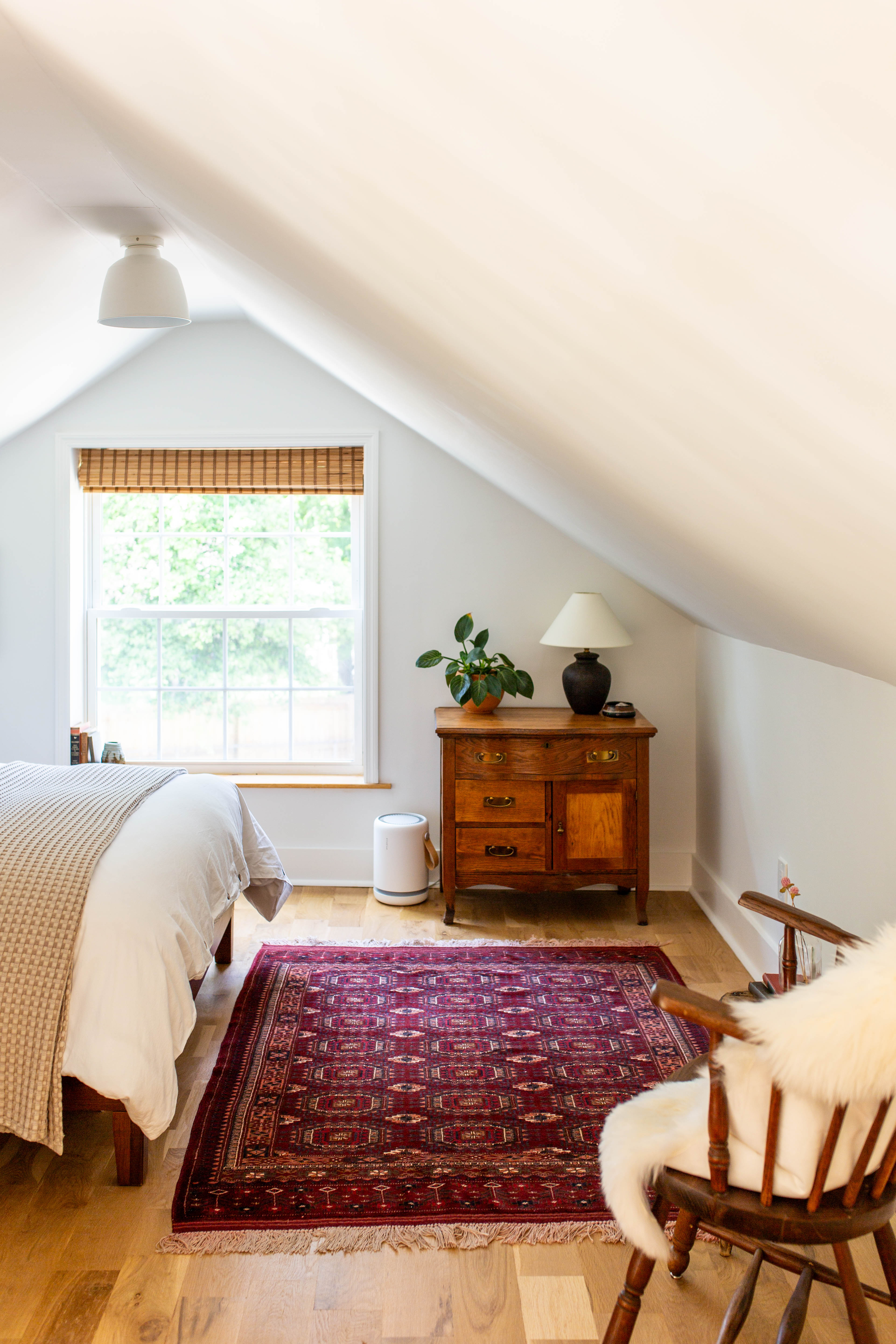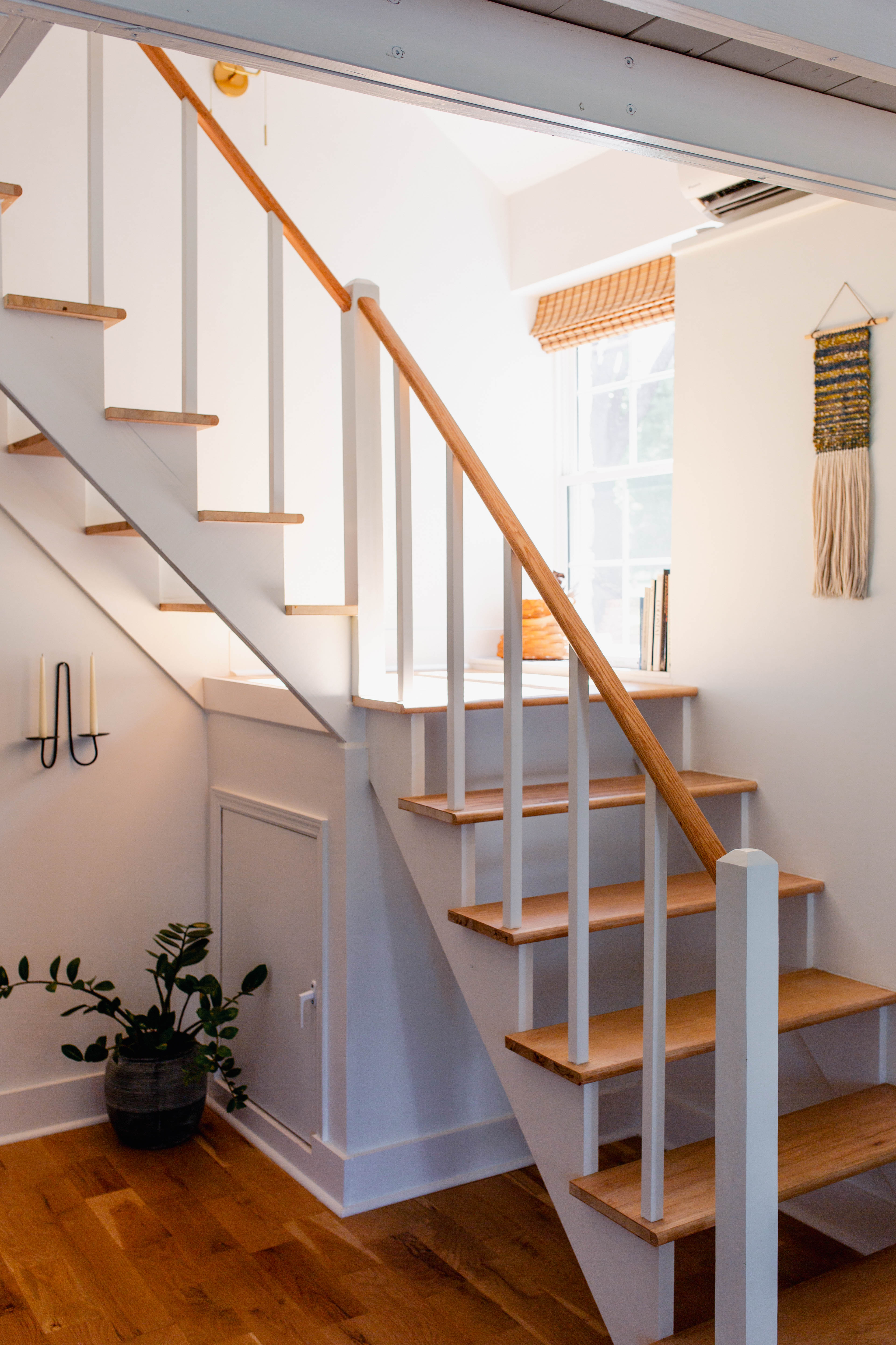 All windows are fitted with rattan blinds or linen curtains. The main windows face the North and the stairwell window faces West creating a beautiful vignette during golden hour.