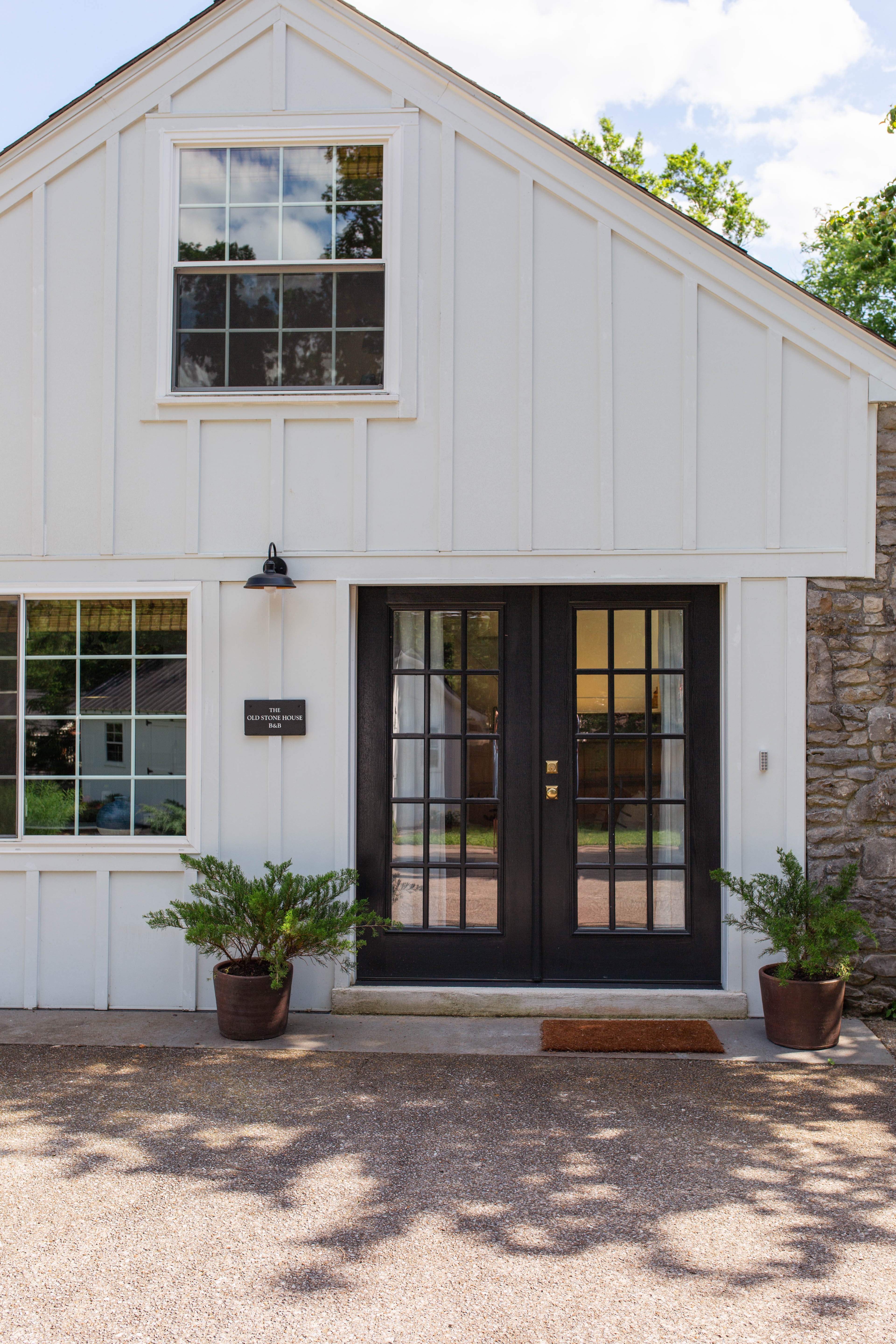 Easy access for unloading equipment, etc. right in front of the Guest Suite. Parking space can accommodate up to 4 vehicles side-by-side if need be. Ample street parking is available as well in front of the home. The house is situated on a lot that is just shy of an acre.