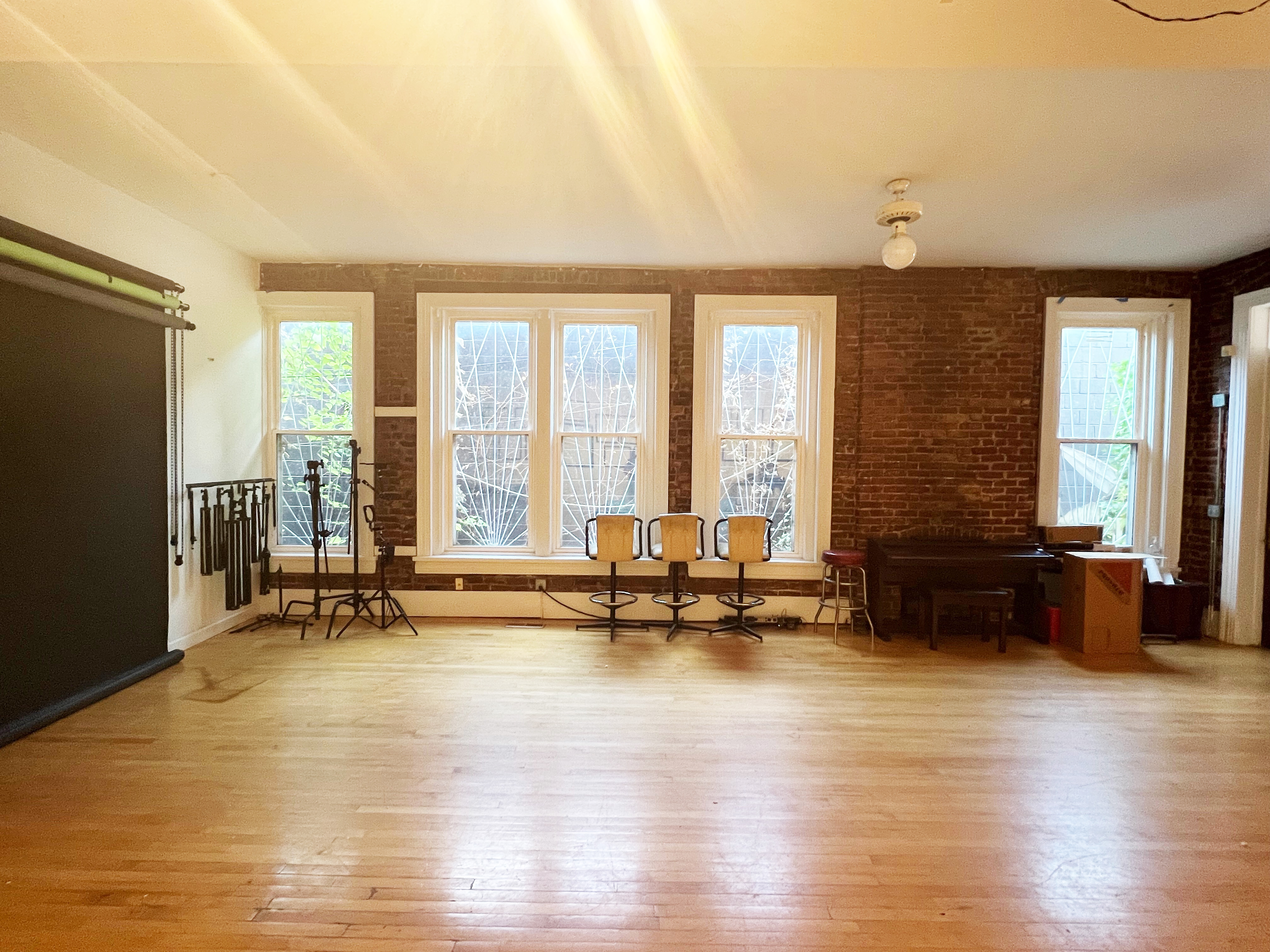 This versatile photography studio in a great location boasts high ceilings, natural light and exposed brick making it an excellent canvas for photo shoots of all kinds!