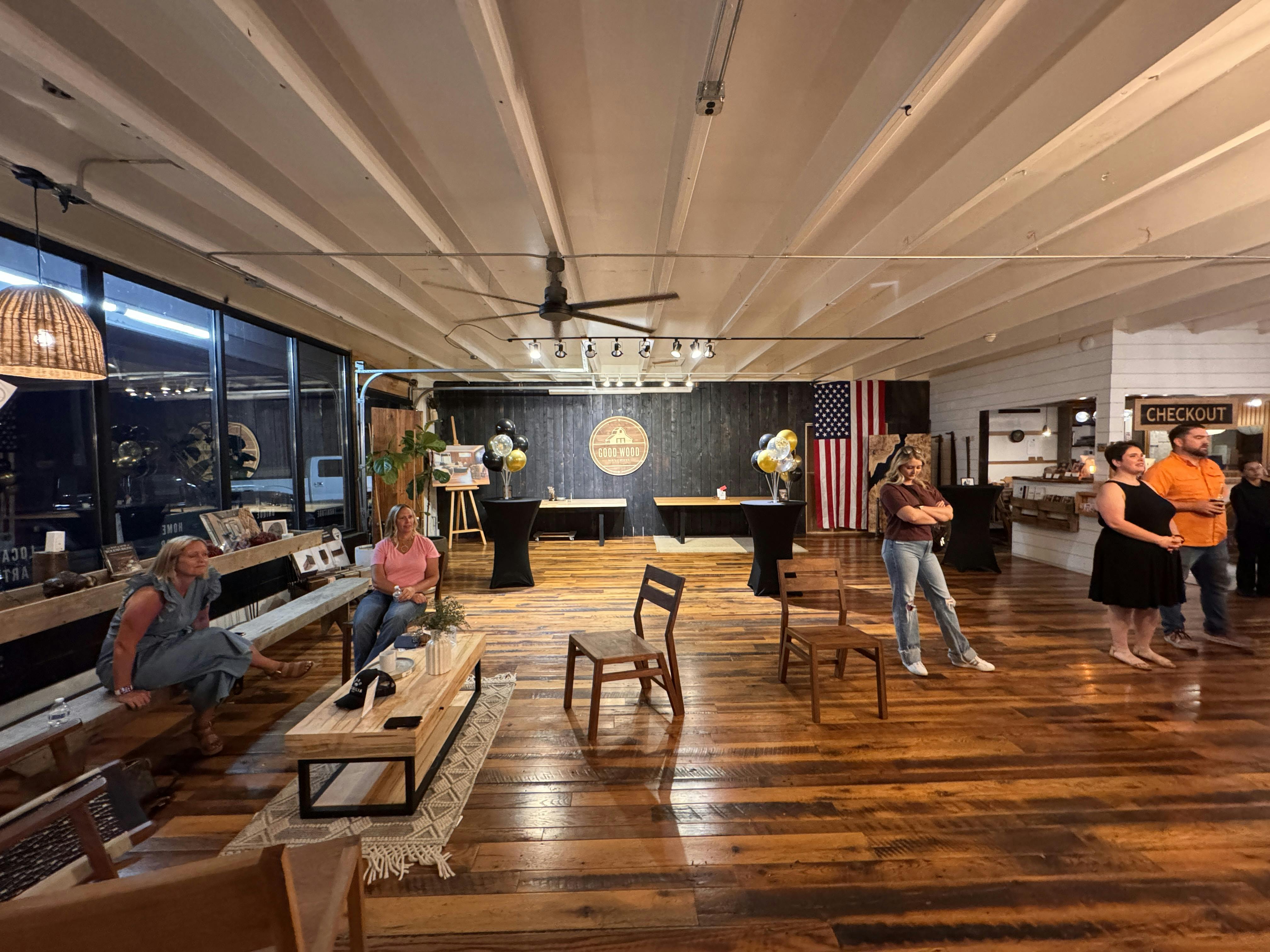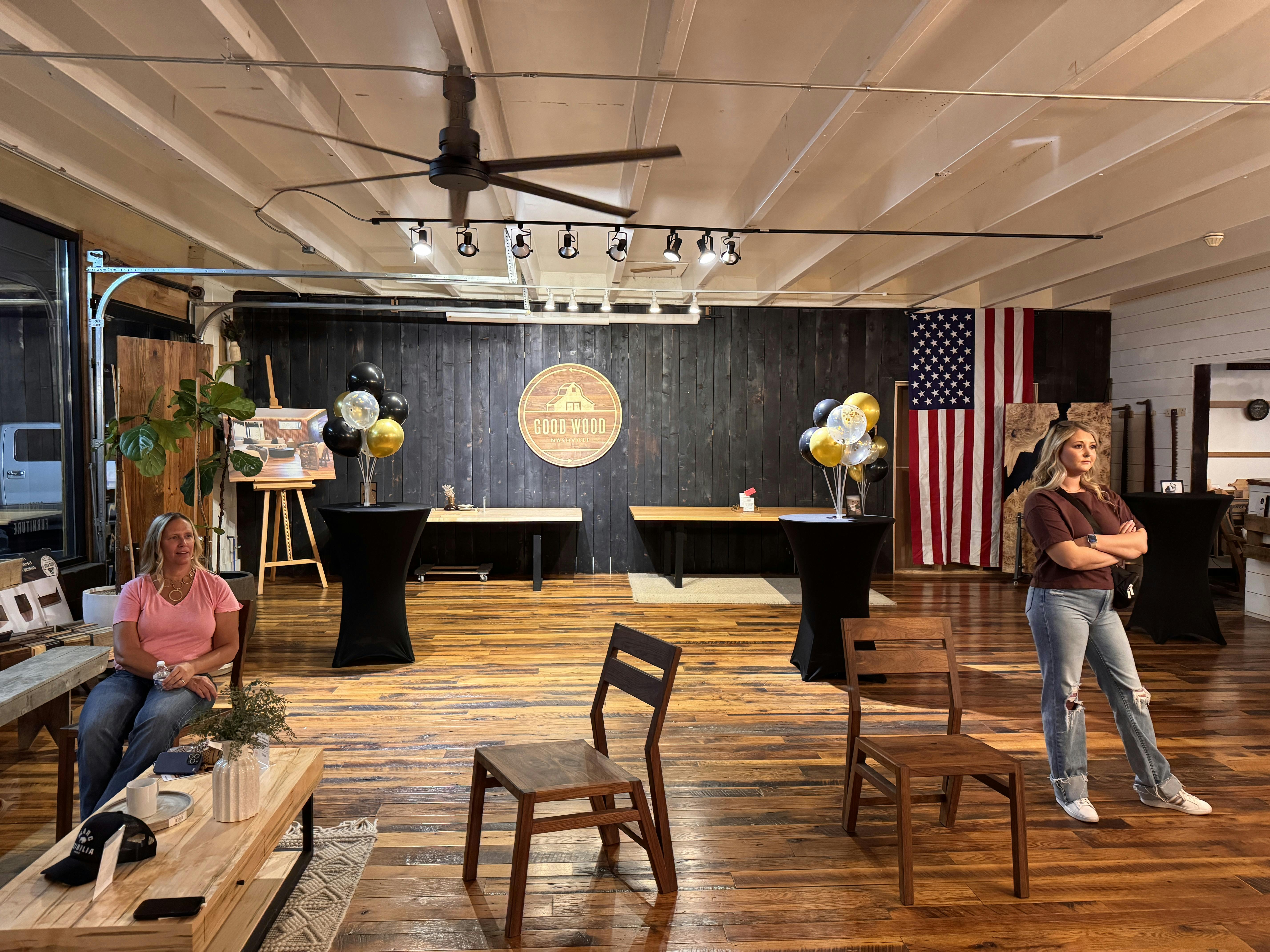 Come throw your party in our one of a kind showroom. We are a custom woodworking and reclaimed lumber company, so our vibe is one of a kind, super warm and inviting, and stunning. Available after 5 most days, and available all day Sunday.