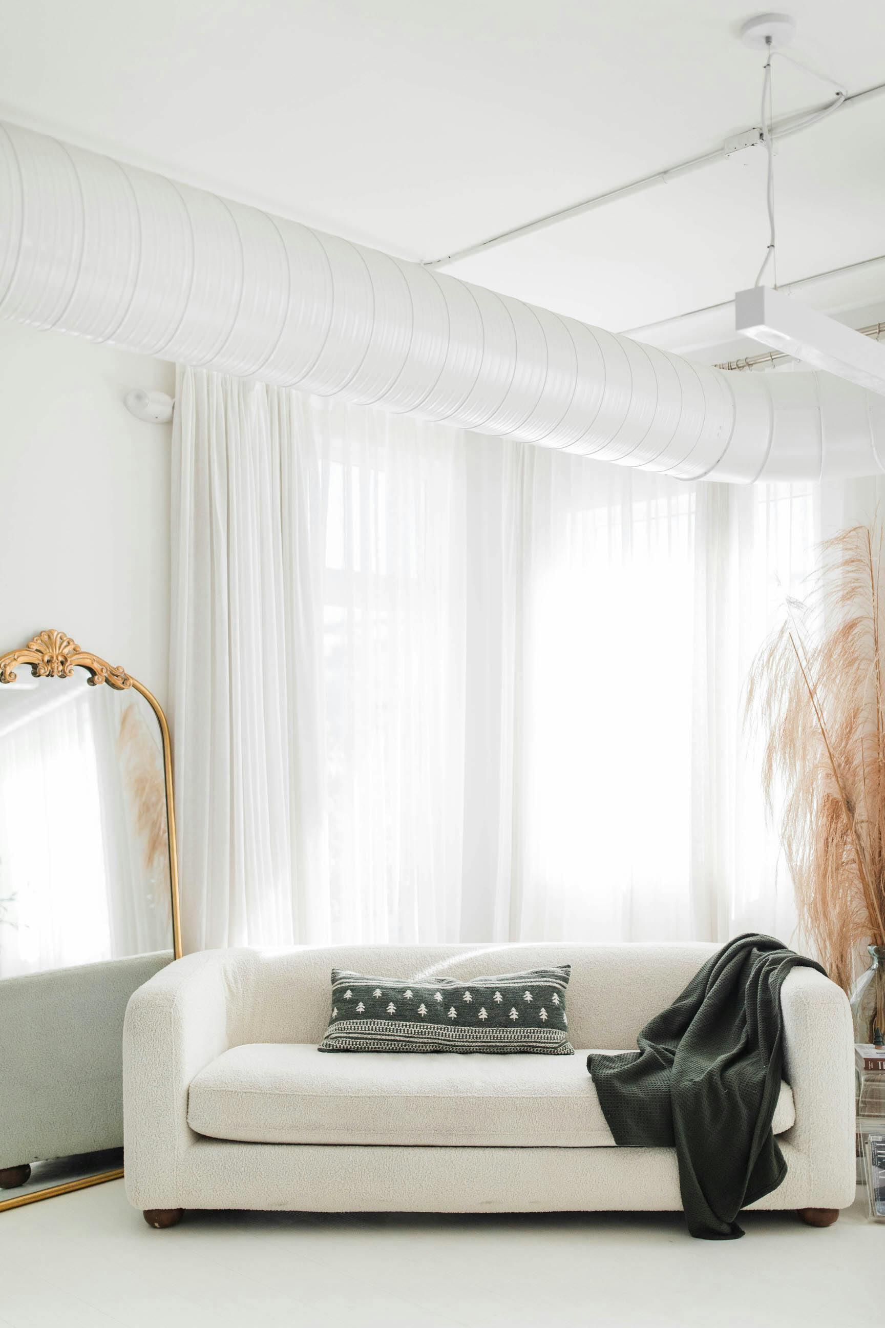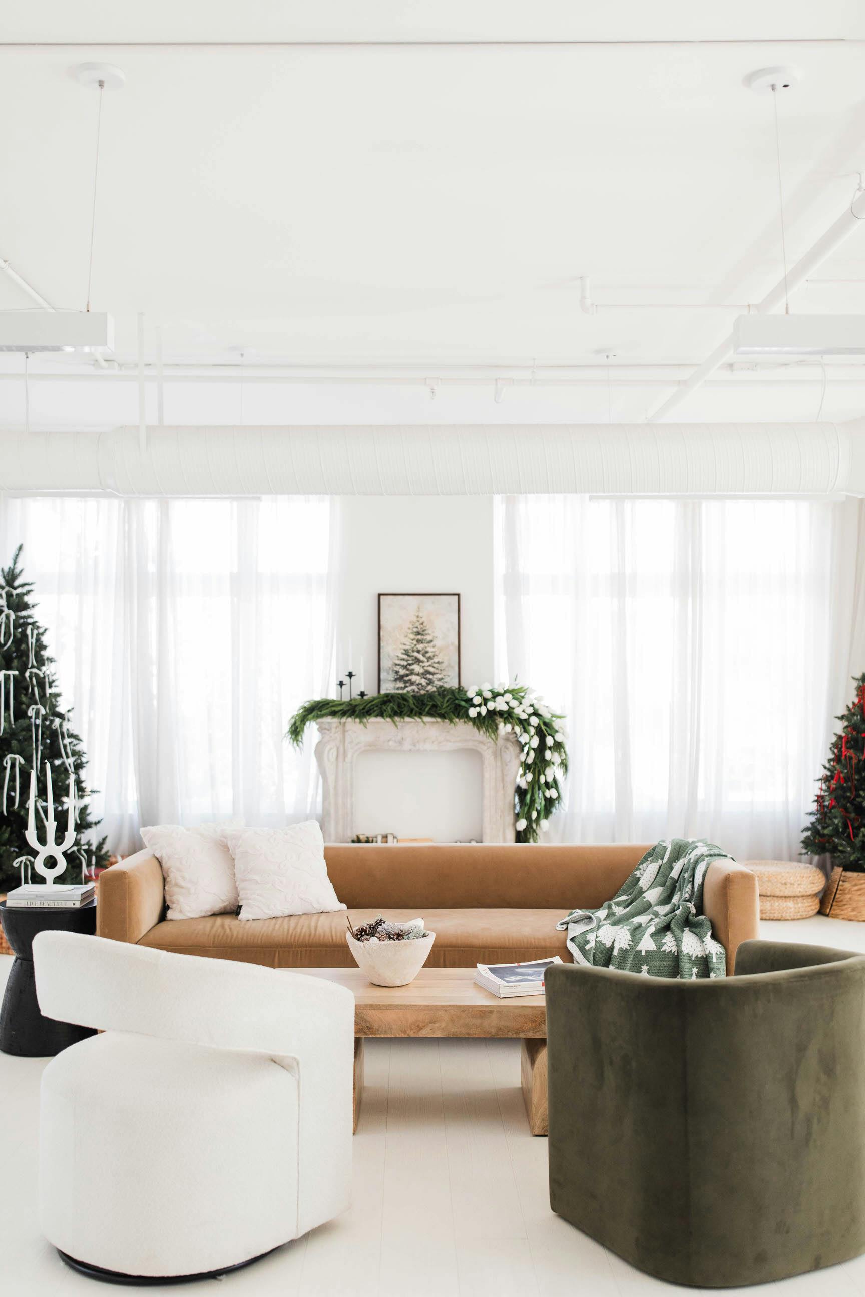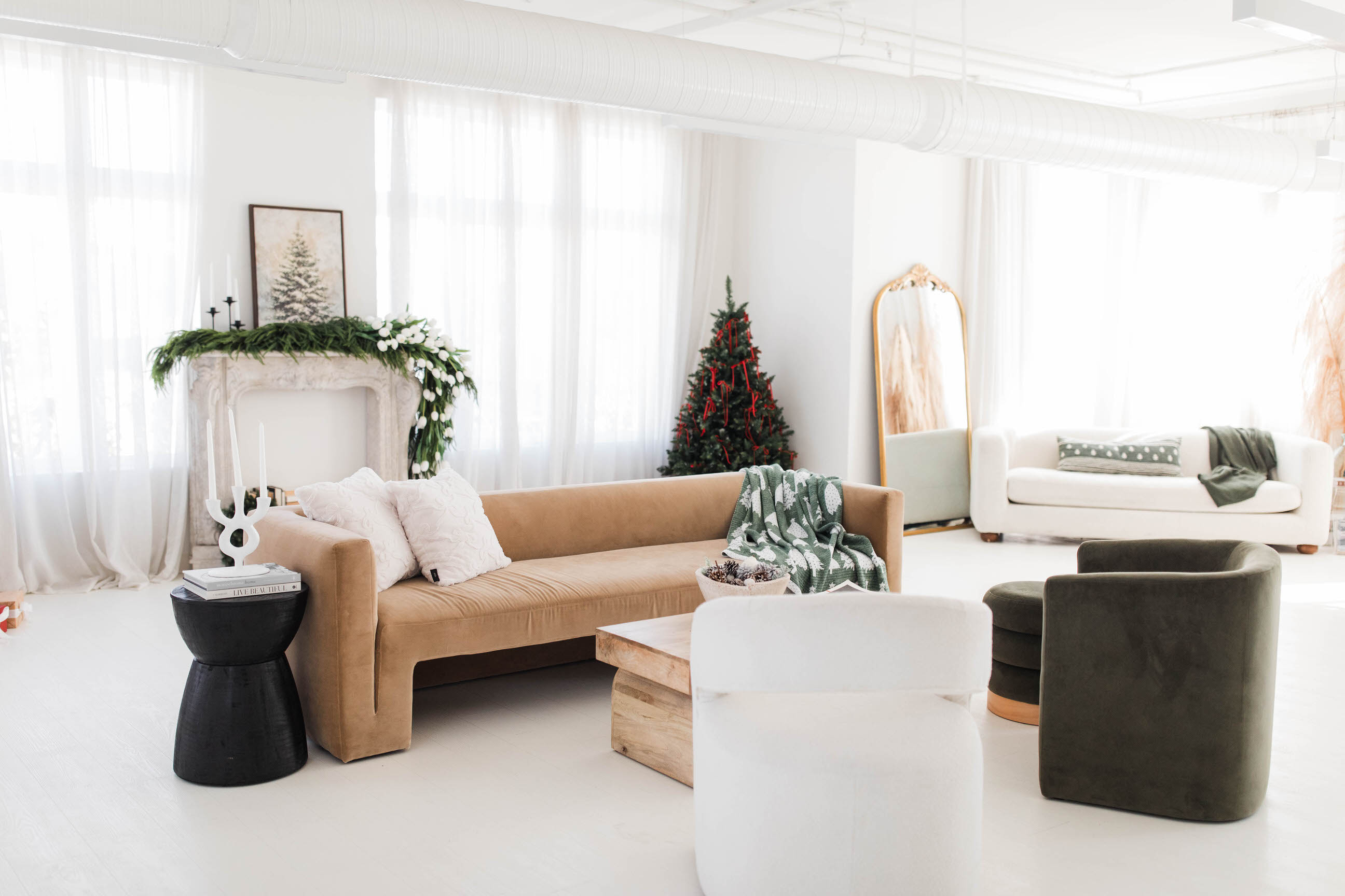 This studio is giving minimal, but luxurious vibes with its white walls and floors paired with modern furniture in a limited color palette. It would be great for product photography, professional head shots, and even interviews!