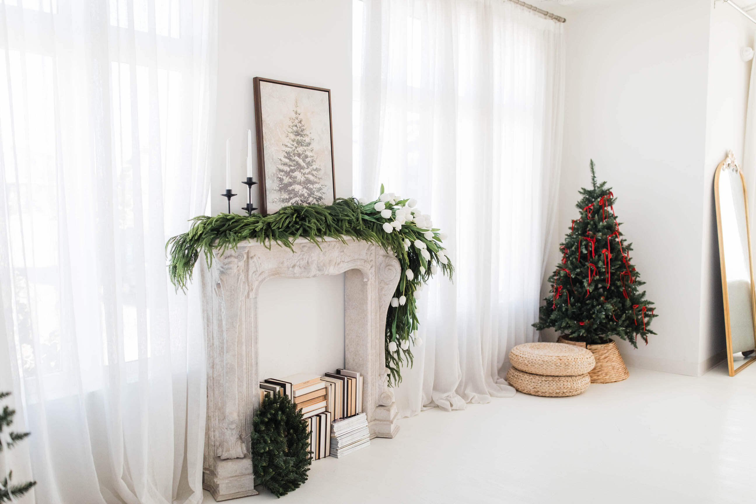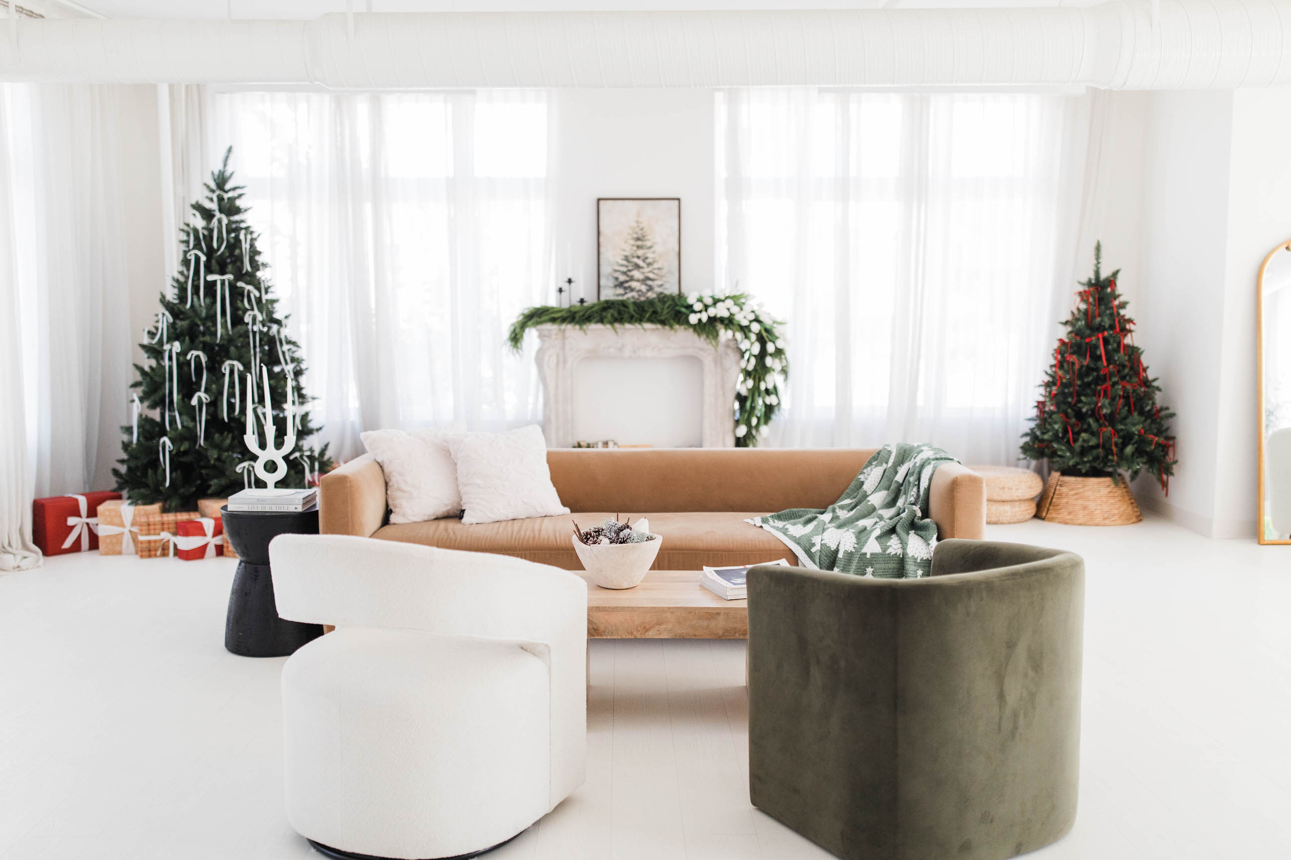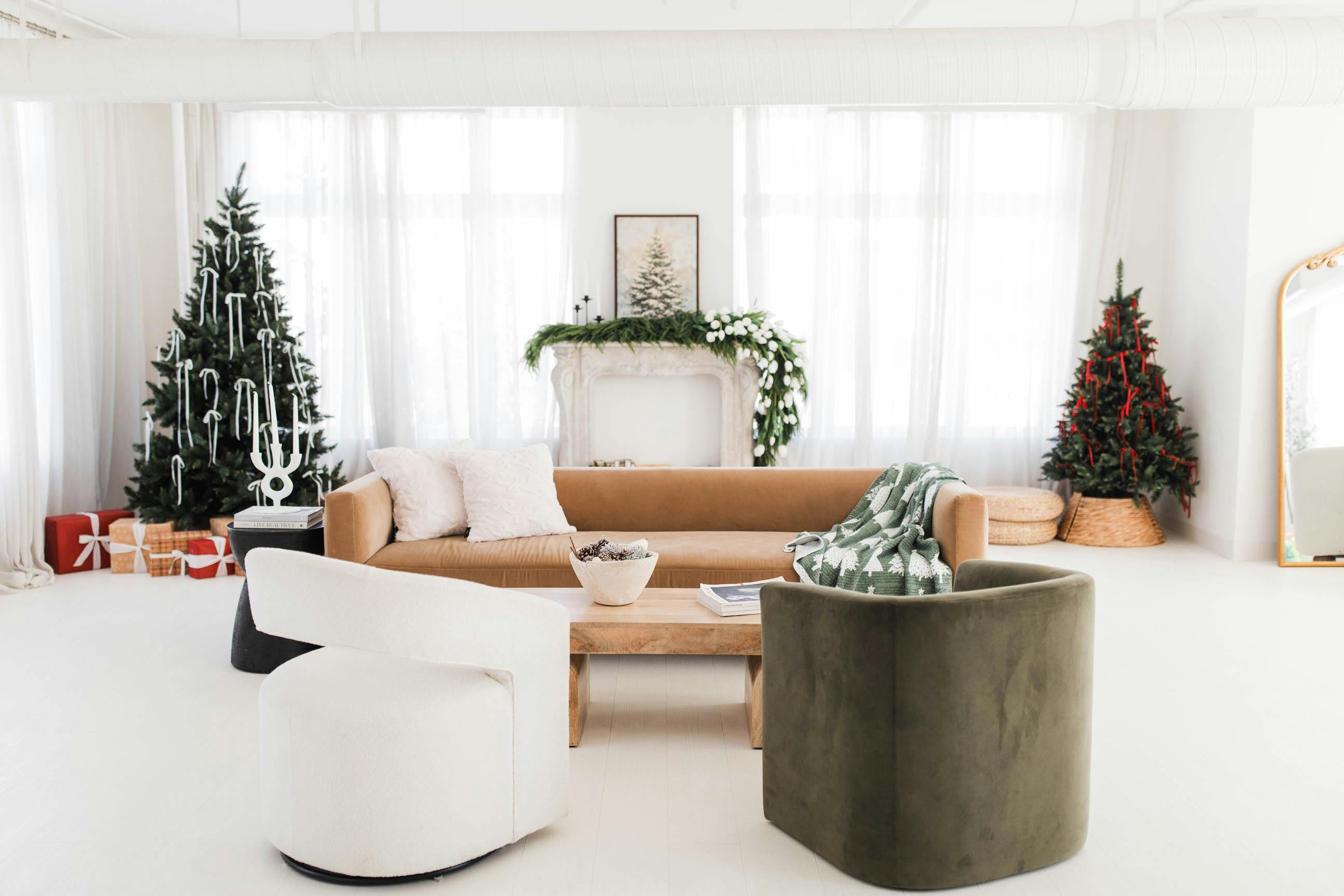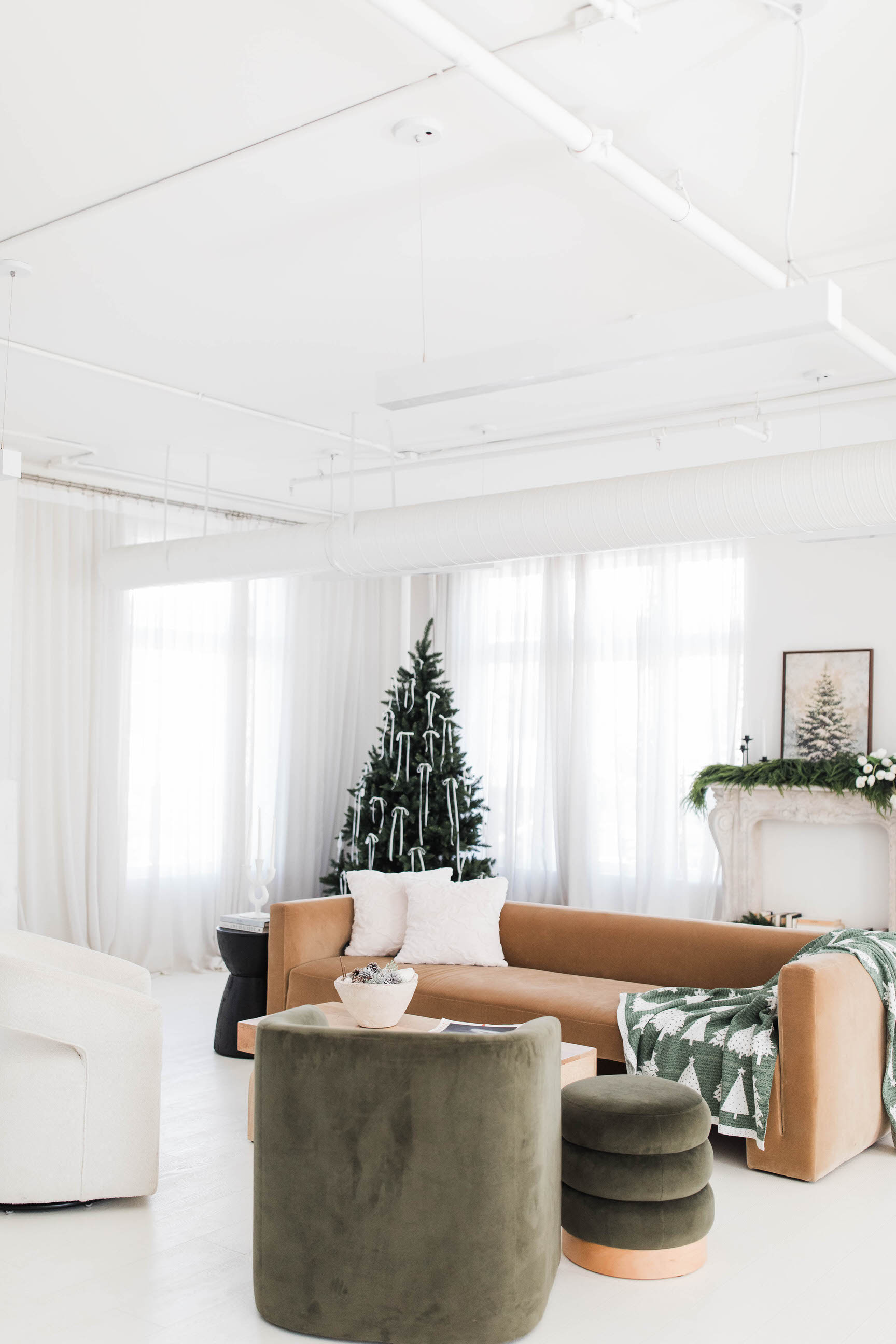 This studio is giving minimal, but luxurious vibes with its white walls and floors paired with modern furniture in a limited color palette. It would be great for product photography, professional head shots, and even interviews!