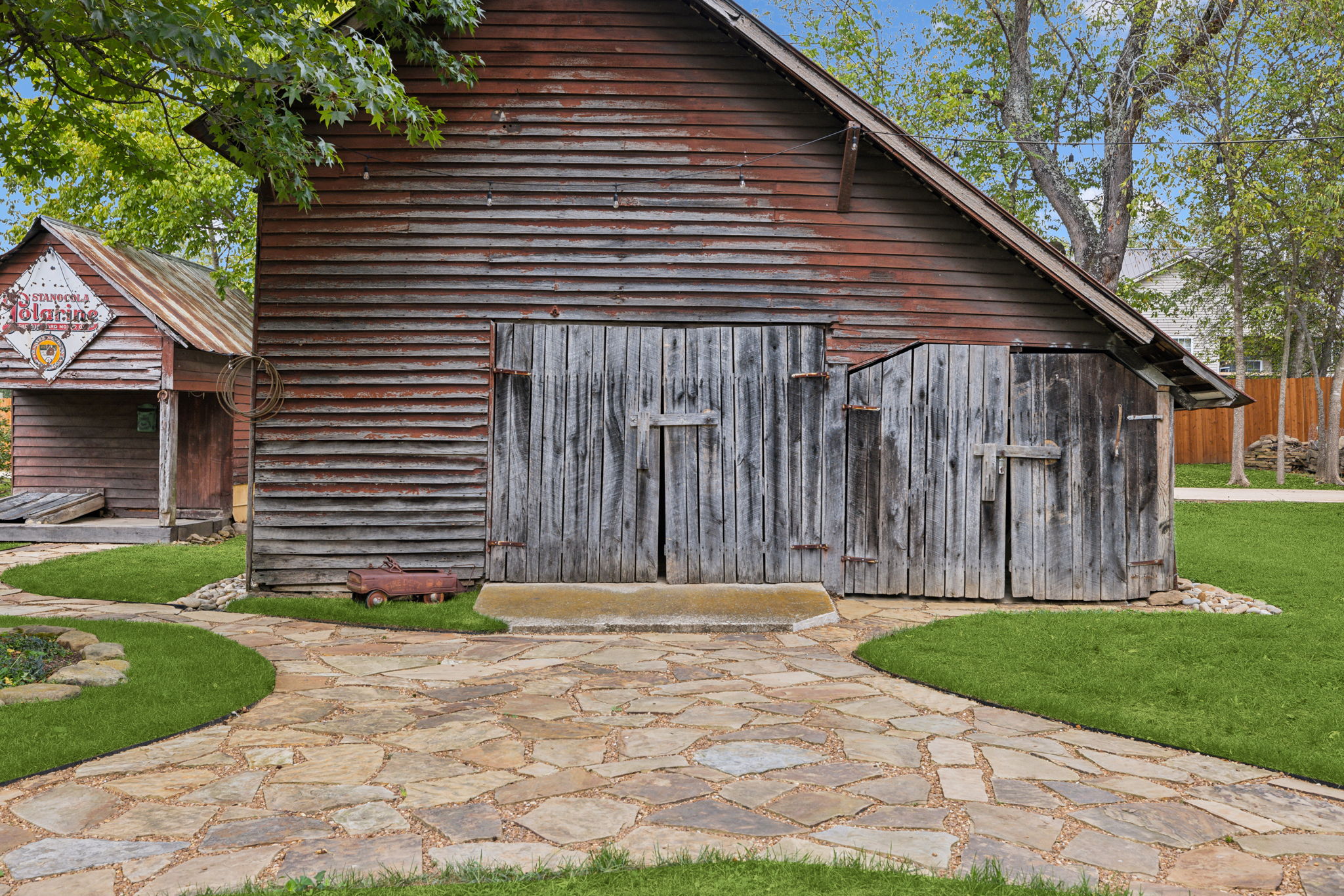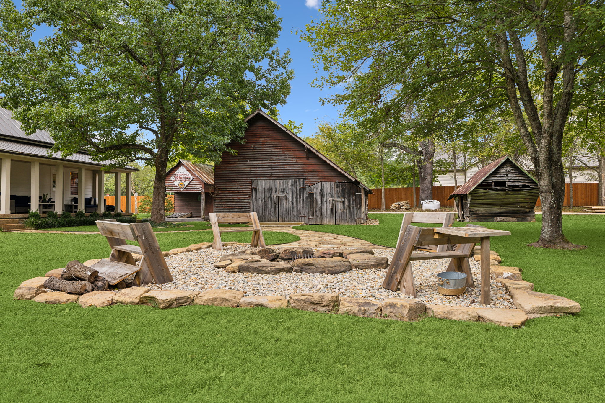 Historic and versatile with rustic outbuildings, a fire pit, tire swing, large barn and more, this unique outdoor property is bursting with creative energy for photo shoots and video shoots of all kinds!