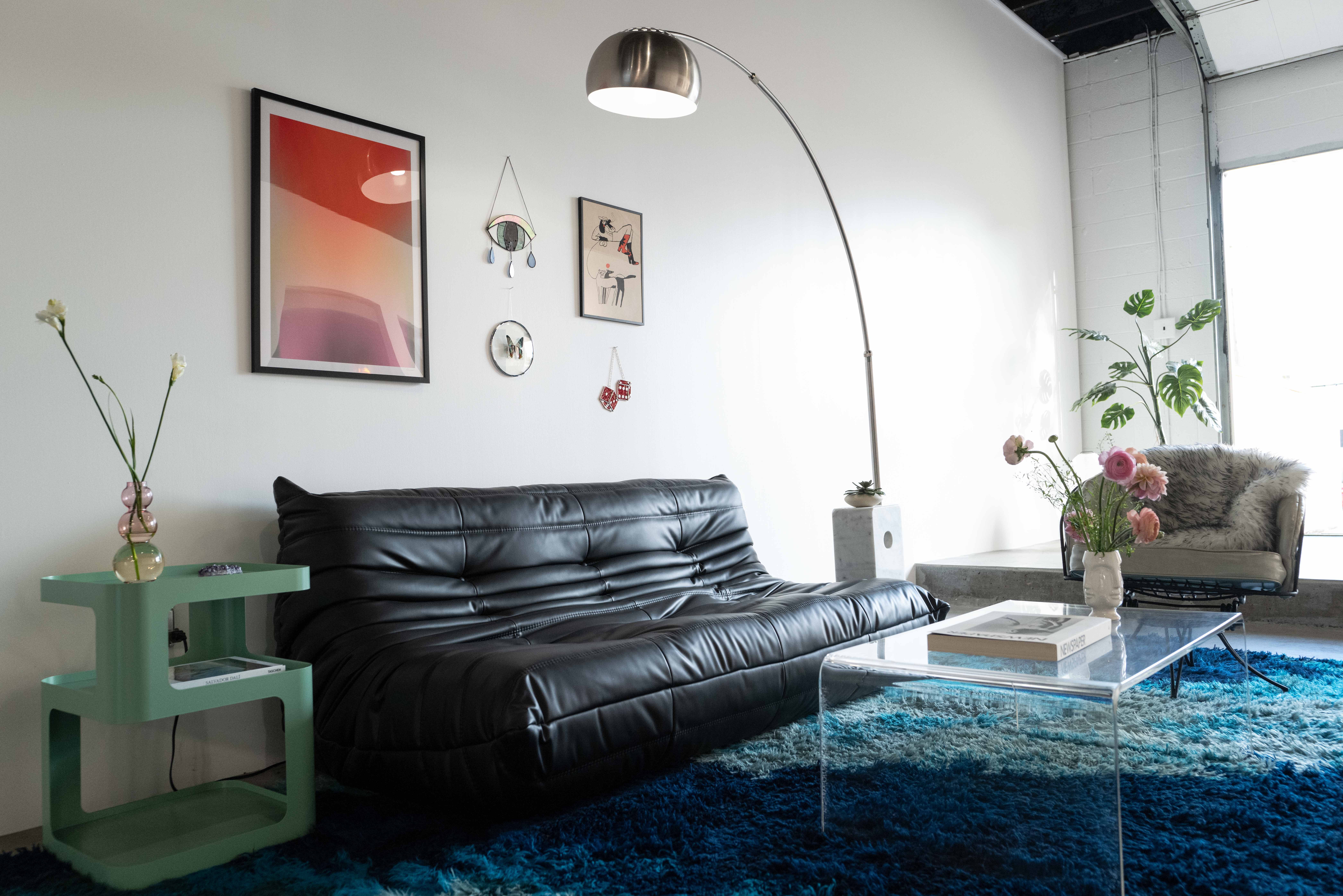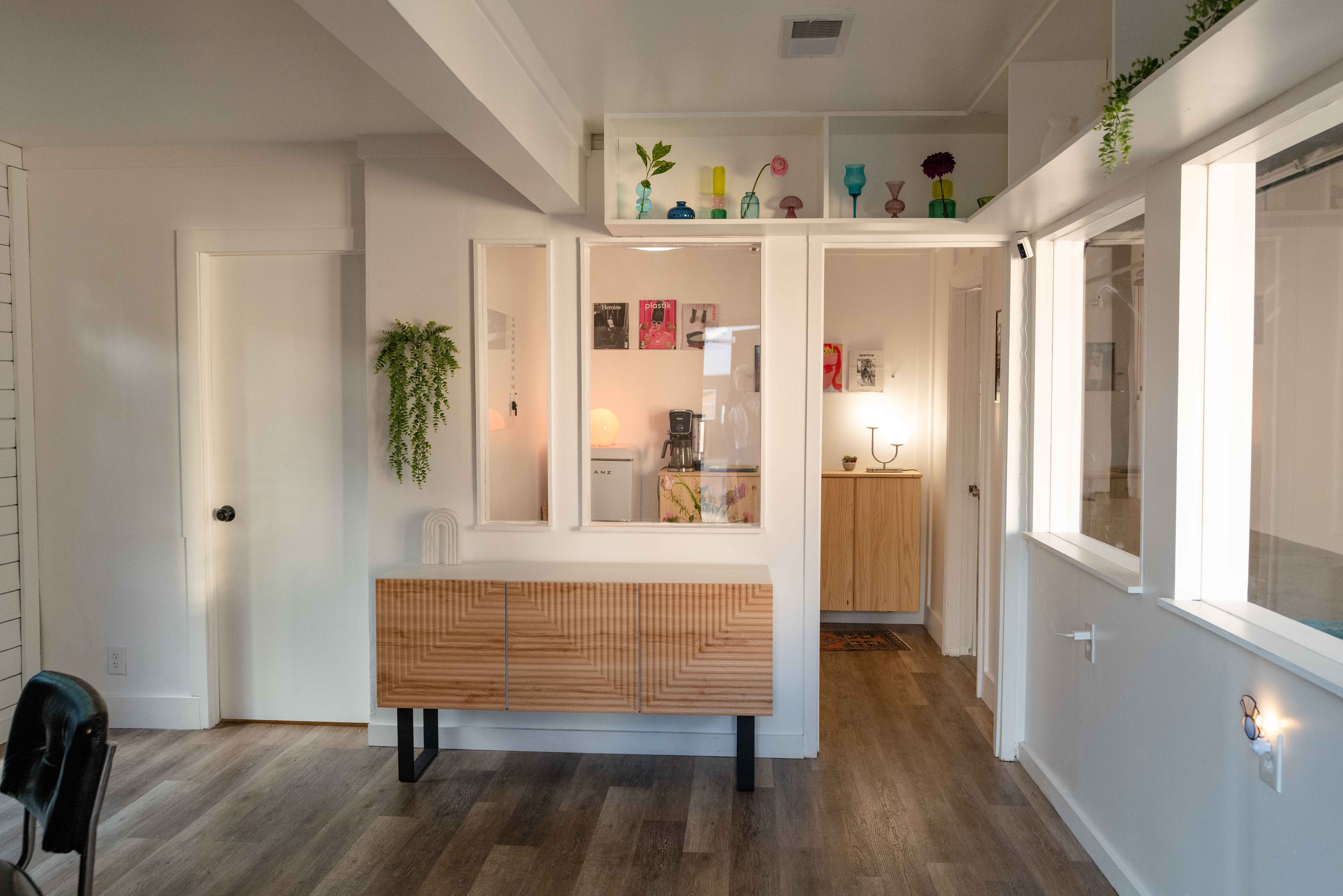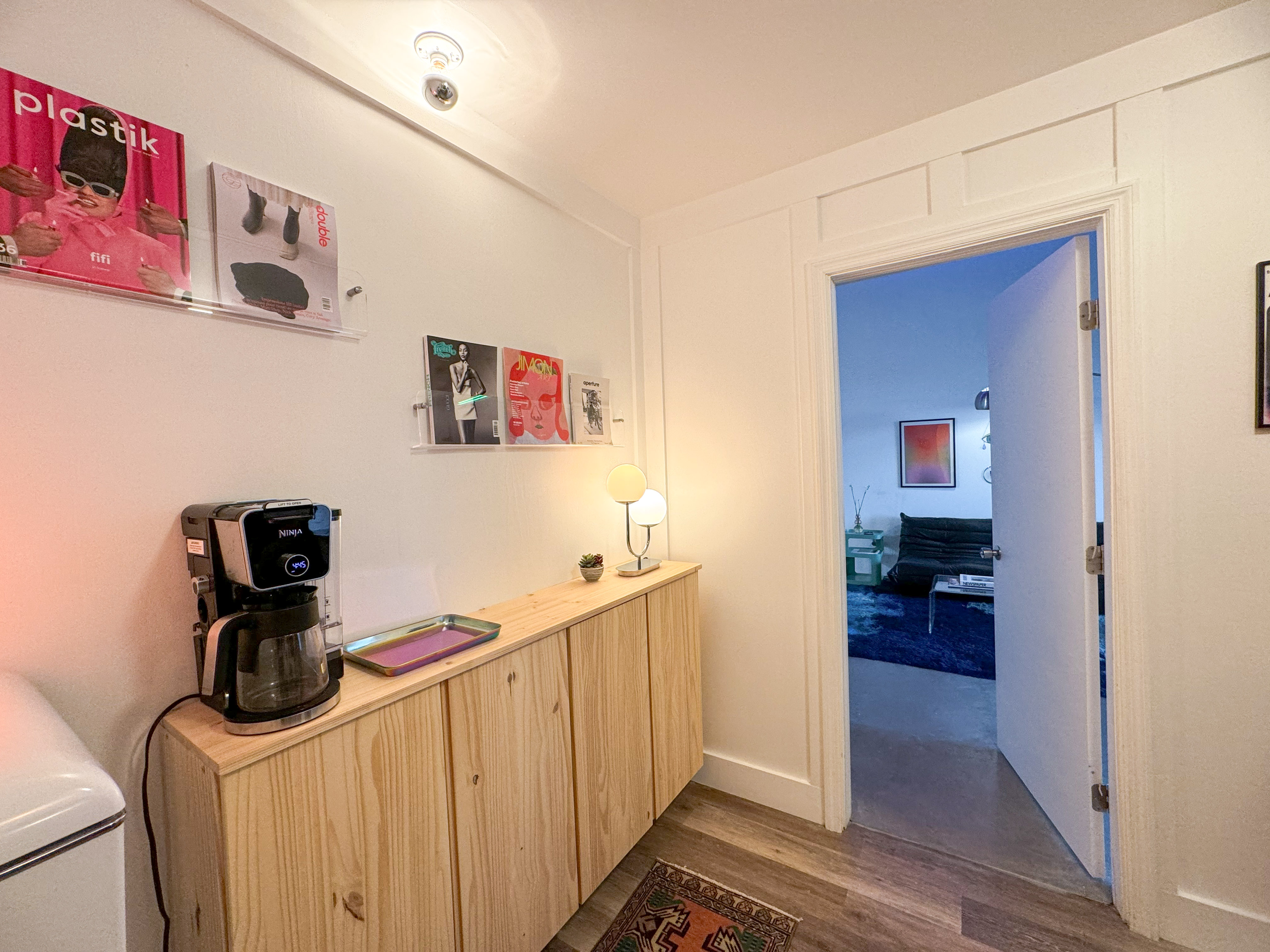 Expansive indoor and outdoor production studio complete with large cyc wall (17'x14'), lighting grid, a playful fusion of postmodern and mid-century styled rooms, and gorgeous natural light or RGB controlled studio lighting throughout. The creative space also features a private changing room, glam area, and two bathrooms!