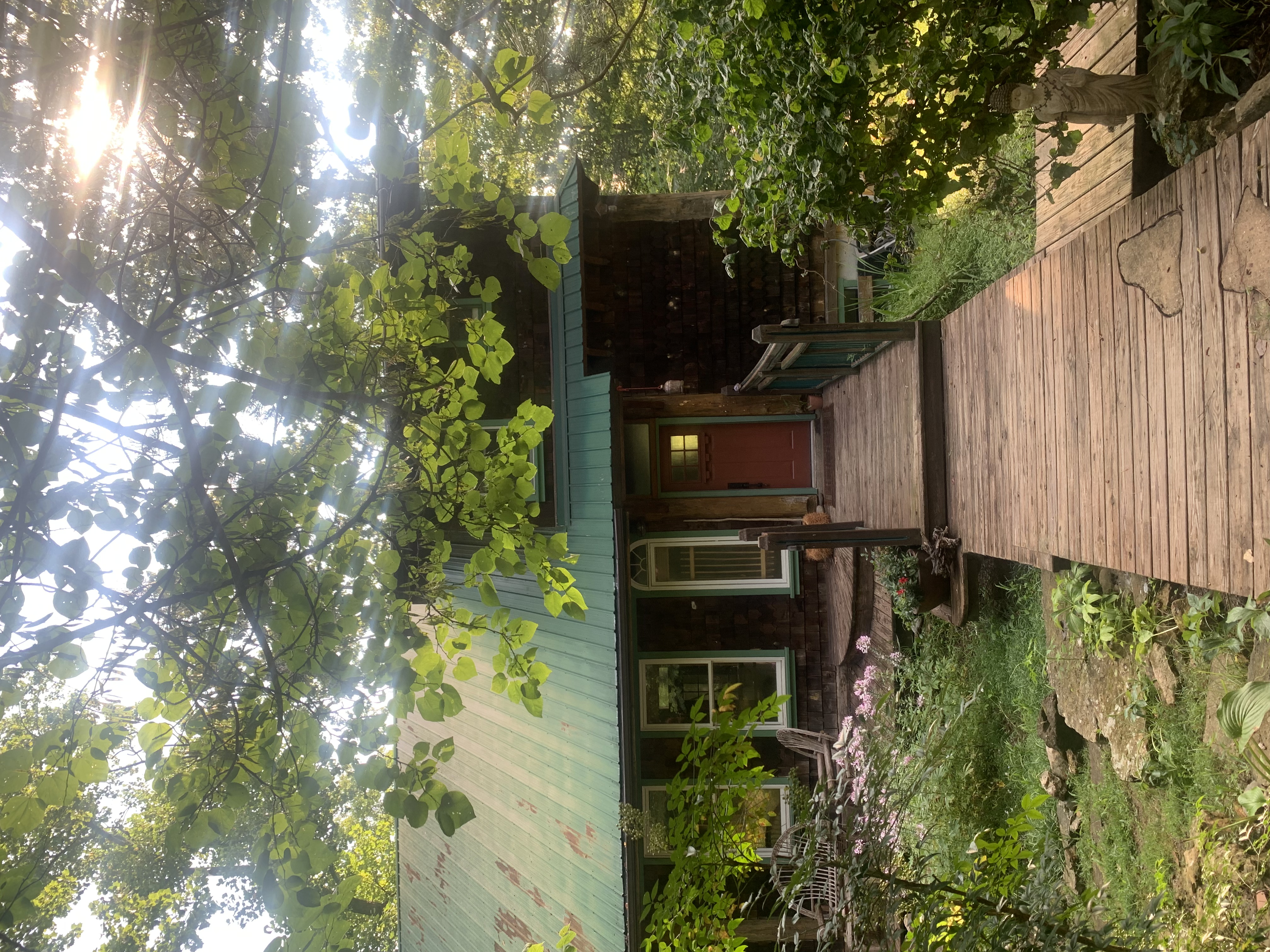 This is a hand built cabin that is sure to wow you. The cabin is a piece of art with whimsical hand carved wood details to be discovered throughout. The house is designed to hold large groups, big large open rooms throughout. The cabin fills with natural light from morning through night due to windows in every direction. The curved wooden staircase leads to a primary bedroom, office, sitting room & bathroom which is its own piece of art. Come play in this adult playhouse!