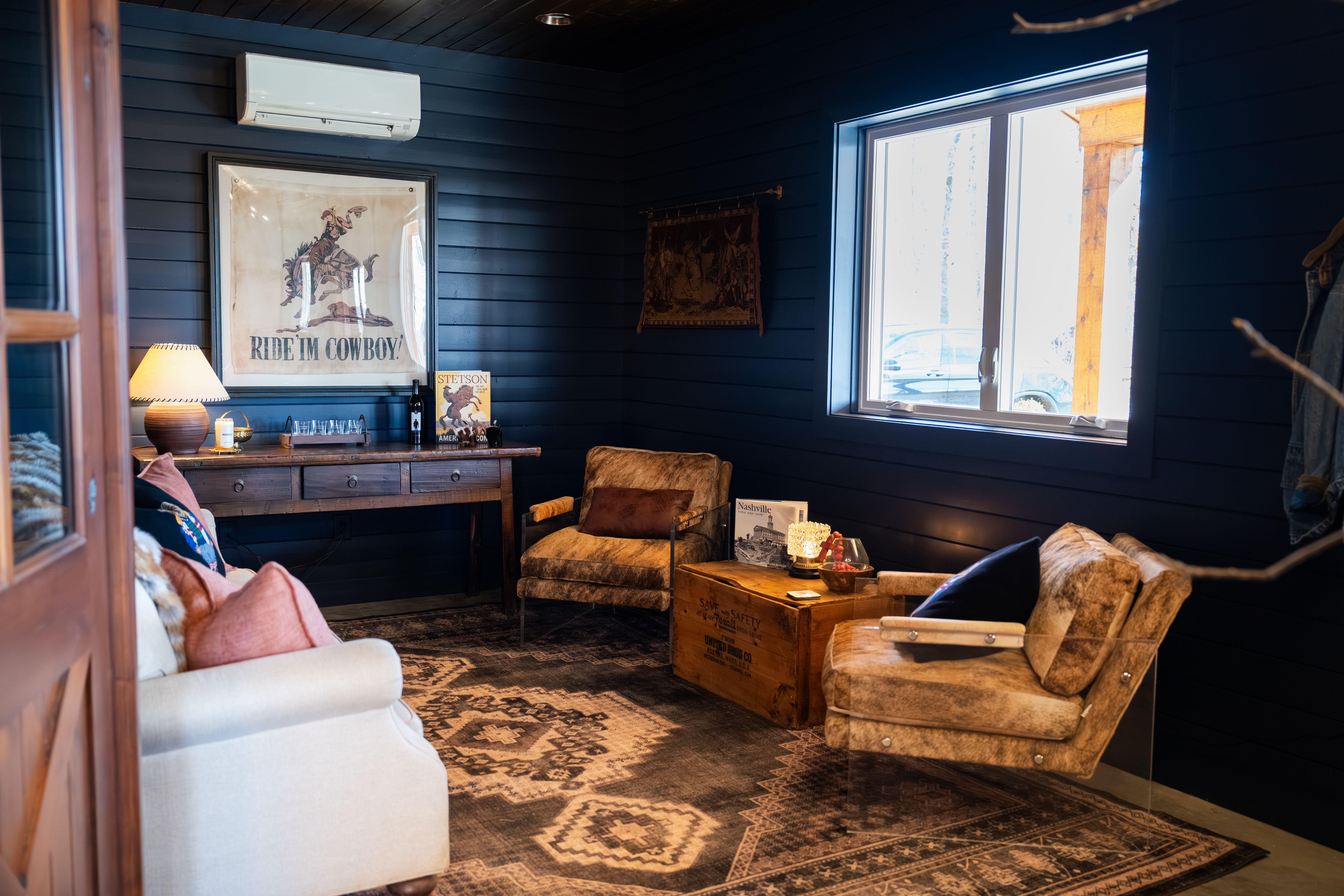 The barn features expansive sliding doors and large openings that frame views of the surrounding pasture and flood the space with natural light. Oversized doors create an indoor-outdoor feel when open and a bright, airy atmosphere when closed. Light is easy to control throughout the day by adjusting the doors and layering interior lighting. Late morning through mid-afternoon offers even, diffused daylight, while golden hour brings warm, directional light into the barn.