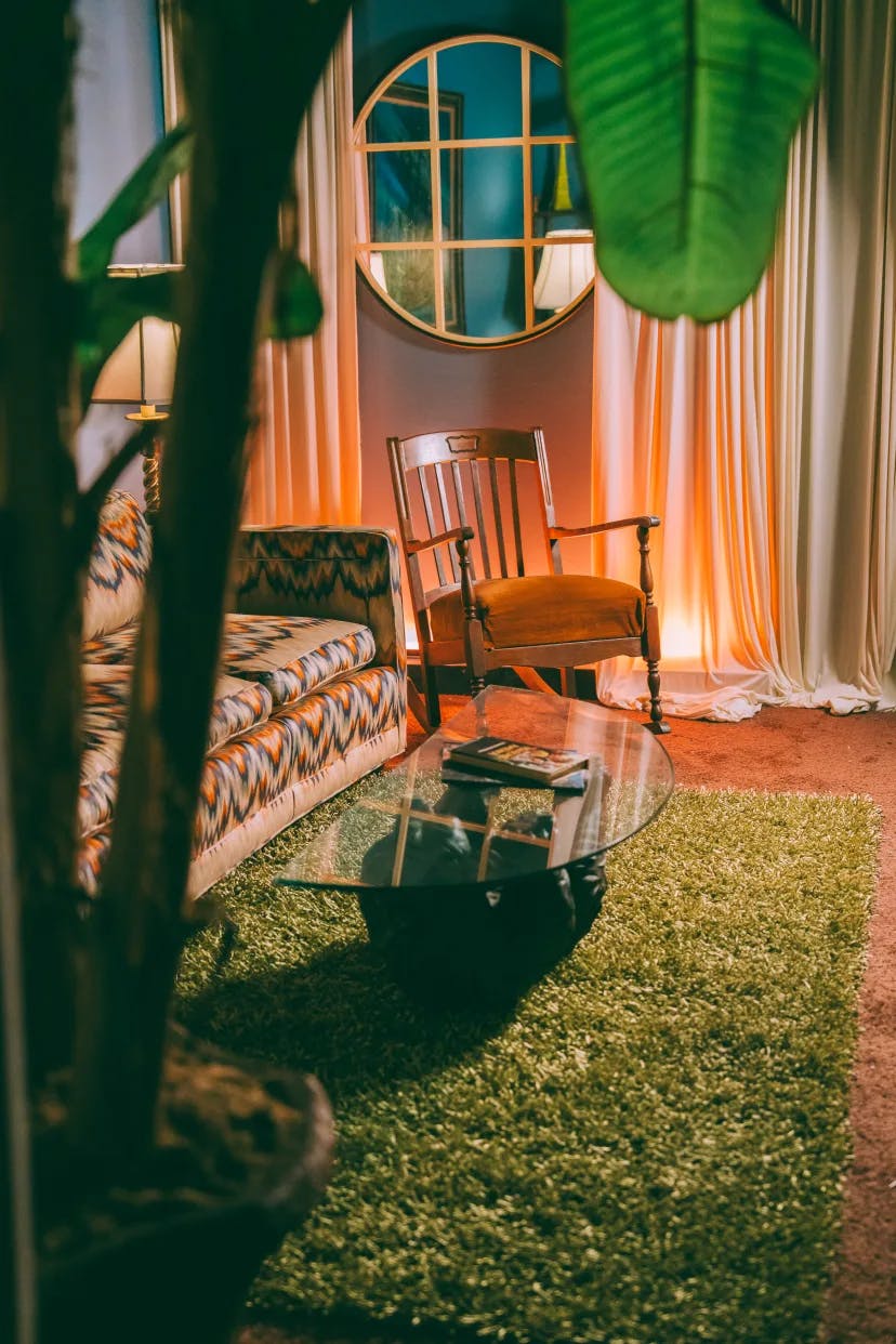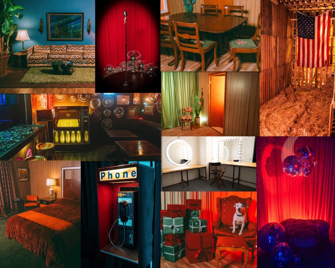 This studio offers several standing sets for photoshoots or content creation. Whether it's the hotel room or the dive bar, everything is a bit retro with a gritty Nashville flavor.