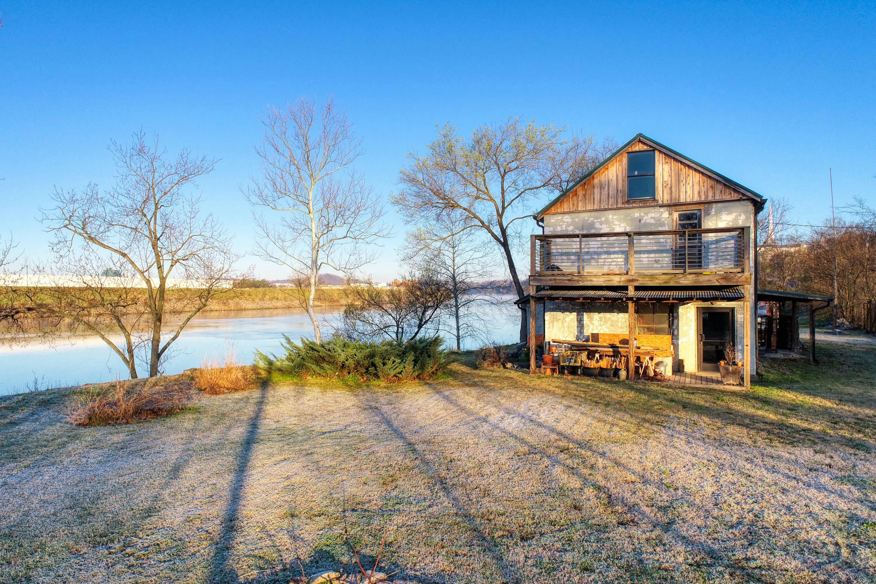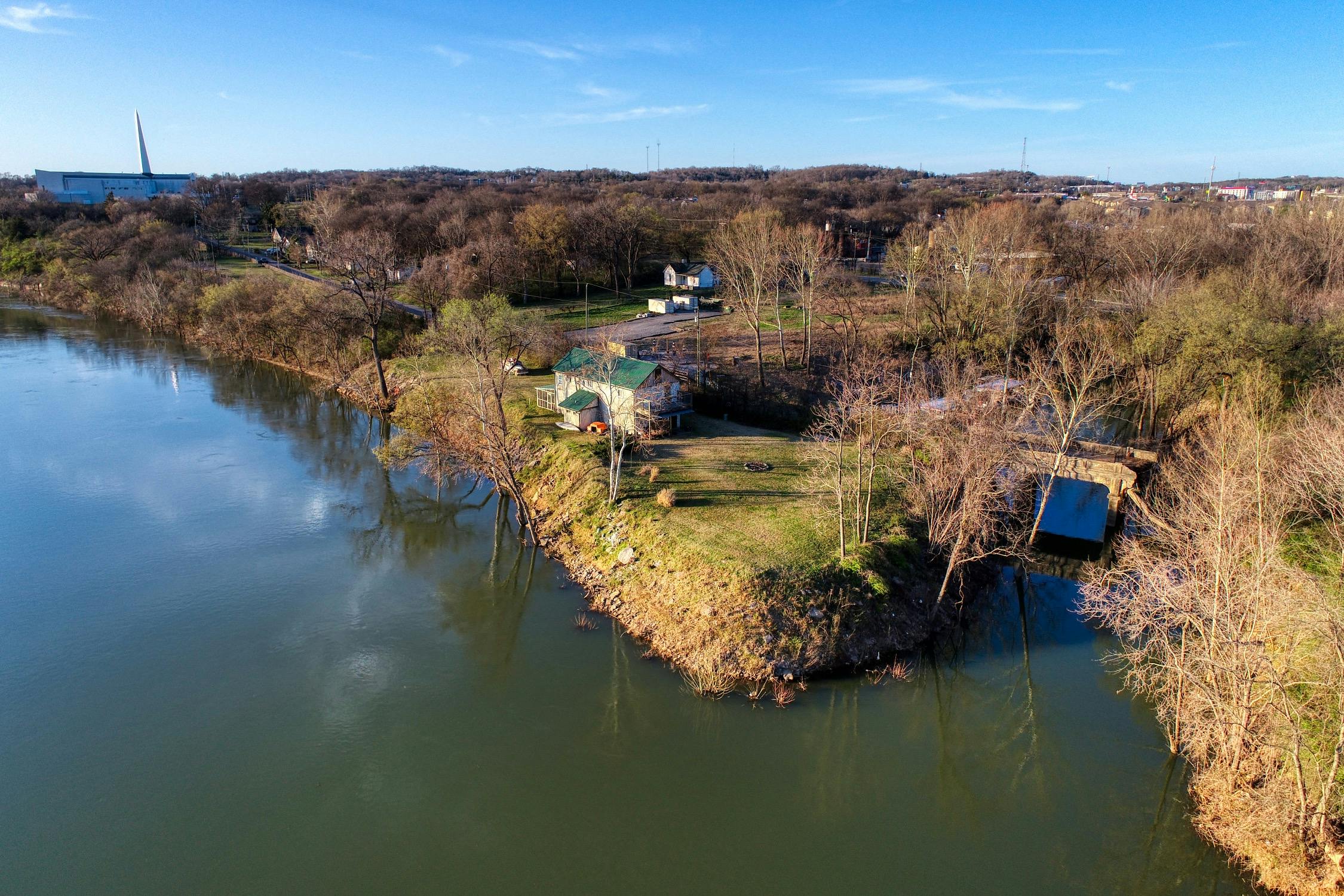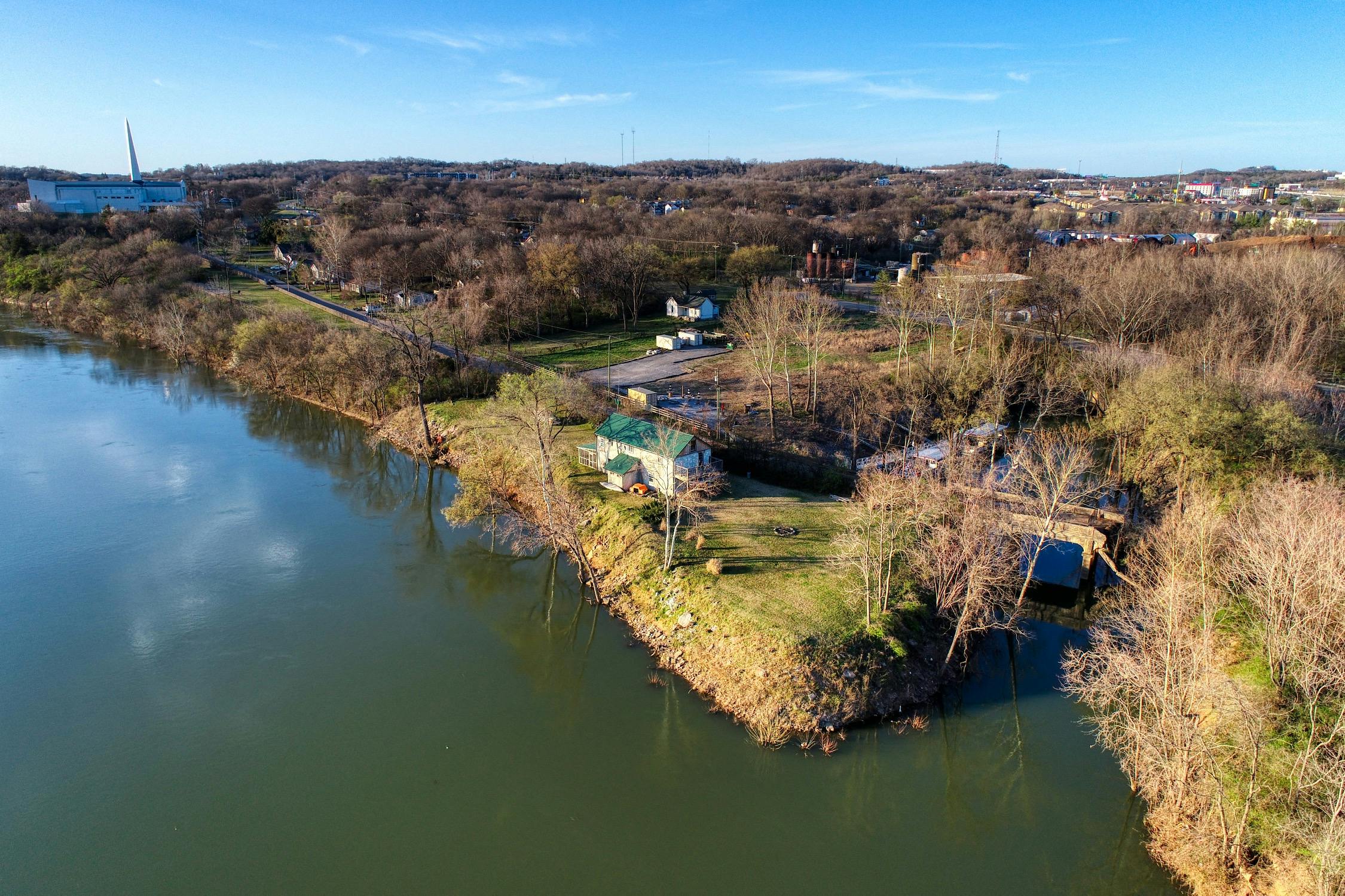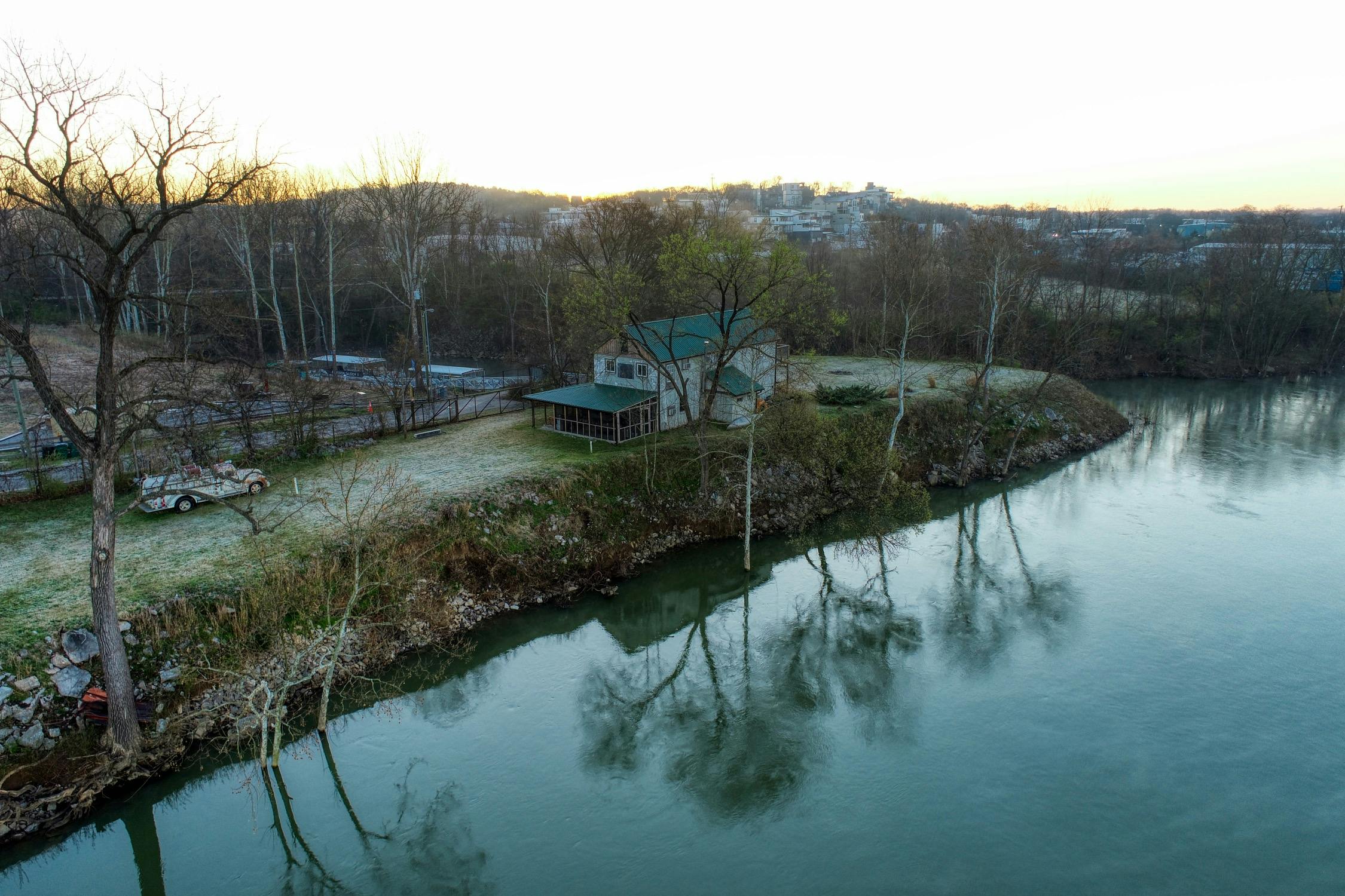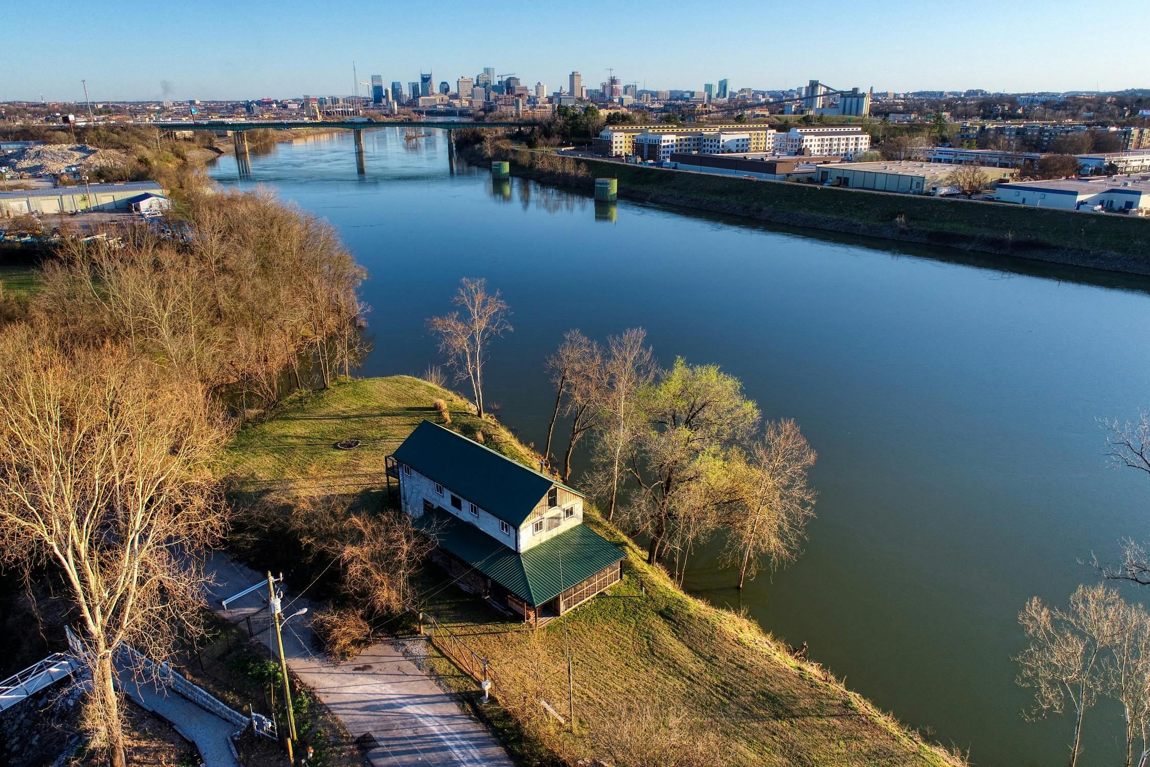 Rustic and eccentric on the bank of the Cumberland River with downtown views.