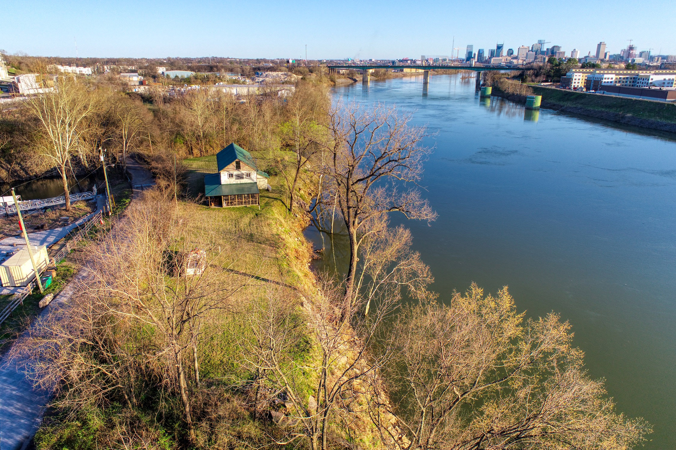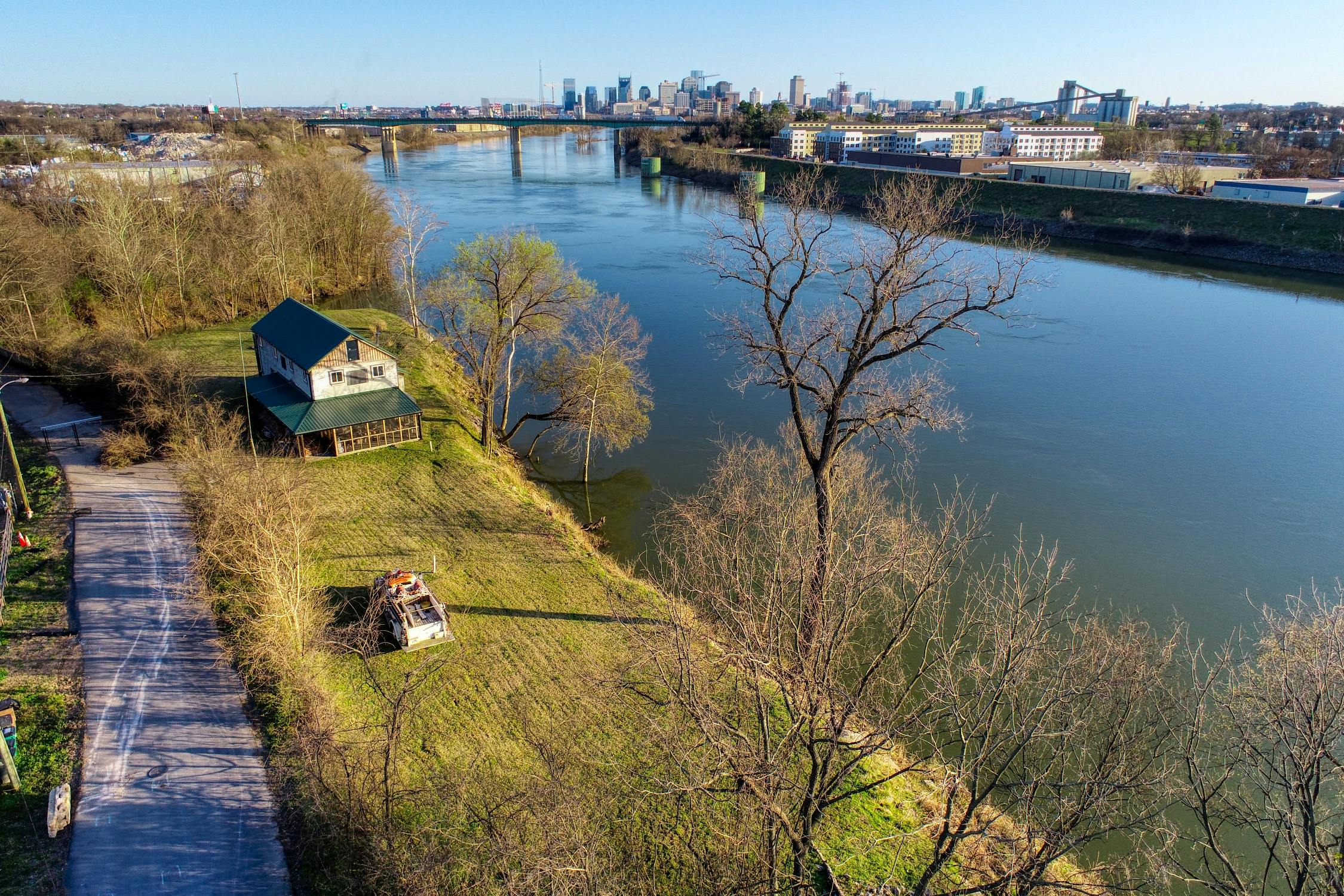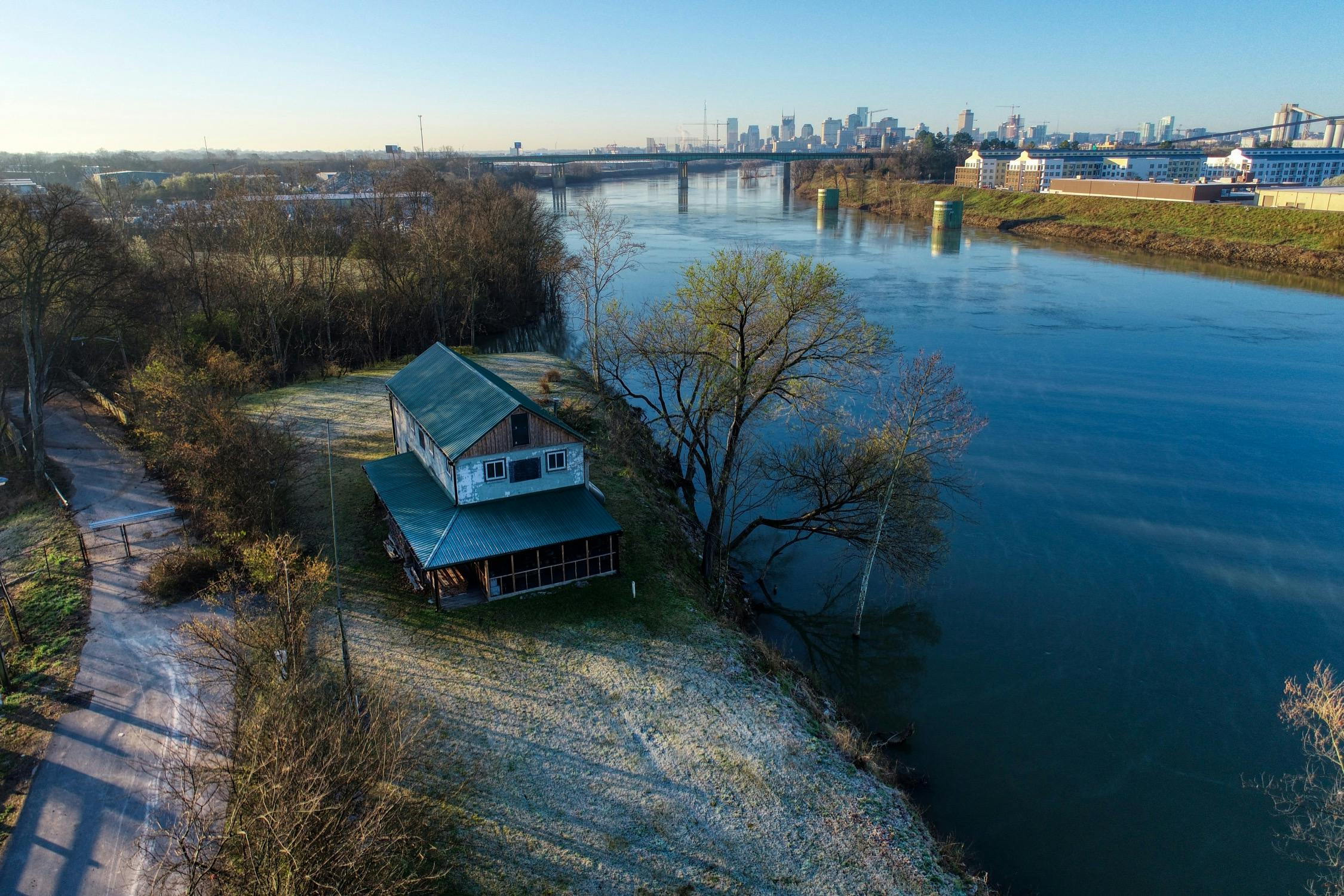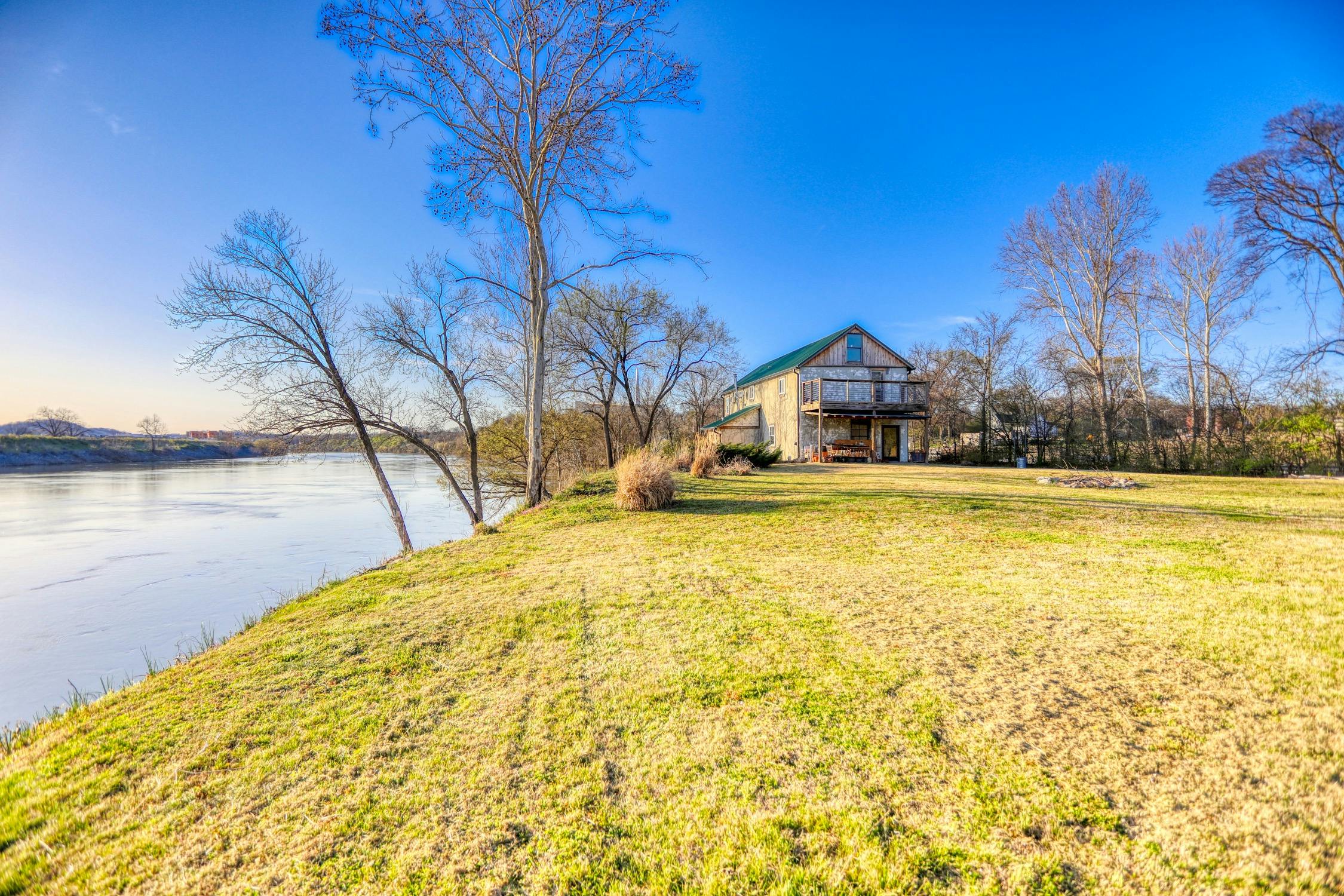 Rustic and eccentric on the bank of the Cumberland River with downtown views.