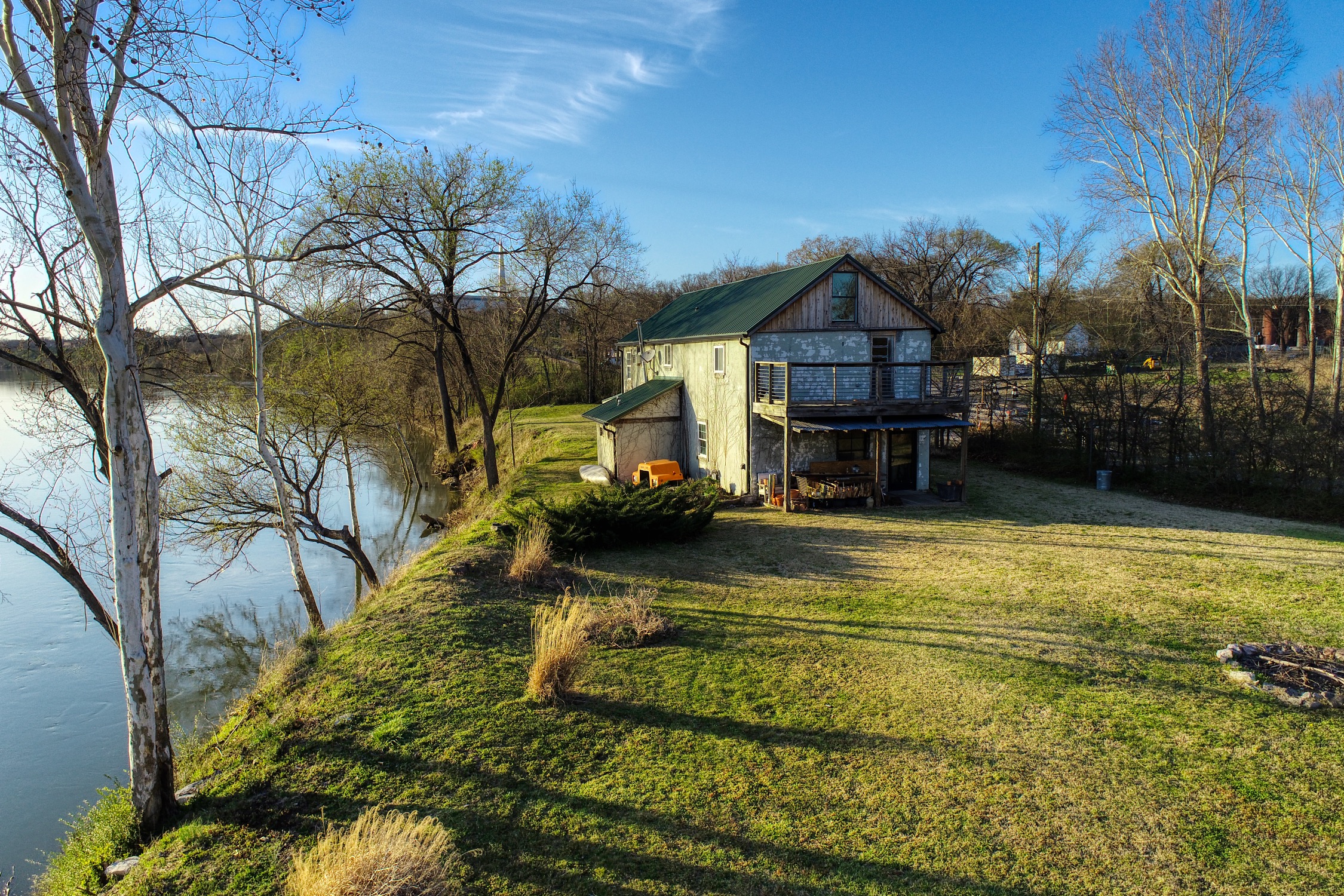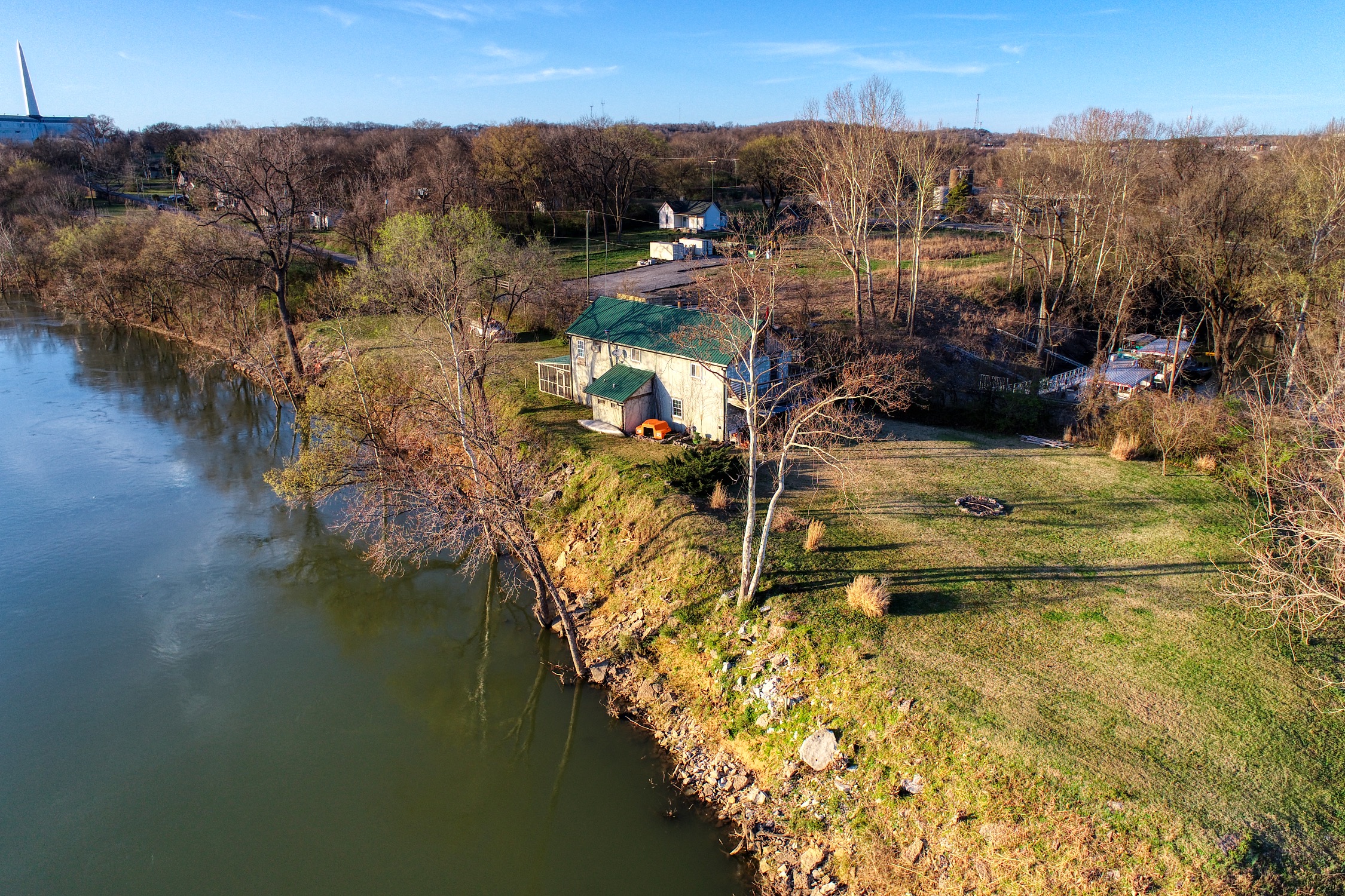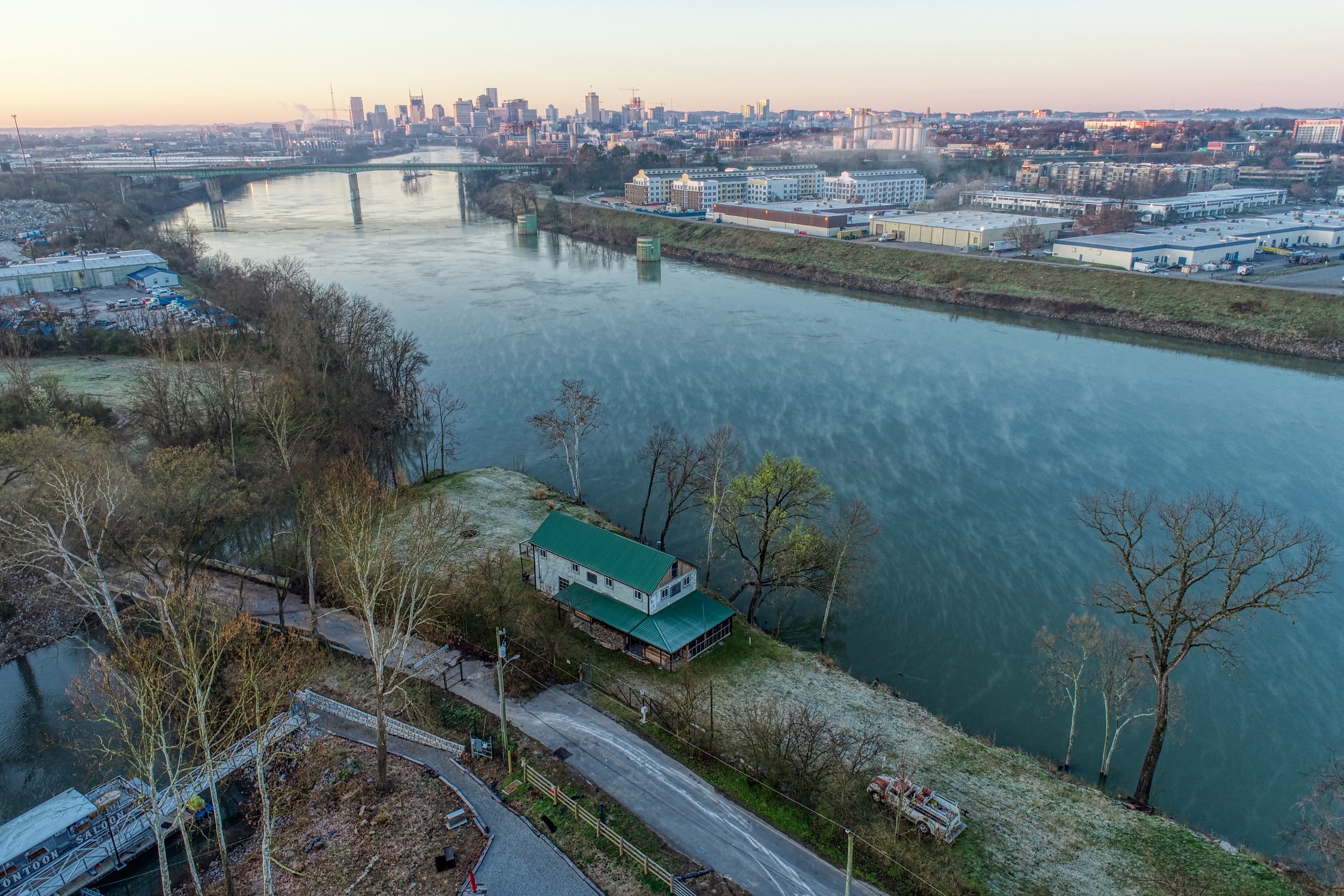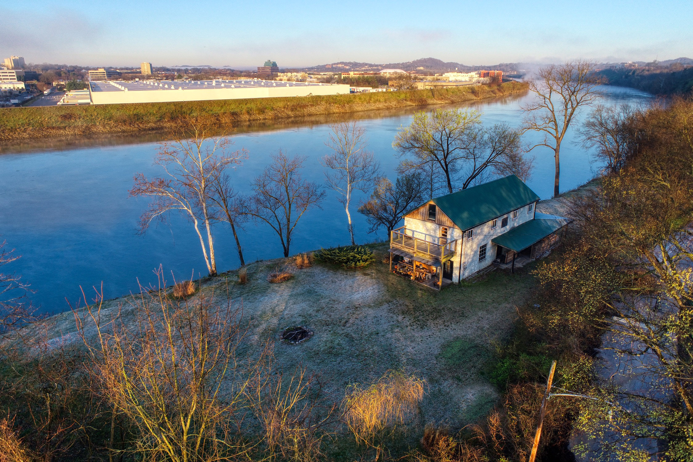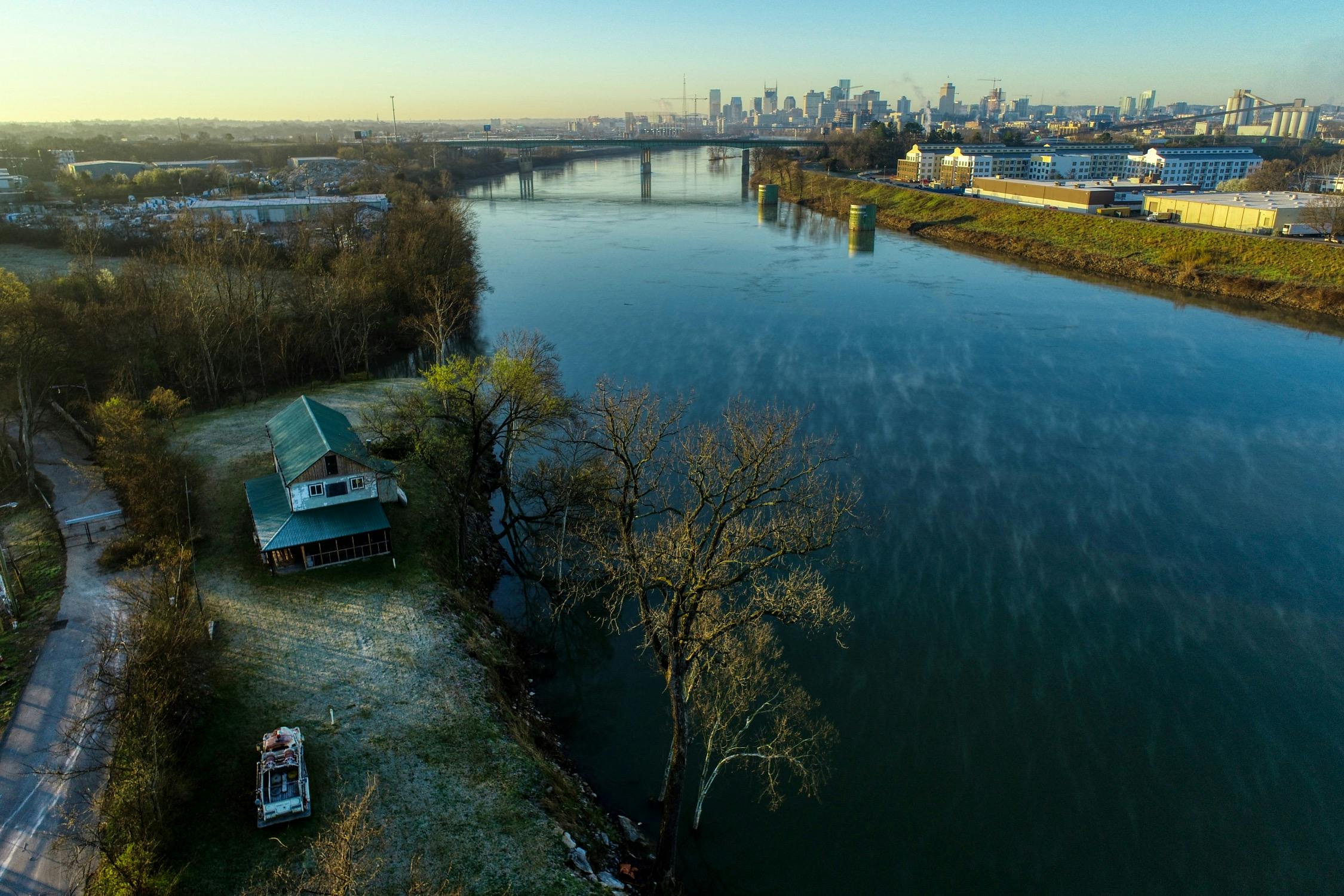 Rustic and eccentric on the bank of the Cumberland River with downtown views.