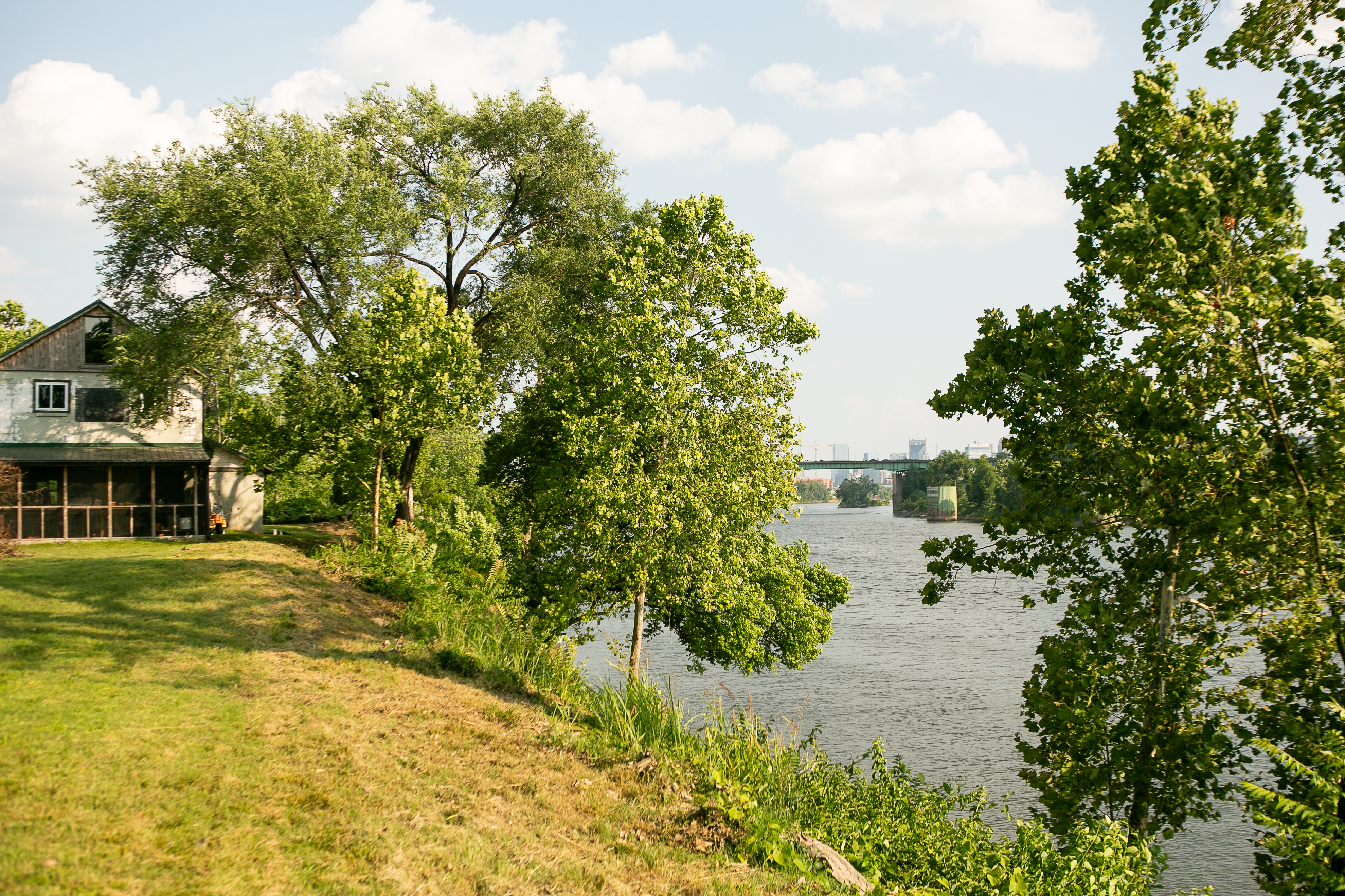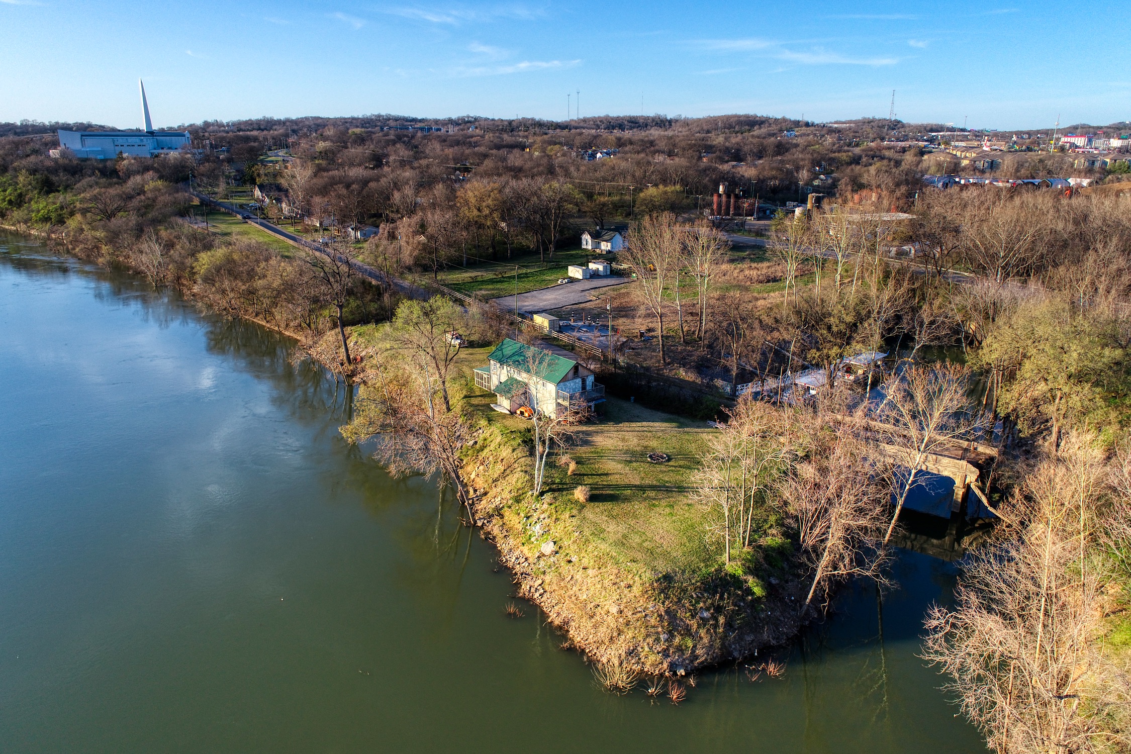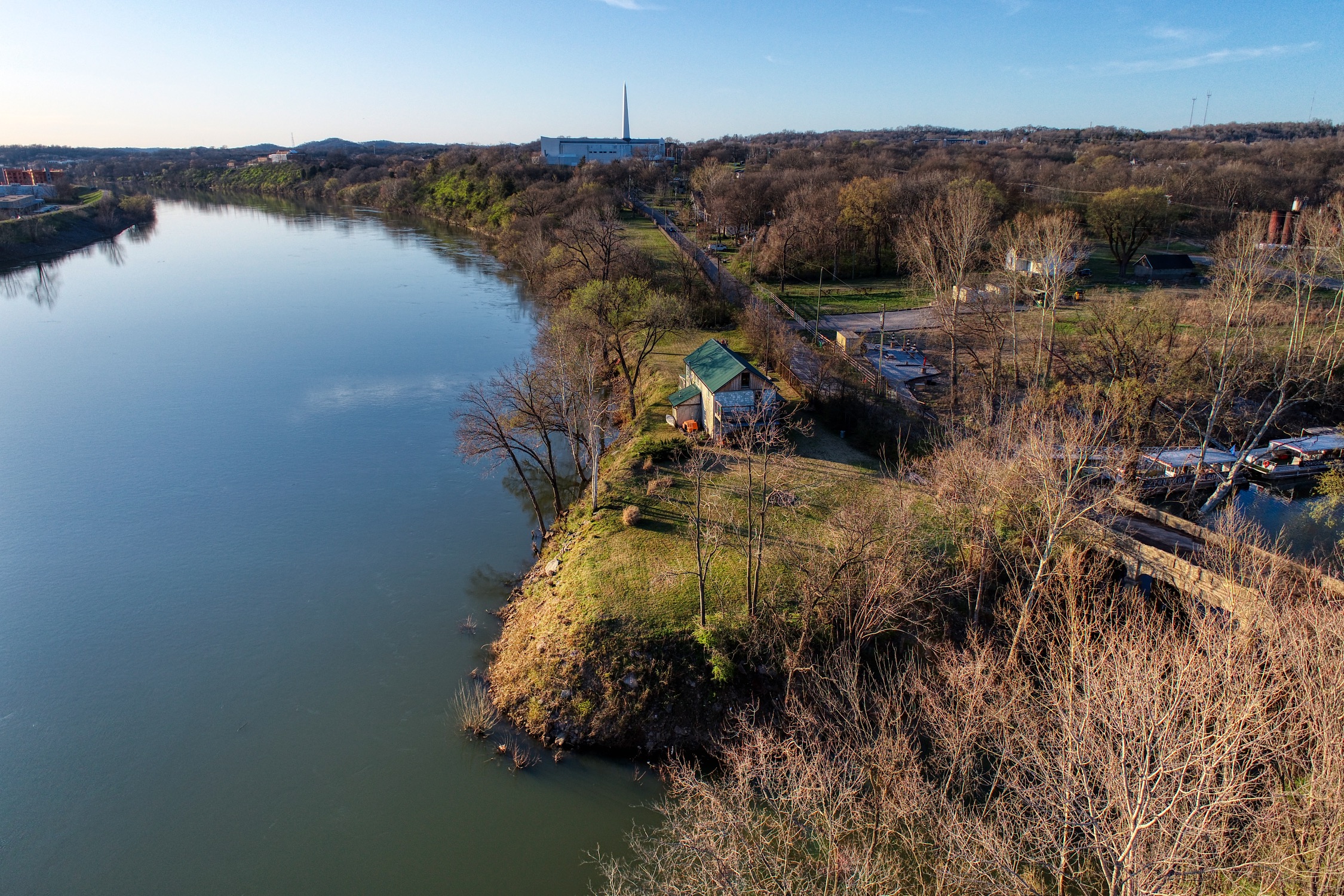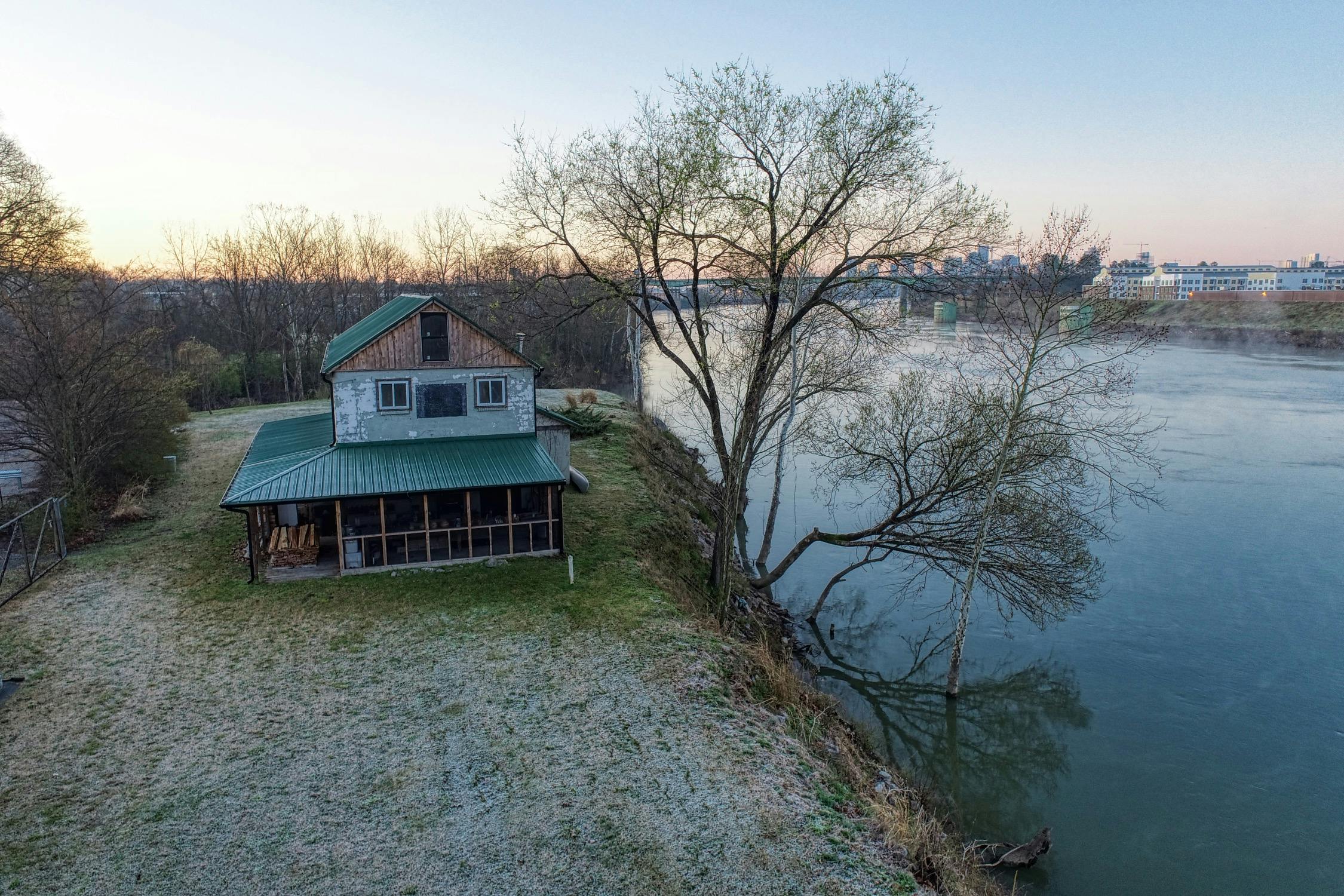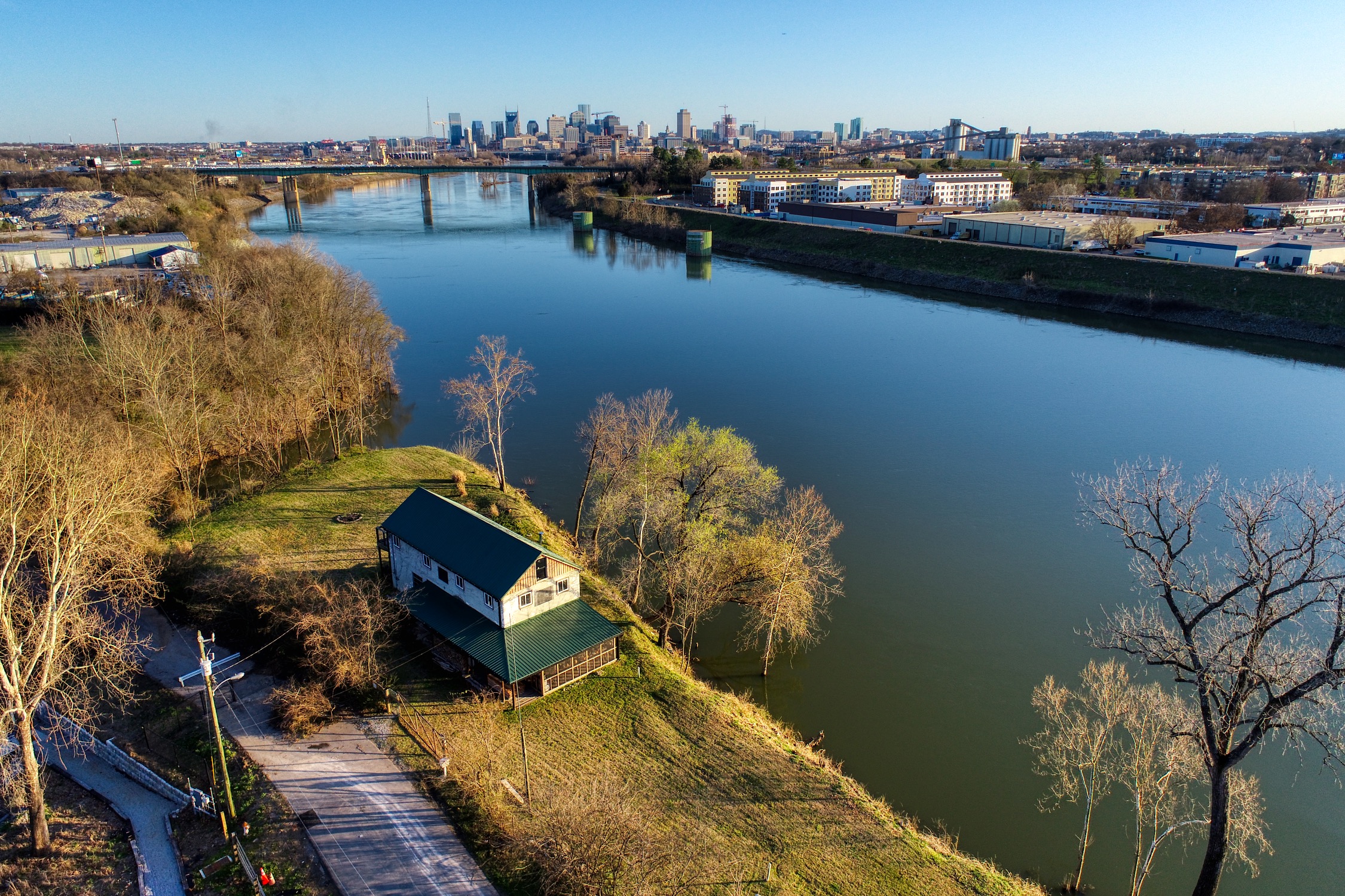 Rustic and eccentric on the bank of the Cumberland River with downtown views.