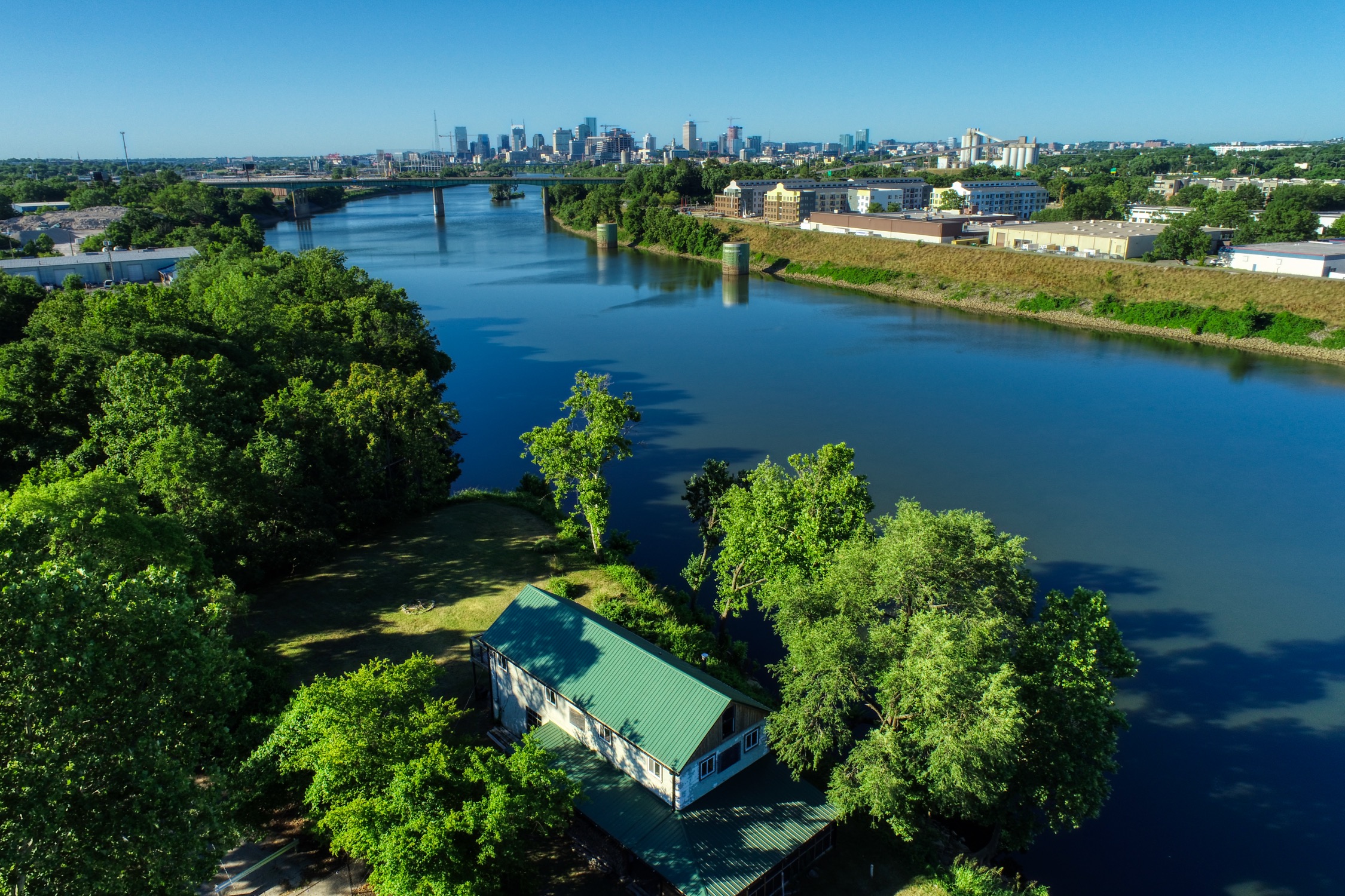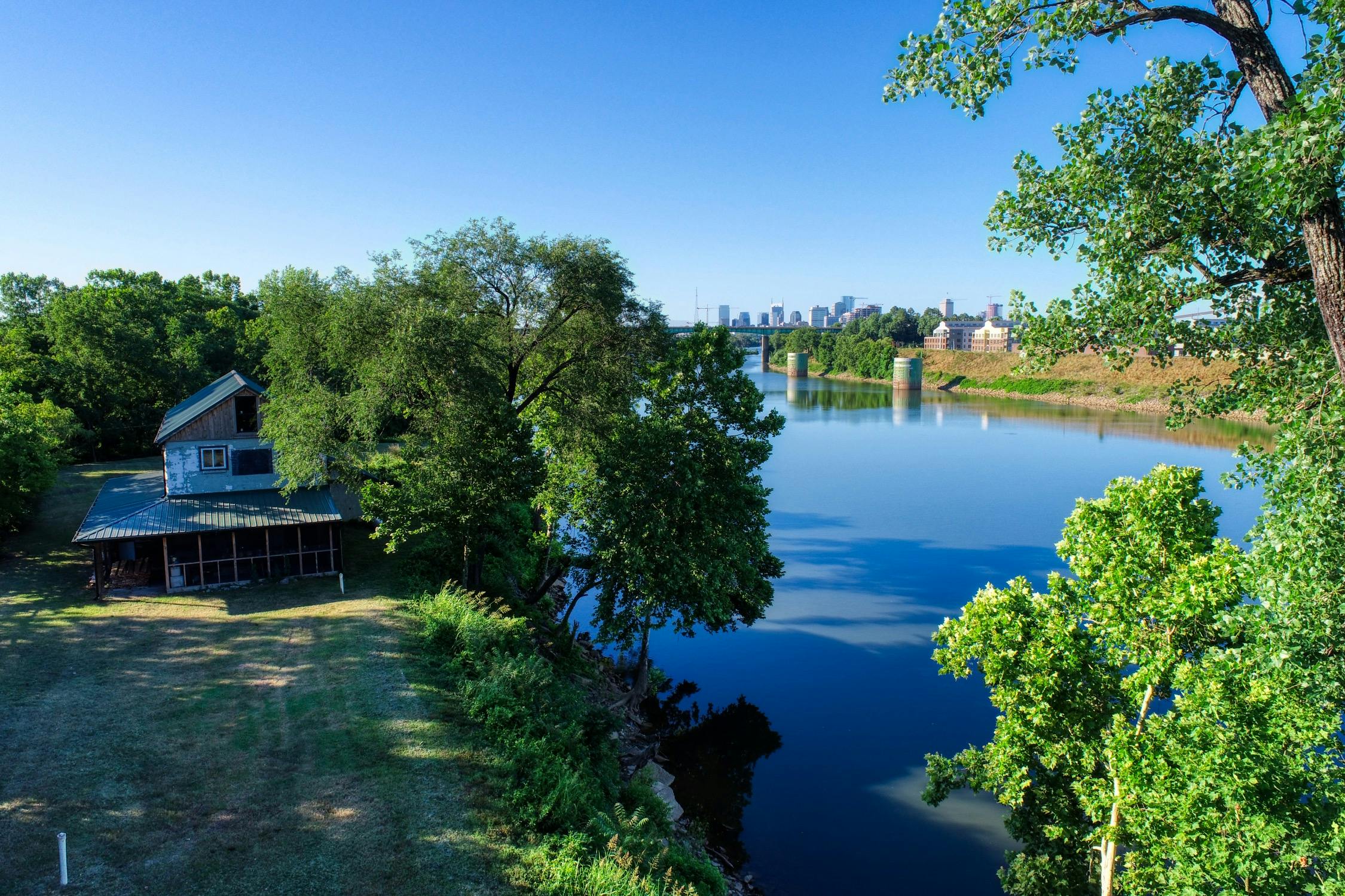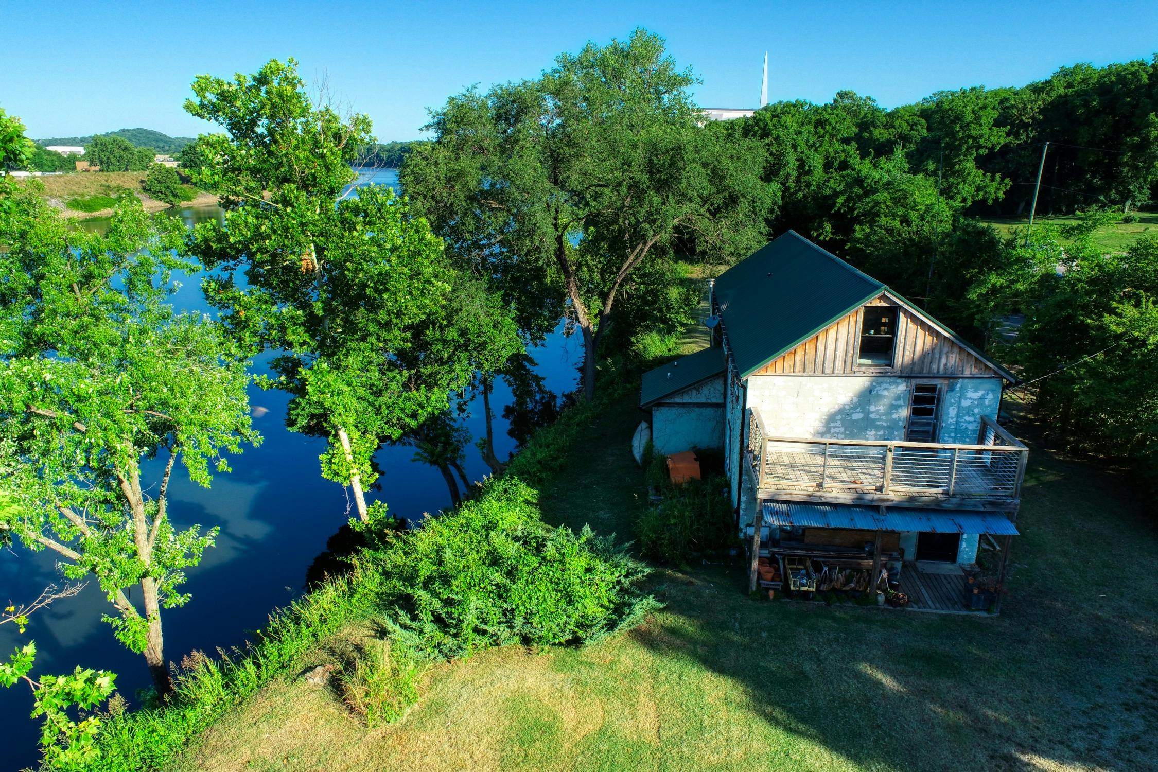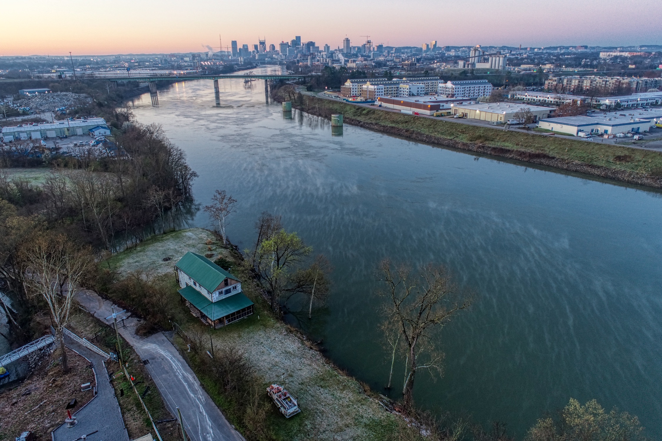 Rustic and eccentric on the bank of the Cumberland River with downtown views.