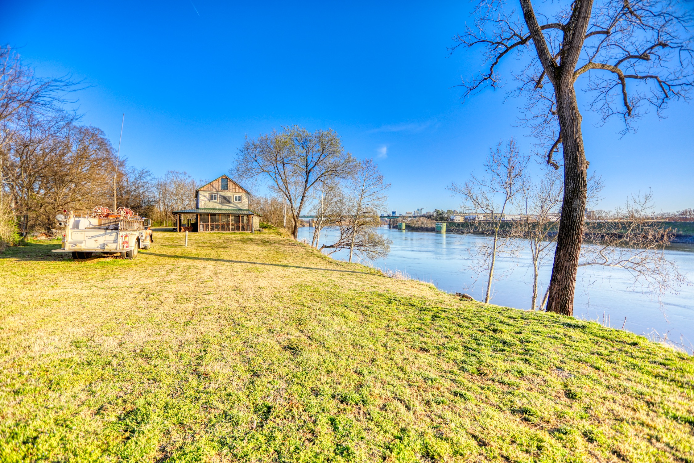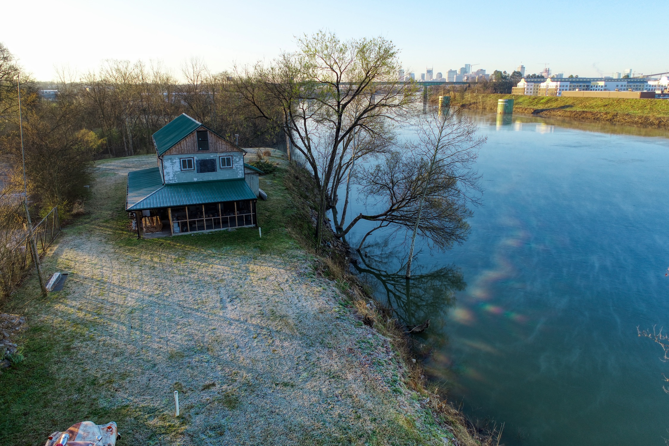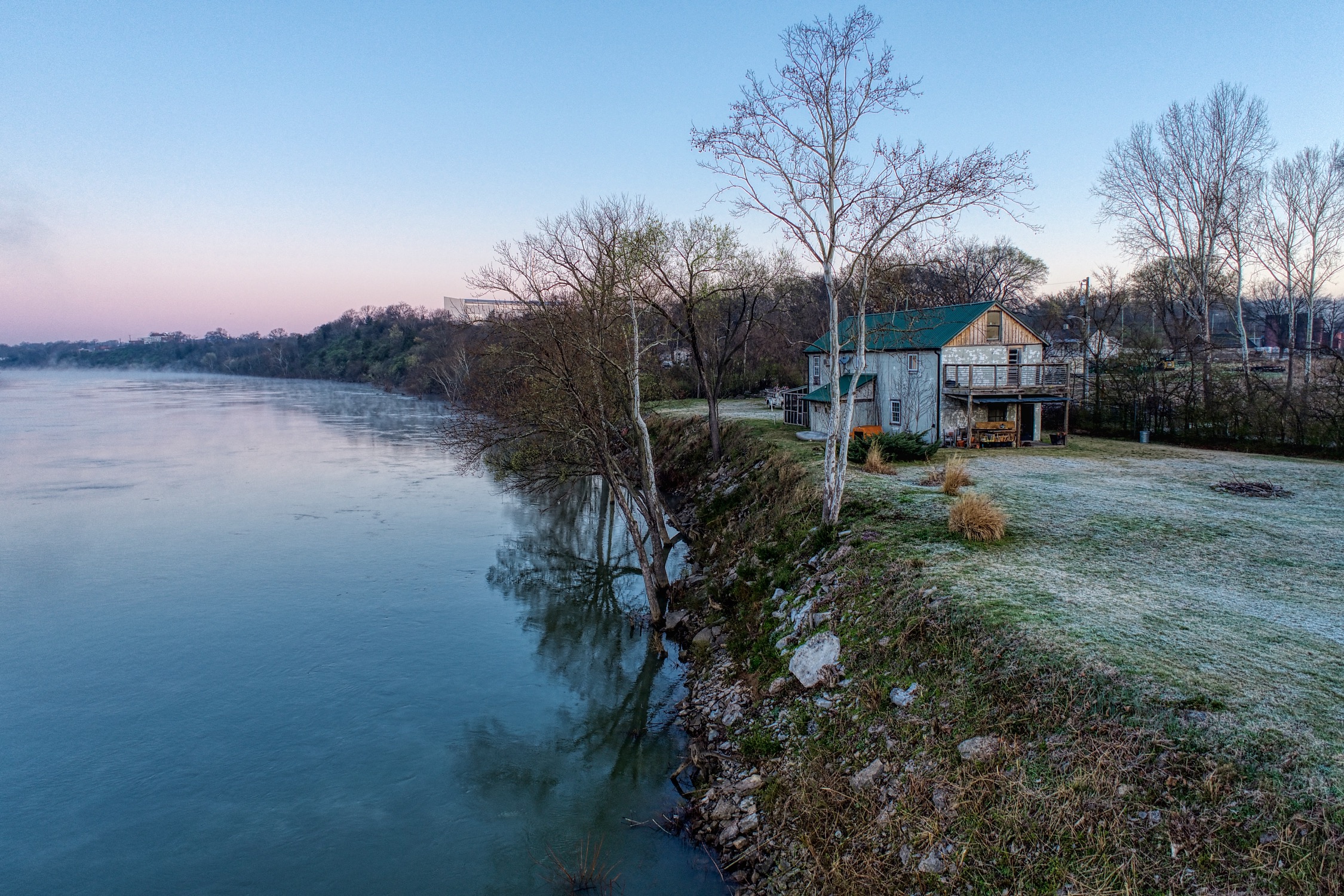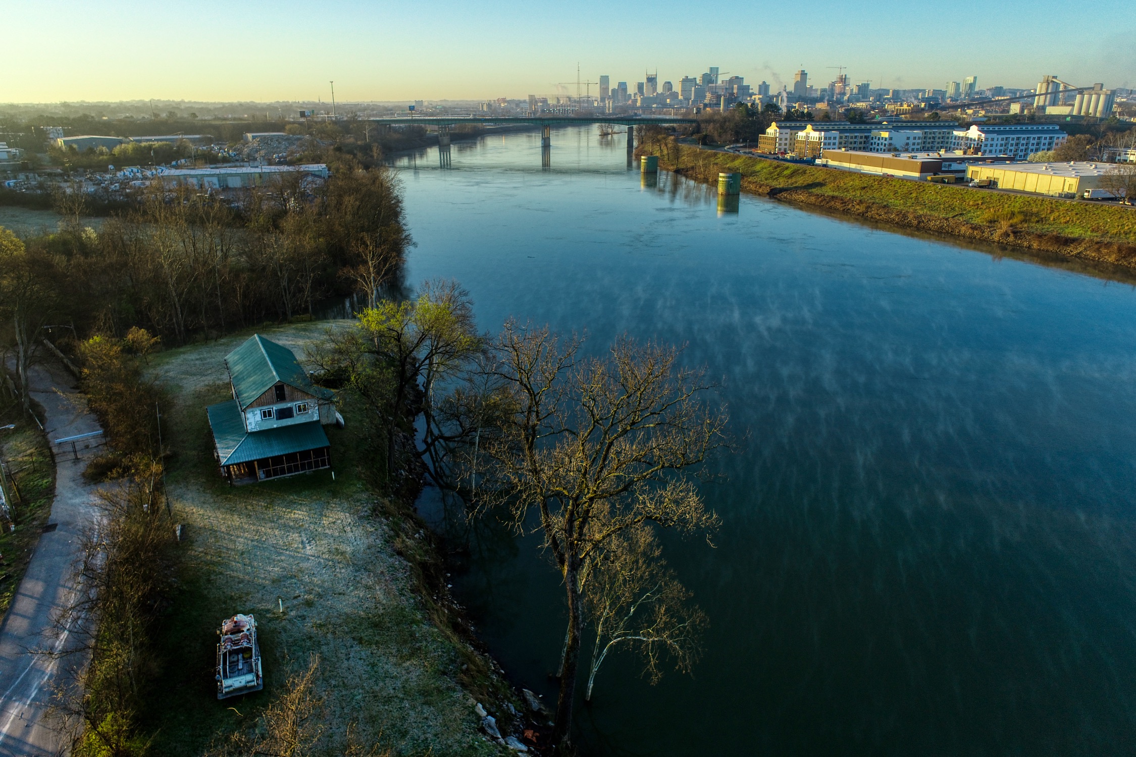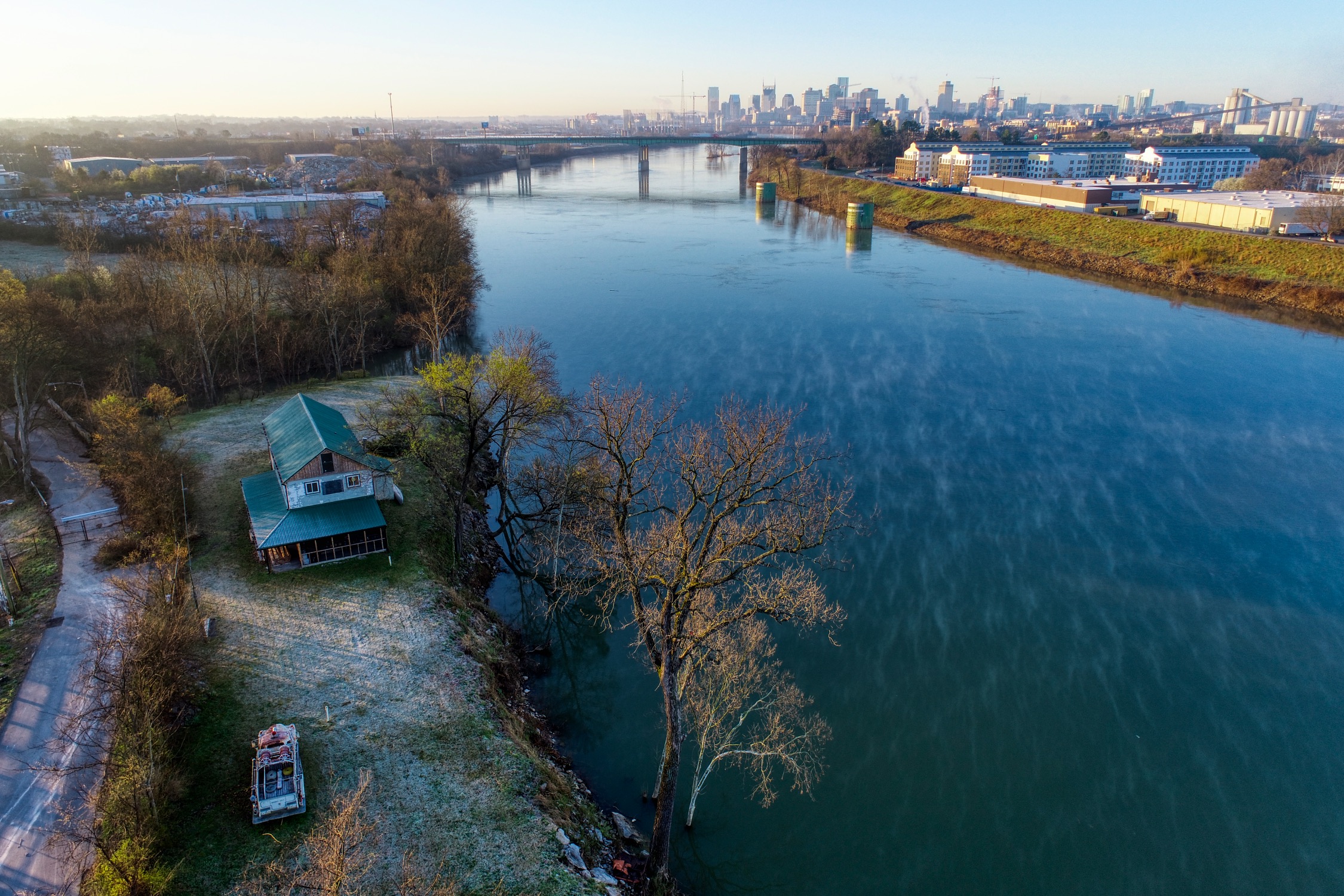 Rustic and eccentric on the bank of the Cumberland River with downtown views.