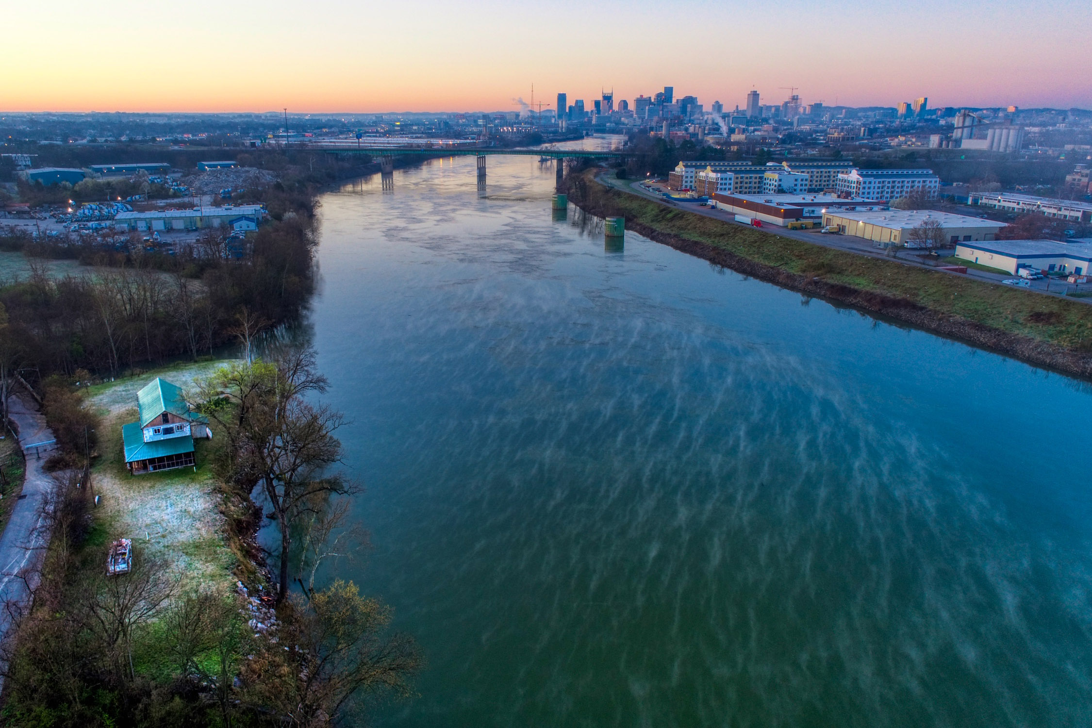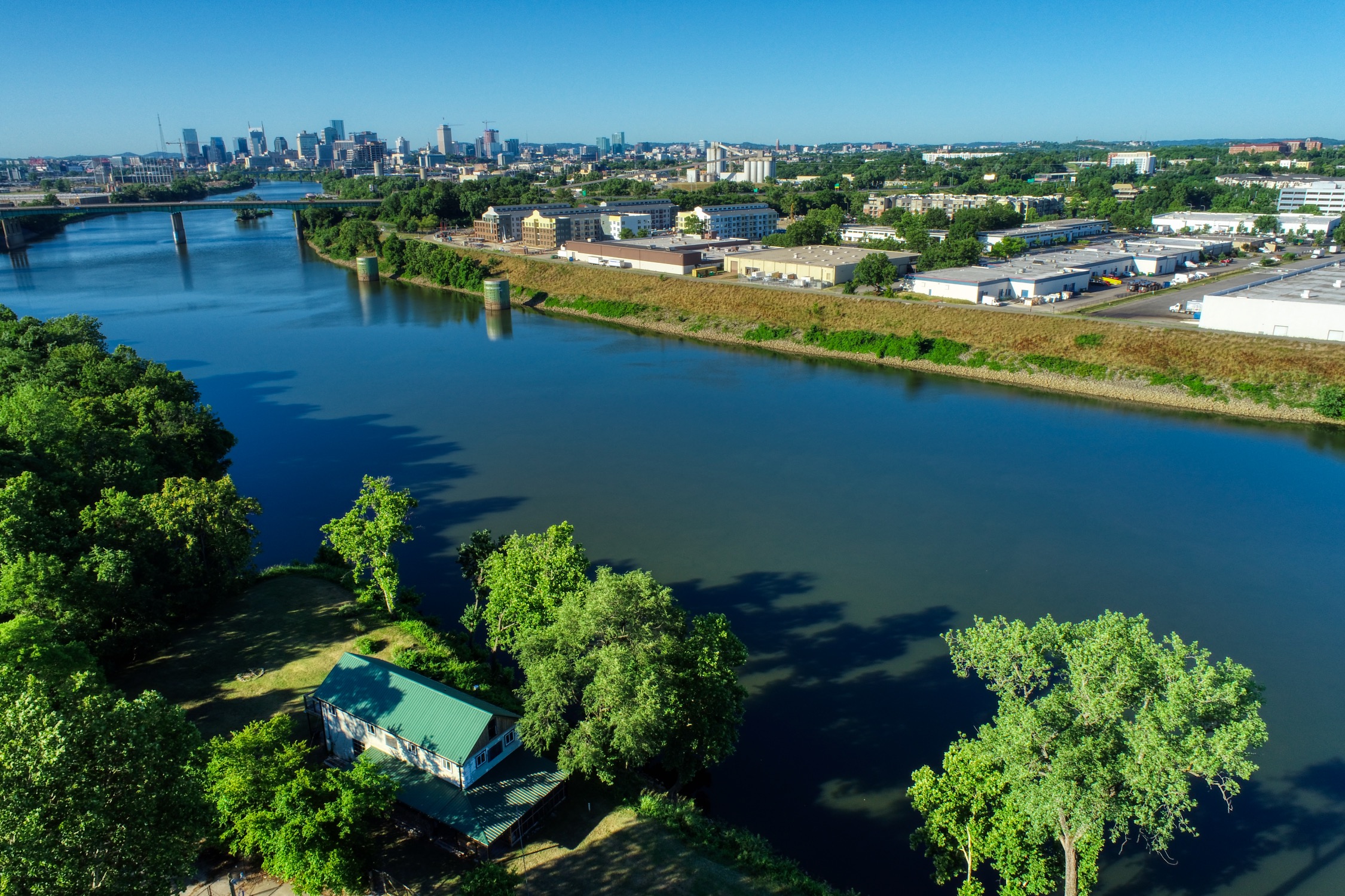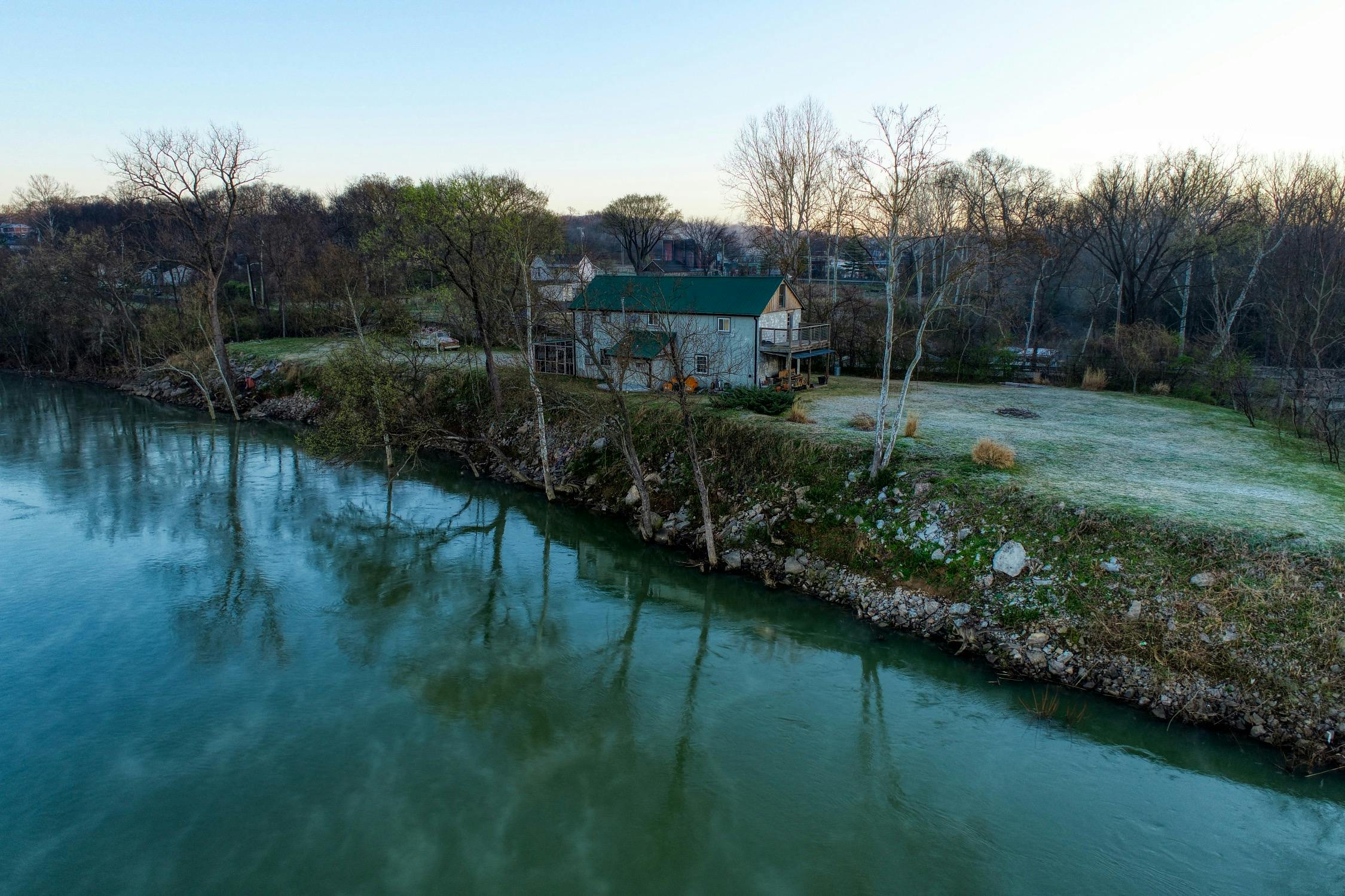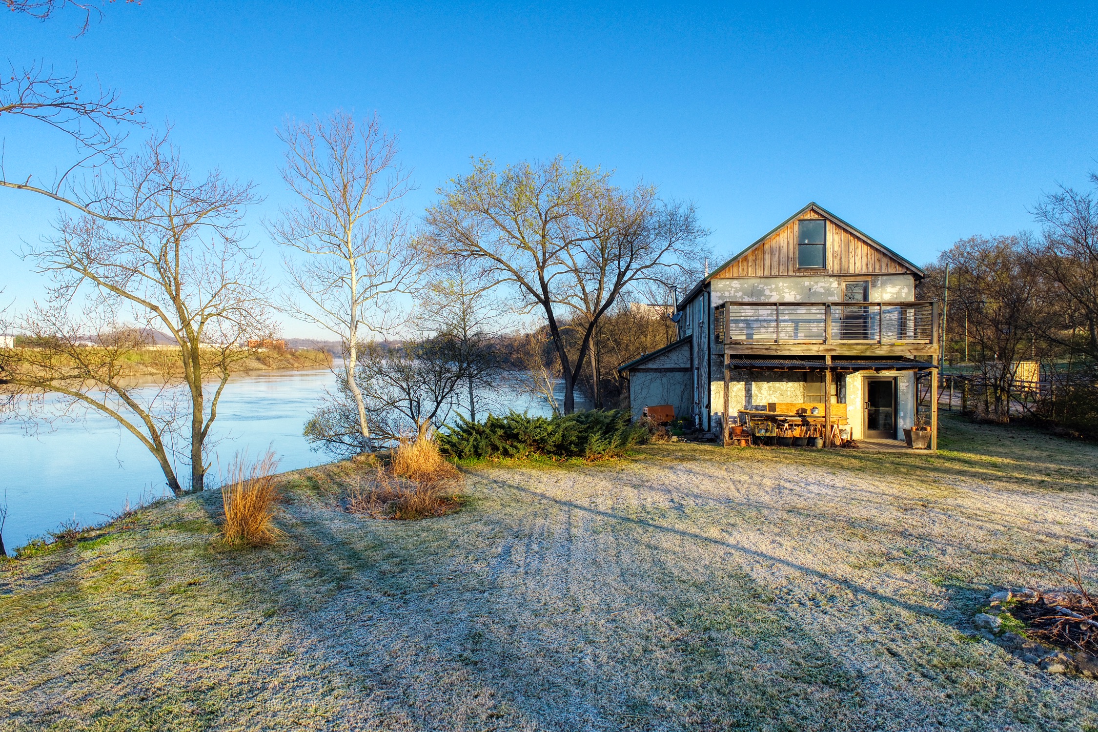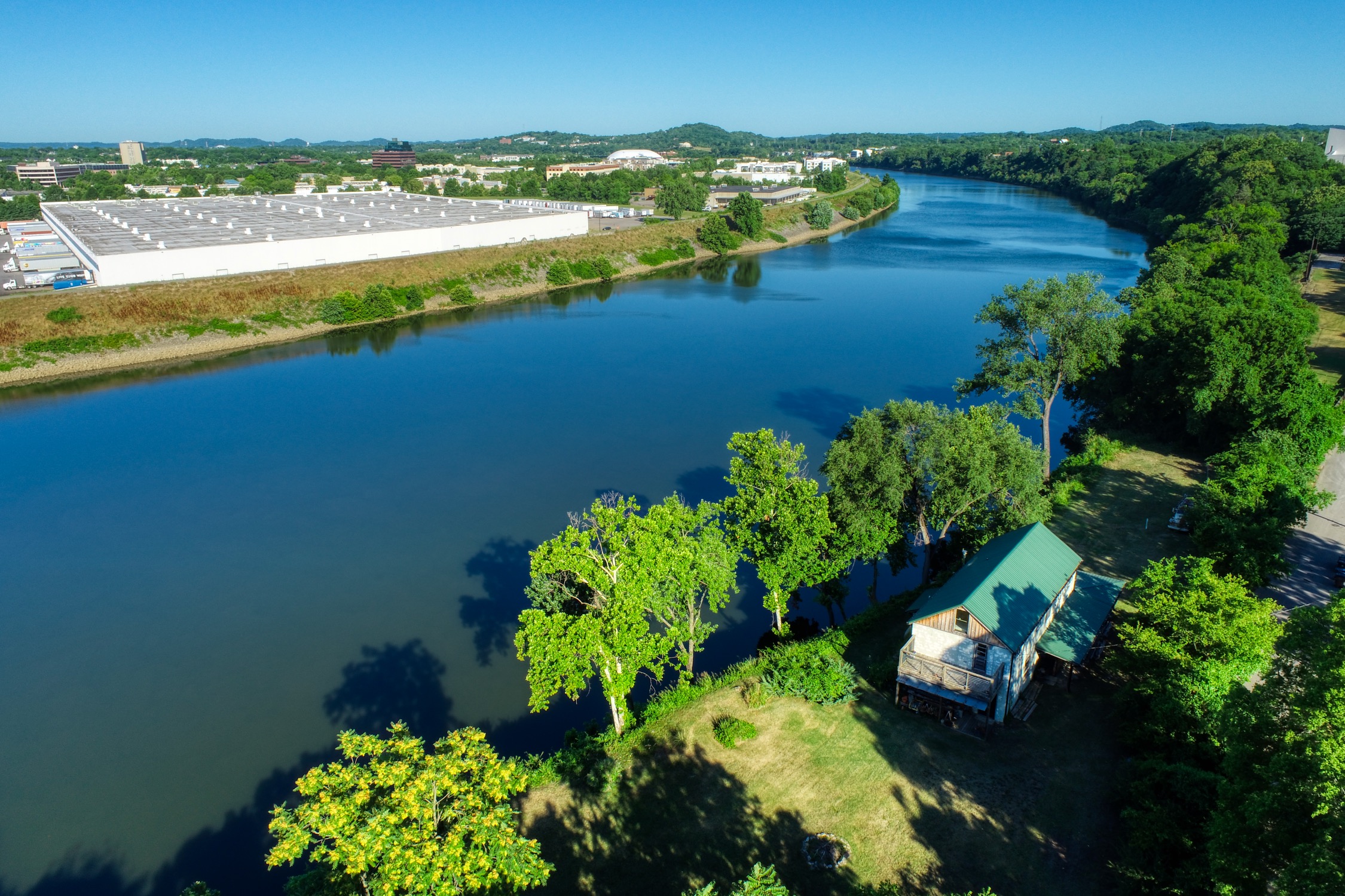 Rustic and eccentric on the bank of the Cumberland River with downtown views.