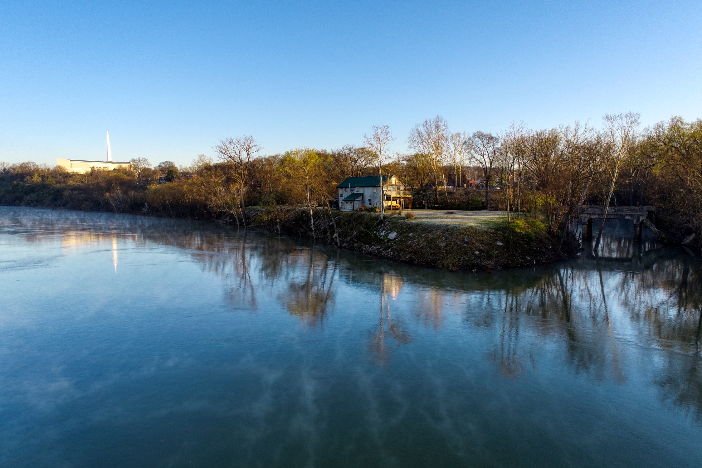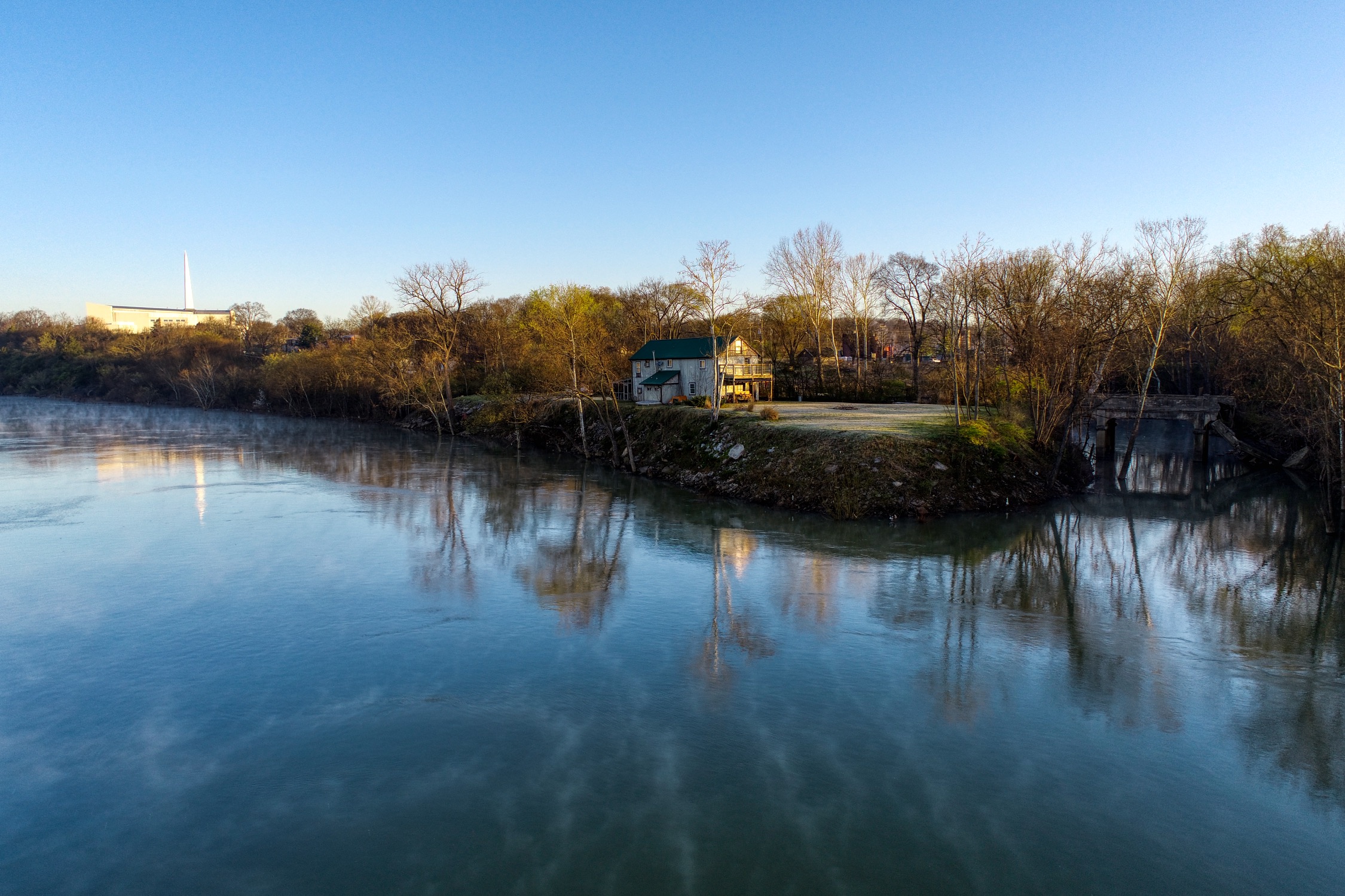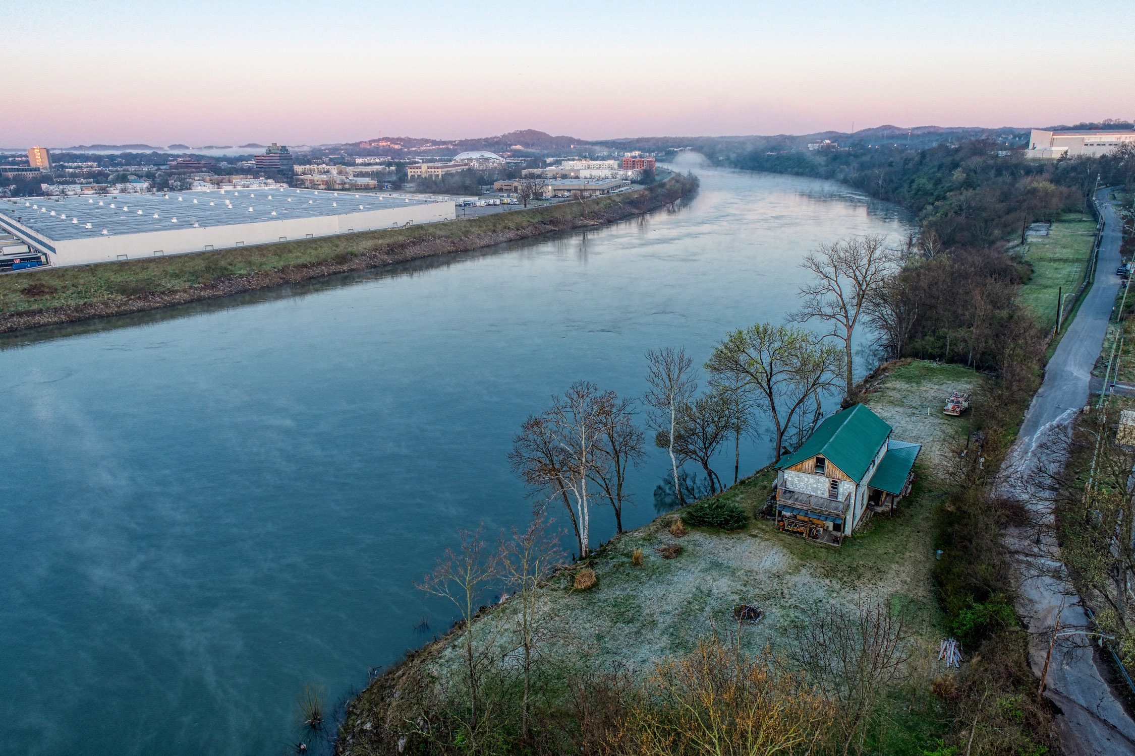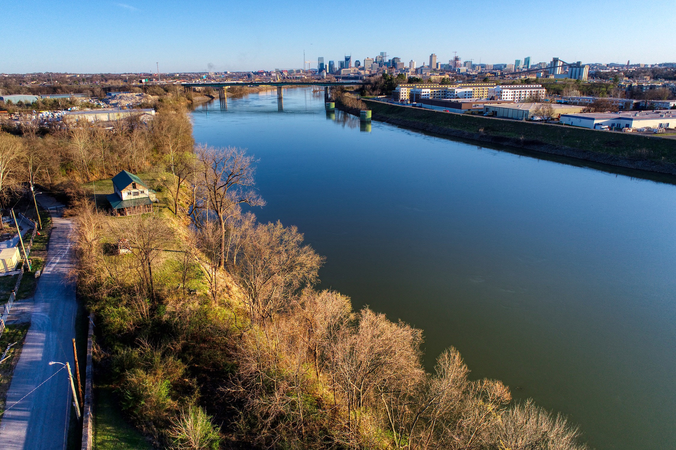 Rustic and eccentric on the bank of the Cumberland River with downtown views.