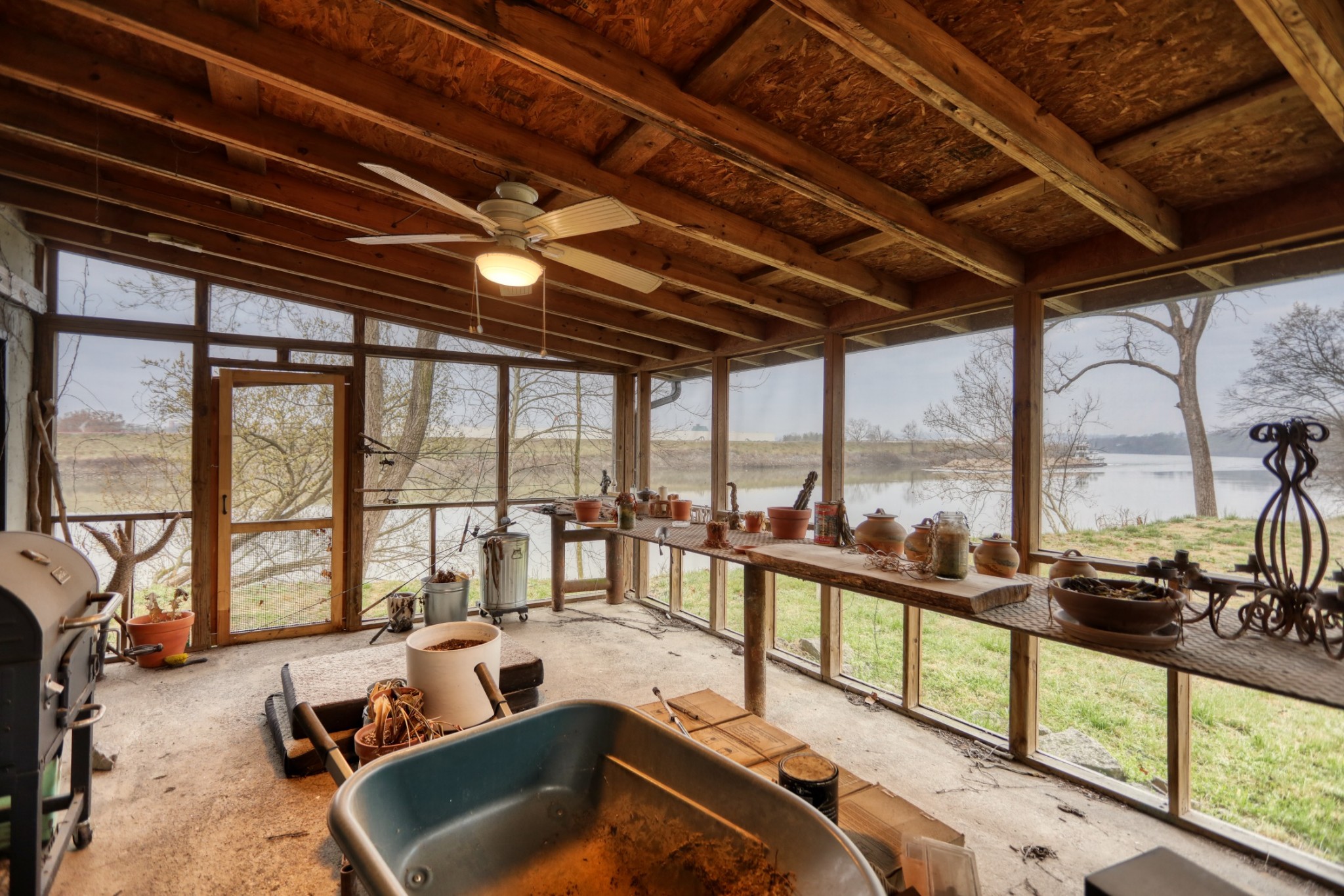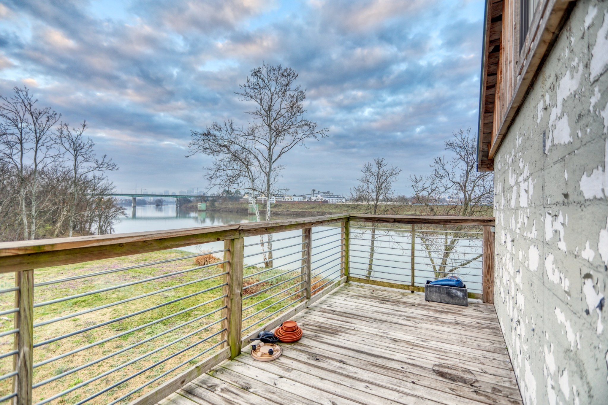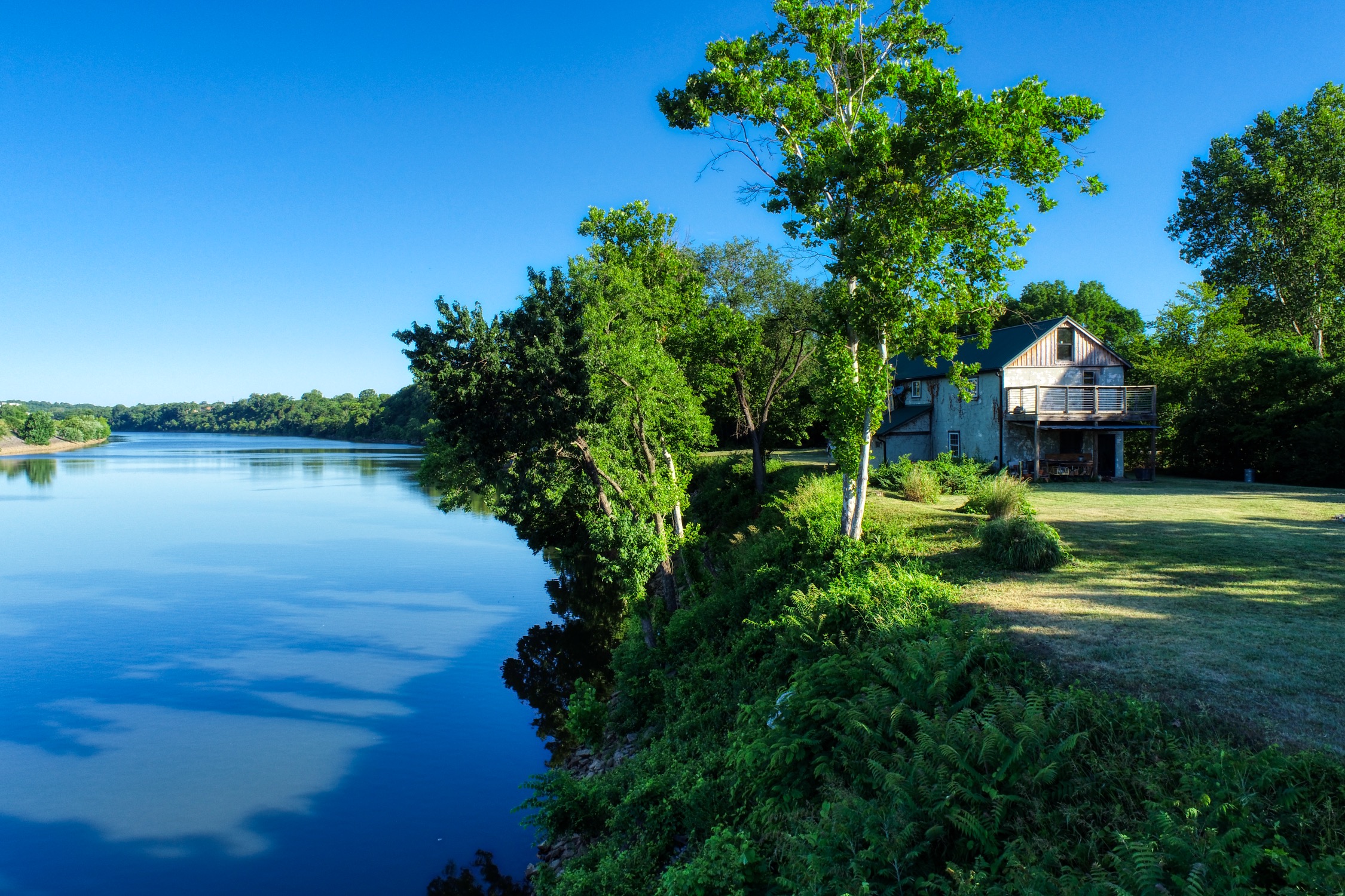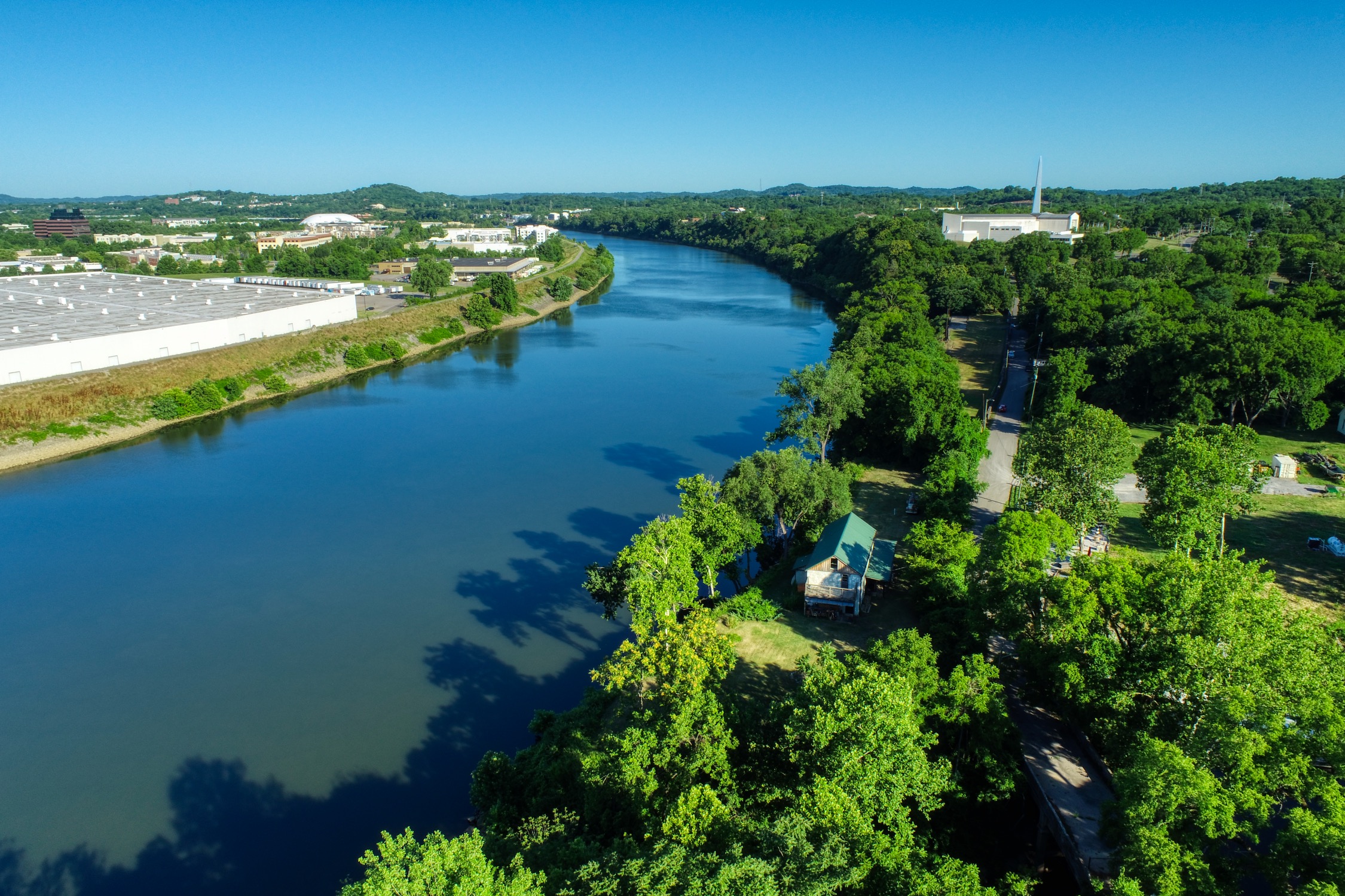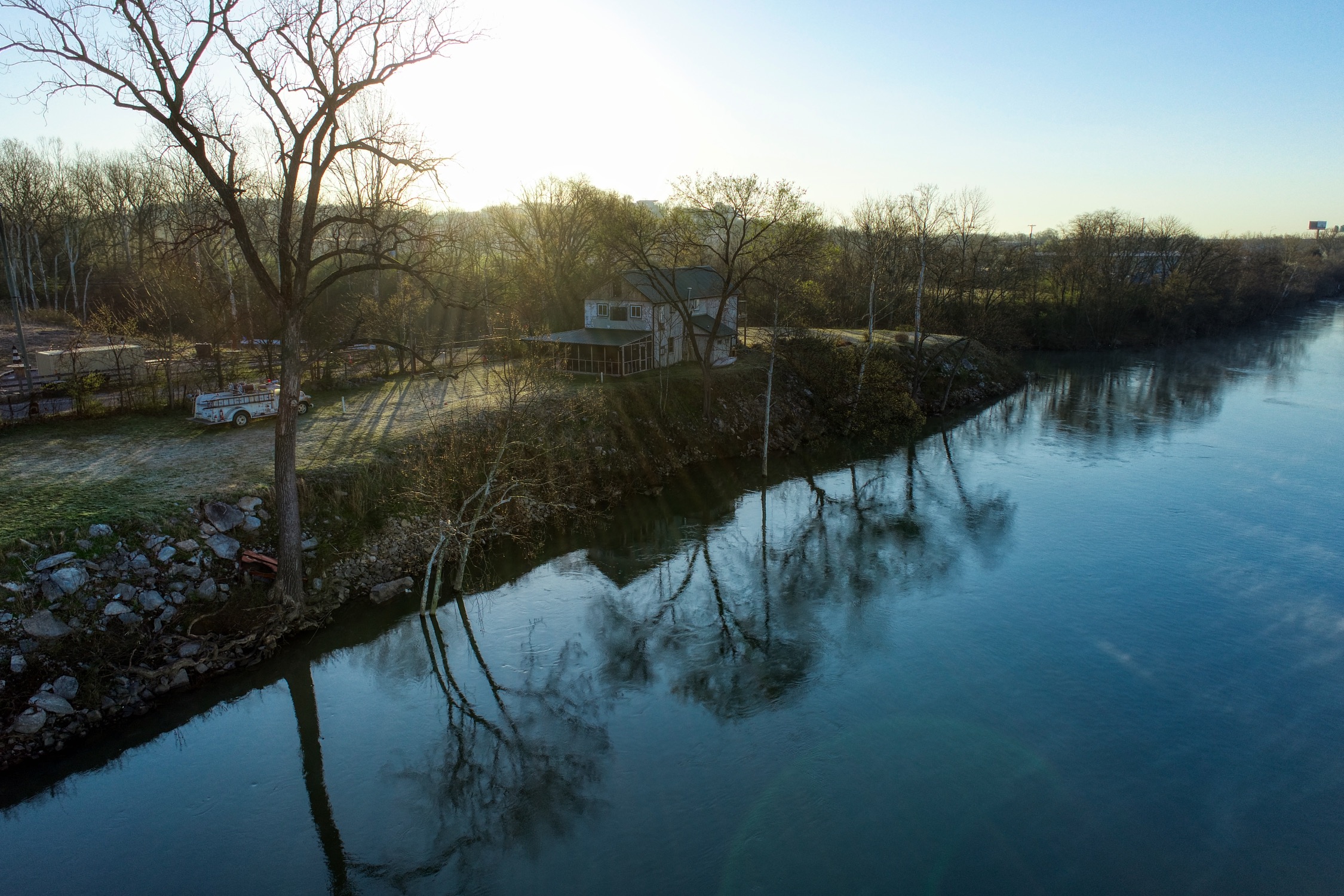 Rustic and eccentric on the bank of the Cumberland River with downtown views.