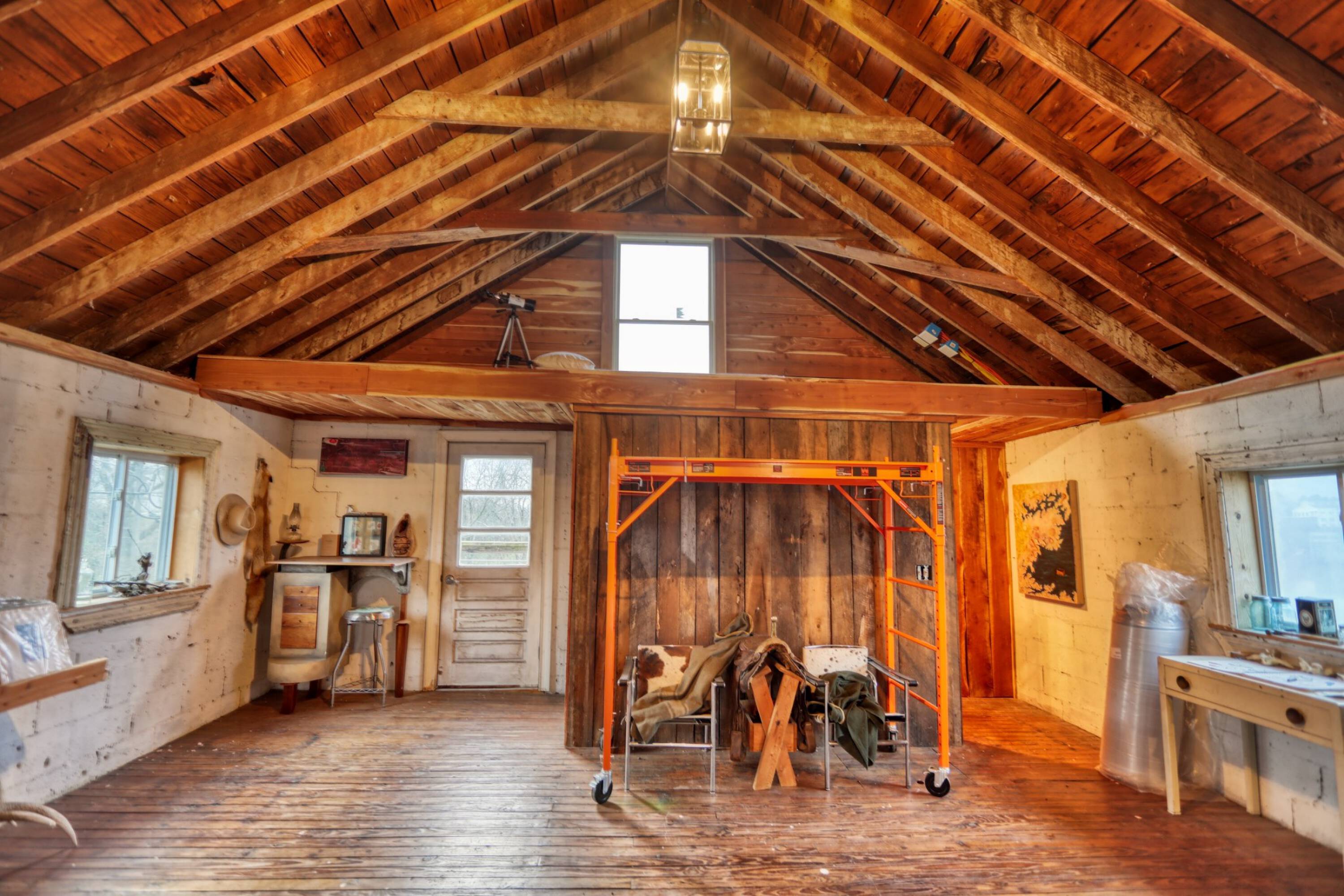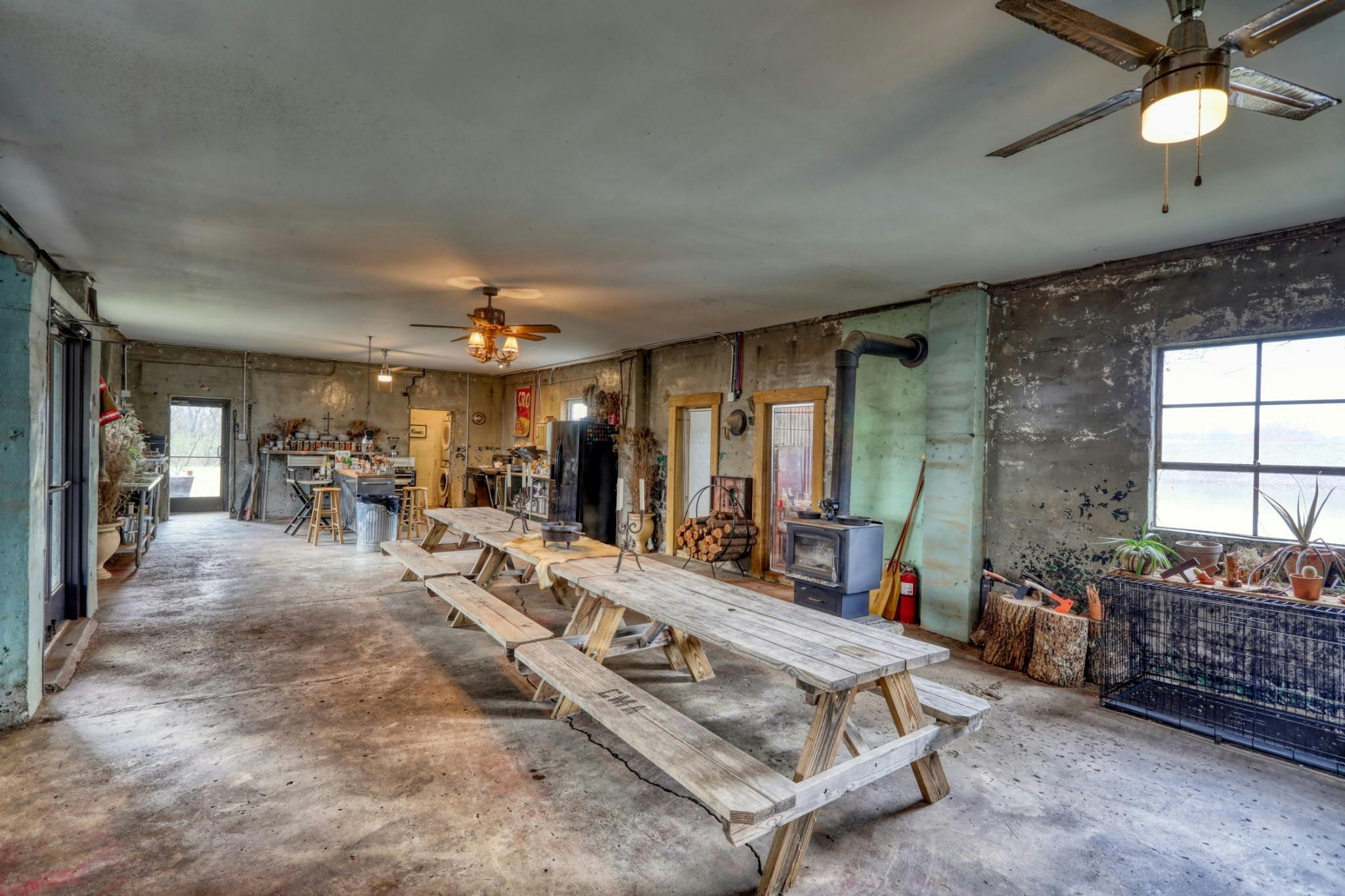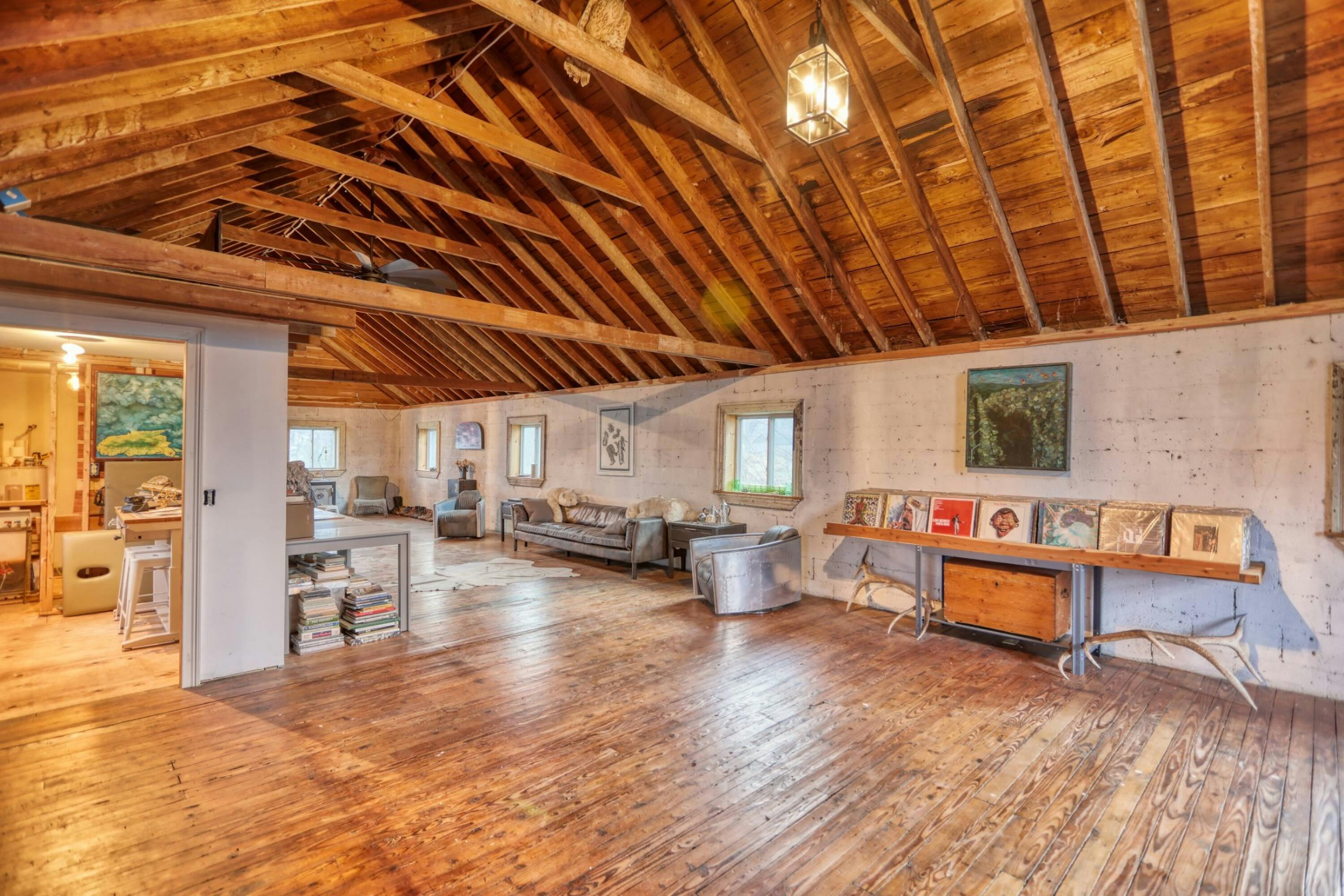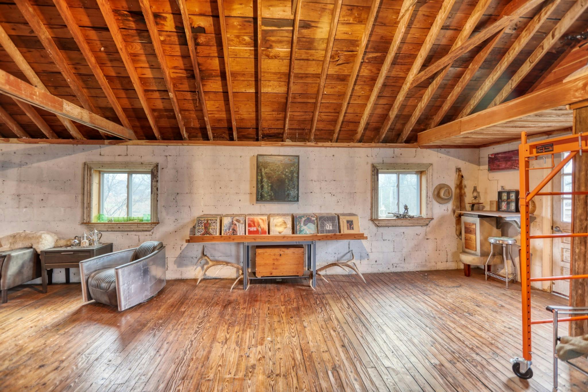 This eclectic cabin features concrete floors, textured walls and vaulted ceilings. It also sits on just over an acre on the Cumberland River and has a vintage truck firetruck on site...this one is too cool to miss!