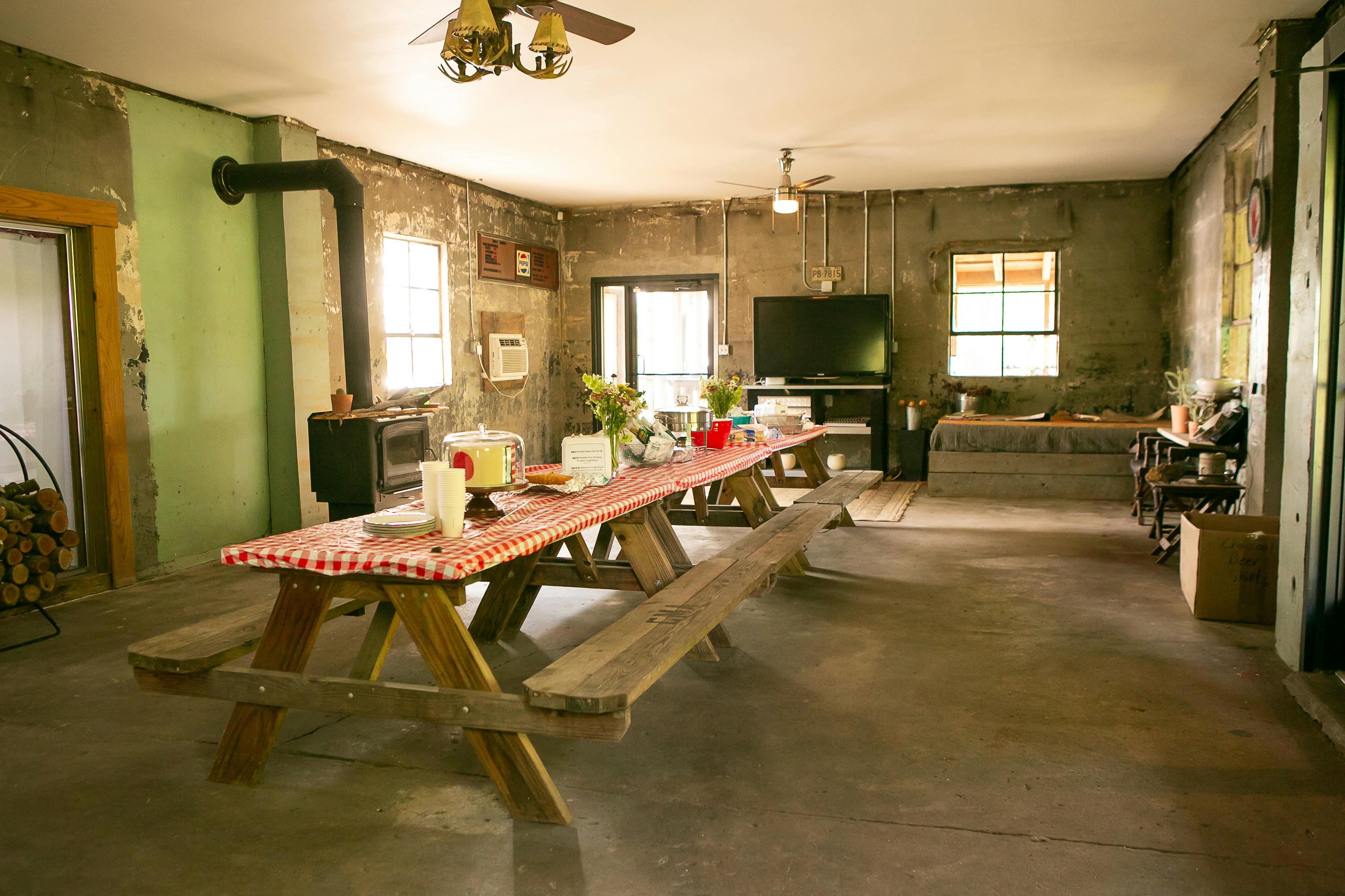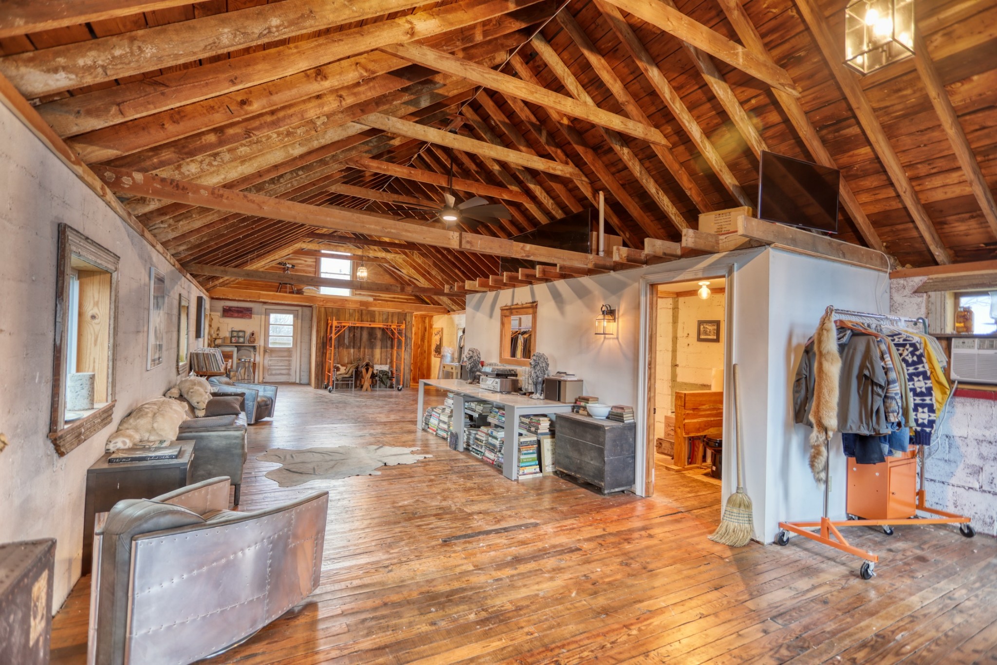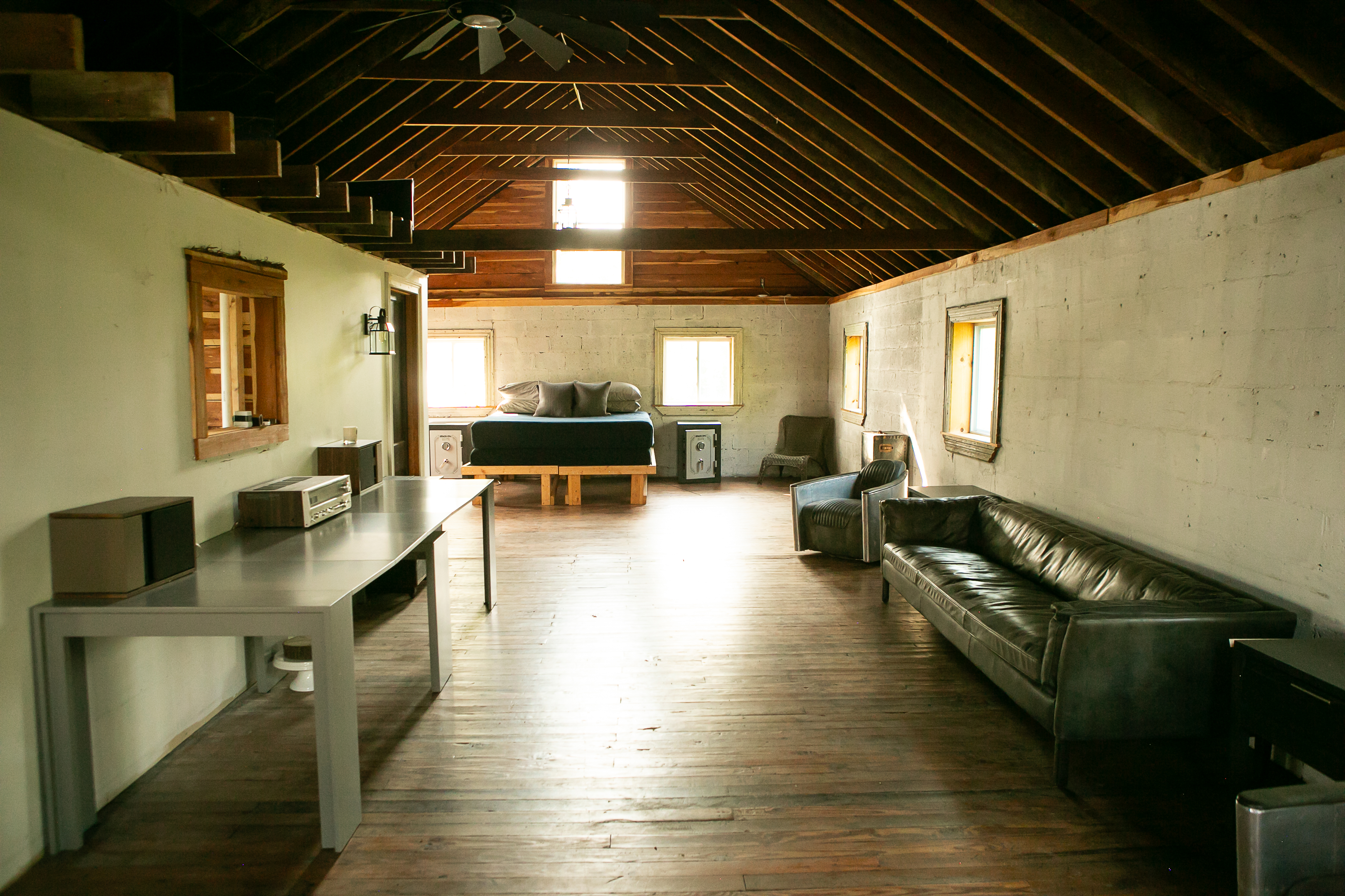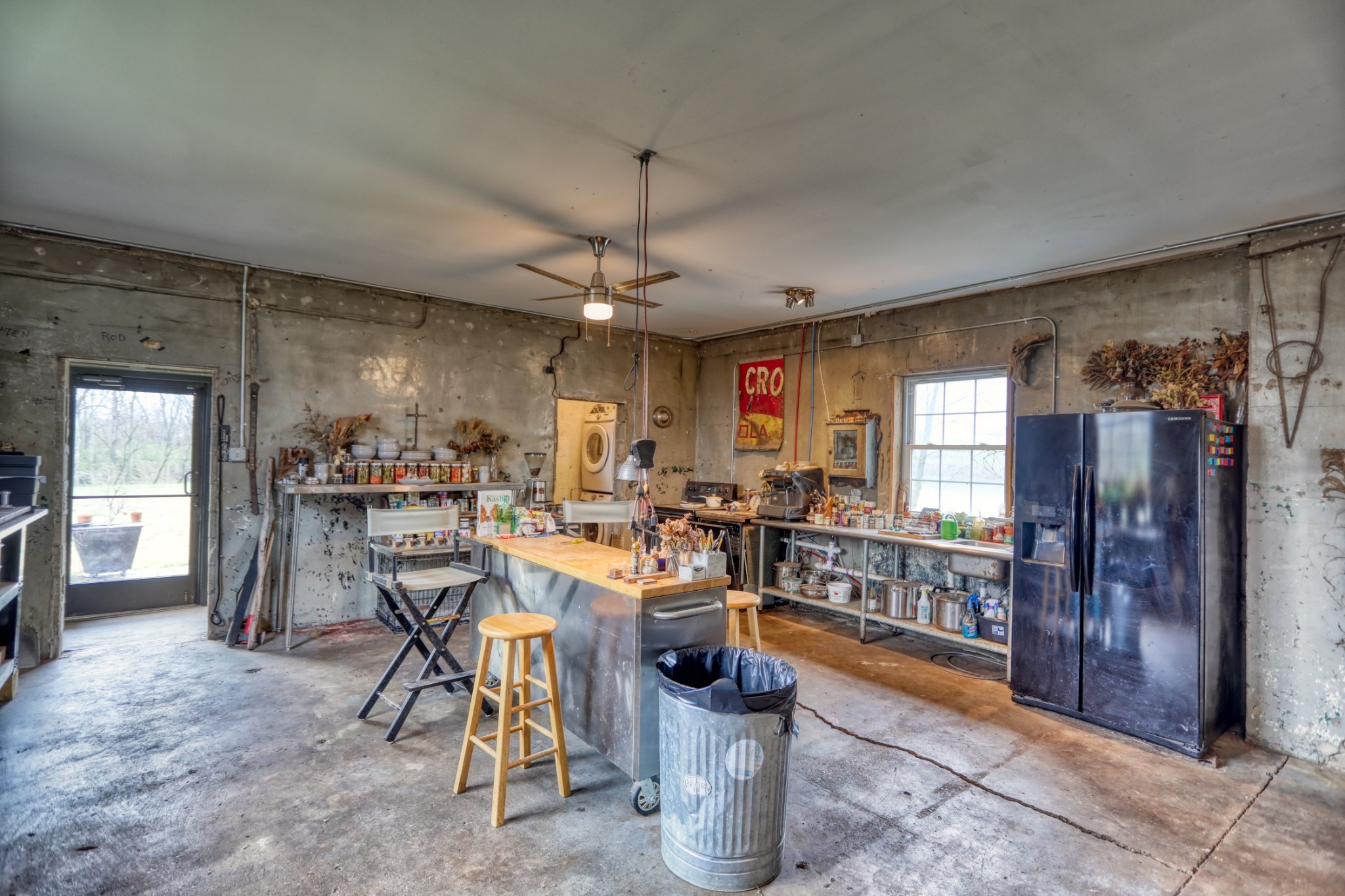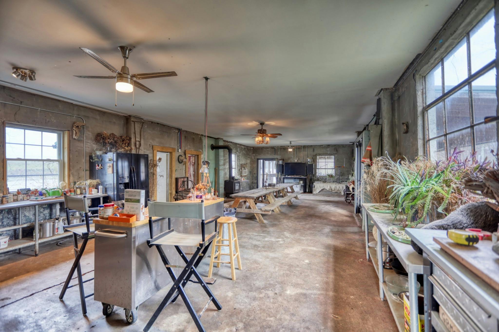 This eclectic cabin features concrete floors, textured walls and vaulted ceilings. It also sits on just over an acre on the Cumberland River and has a vintage truck firetruck on site...this one is too cool to miss!
