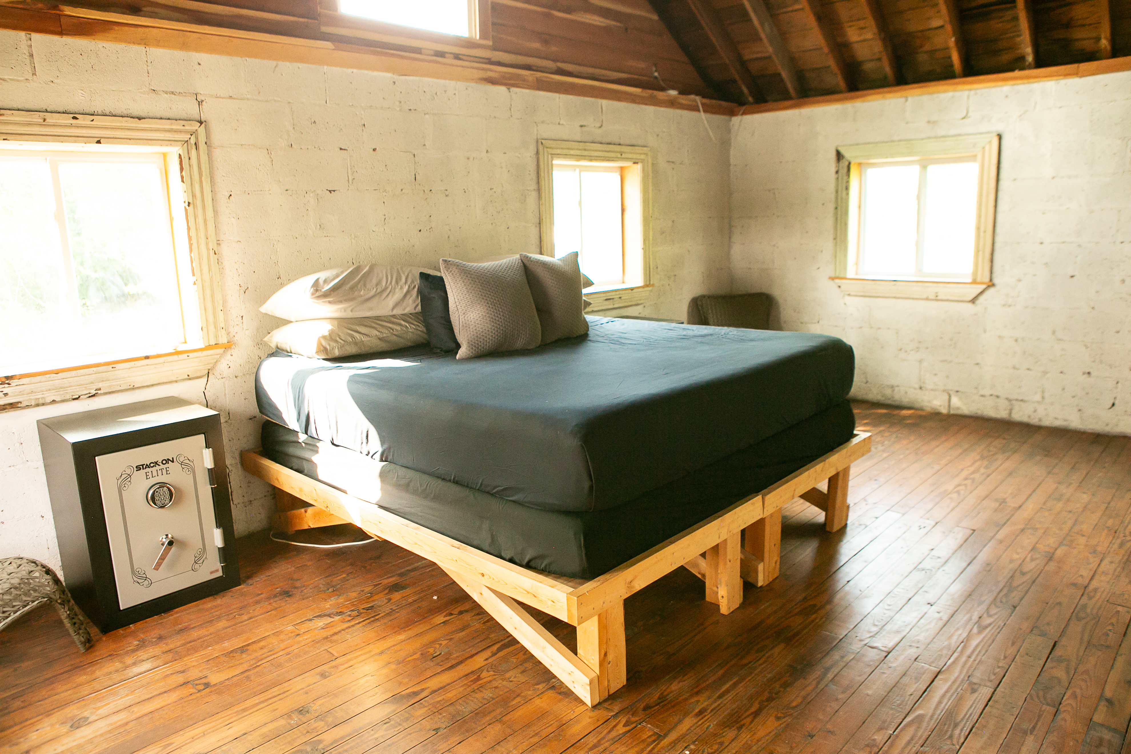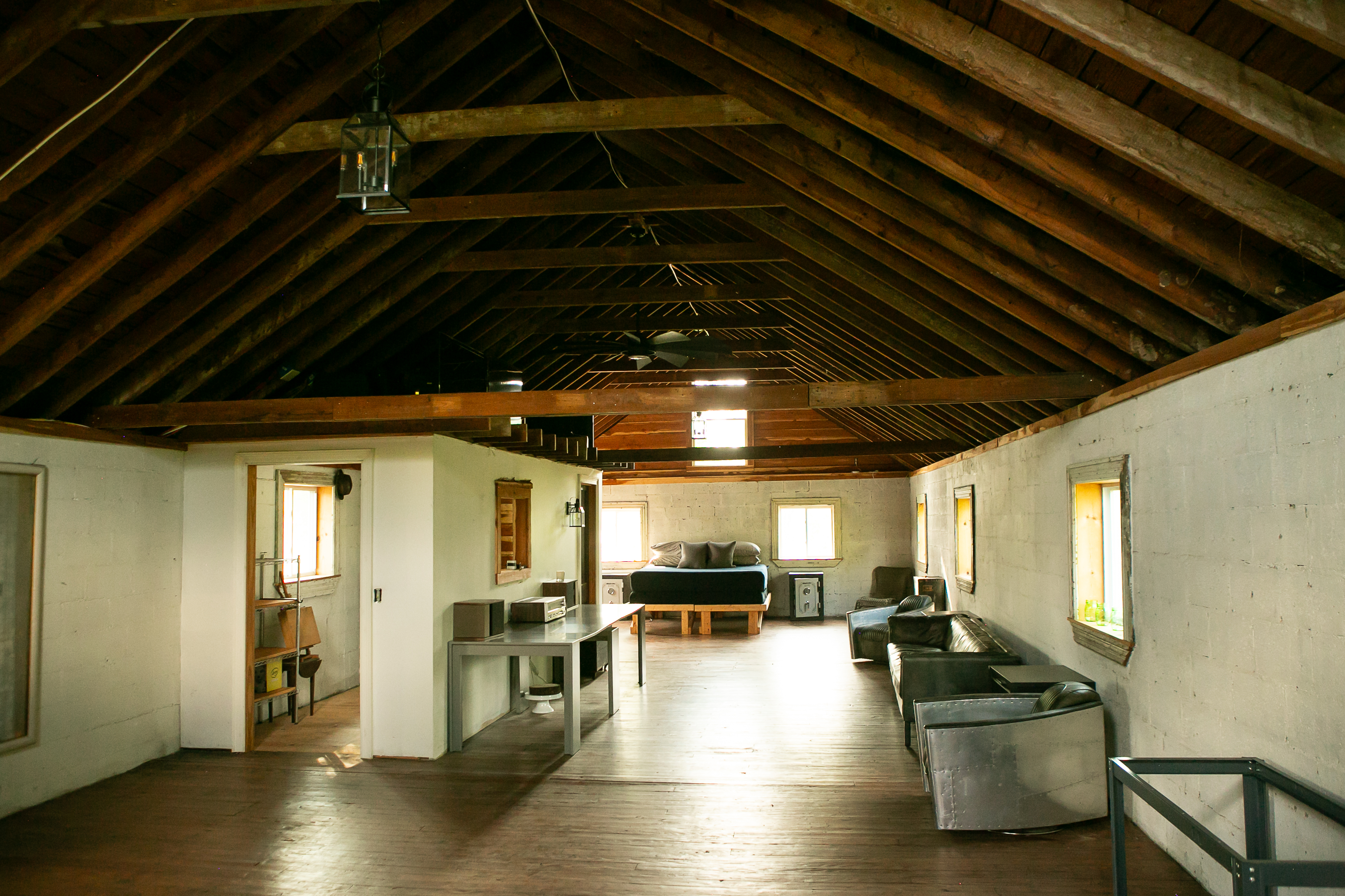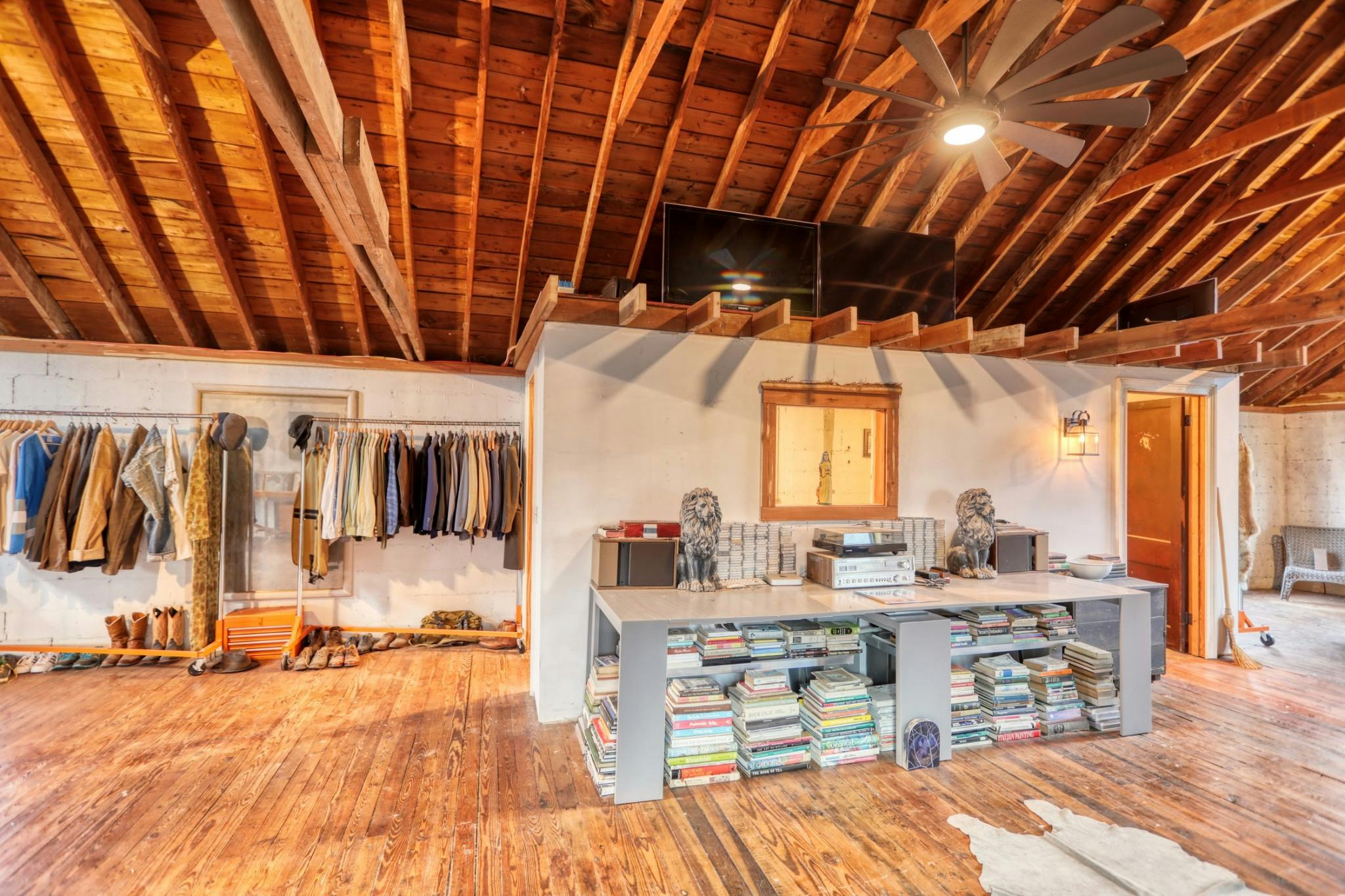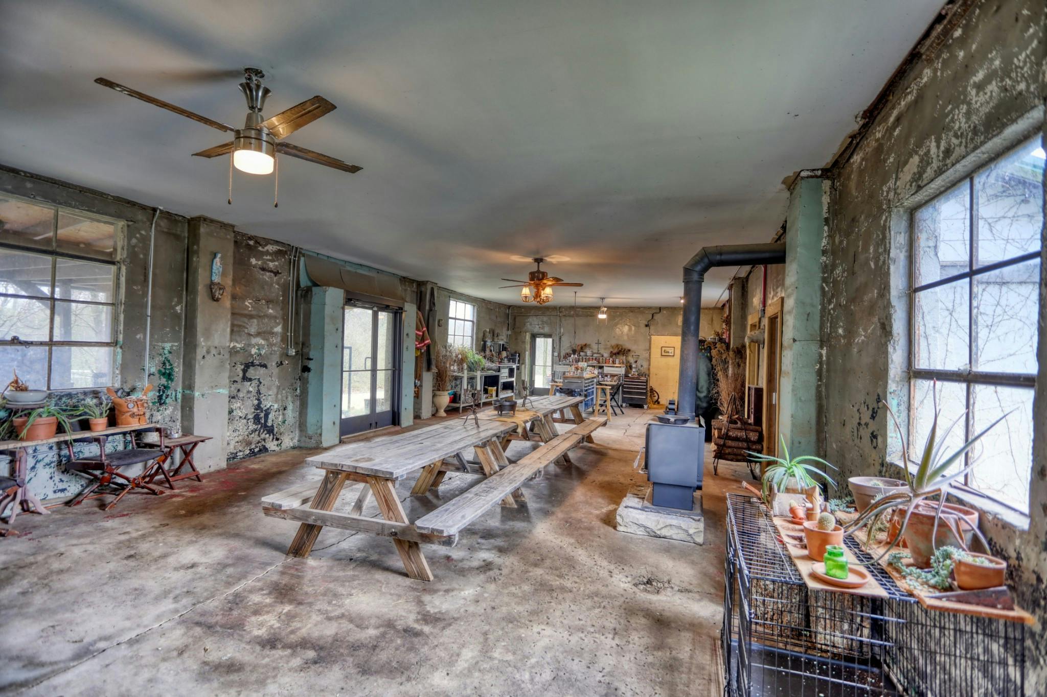 This eclectic cabin features concrete floors, textured walls and vaulted ceilings. It also sits on just over an acre on the Cumberland River and has a vintage truck firetruck on site...this one is too cool to miss!