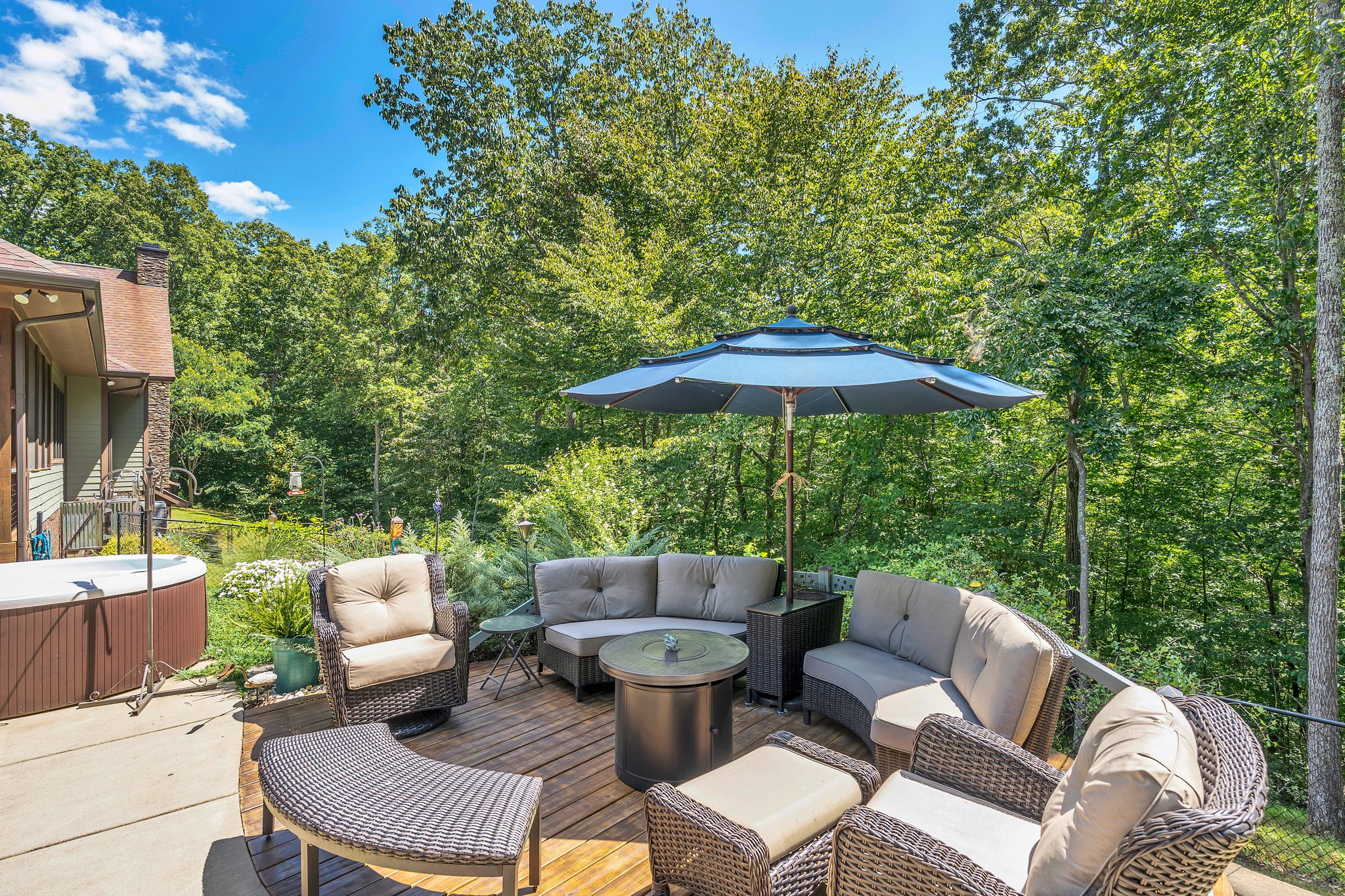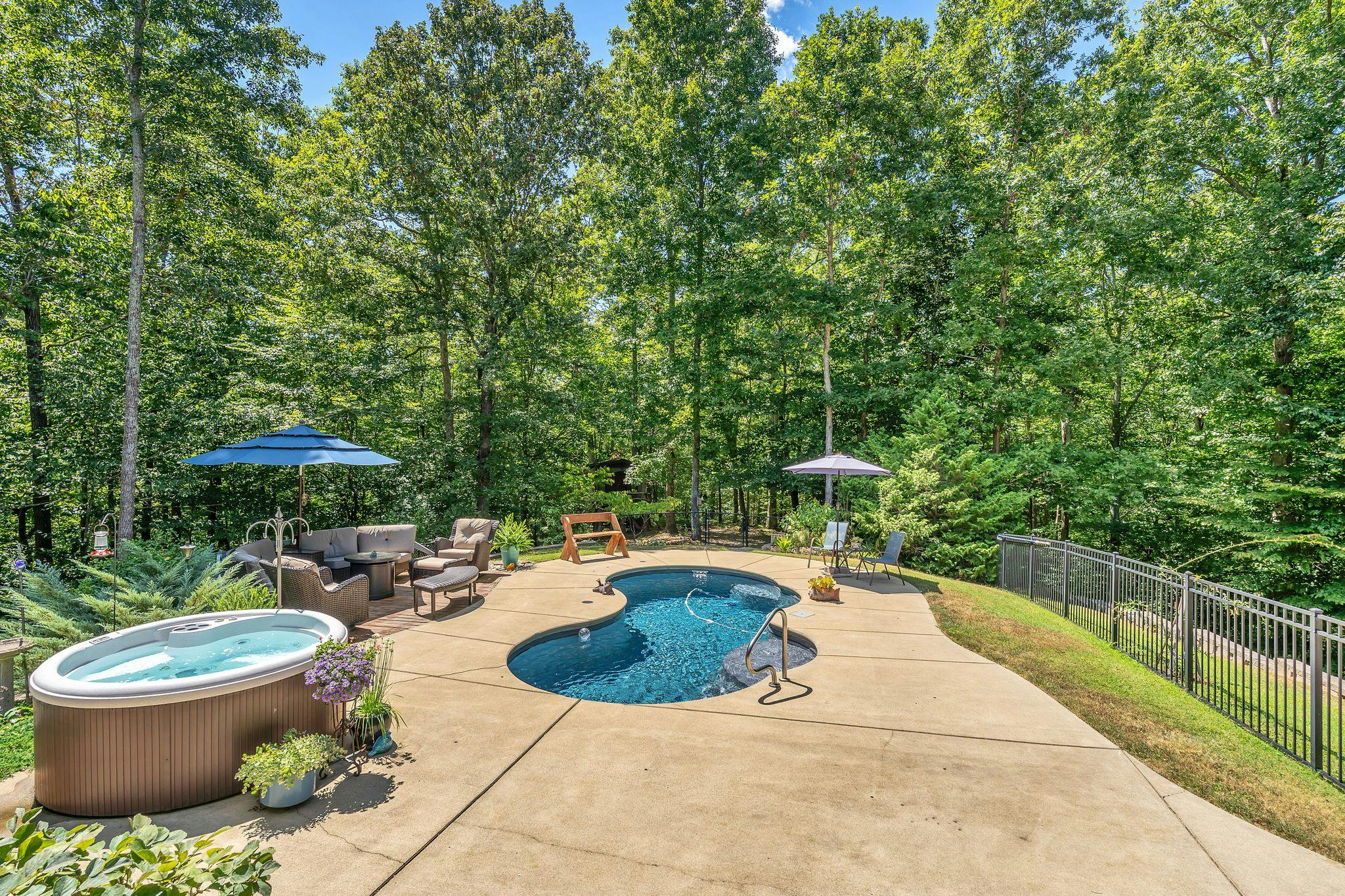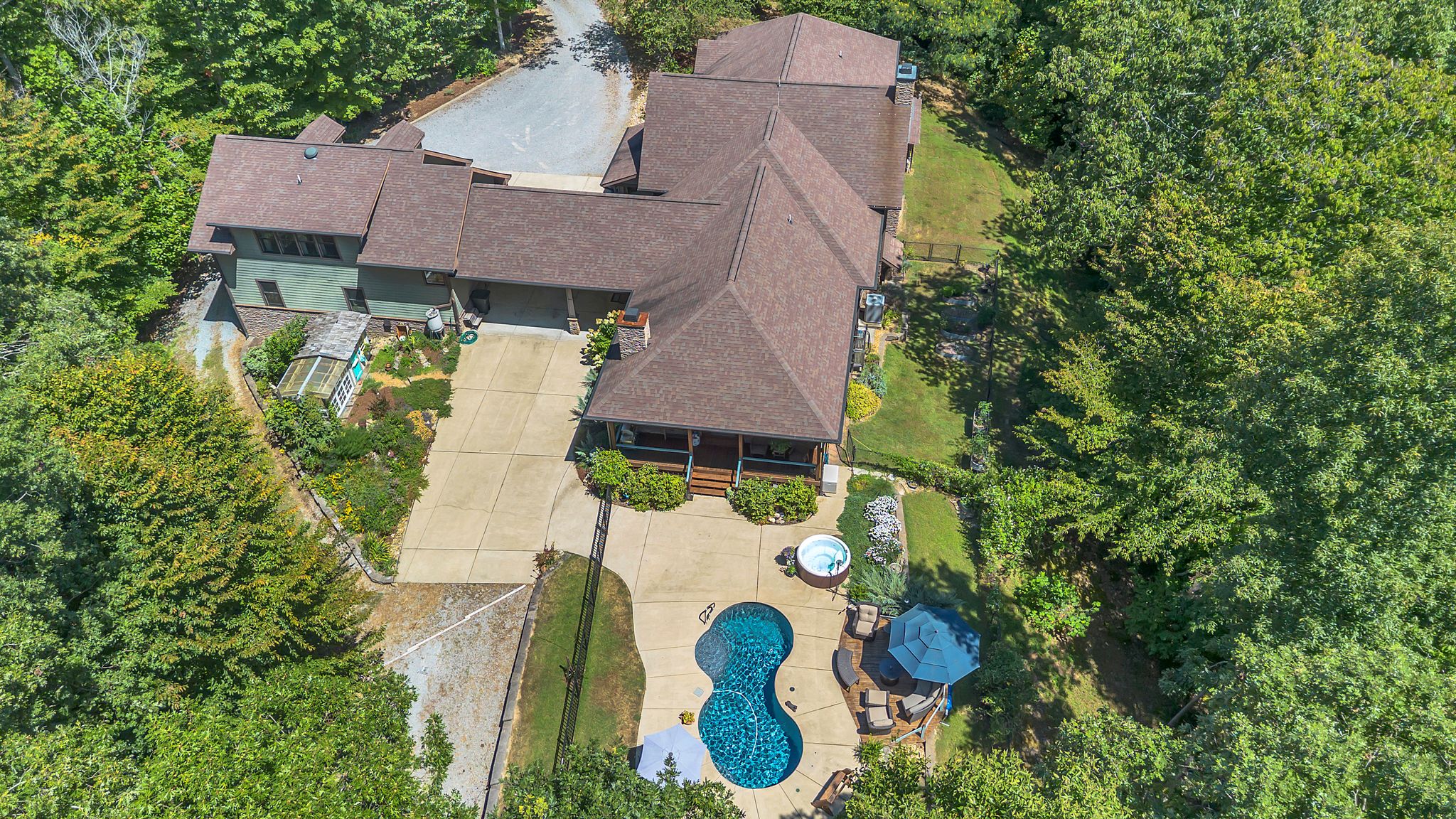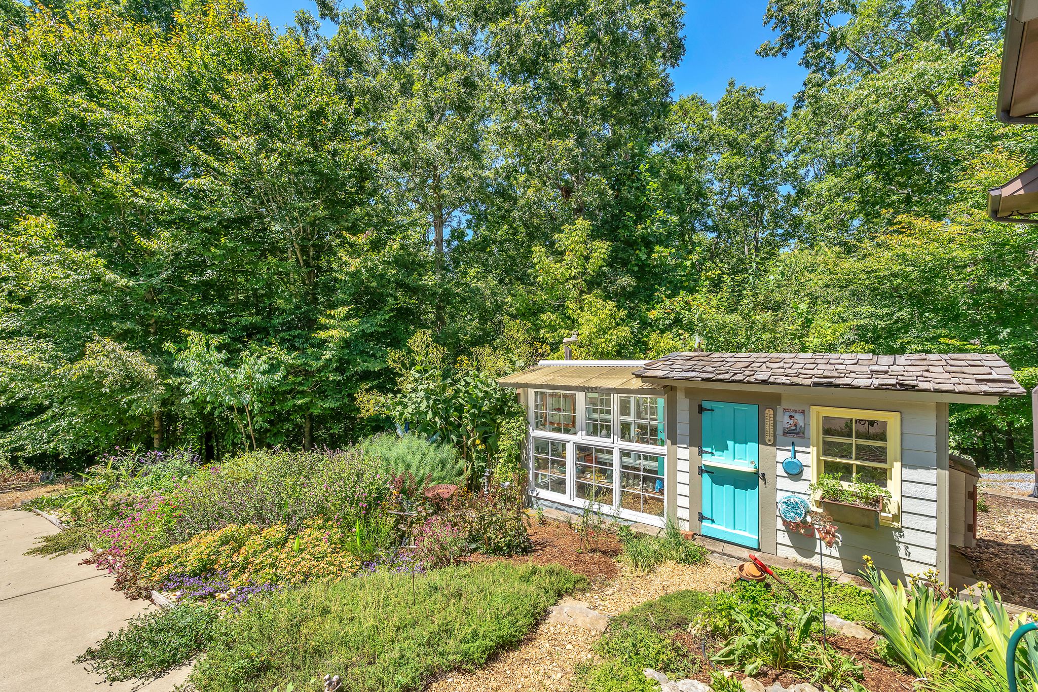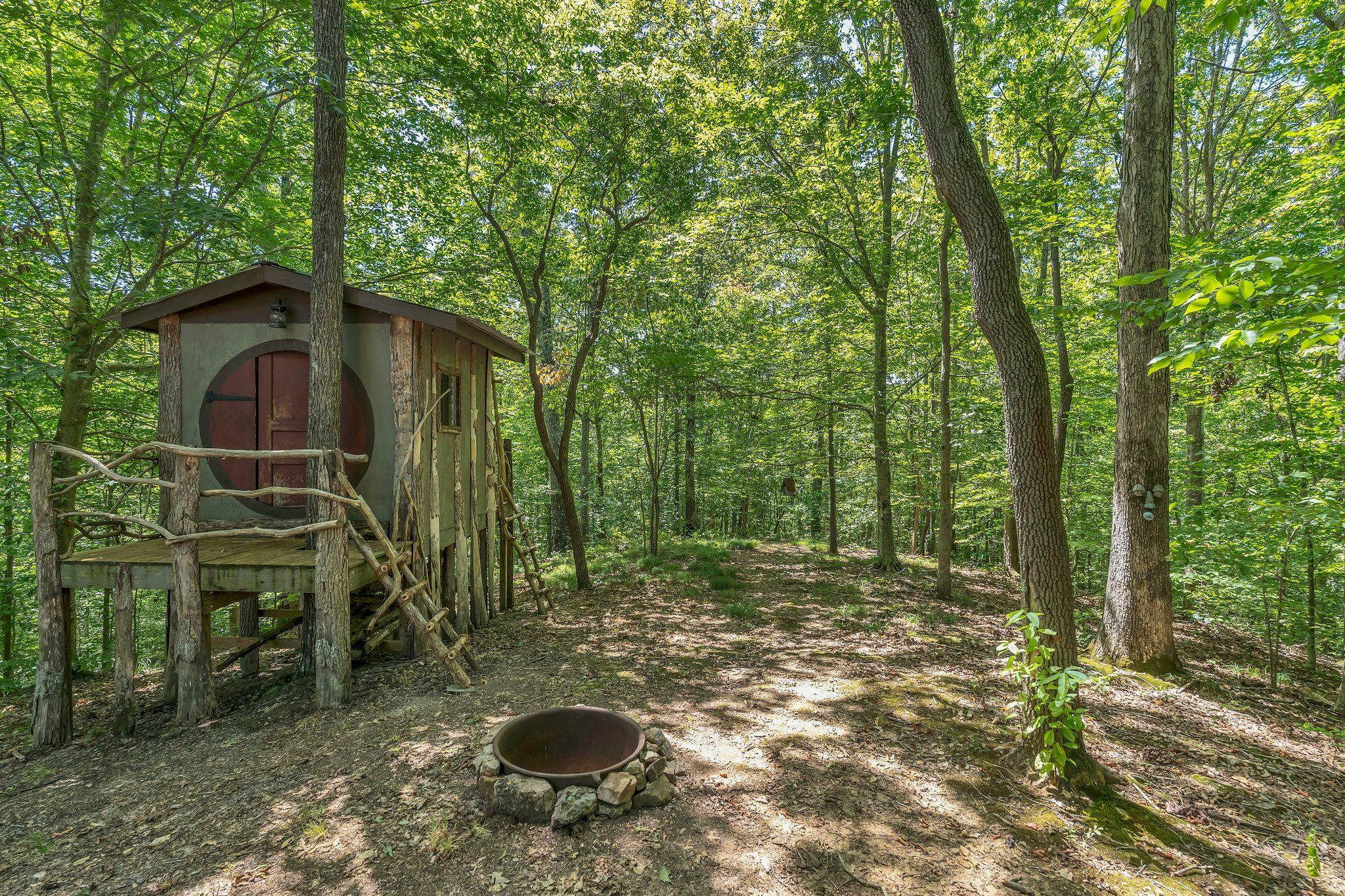 Welcome to Aparawinx Ridge! We are offering both a large open plan home and outdoor opportunities on 12 acres of wooded property. The property includes a swimming pool and 4 creative and photogenic outbuildings. The outbuildings include a colorful garden shed in a lovely perennial garden; a rustic playhouse in the trees that we have called the Hobbit House; a Tennessee style one room cabin on a creek; and a log style one room shed with porch.