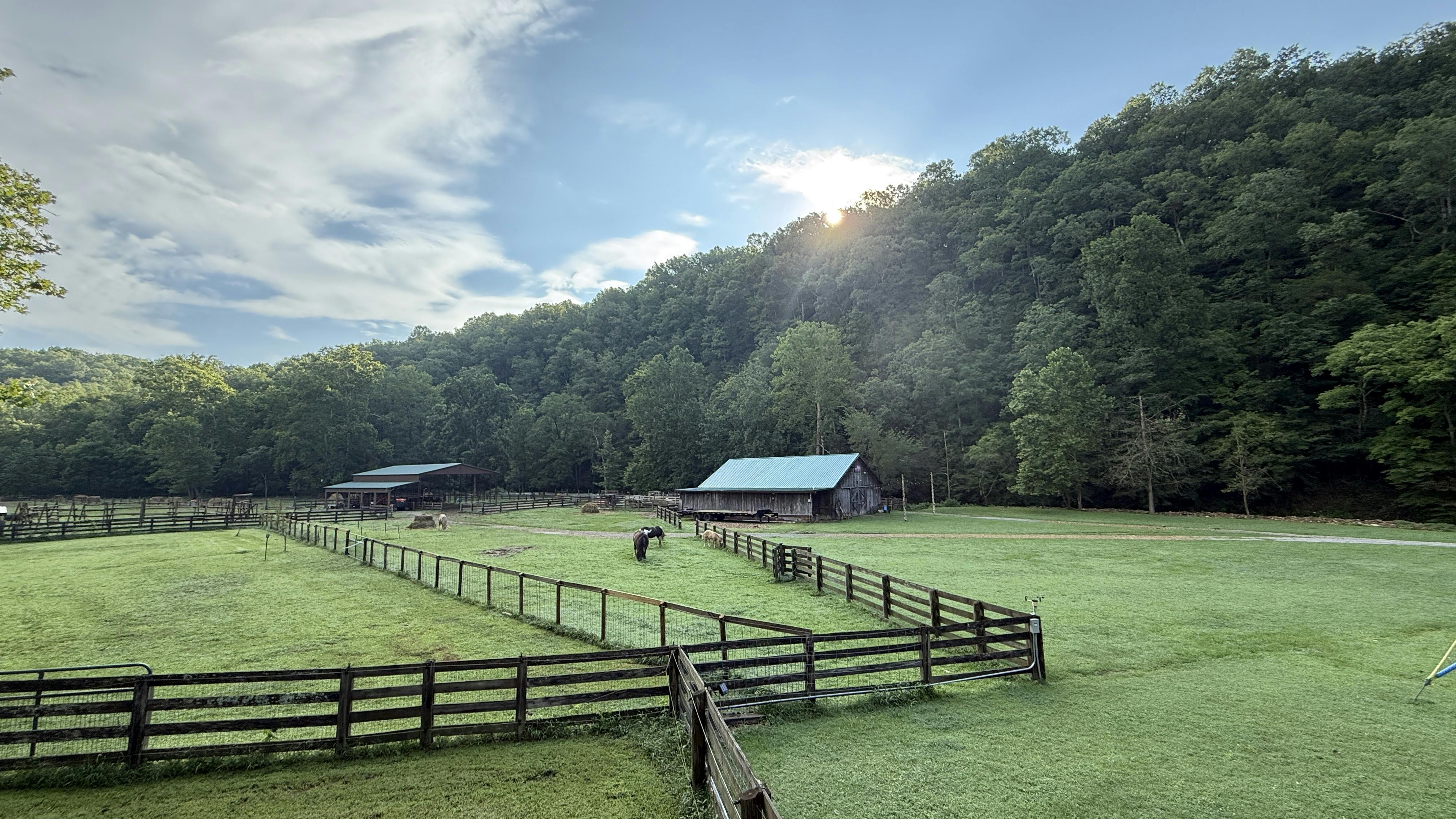 104 Farm is a 32 acre working farm just 25 minutes from downtown Nashville in Ashland City. Gypsy Vanner horses, highland cows, Nigerian dwarf goats, horse barn, cabins, geodomes, open fields and aged barns. Additionally spring fed cold plunge and wood burning sauna. A creek that winds through the entire property.