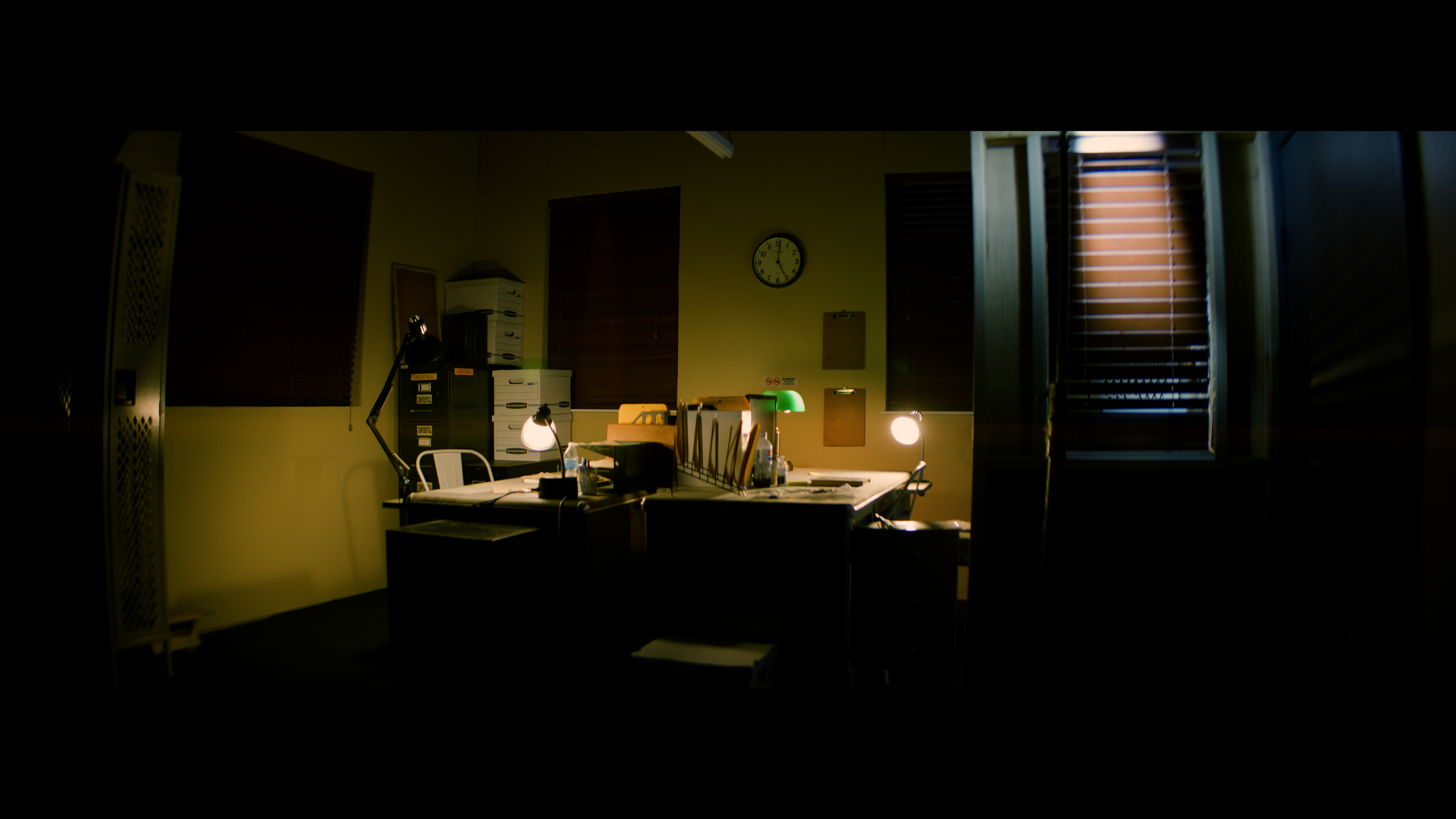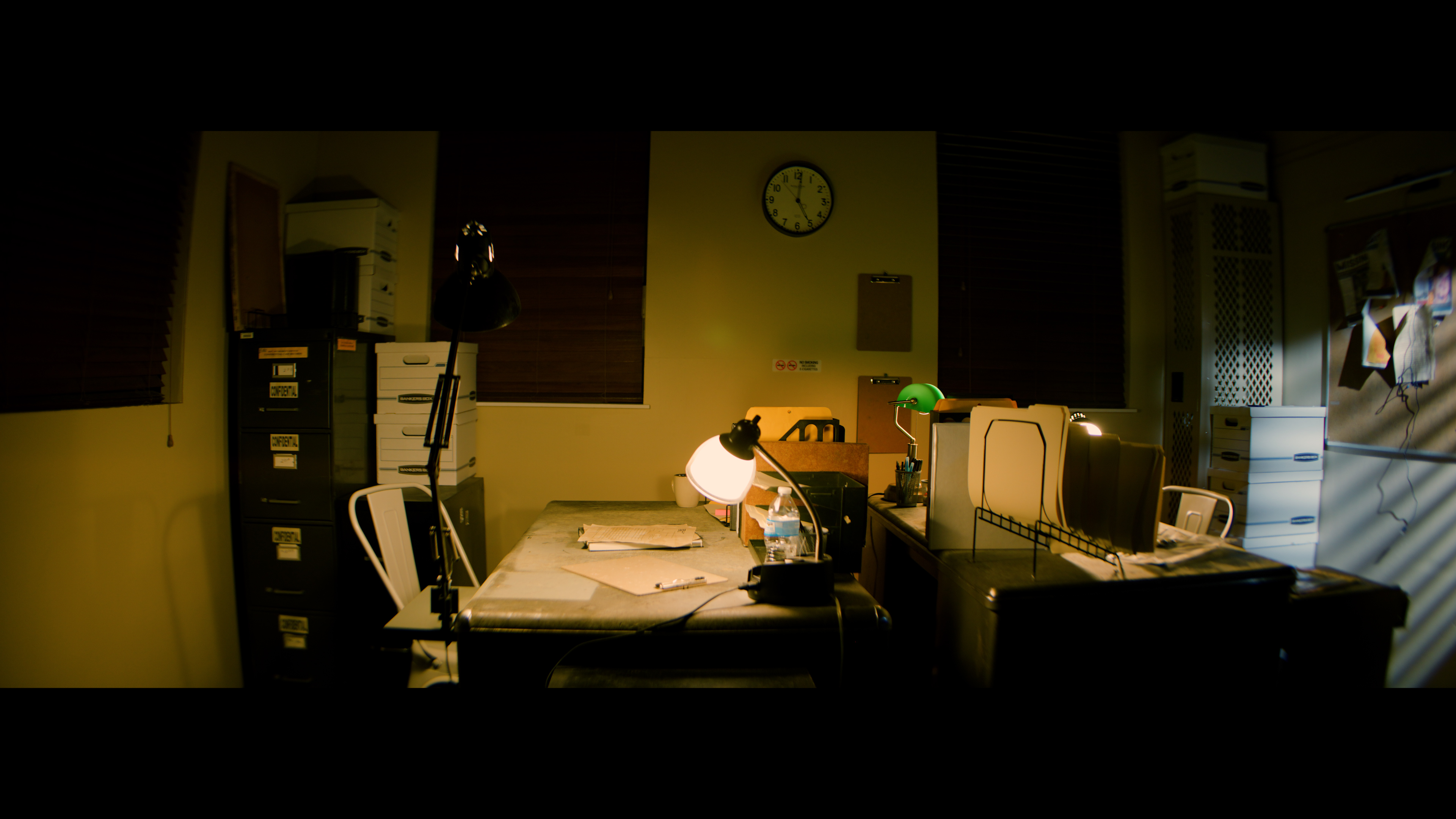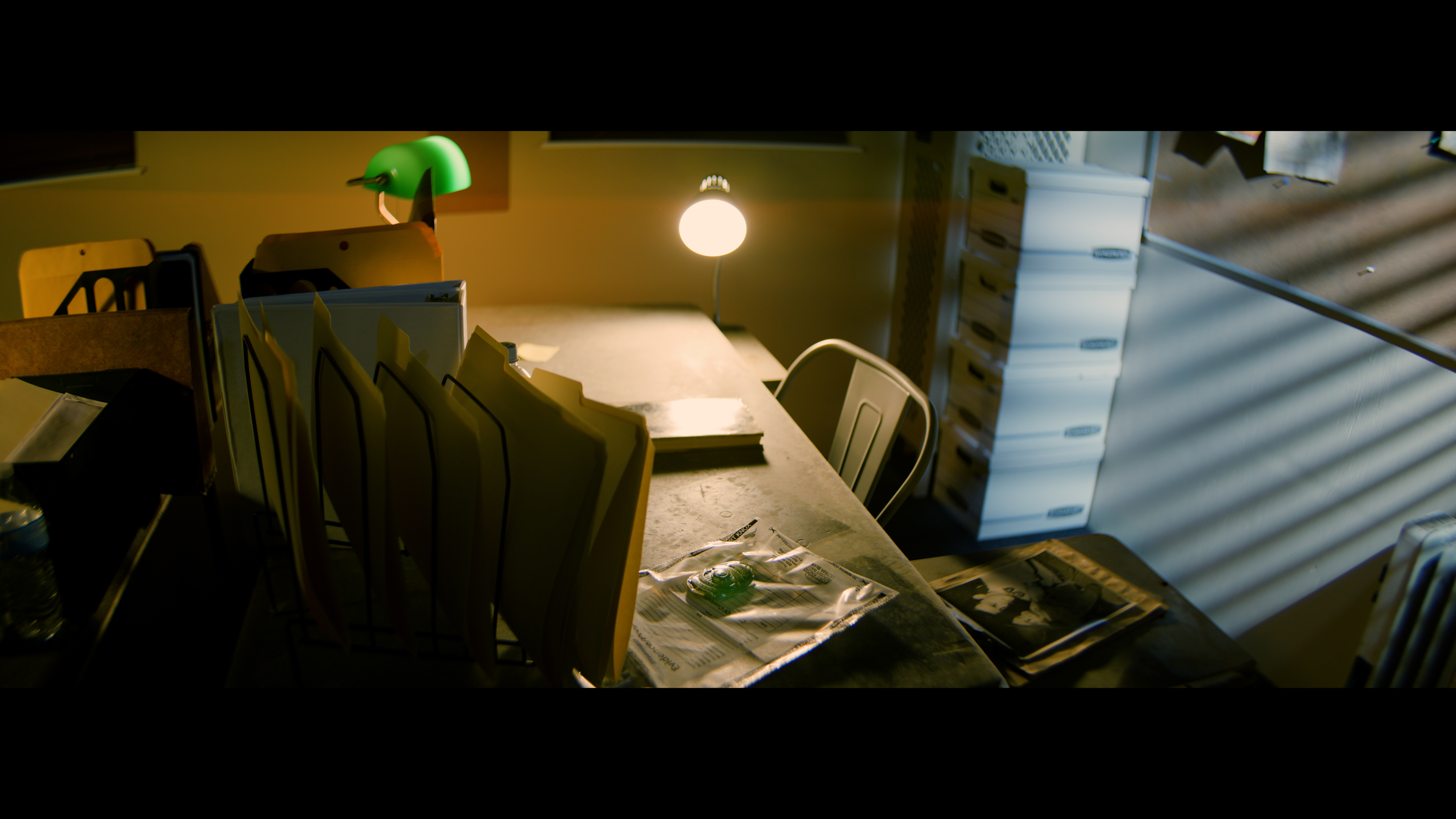 This moody office set features two detectives desks facing each other, perfect for capturing dialogue scenes. The studio is also located on a rural road, providing a set-up for capturing exterior driving shots!