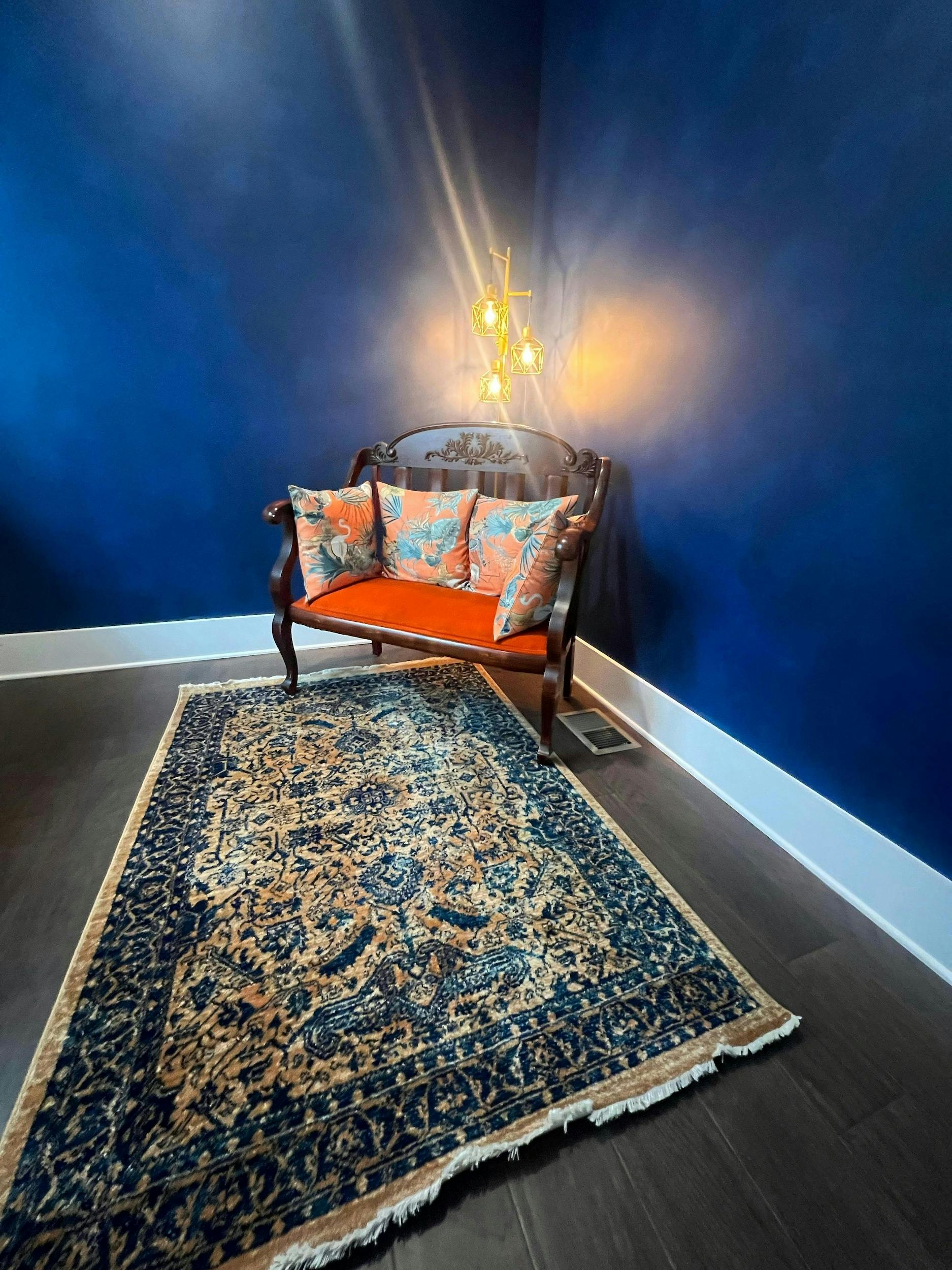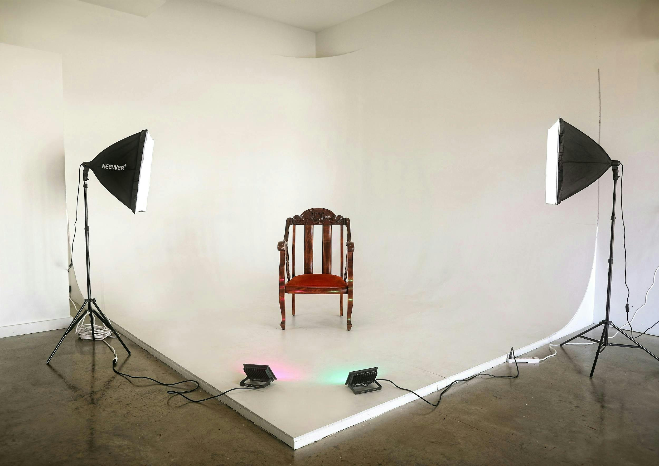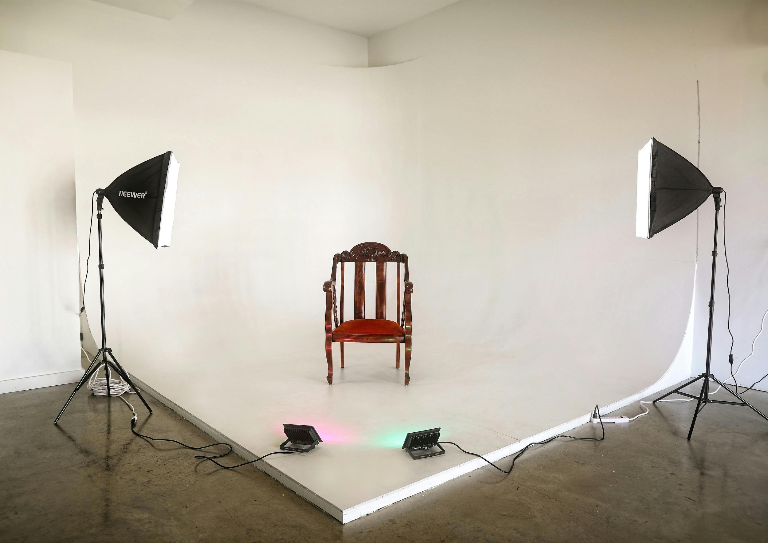 This home studio offers a cyc wall, lighting equipment and a curated collection of vintage and modern furniture. Conveniently located 10 minutes from downtown, this is great option for small photo and interview shoots!