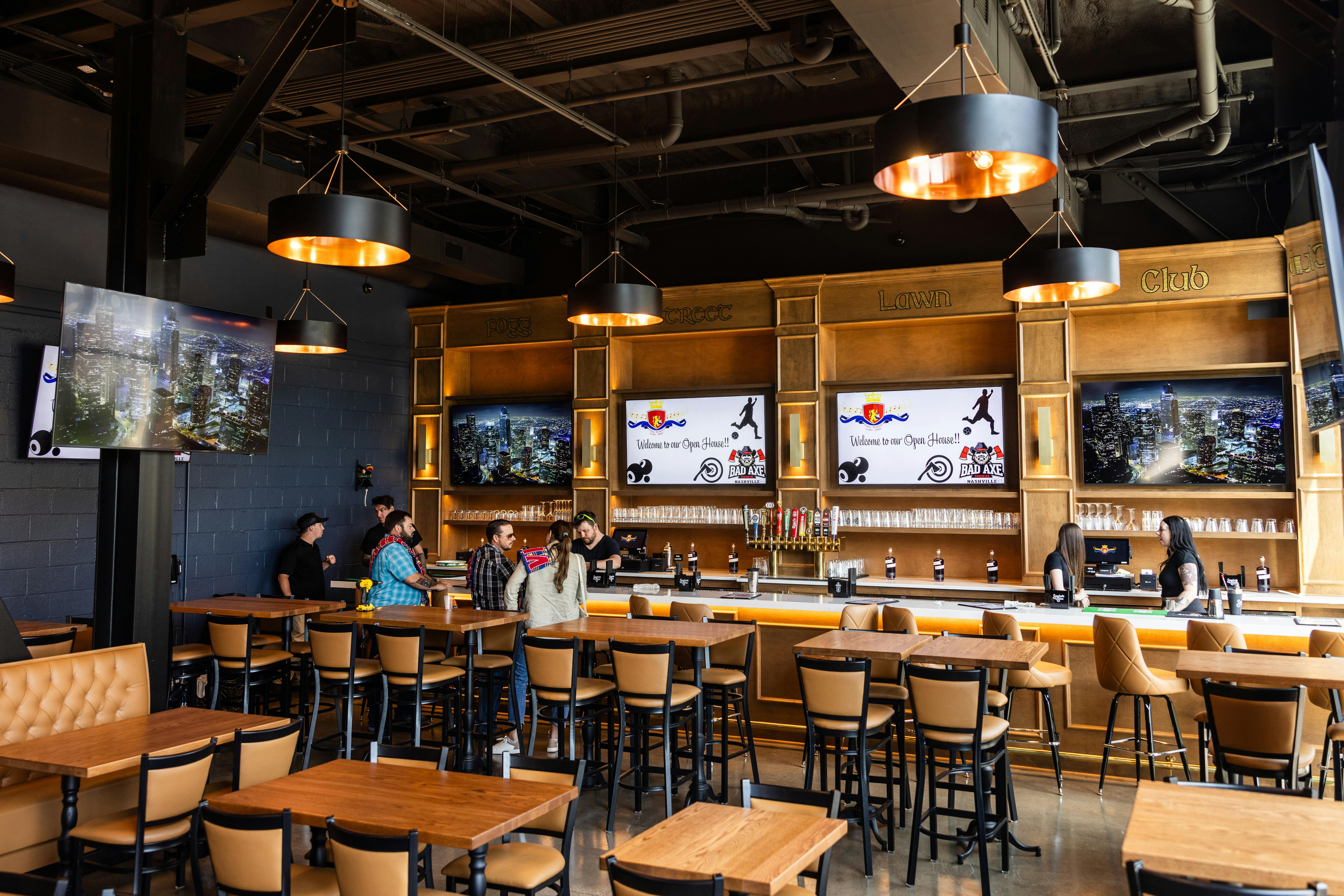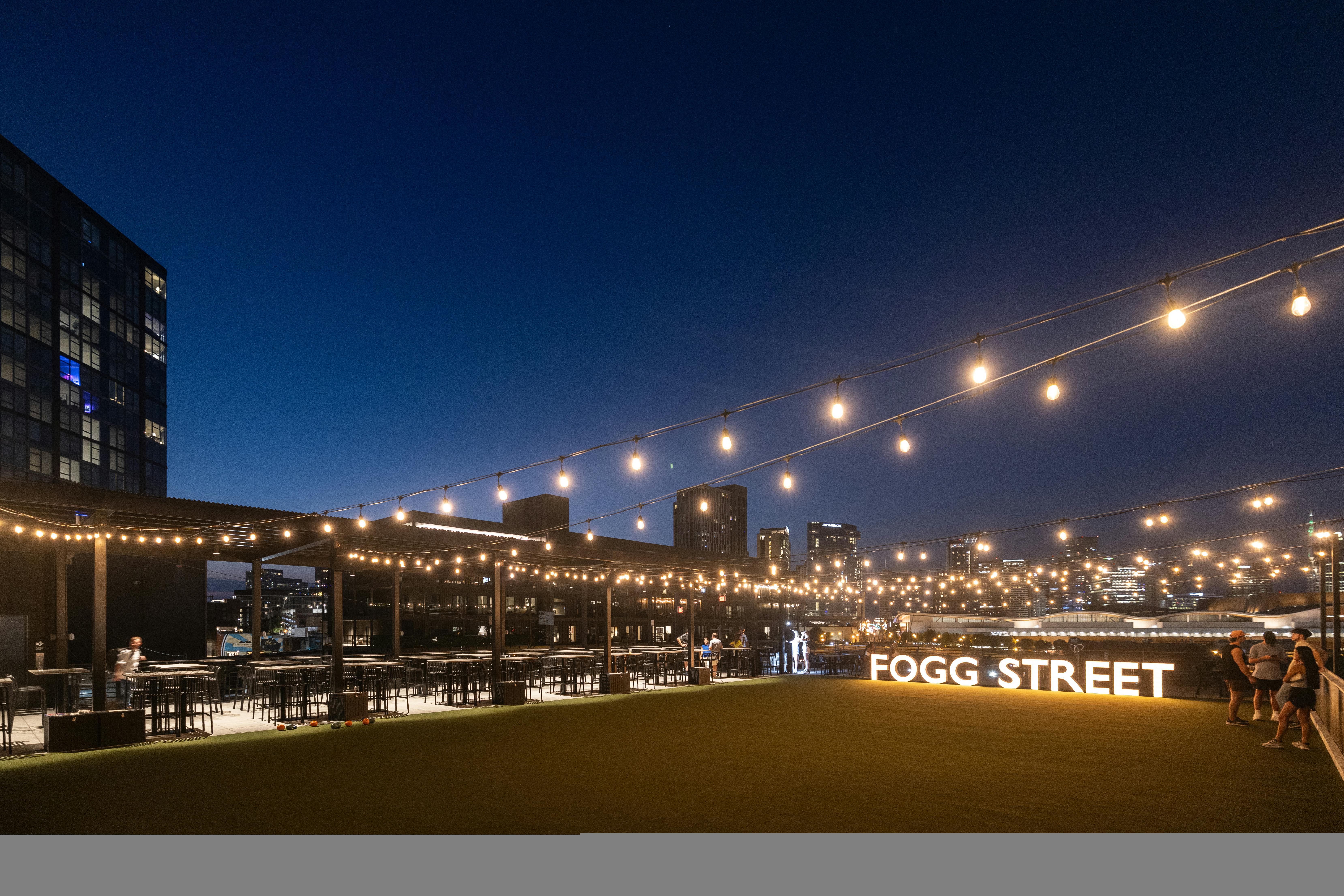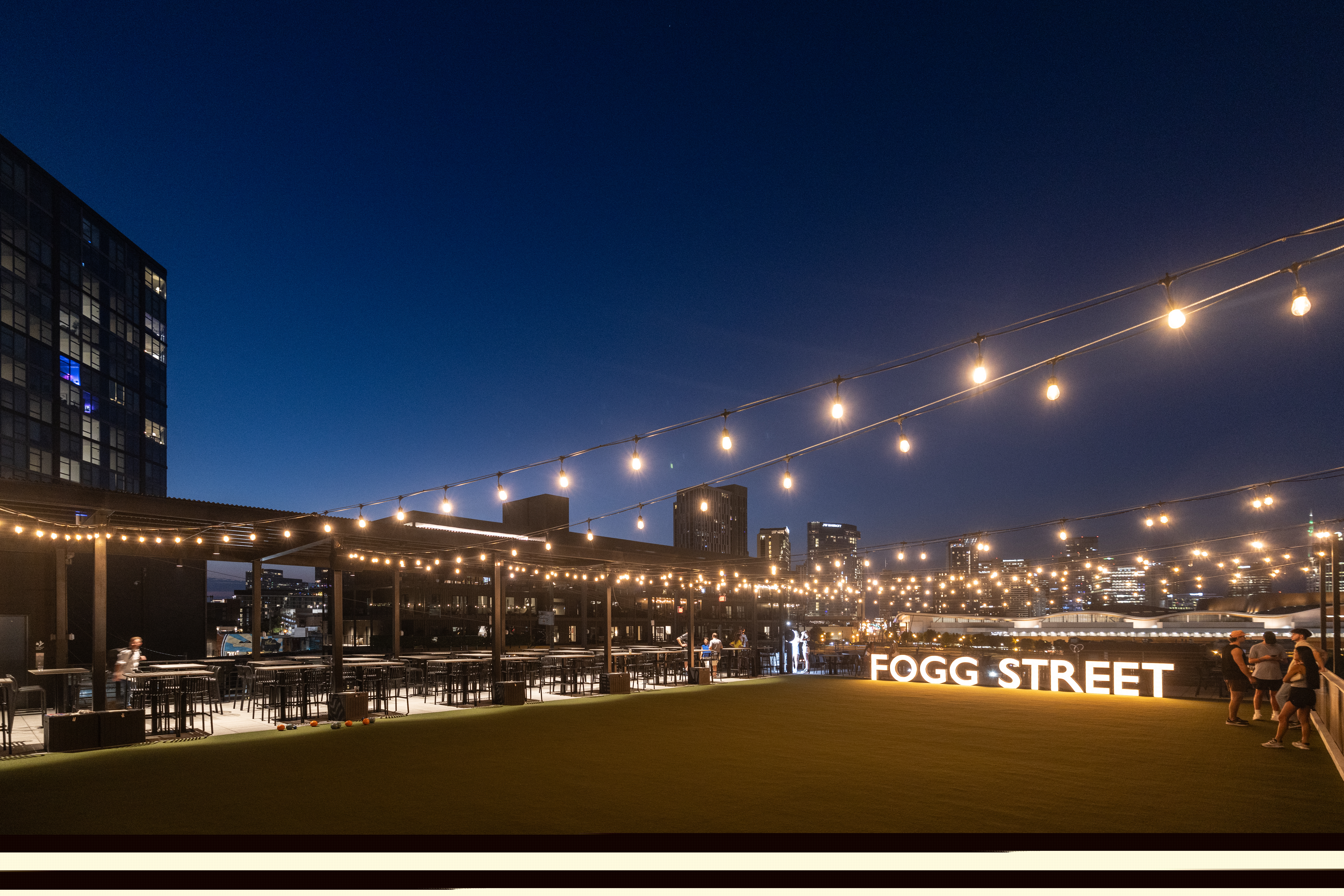 This urban event venue has a masculine, sports bar vibe with plenty of space for productions of any size. The huge rooftop patio features a a bar and outdoor seating, a turf lawn, and epic skyline views of the city!