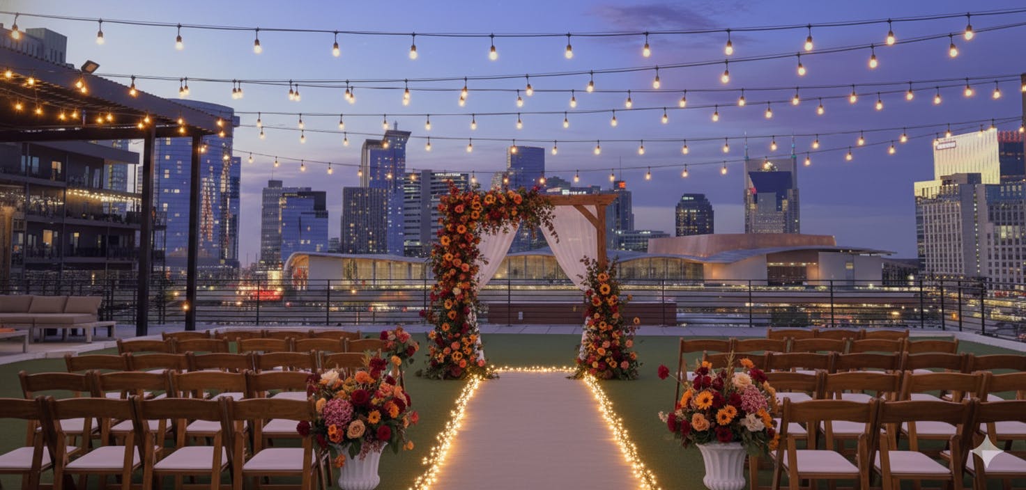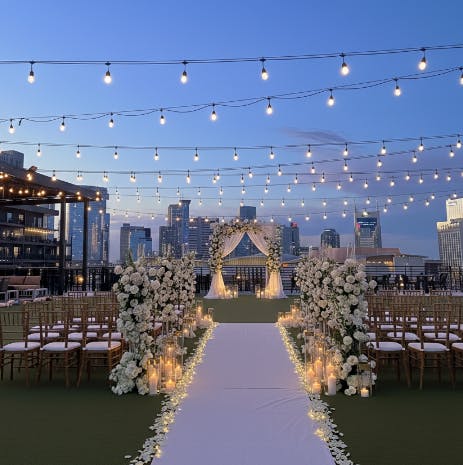 Just a whisper away from the lights of Broadway, this enchanting venue offers sweeping views of the iconic Music City skyline — an idyllic backdrop for your special day. With 8,000 square feet of flexible rooftop lawn space, you can curate the event of your dreams.