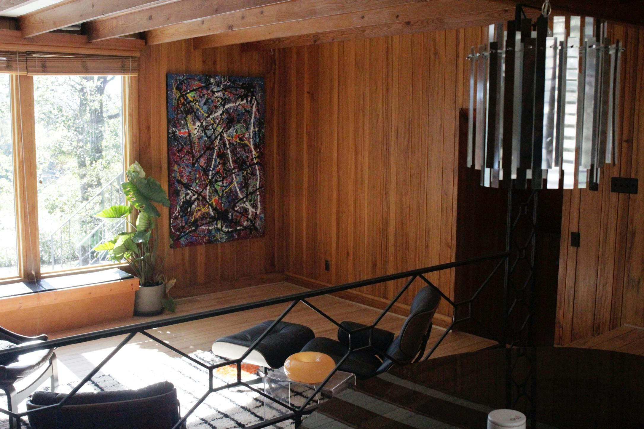 The soul of the house is the stunning, expansive living area. A central brick fireplace anchors the room, surrounded by vaulted ceilings, exposed beams and original hardwood floors. With plenty of texture and depth, this home would be a gorgeous backdrop for editorials and interviews!