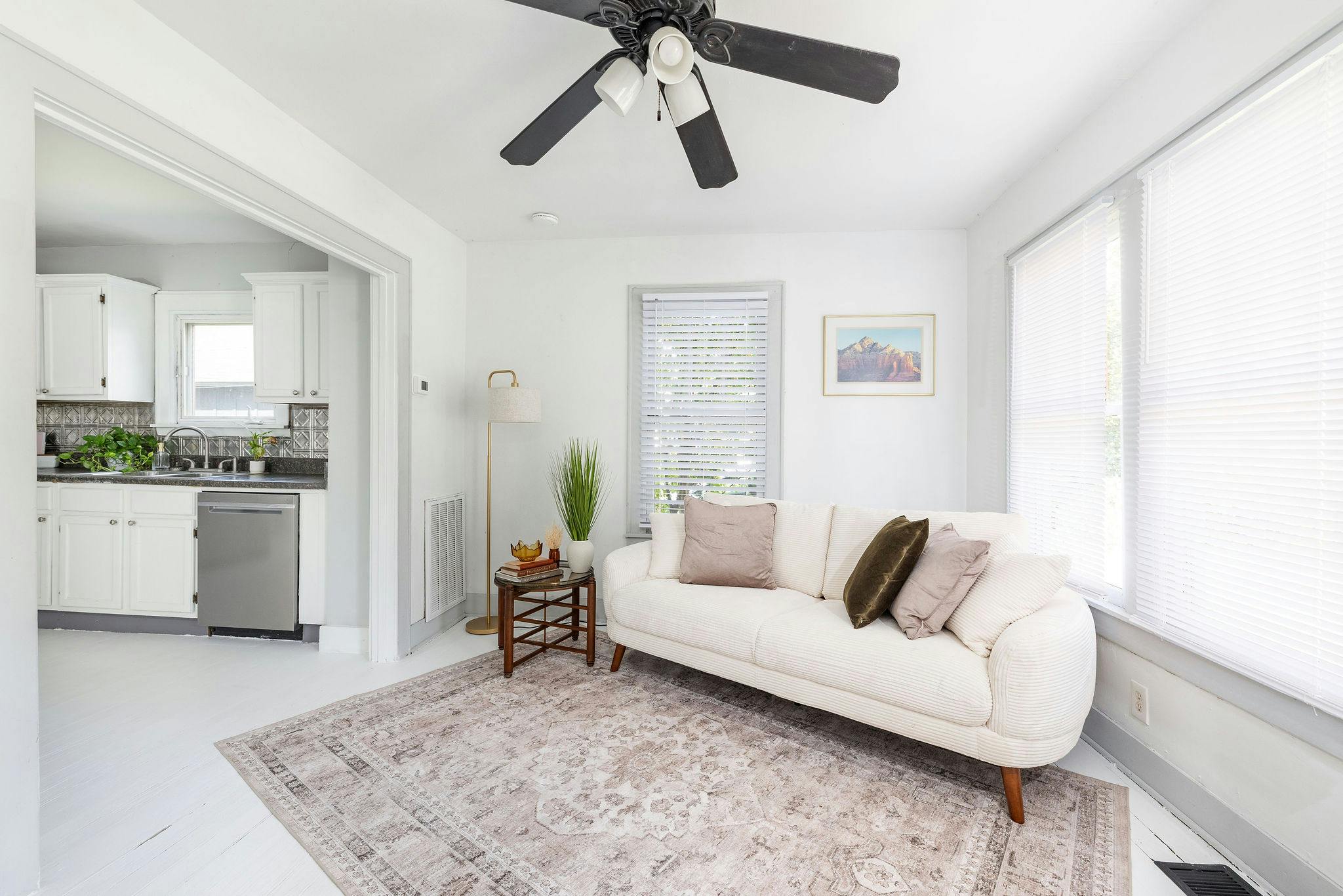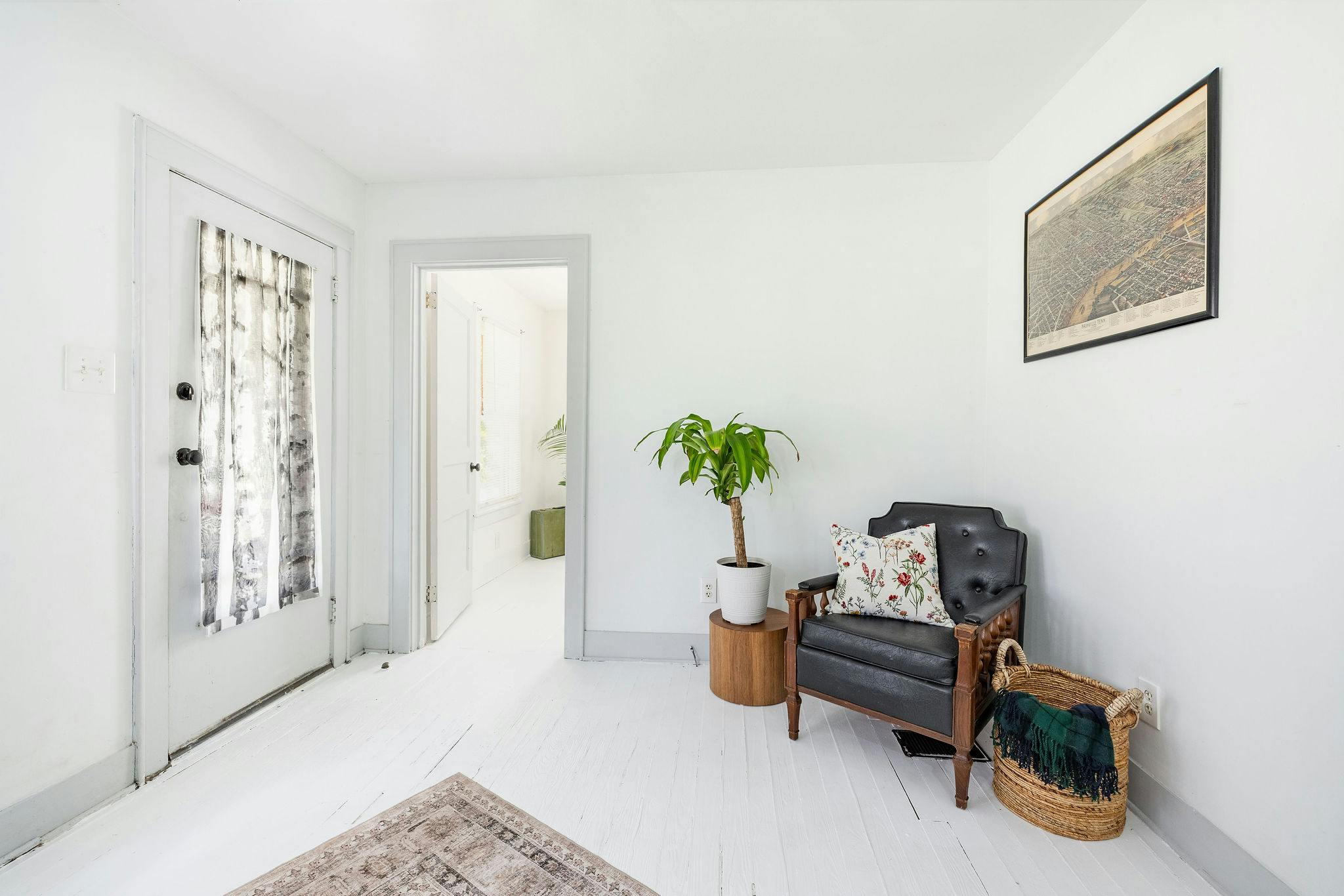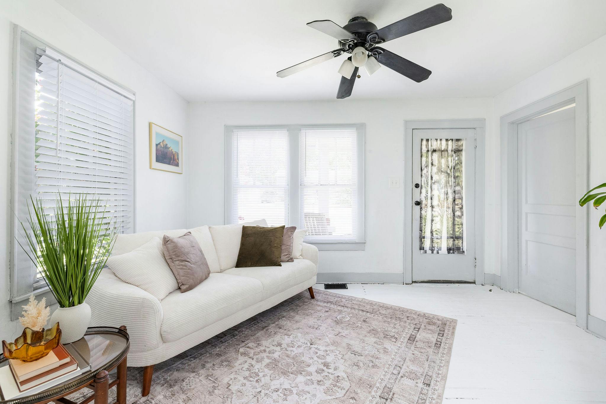 Adorable light filled craftsman style cottage. Painted white floors and walls. Perfect blank slate for photo shoots!