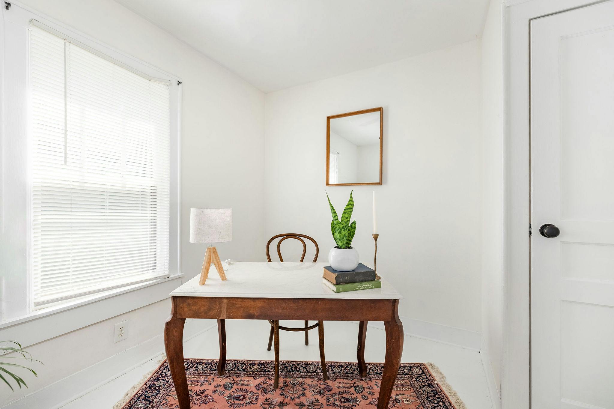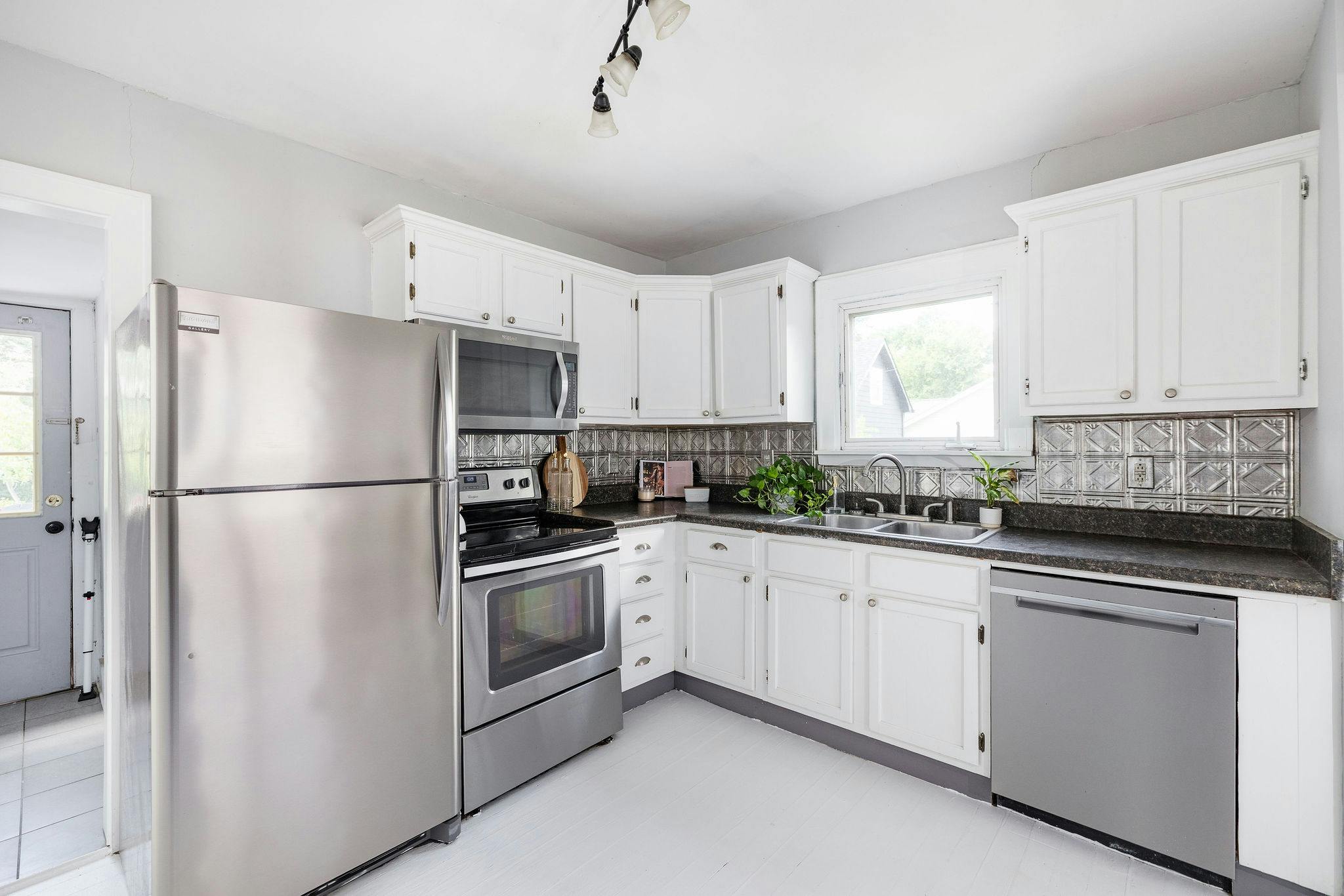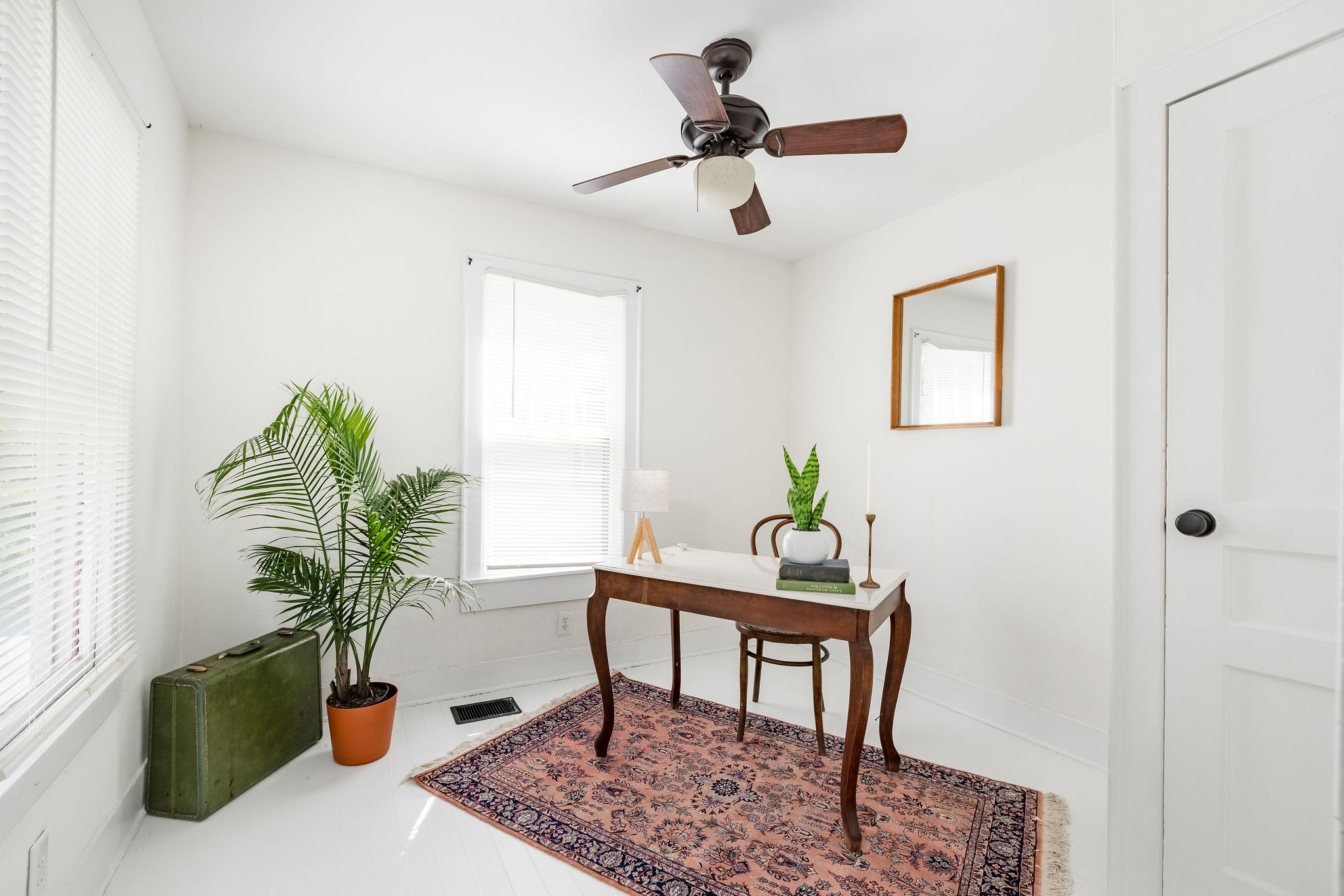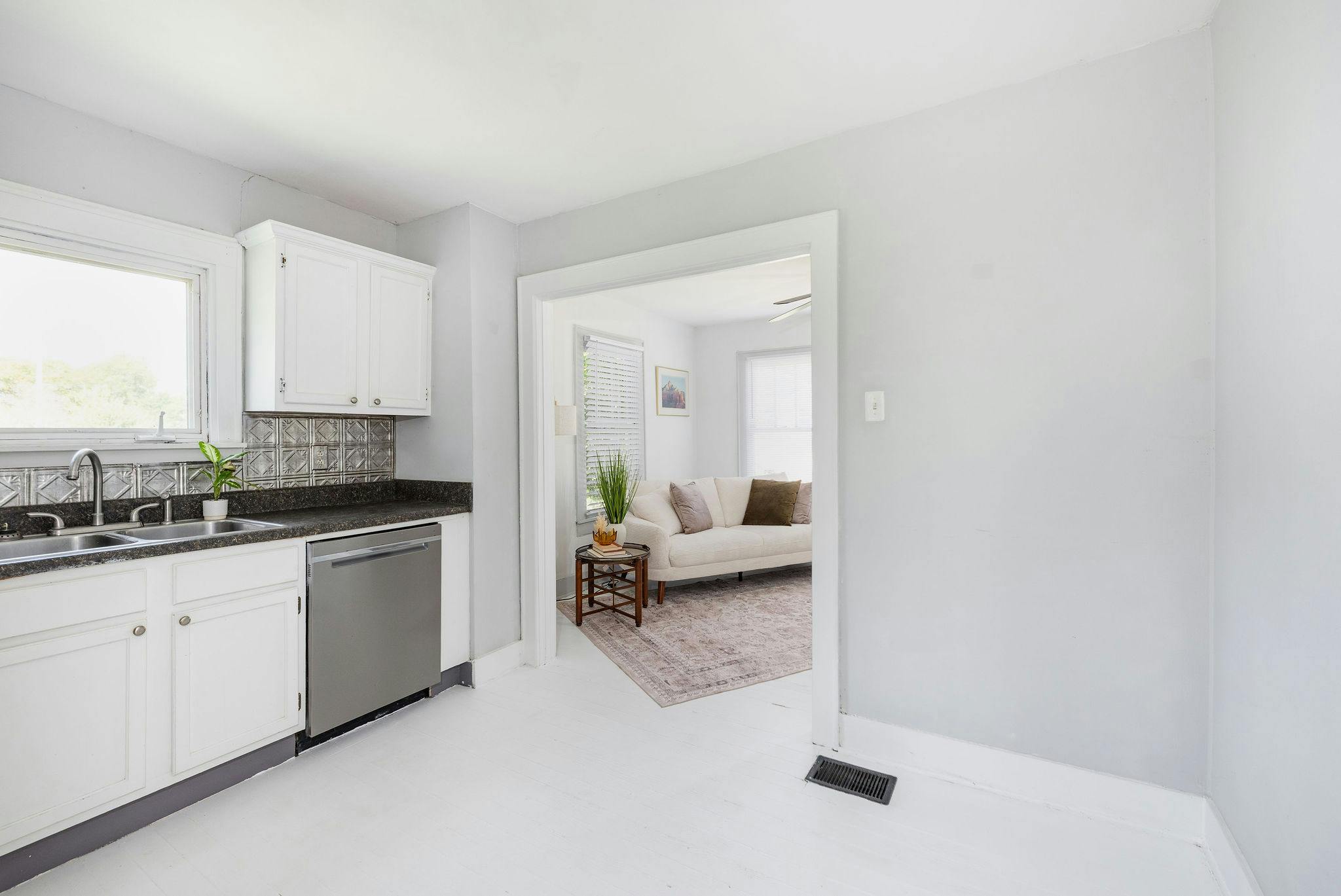 Adorable light filled craftsman style cottage. Painted white floors and walls. Perfect blank slate for photo shoots!