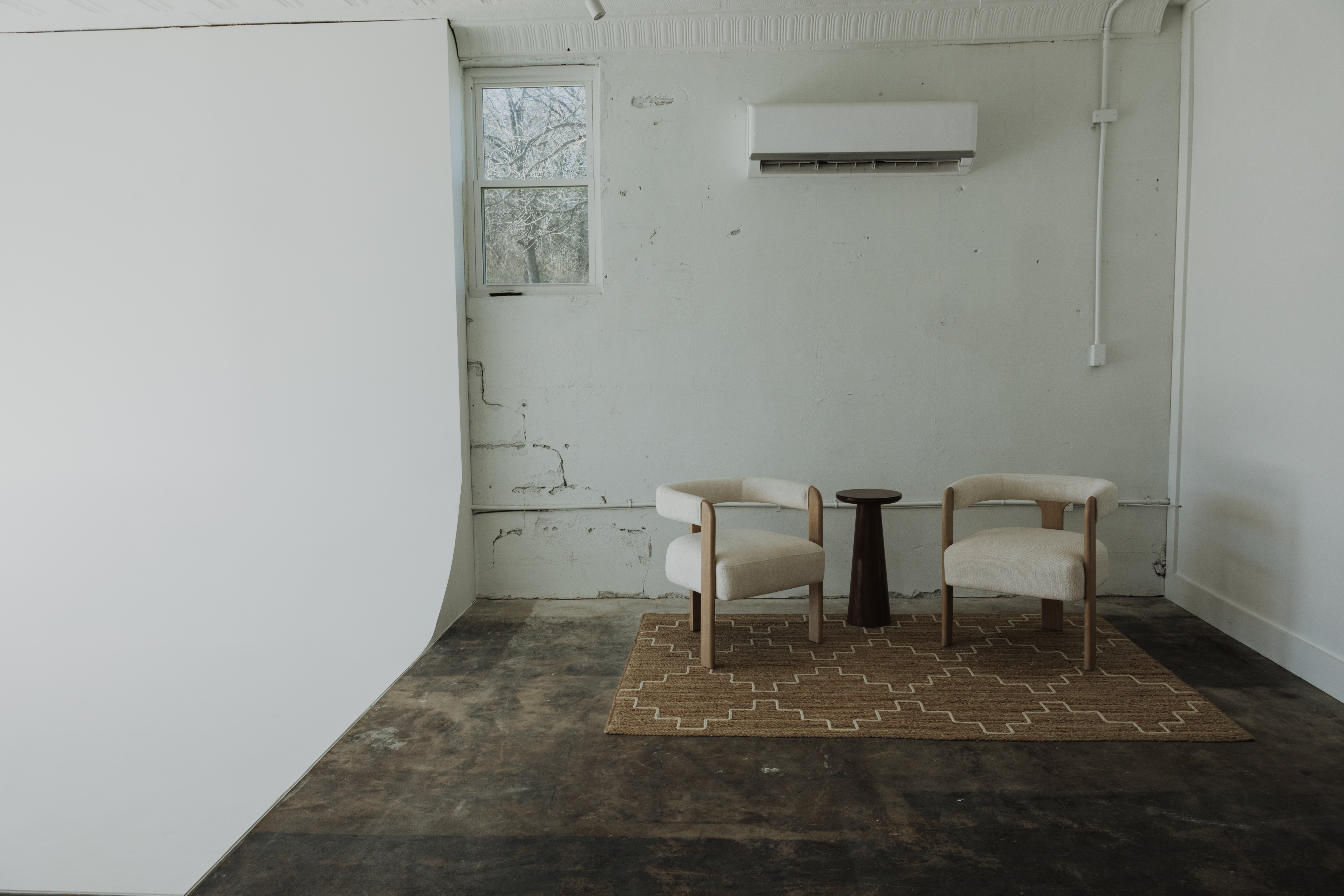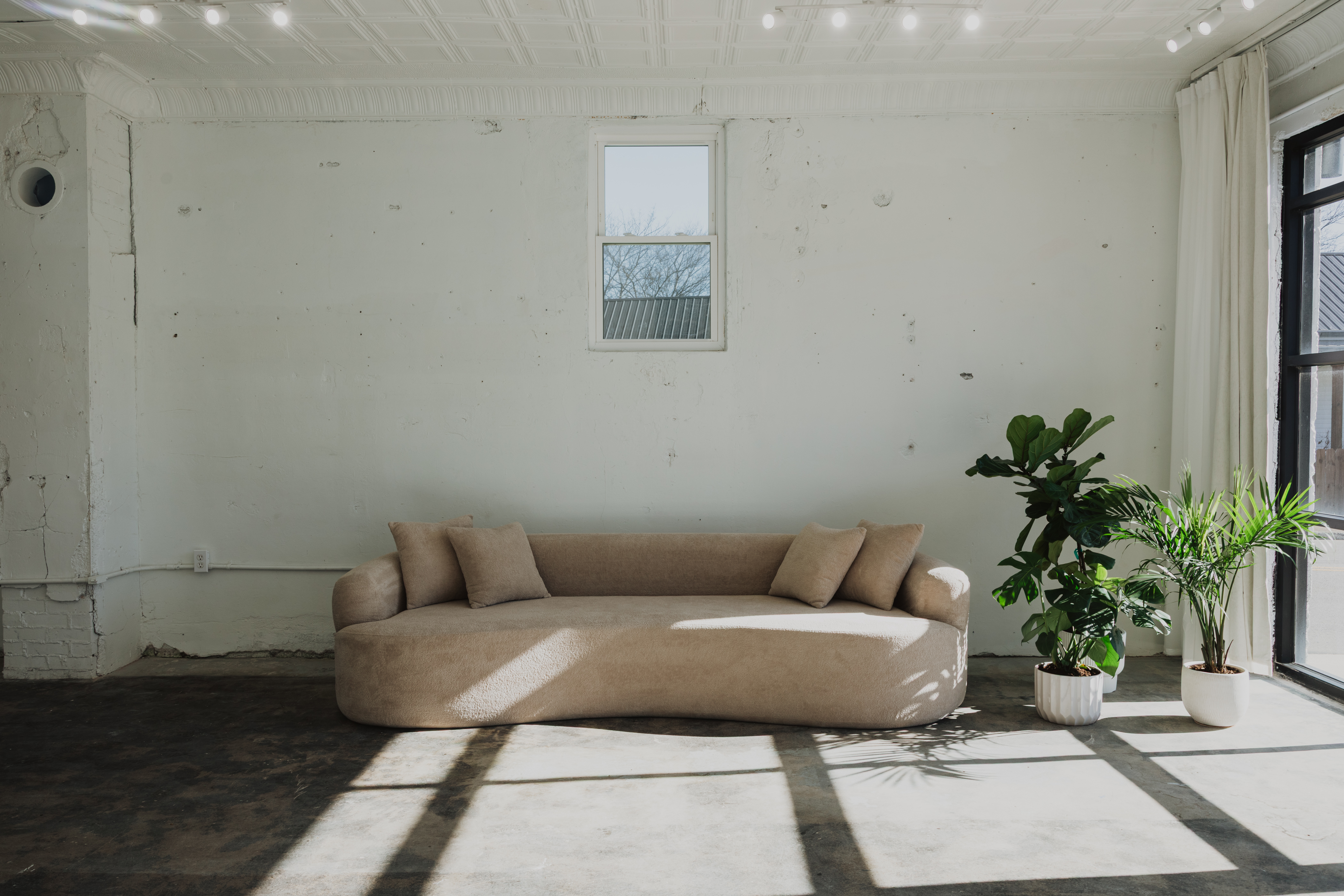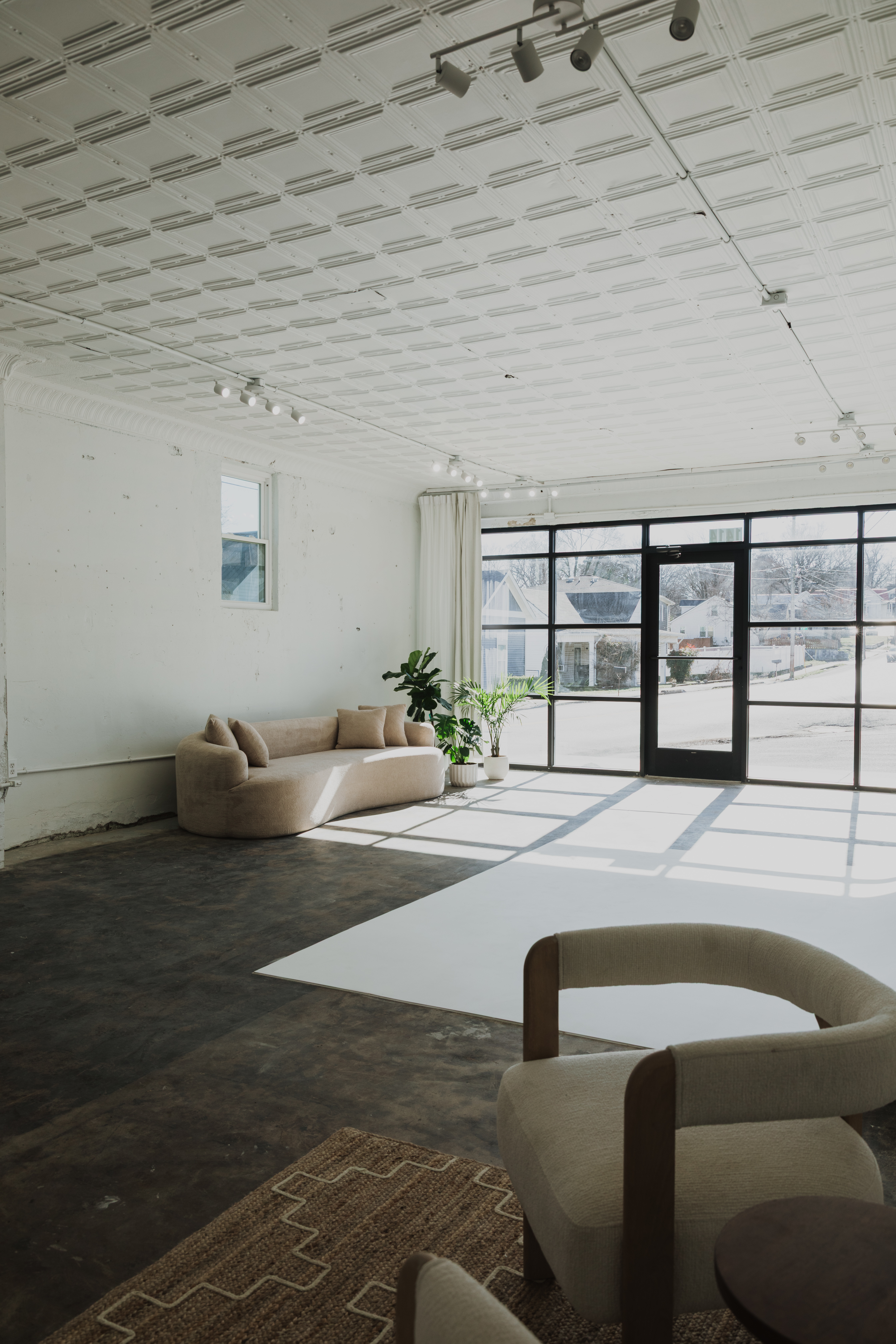 Highland Park Studio is a studio with incredible natural light, exposed brick, cement flooring and a cyc wall. The studio also has a 9ft sofa, and a few different chair options. There is a bathroom and a separate changing room equipped with a full length mirror and a clothes rack. In our storage room you’ll find a 2 c-stands available if needed.