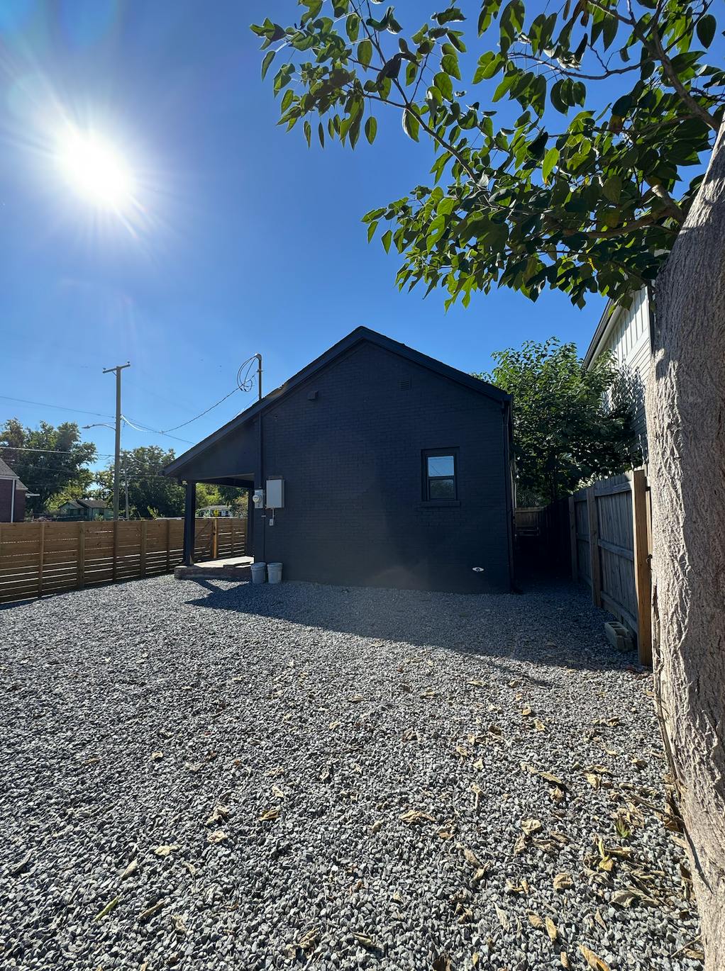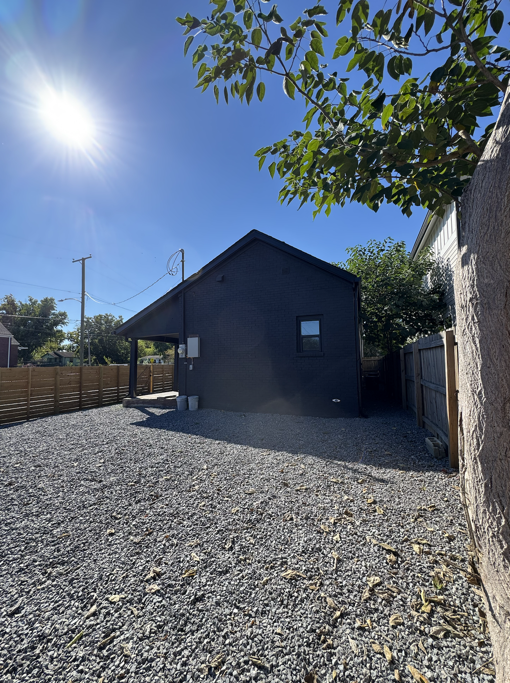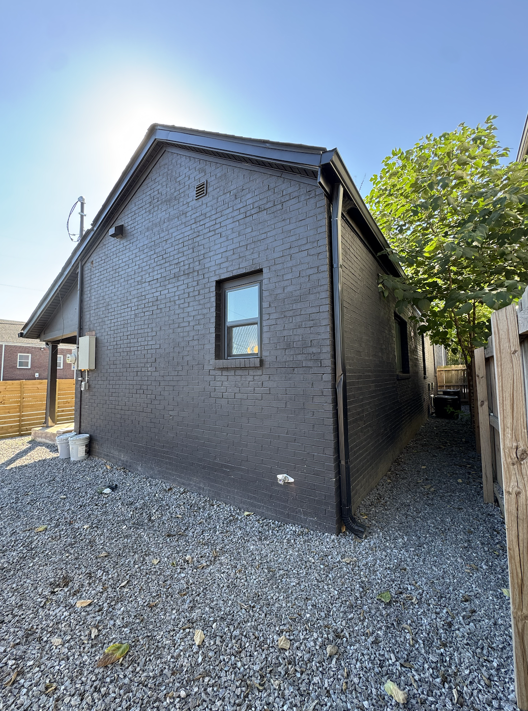Original details like the exposed brick fireplace add texture and warmth, while modern updates including a kitchenette and private getting-ready room keep productions comfortable. The large gated yard adds bonus square footage!